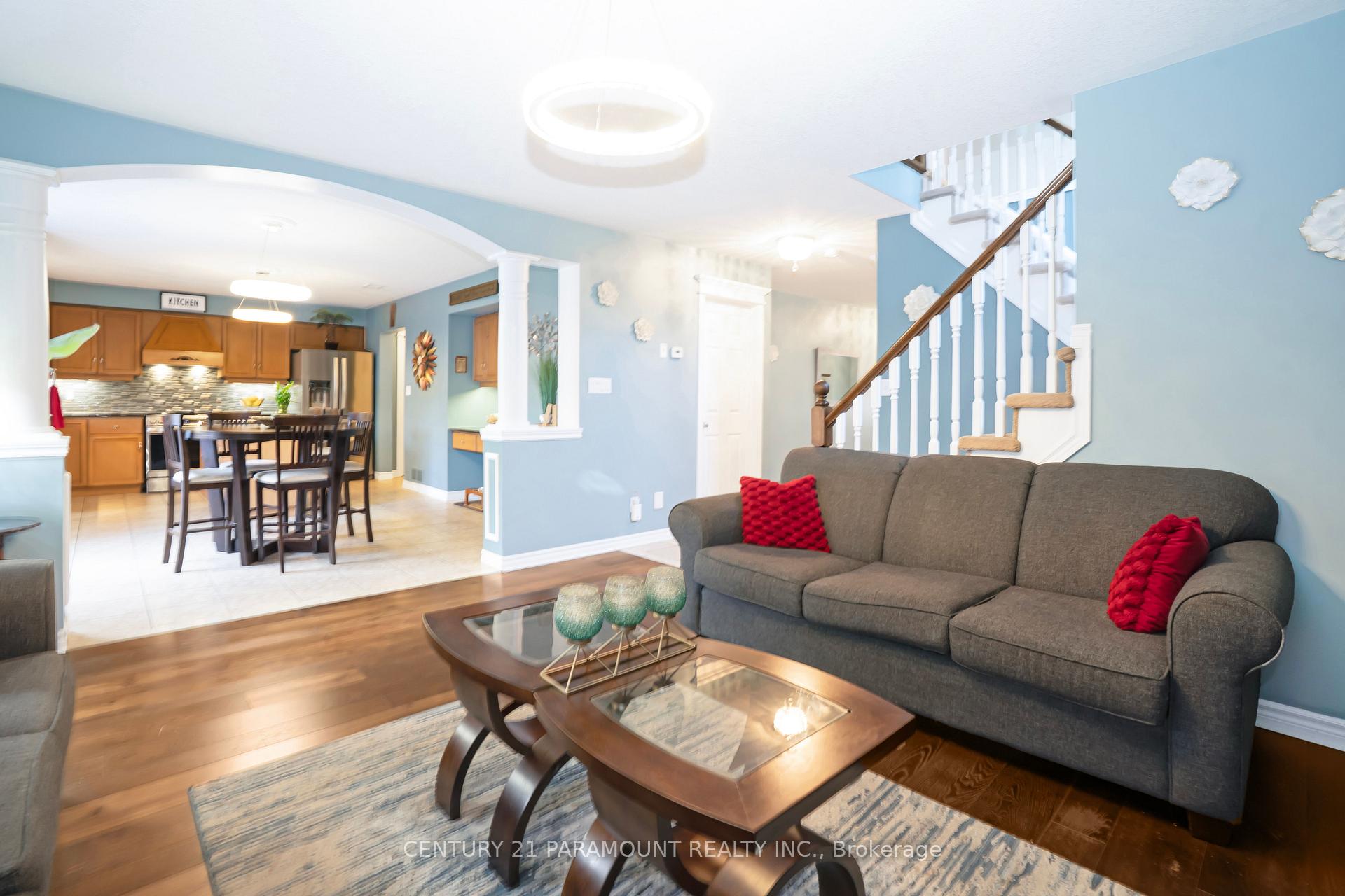 Situated on the Highly Desirable CORNER LOT in Ashton Ridge Community of ROCKWOOD! Set on a quiet, family-friendly street lined with charming covered porches, this beautifully updated residence offers the perfect blend of comfort, elegance, and functionality. Thoughtfully designed for modern family living, the home features a warm open-concept living and dining area, a bright and inviting great room ideal for relaxing or entertaining, and a generous family-sized kitchen with breakfast nook and walk-out to the deck.The upper level offers a spacious king-sized primary retreat complete with a luxurious 4-piece ensuite and jetted soaker tub, along with three additional well-sized bedrooms, a large main bathroom, and the convenience of second-floor laundry.This home has been enhanced with several notable updates, including upgraded laminate flooring throughout, all toilets replaced, stepped crown moulding, wide baseboards, and a roof replaced in 2021. Direct garage access adds everyday convenience.Situated on a pool-sized lot, the beautifully landscaped backyard is a true outdoor oasis. Enjoy a large multi-level deck with two covered gazebos, a relaxing hot tub, cozy firepit area with Adirondack chairs, BBQ setup, lush lawn, mature trees, stone pathway, and storage shed – a perfect setting for entertaining and outdoor living.A rare opportunity to own a move-in ready home in one of Rockwood’s most sought-after communities.