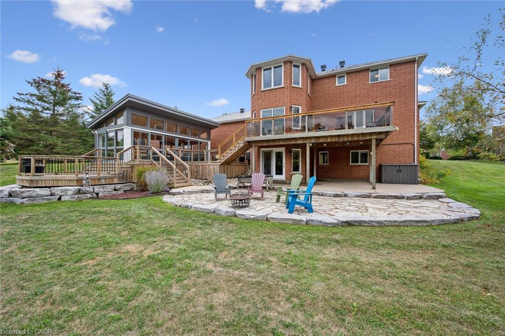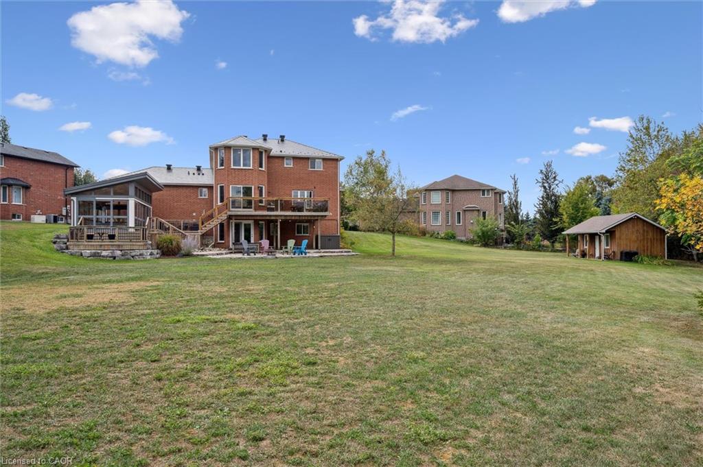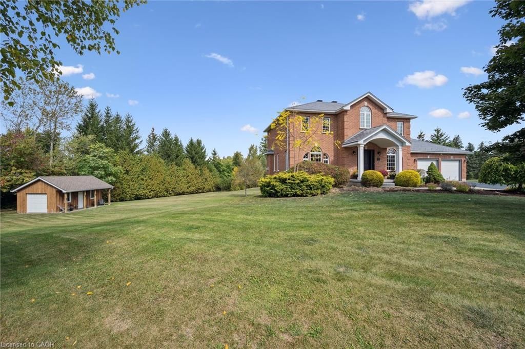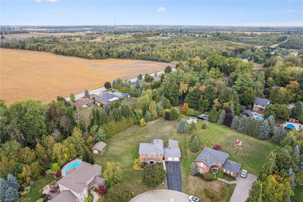 OPEN HOUSE- Sat. Sept. 20th 1:00-3:00pm. Set on a very private cul-de-sac in a premium neighbourhood and nestled on a sprawling 0.87-acre pie-shaped lot, this impressive, solid brick, two-storey home exudes a peaceful country feel without being isolated, perfectly balancing privacy and convenience. Designed with elegance and function in mind, this well-built home features expansive indoor and outdoor living spaces ideal for sophisticated entertaining and effortless family living. Inside, the home flows effortlessly, beginning with a gracious living room featuring hardwood flooring and a custom-built-in bar, perfect for evening gatherings. The updated kitchen, with an adjacent dinette, opens to a warm and inviting family room anchored by a gas fireplace. An attractive formal dining room, a well-planned mudroom and laundry room combination, and a convenient powder room add to the everyday functionality of the main floor. Upstairs, the second level features four generously proportioned bedrooms complemented by a 4-piece family bathroom, while the sunlit primary suite is a luxurious retreat complete with a walk-in closet and a private 3-piece ensuite. The walk-out basement extends the living space with extra high ceilings and a thoughtfully designed 2-bedroom, 2-bathroom in-law suite, offering both comfort and independence. Outdoors, the property shines as a true entertainer’s paradise. From the sprawling multi-level deck with an enclosed swim spa area (2016), to the flagstone patio and cozy firepit area overlooking the expansive backyard, every detail invites relaxation and connection. Additional highlights include a workshop with hydro, newer windows, a durable metal roof (2014), an attached 2-car garage, and ample parking for guests. Sophisticated, spacious, and supremely private- this is executive living at its finest.