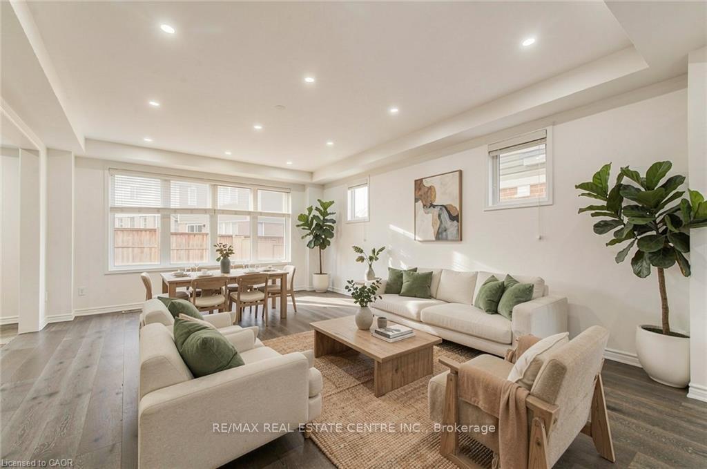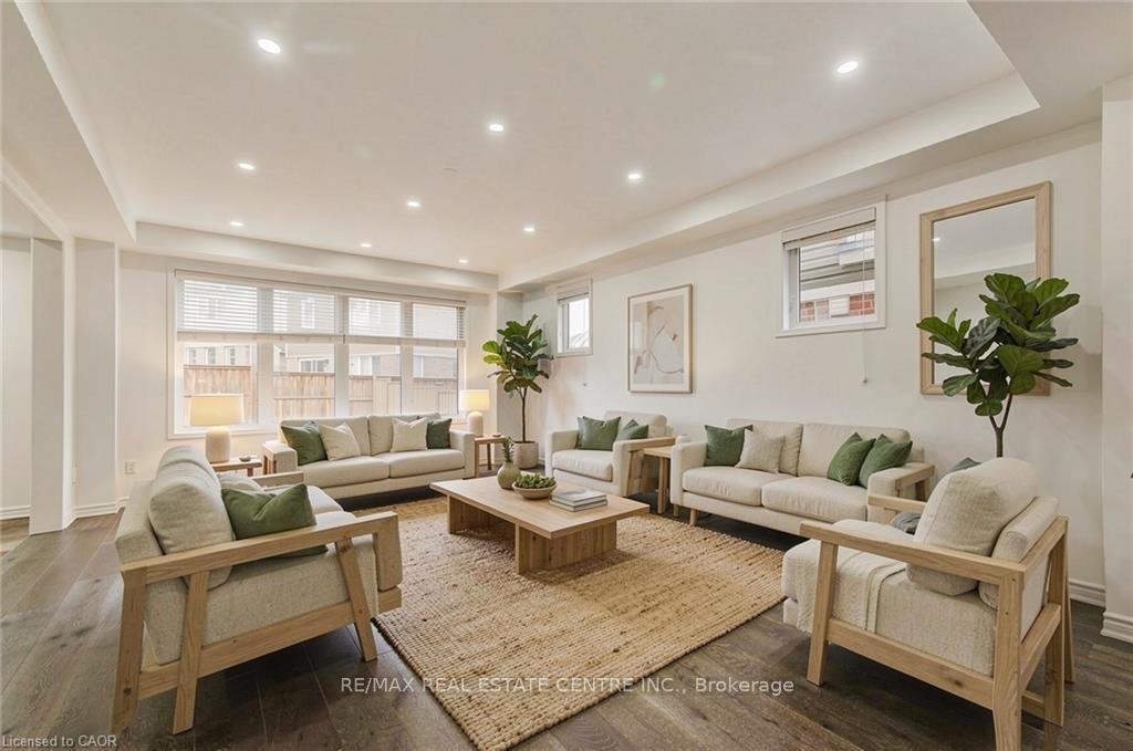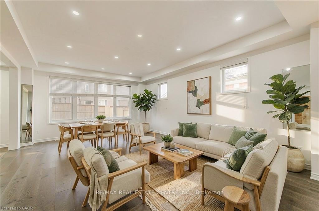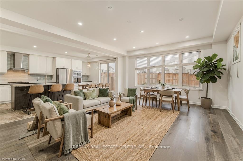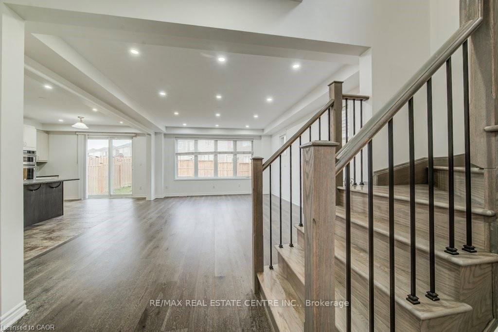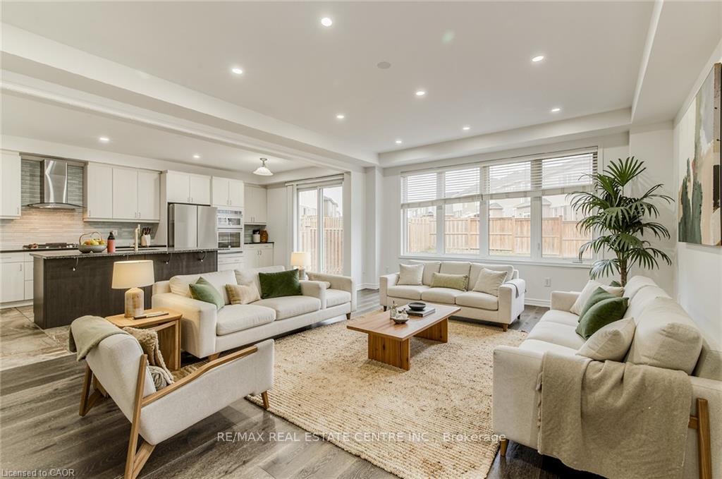 Welcome to 11 Compass Trail, a beautifully upgraded detached home offering exceptional interior finishes and a thoughtfully designed layout for modern living. The bright open-concept main floor features spacious living and dining areas, 9-foot ceilings, hardwood flooring, interior and exterior pot lights, and a convenient 2 piece bathroom. The upgraded chef’s kitchen is complemented by a walk-in pantry, ideal for everyday living and entertaining. Elegant wood stairs with iron railings lead to the second level, where you’ll find four generously sized bedrooms and two well-appointed bathrooms with cultured marble counters. The primary bedroom retreat boasts a luxurious ensuite and multiple walk-in closets. Situated on a premium 36 x 108 ft lot, this home features a fully fenced backyard, double car garage, and parking for four vehicles. Enjoy a rare setting fronting onto protected green space with a flowing river stream, scenic views, nearby pond, nature trails, and parks, all while being ideally located in a prime Cambridge neighborhood close to major amenities and highways. A perfect blend of luxury, nature, and convenience, book your showing today!
