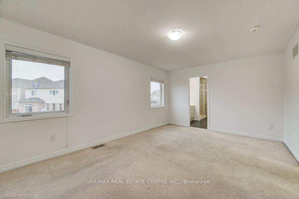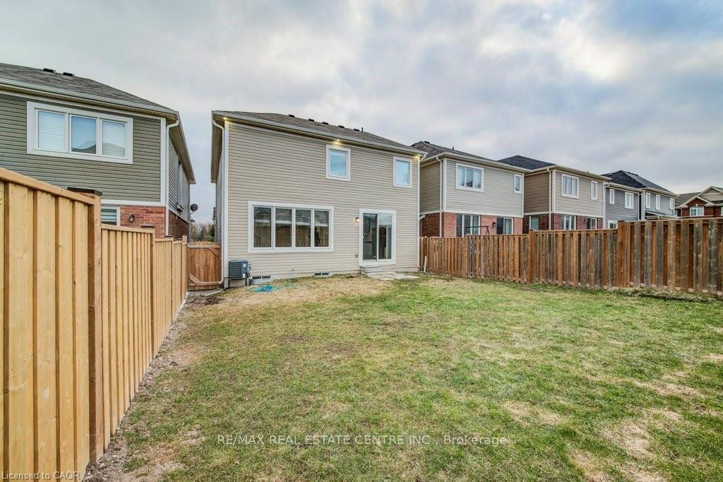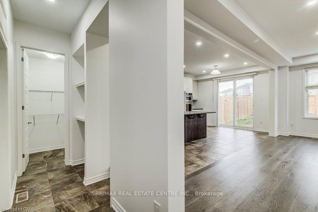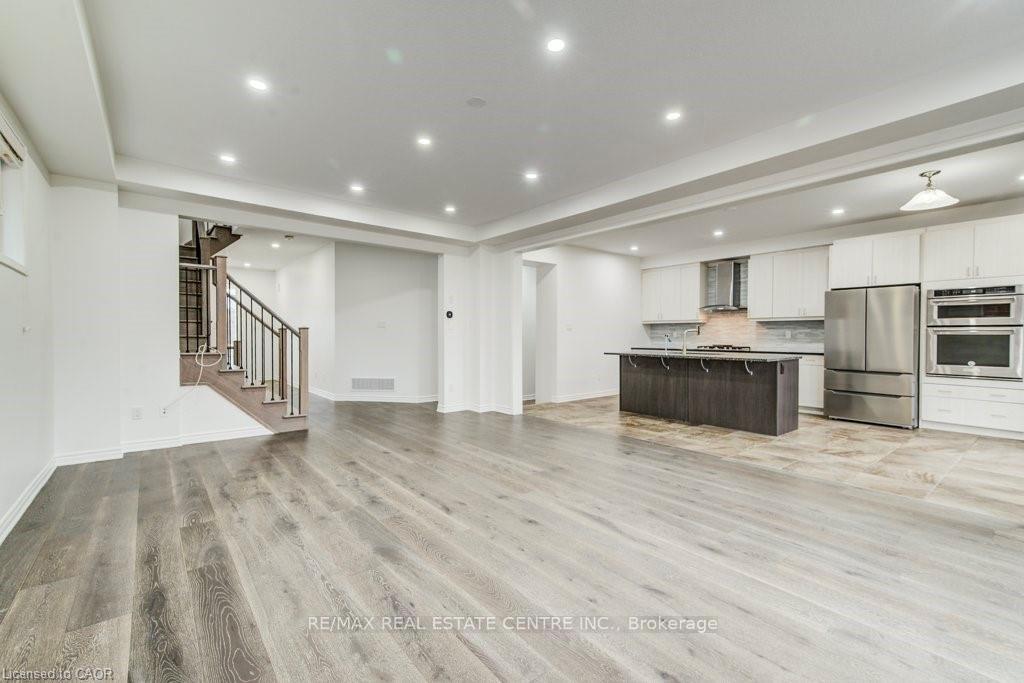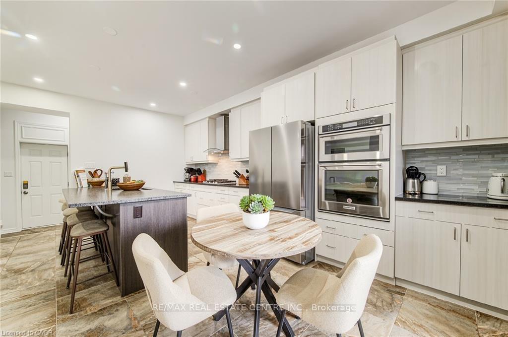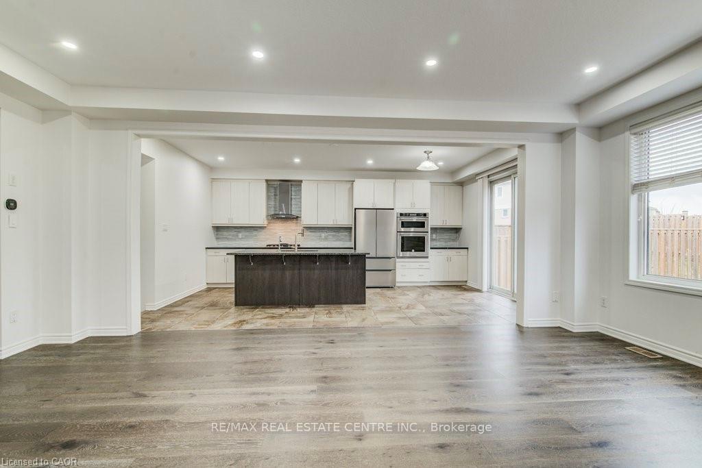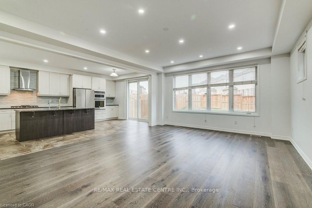 Welcome to 11 Compass Trail, a beautifully upgraded detached home offering exceptional interior finishes and a thoughtfully designed layout for modern living. The bright open-concept main floor features spacious living and dining areas, 9-foot ceilings, hardwood flooring, interior and exterior pot lights, and a convenient 2 piece bathroom. The upgraded chef’s kitchen is complemented by a walk-in pantry, ideal for everyday living and entertaining. Elegant wood stairs with iron railings lead to the second level, where you’ll find four generously sized bedrooms and two well-appointed bathrooms with cultured marble counters. The primary bedroom retreat boasts a luxurious ensuite and multiple walk-in closets. Situated on a premium 36 x 108 ft lot, this home features a fully fenced backyard, double car garage, and parking for four vehicles. Enjoy a rare setting fronting onto protected green space with a flowing river stream, scenic views, nearby pond, nature trails, and parks, all while being ideally located in a prime Cambridge neighborhood close to major amenities and highways. A perfect blend of luxury, nature, and convenience, book your showing today!