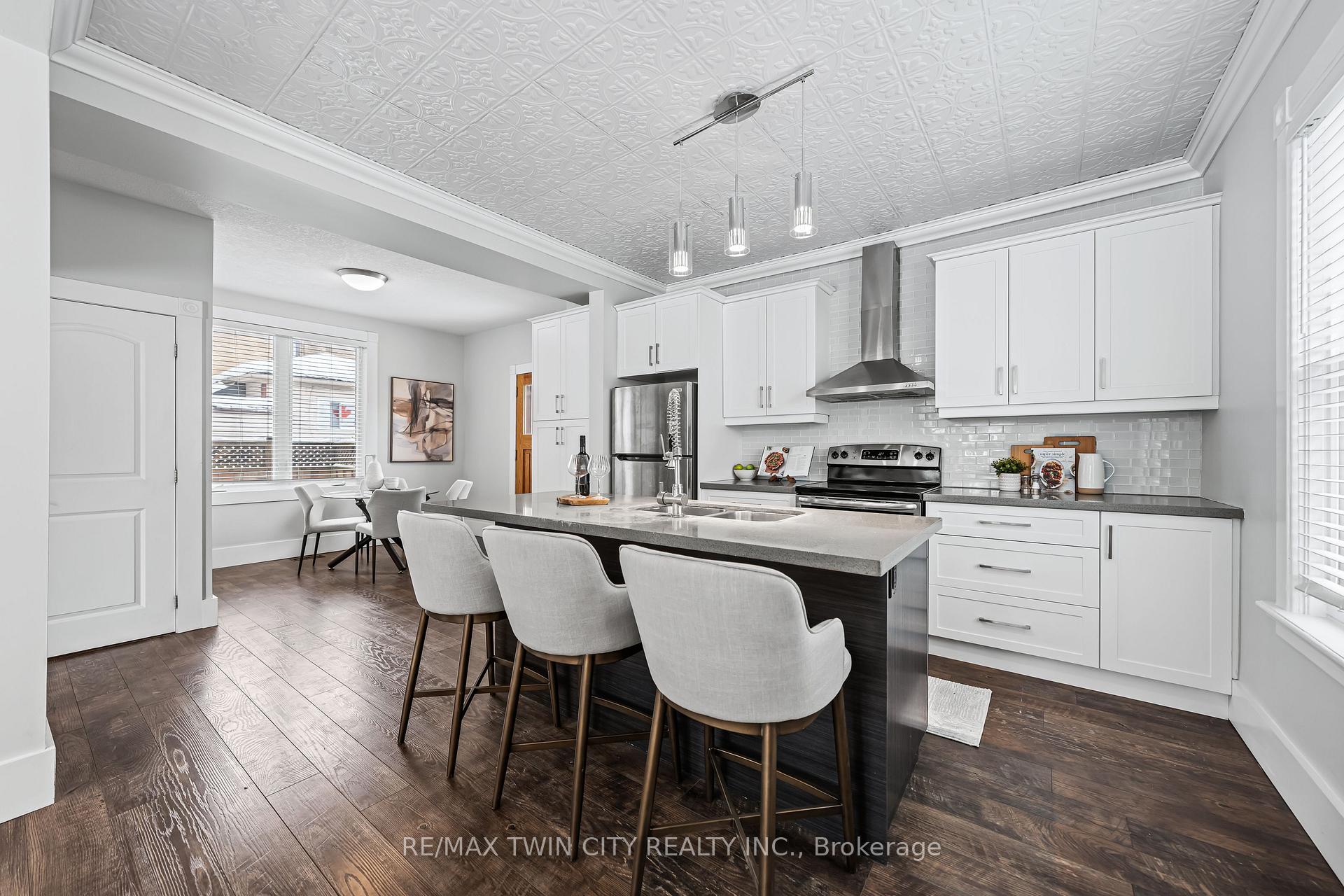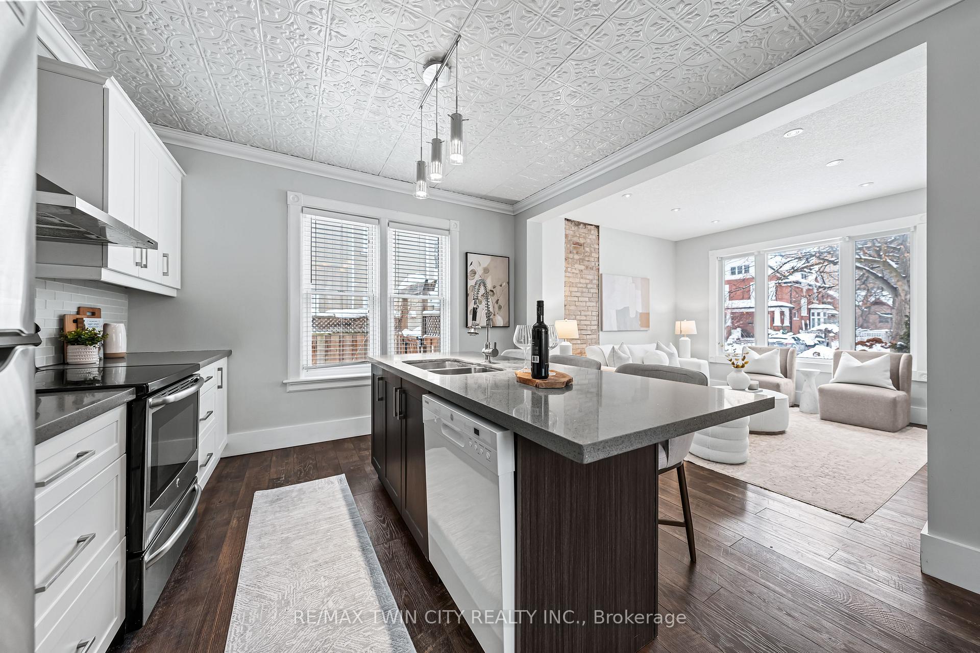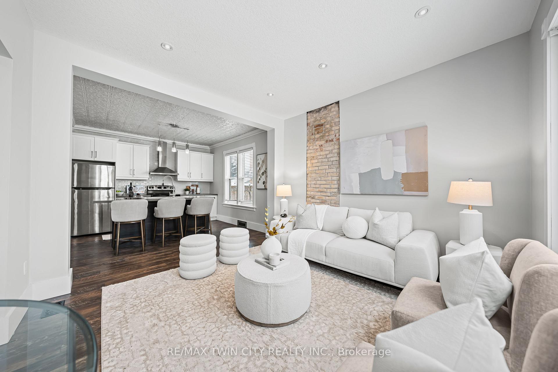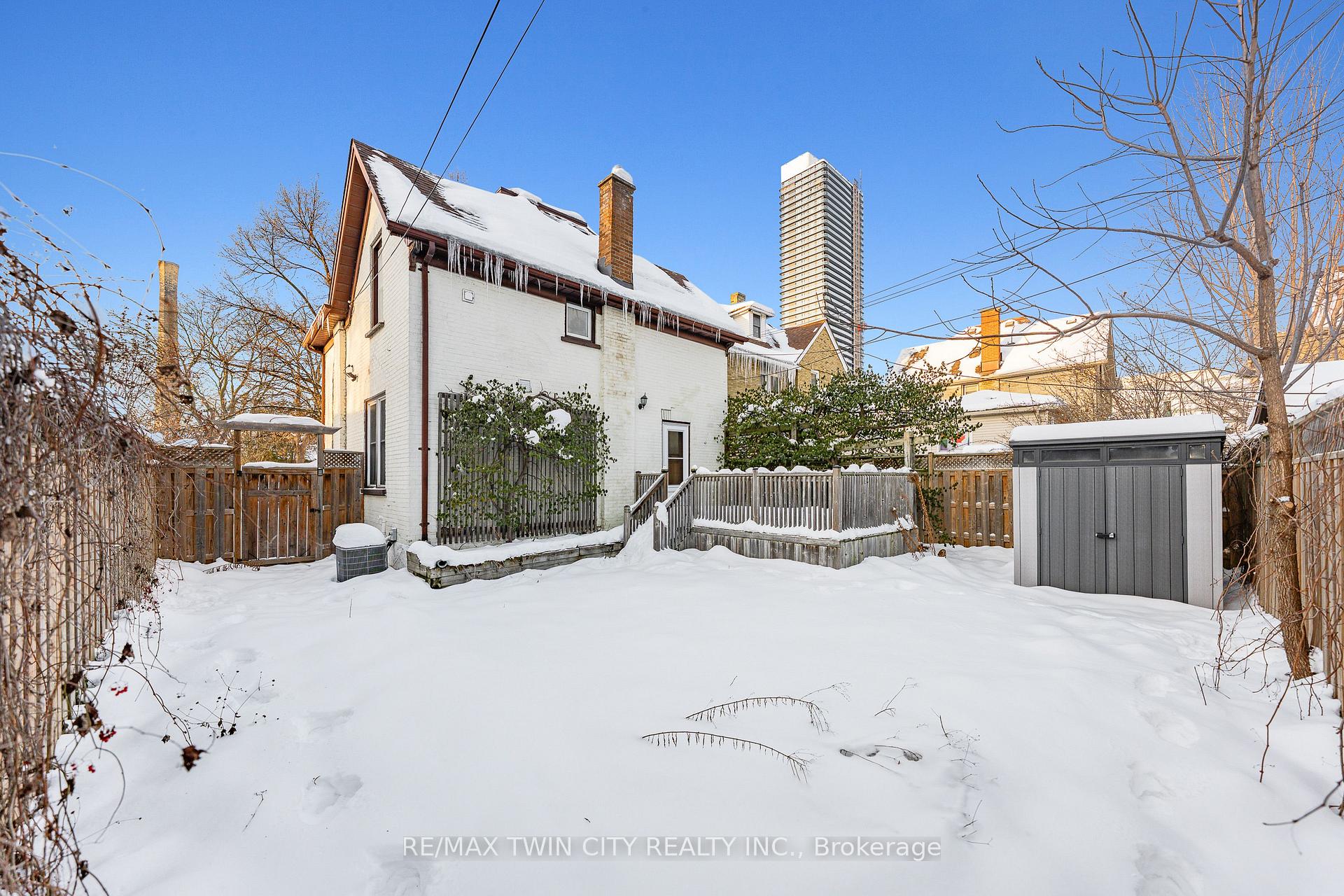 A rare opportunity in Kitchener’s historic Victoria Park neighbourhood-this beautifully restored century home has been fully updated from top to bottom while preserving the charm and character the area is known for. Located in the heart of the Innovation District, this home offers modern finishes, thoughtful design, and an exceptional walkable lifestyle. The open-concept main floor features 9-foot ceilings, laminate flooring throughout, and a bright living room highlighted by an exposed brick feature wall. The updated eat-in kitchen offers quartz countertops, a large centre island, stainless steel appliances, tile backsplash, and a spacious integrated dining area, making it ideal for both everyday living and entertaining. A convenient 2-piece powder room completes the main level. The upper level includes a versatile media nook or home office area, two spacious bedrooms, and a spa-like 4-piece bathroom with a separate soaking tub, tiled glass shower enclosure, and rain shower fixture. The primary bedroom features dual closets, including a walk-in with custom built-ins and a sliding barn door. Outside, the fully fenced backyard offers a large deck and shed, providing functional outdoor space. Additional highlights include 2 parking spaces and SGA-1 zoning, offering added flexibility for future use. Unbeatable location-minutes to the Victoria Park ION LRT Station and Downtown Kitchener. Walk to Victoria Park, Google, The Tannery, University of Waterloo Health Sciences Campus, School of Pharmacy, D2L, Deloitte, restaurants, cafés, shopping, and transit. Close to Grand River Hospital, St. Mary’s Hospital, and the Kitchener GO Station, with easy access to festivals, cultural events, and everything Downtown Kitchener has to offer. A rare blend of historic charm and modern living in one of Kitchener’s most sought-after neighbourhoods. An excellent opportunity to live-in or invest-perfect for owner-occupiers/those seeking a well-located property in the Innovation District.