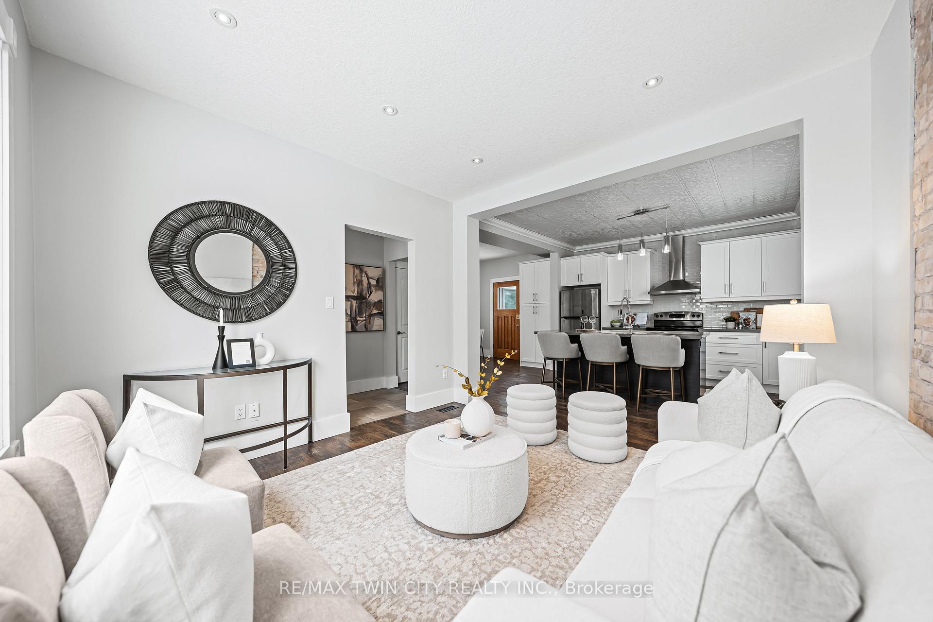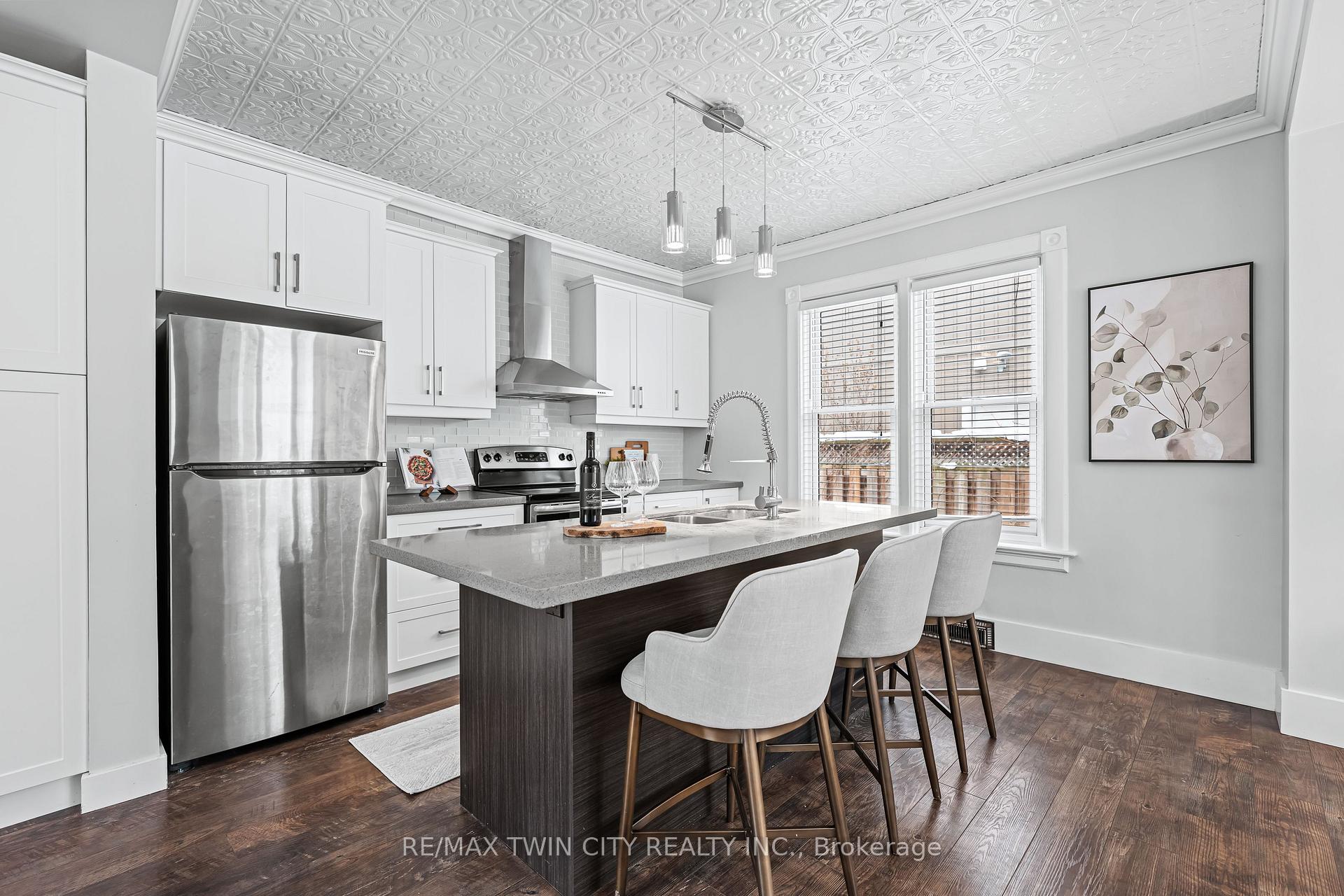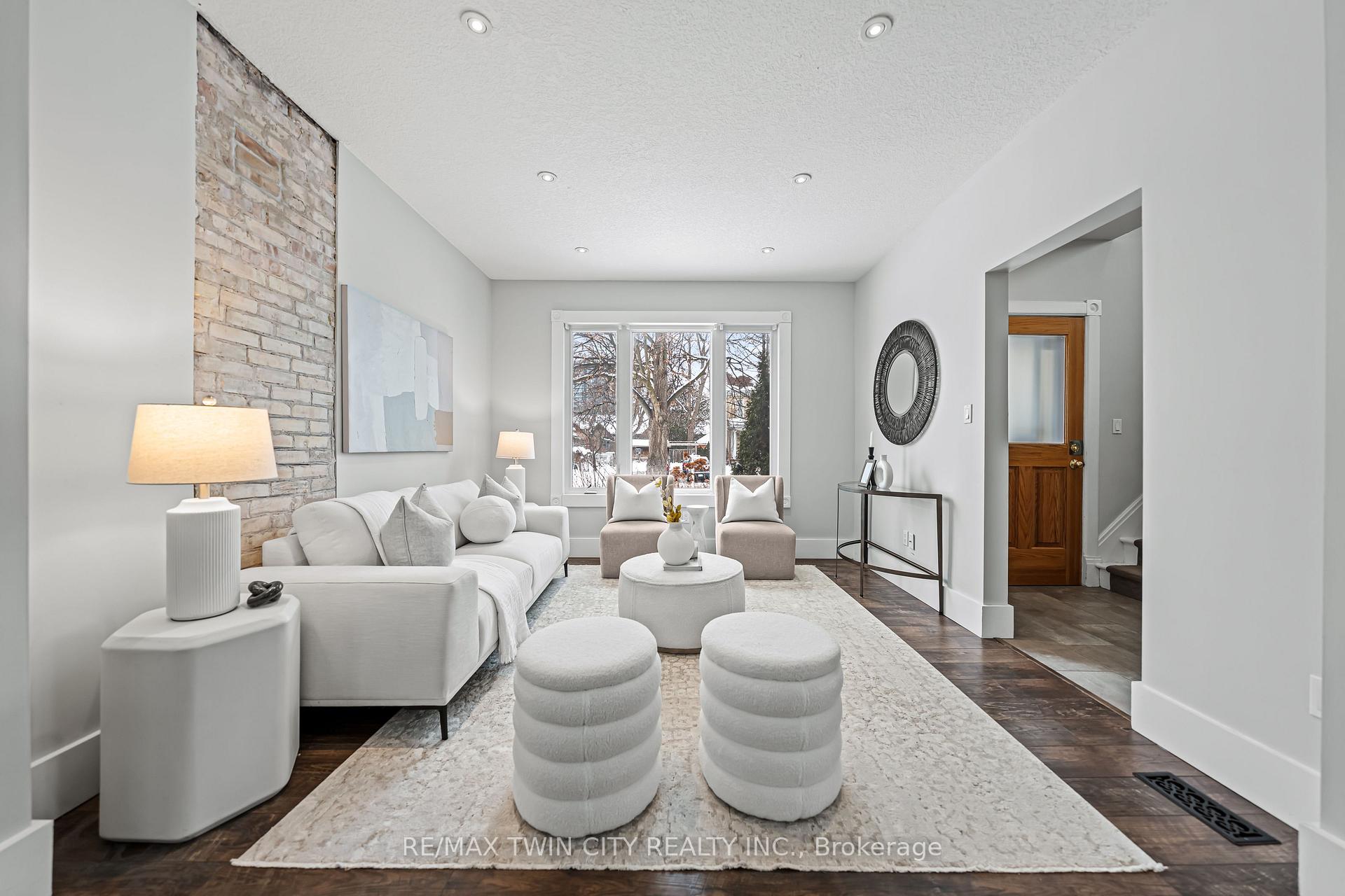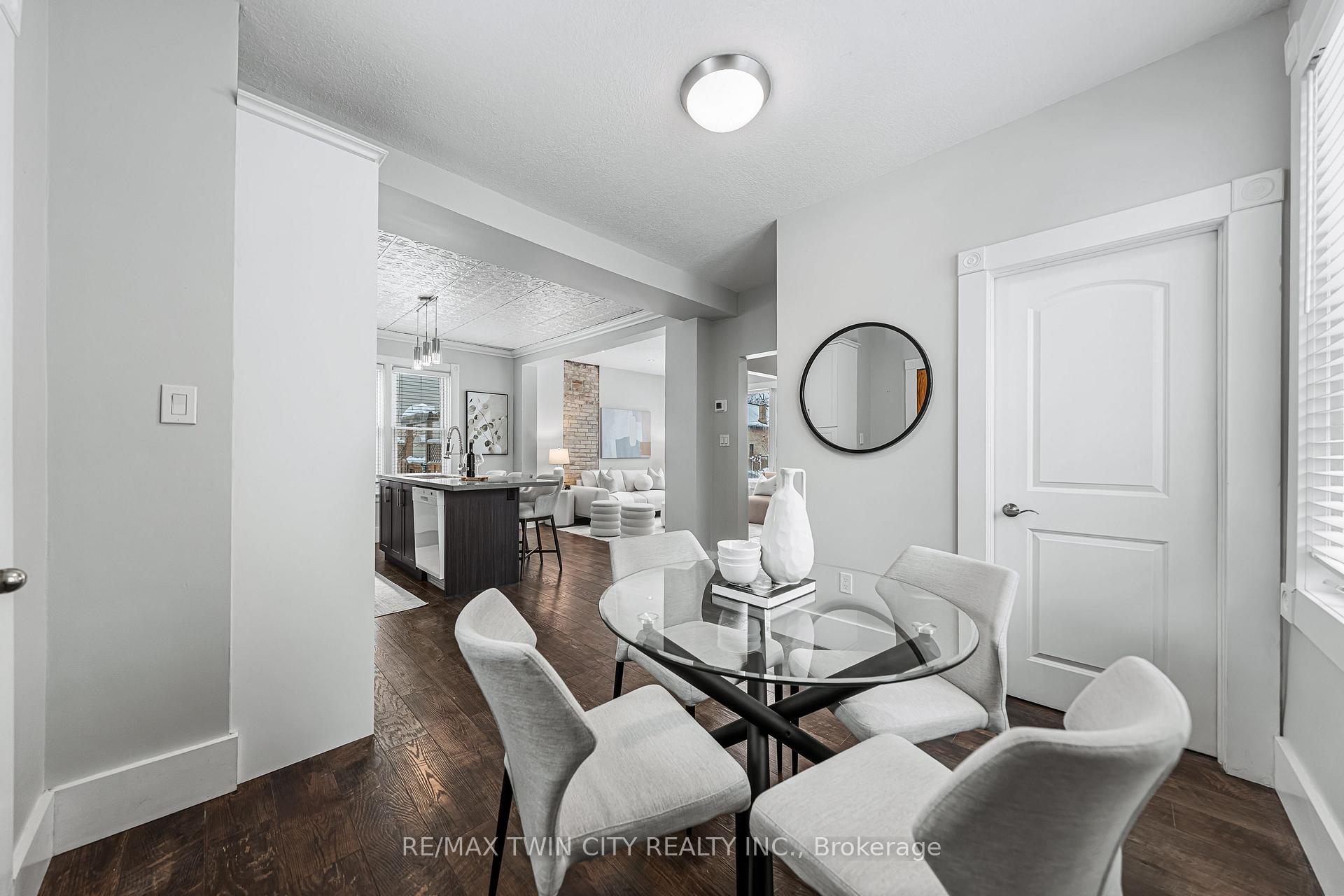 A rare opportunity in Kitchener’s historic Victoria Park neighbourhood-this beautifully restored century home has been fully updated from top to bottom while preserving the charm and character the area is known for. Located in the heart of the Innovation District, this home offers modern finishes, thoughtful design, and an exceptional walkable lifestyle. The open-concept main floor features 9-foot ceilings, laminate flooring throughout, and a bright living room highlighted by an exposed brick feature wall. The updated eat-in kitchen offers quartz countertops, a large centre island, stainless steel appliances, tile backsplash, and a spacious integrated dining area, making it ideal for both everyday living and entertaining. A convenient 2-piece powder room completes the main level. The upper level includes a versatile media nook or home office area, two spacious bedrooms, and a spa-like 4-piece bathroom with a separate soaking tub, tiled glass shower enclosure, and rain shower fixture. The primary bedroom features dual closets, including a walk-in with custom built-ins and a sliding barn door. Outside, the fully fenced backyard offers a large deck and shed, providing functional outdoor space. Additional highlights include 2 parking spaces and SGA-1 zoning, offering added flexibility for future use. Unbeatable location-minutes to the Victoria Park ION LRT Station and Downtown Kitchener. Walk to Victoria Park, Google, The Tannery, University of Waterloo Health Sciences Campus, School of Pharmacy, D2L, Deloitte, restaurants, cafés, shopping, and transit. Close to Grand River Hospital, St. Mary’s Hospital, and the Kitchener GO Station, with easy access to festivals, cultural events, and everything Downtown Kitchener has to offer. A rare blend of historic charm and modern living in one of Kitchener’s most sought-after neighbourhoods. An excellent opportunity to live-in or invest-perfect for owner-occupiers/those seeking a well-located property in the Innovation District.