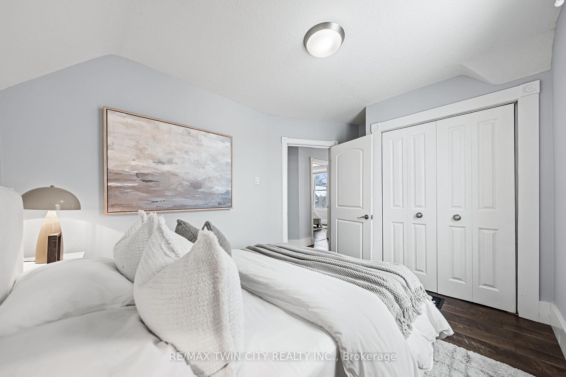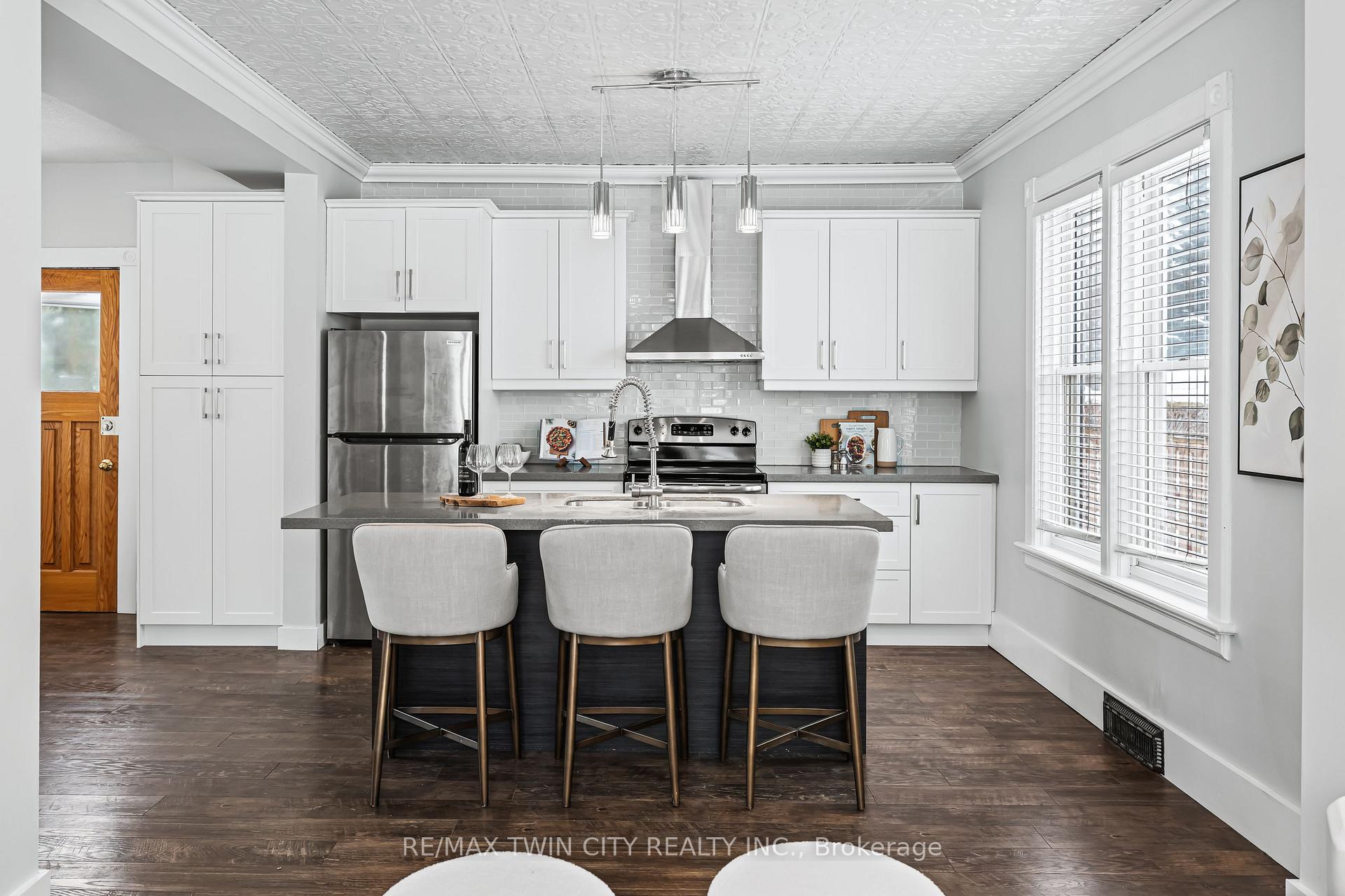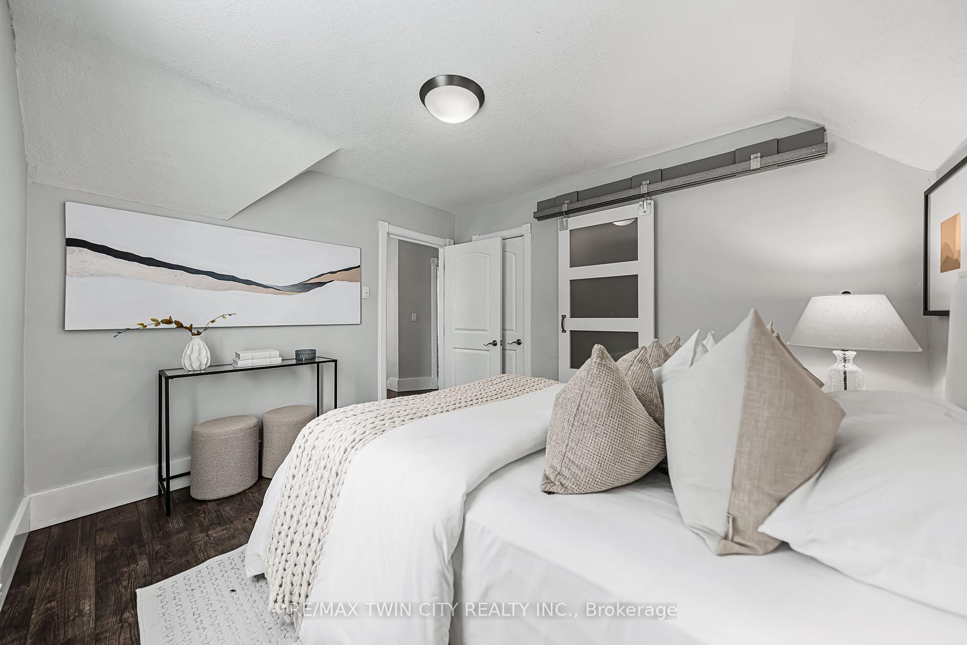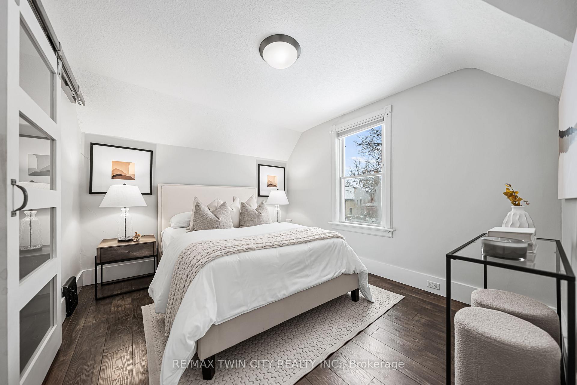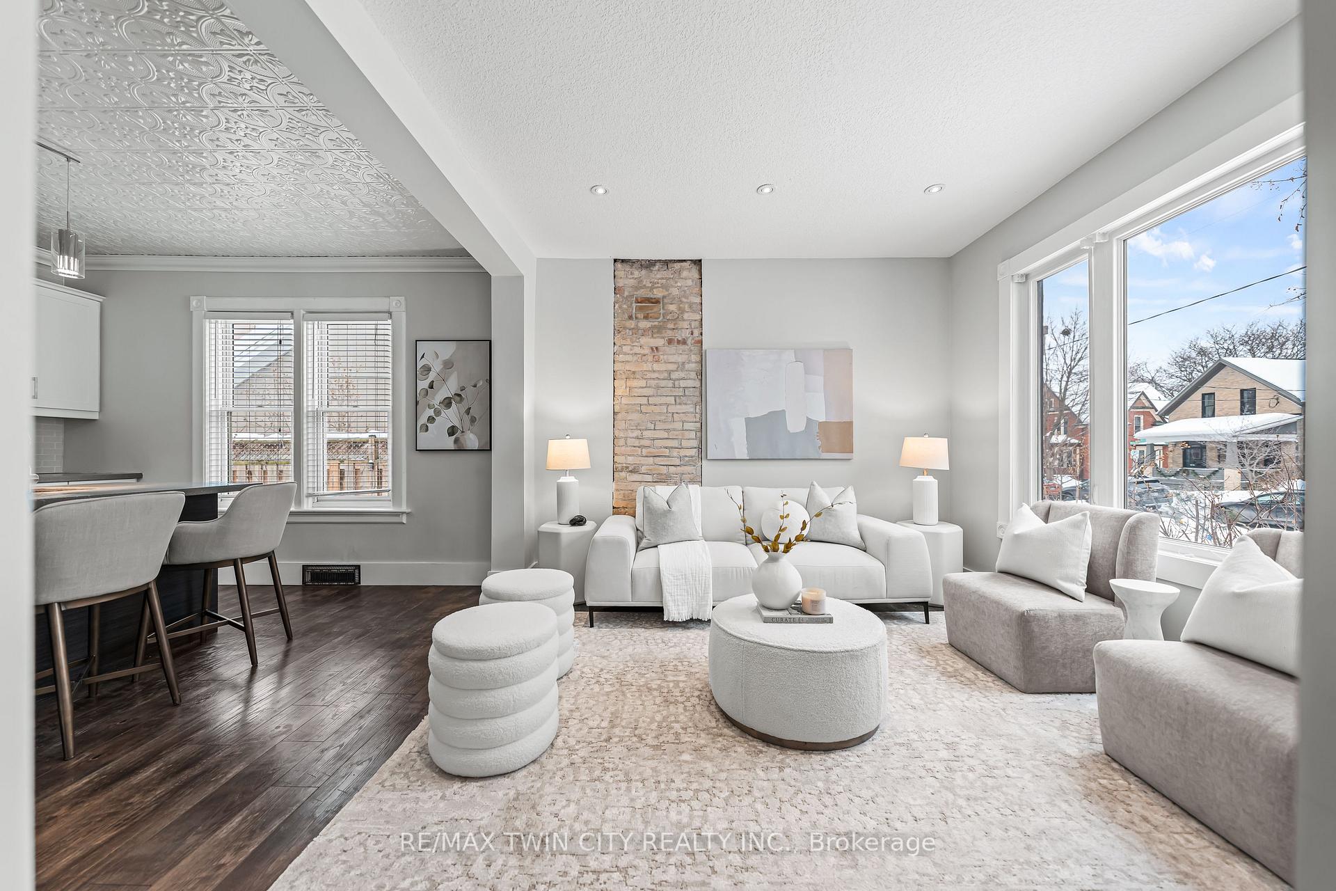 A rare opportunity in Kitchener’s historic Victoria Park neighbourhood-this beautifully restored century home has been fully updated from top to bottom while preserving the charm and character the area is known for. Located in the heart of the Innovation District, this home offers modern finishes, thoughtful design, and an exceptional walkable lifestyle. The open-concept main floor features 9-foot ceilings, laminate flooring throughout, and a bright living room highlighted by an exposed brick feature wall. The updated eat-in kitchen offers quartz countertops, a large centre island, stainless steel appliances, tile backsplash, and a spacious integrated dining area, making it ideal for both everyday living and entertaining. A convenient 2-piece powder room completes the main level. The upper level includes a versatile media nook or home office area, two spacious bedrooms, and a spa-like 4-piece bathroom with a separate soaking tub, tiled glass shower enclosure, and rain shower fixture. The primary bedroom features dual closets, including a walk-in with custom built-ins and a sliding barn door. Outside, the fully fenced backyard offers a large deck and shed, providing functional outdoor space. Additional highlights include 2 parking spaces and SGA-1 zoning, offering added flexibility for future use. Unbeatable location-minutes to the Victoria Park ION LRT Station and Downtown Kitchener. Walk to Victoria Park, Google, The Tannery, University of Waterloo Health Sciences Campus, School of Pharmacy, D2L, Deloitte, restaurants, cafés, shopping, and transit. Close to Grand River Hospital, St. Mary’s Hospital, and the Kitchener GO Station, with easy access to festivals, cultural events, and everything Downtown Kitchener has to offer. A rare blend of historic charm and modern living in one of Kitchener’s most sought-after neighbourhoods. An excellent opportunity to live-in or invest-perfect for owner-occupiers/those seeking a well-located property in the Innovation District.