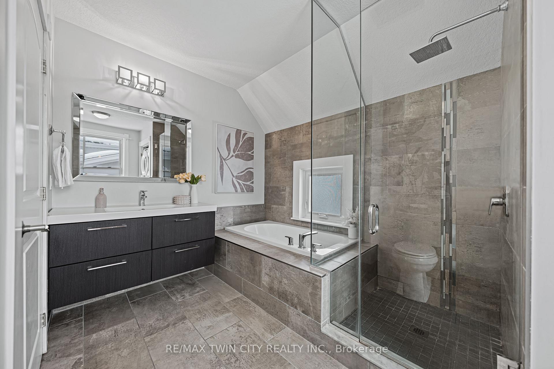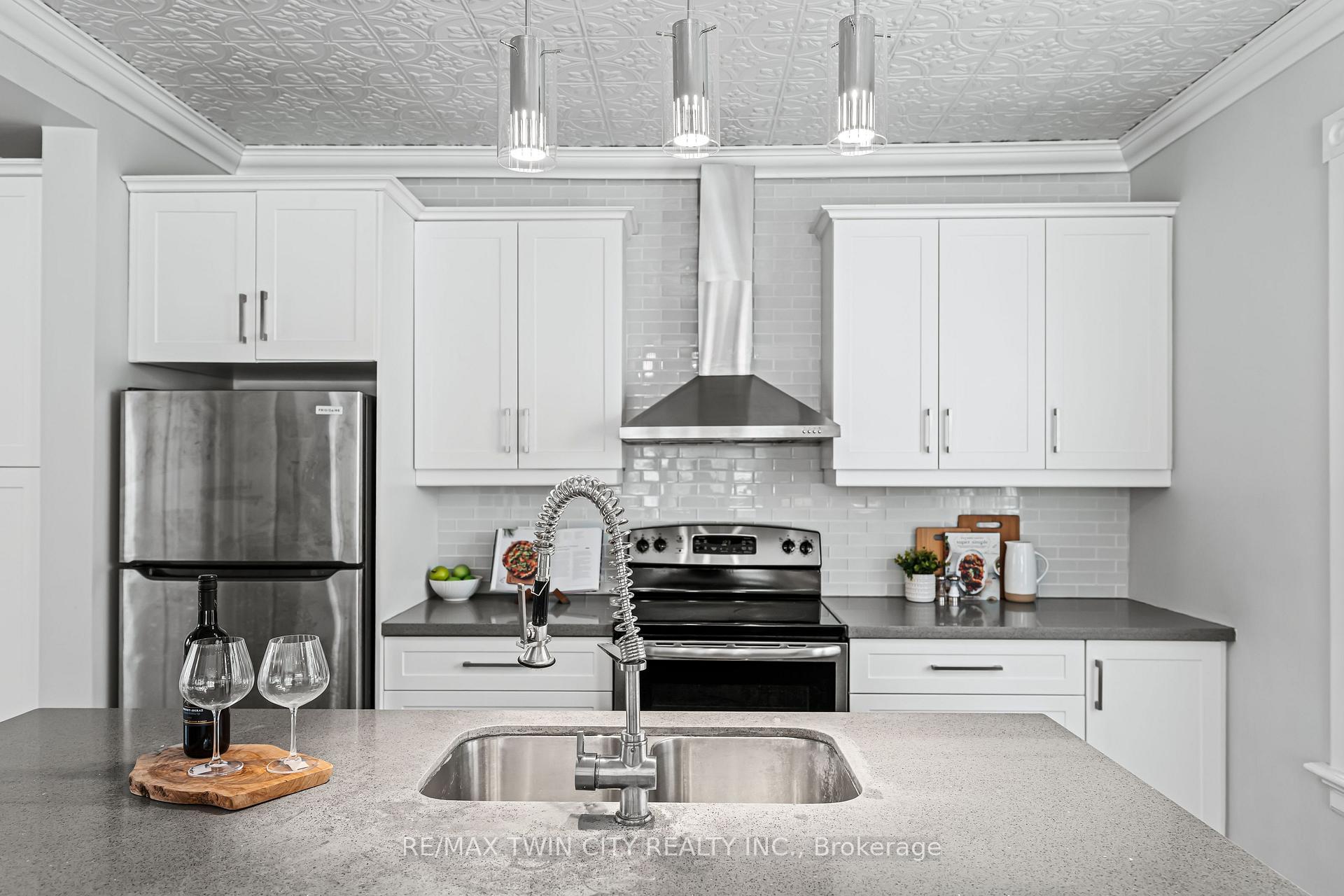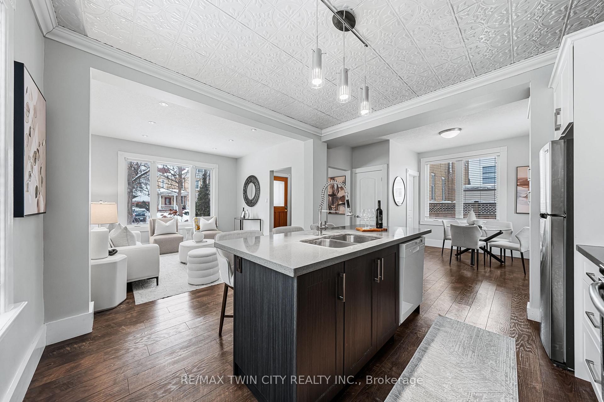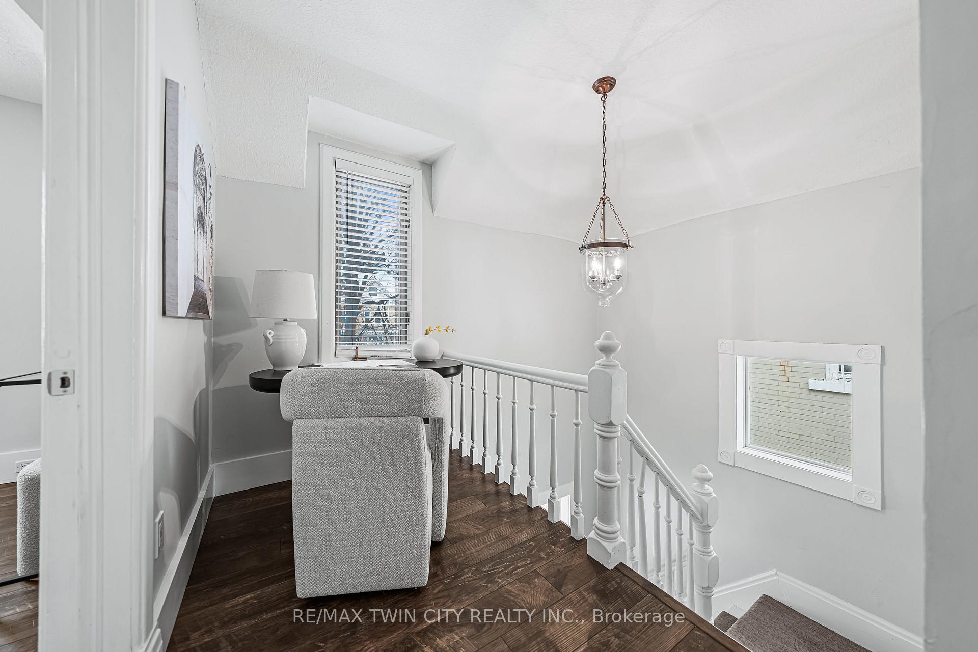 A rare opportunity in Kitchener’s historic Victoria Park neighbourhood-this beautifully restored century home has been fully updated from top to bottom while preserving the charm and character the area is known for. Located in the heart of the Innovation District, this home offers modern finishes, thoughtful design, and an exceptional walkable lifestyle. The open-concept main floor features 9-foot ceilings, laminate flooring throughout, and a bright living room highlighted by an exposed brick feature wall. The updated eat-in kitchen offers quartz countertops, a large centre island, stainless steel appliances, tile backsplash, and a spacious integrated dining area, making it ideal for both everyday living and entertaining. A convenient 2-piece powder room completes the main level. The upper level includes a versatile media nook or home office area, two spacious bedrooms, and a spa-like 4-piece bathroom with a separate soaking tub, tiled glass shower enclosure, and rain shower fixture. The primary bedroom features dual closets, including a walk-in with custom built-ins and a sliding barn door. Outside, the fully fenced backyard offers a large deck and shed, providing functional outdoor space. Additional highlights include 2 parking spaces and SGA-1 zoning, offering added flexibility for future use. Unbeatable location-minutes to the Victoria Park ION LRT Station and Downtown Kitchener. Walk to Victoria Park, Google, The Tannery, University of Waterloo Health Sciences Campus, School of Pharmacy, D2L, Deloitte, restaurants, cafés, shopping, and transit. Close to Grand River Hospital, St. Mary’s Hospital, and the Kitchener GO Station, with easy access to festivals, cultural events, and everything Downtown Kitchener has to offer. A rare blend of historic charm and modern living in one of Kitchener’s most sought-after neighbourhoods. An excellent opportunity to live-in or invest-perfect for owner-occupiers/those seeking a well-located property in the Innovation District.