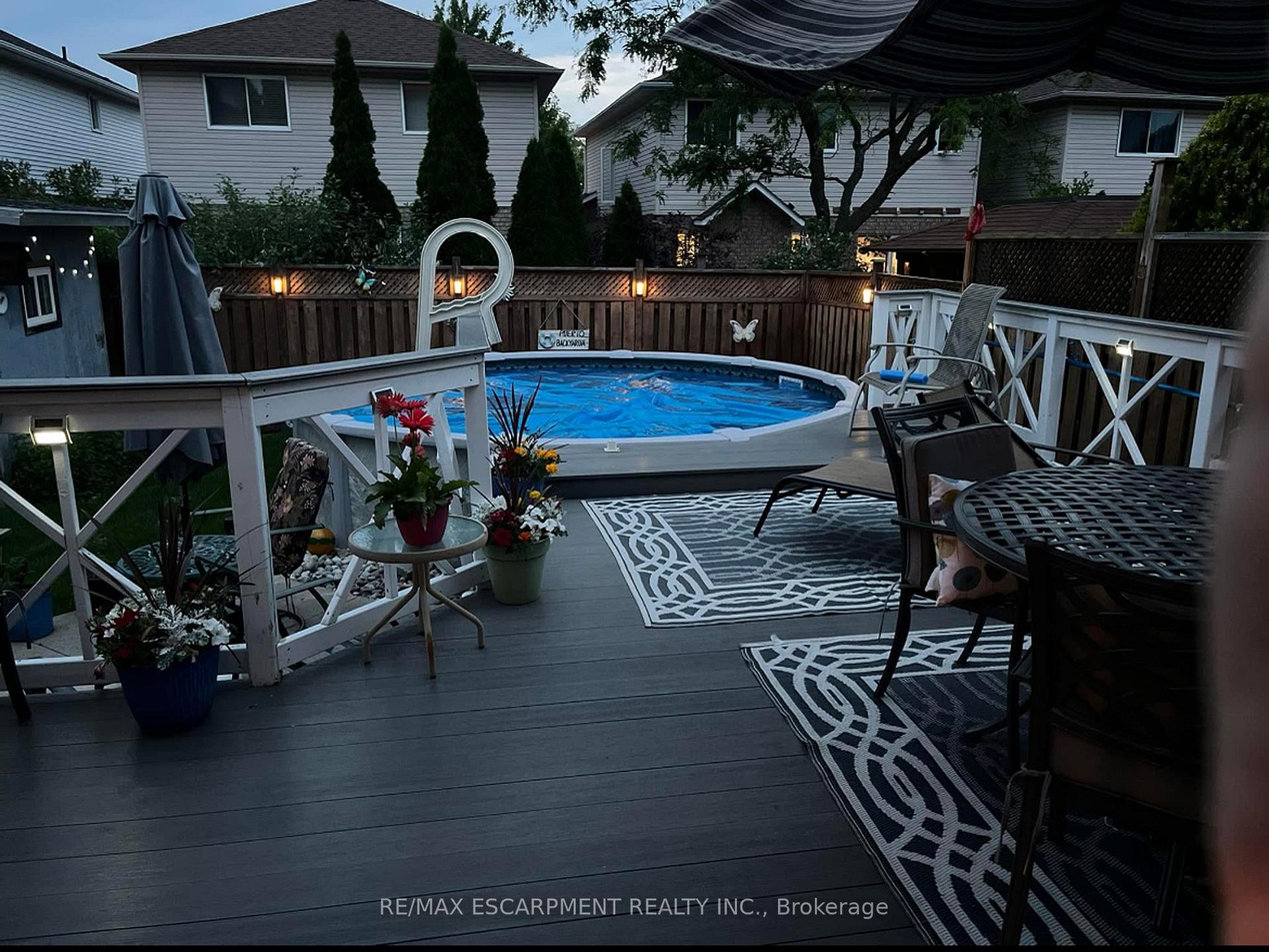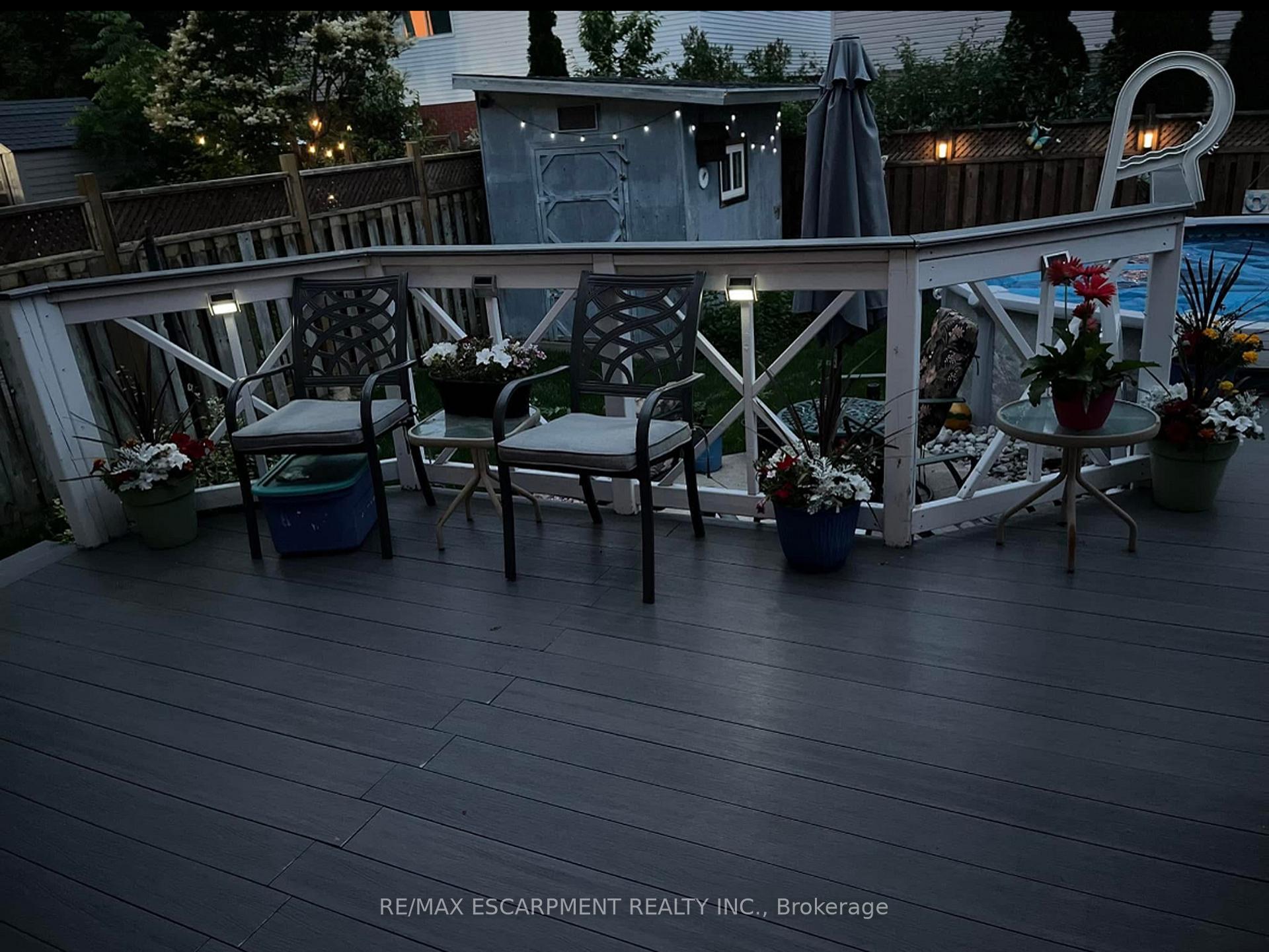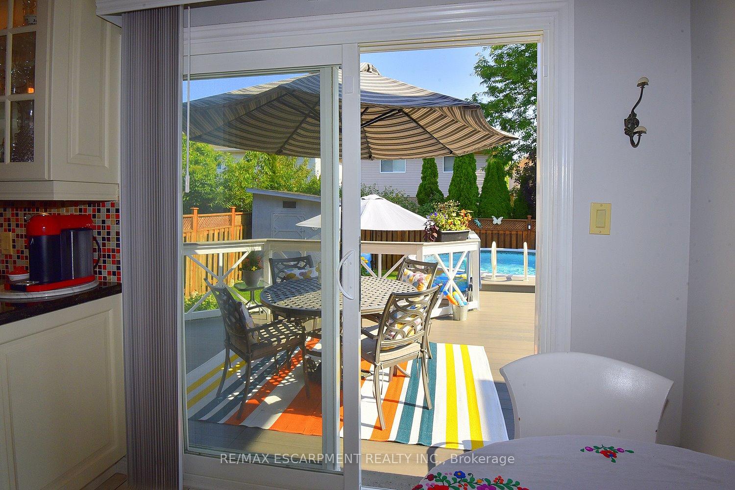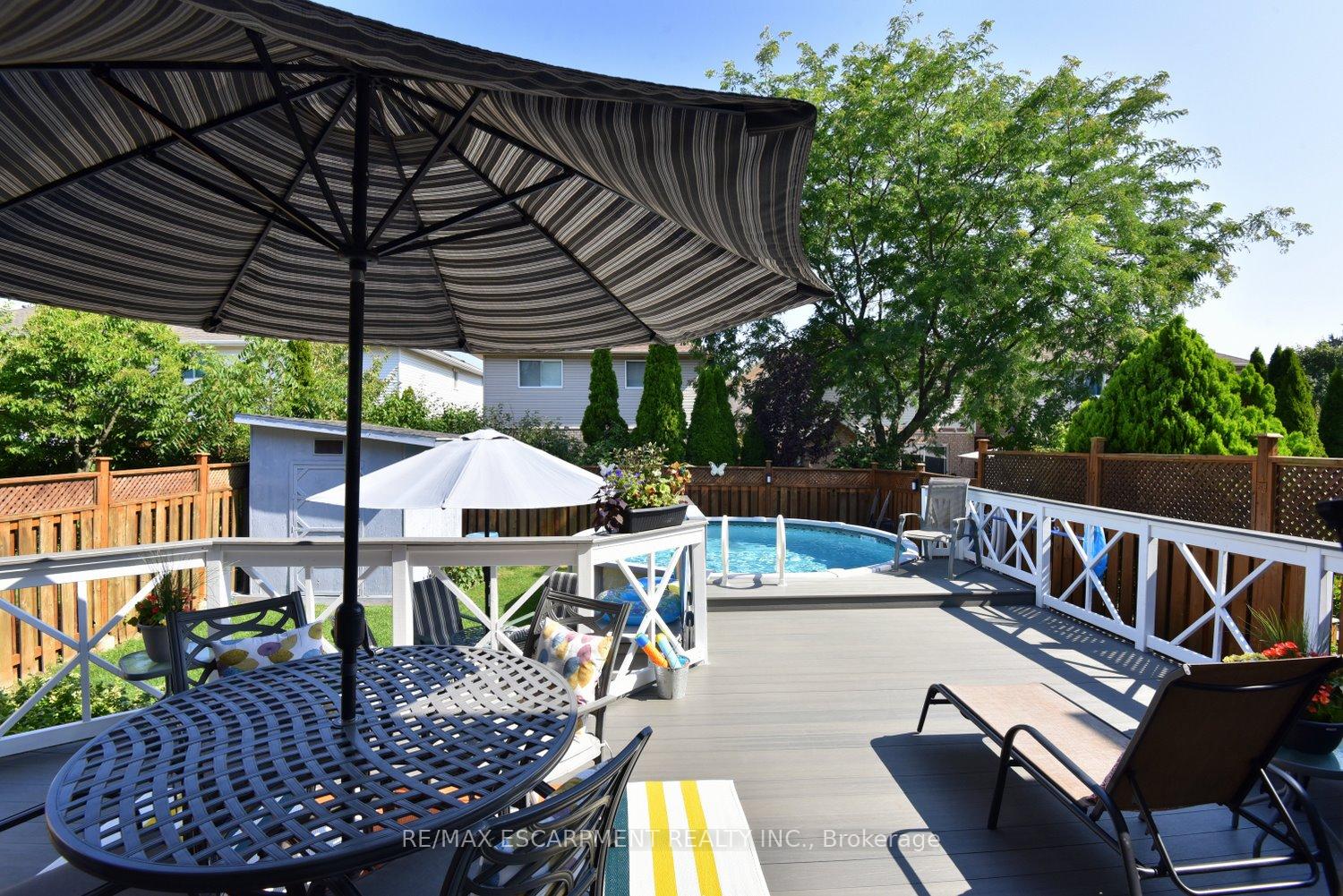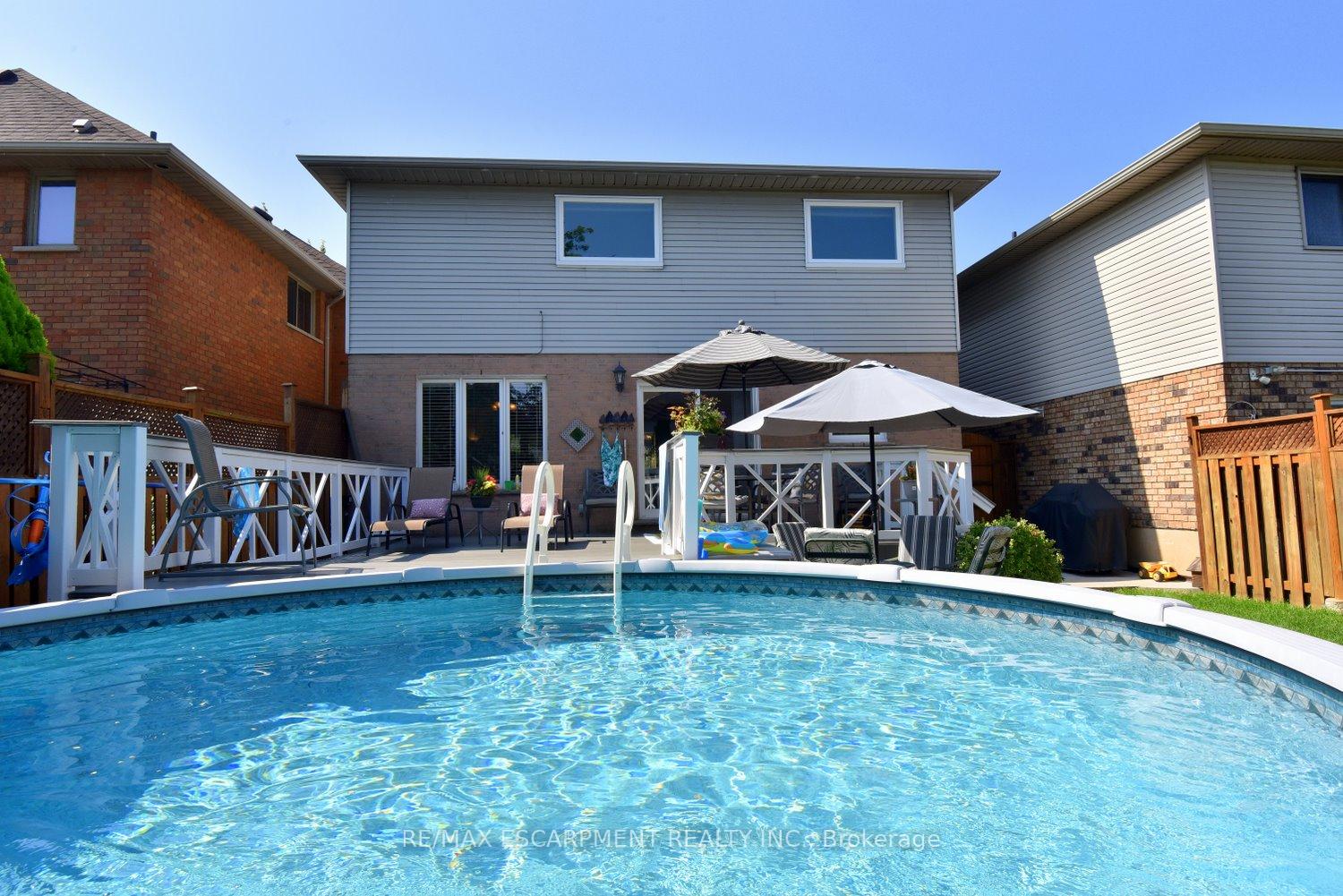 Original owner home in the sought-after Allison neighbourhood, meticulously maintained and upgraded in recent years. The curb appeal features tasteful landscaping, spotless concrete driveway and walkways that lead to the porch or the rear yard oasis with a concrete patio, low maintenance composite deck and the refreshing pool. The perfect recipe for summer entertaining! The heart of the home is the custom chef’s kitchen, completely reconfigured with white cabinetry, granite counters and high-end stainless-steel appliances: Frigidaire Professional double wall ovens and refrigerator, Electrolux 5 burner gas cooktop. Loads of storage thanks to the pantry with pull-out drawers, corner cabinets with lazy susans, pots and pans drawers and a lighted display cabinet. The living and dining rooms both feature hardwood floors and crown moldings while the handy powder room completes the main floor. The wood staircase with painted spindles leads to the bedroom level where the primary suite offers his and hers closets and a renovated ensuite: new vanity with a quartz counter and a glass shower with a rainfall showerhead. The two spacious secondary bedrooms share the 4 piece main bath. The lower level consists of a large rec room with gas fireplace, perfect for entertaining or quiet family evenings. The workshop, laundry/utility room and large cold room offer ample storage or workspace. Updates include the kitchen & furnace 2010, roof shingles 2012, pool & deck 2021 (pool liner 2025), windows (except dining room) and doors 2021-22 , fridge & cooktop 2022-23, concrete driveway 2023, eavestrough leaf guard 2023, ensuite bathroom 2024. Extras include upgraded light fixtures, pot lights, brushed nickel door hardware, window blinds and a large shed. All this in arguable the most convenient Mountain location: steps to parks, library, YMCA and transit, easy drive to Limeridge Mall & Upper James shopping/eateries. This move-in ready home awaits you!