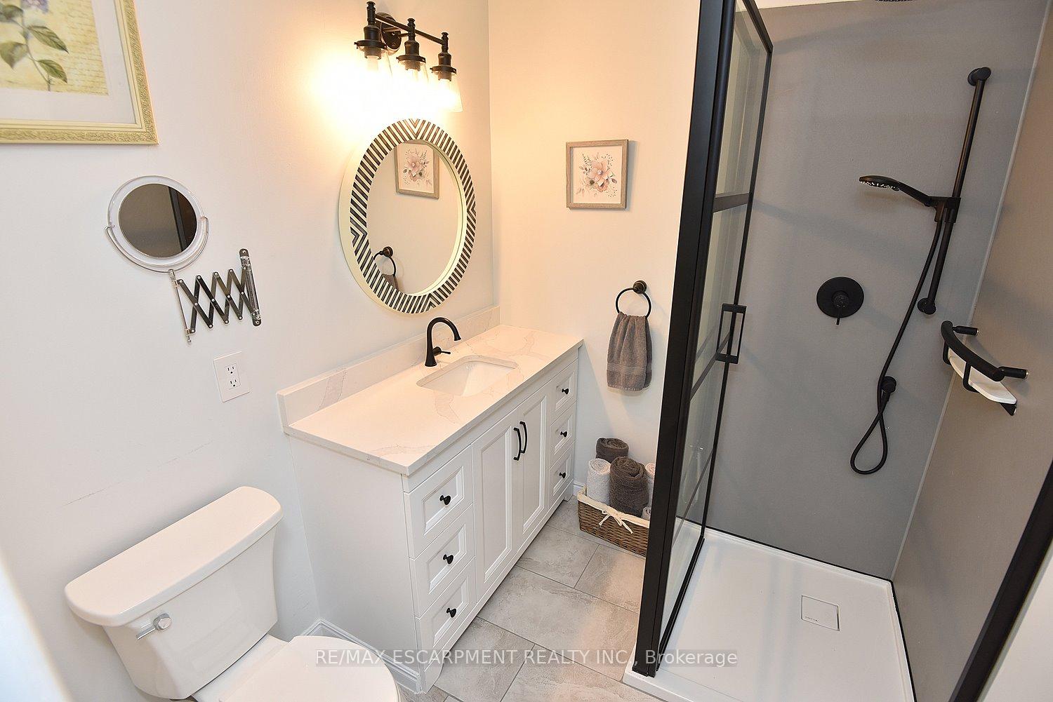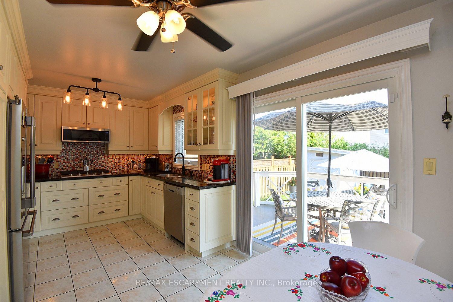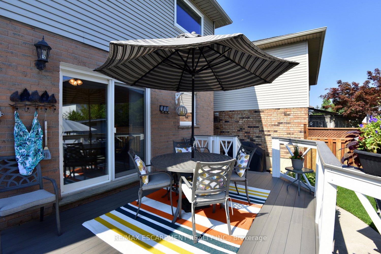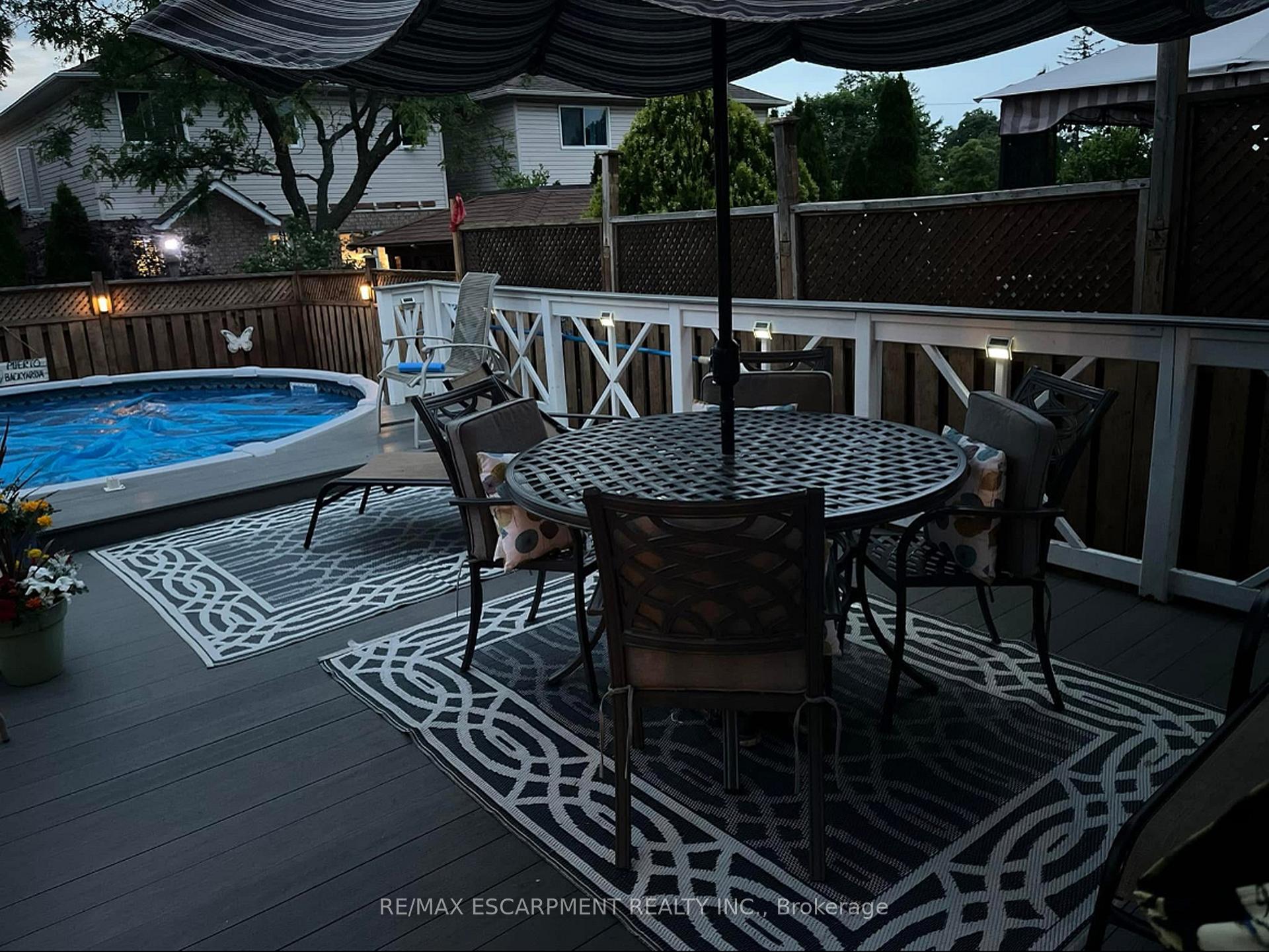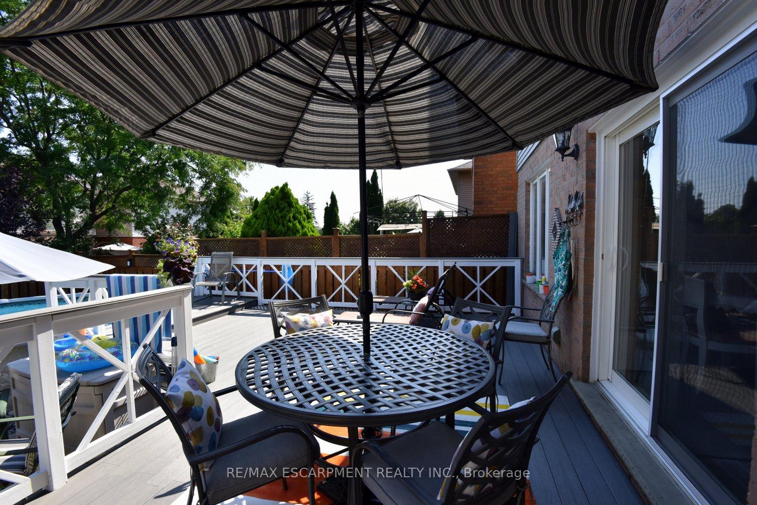 Original owner home in the sought-after Allison neighbourhood, meticulously maintained and upgraded in recent years. The curb appeal features tasteful landscaping, spotless concrete driveway and walkways that lead to the porch or the rear yard oasis with a concrete patio, low maintenance composite deck and the refreshing pool. The perfect recipe for summer entertaining! The heart of the home is the custom chef’s kitchen, completely reconfigured with white cabinetry, granite counters and high-end stainless-steel appliances: Frigidaire Professional double wall ovens and refrigerator, Electrolux 5 burner gas cooktop. Loads of storage thanks to the pantry with pull-out drawers, corner cabinets with lazy susans, pots and pans drawers and a lighted display cabinet. The living and dining rooms both feature hardwood floors and crown moldings while the handy powder room completes the main floor. The wood staircase with painted spindles leads to the bedroom level where the primary suite offers his and hers closets and a renovated ensuite: new vanity with a quartz counter and a glass shower with a rainfall showerhead. The two spacious secondary bedrooms share the 4 piece main bath. The lower level consists of a large rec room with gas fireplace, perfect for entertaining or quiet family evenings. The workshop, laundry/utility room and large cold room offer ample storage or workspace. Updates include the kitchen & furnace 2010, roof shingles 2012, pool & deck 2021 (pool liner 2025), windows (except dining room) and doors 2021-22 , fridge & cooktop 2022-23, concrete driveway 2023, eavestrough leaf guard 2023, ensuite bathroom 2024. Extras include upgraded light fixtures, pot lights, brushed nickel door hardware, window blinds and a large shed. All this in arguable the most convenient Mountain location: steps to parks, library, YMCA and transit, easy drive to Limeridge Mall & Upper James shopping/eateries. This move-in ready home awaits you!
