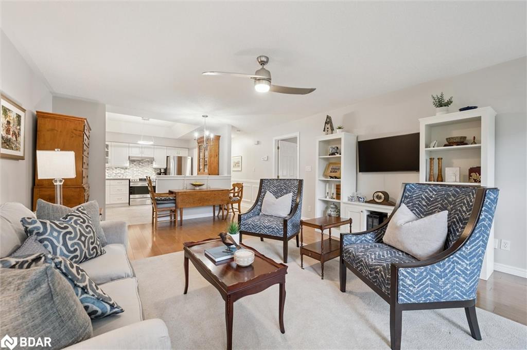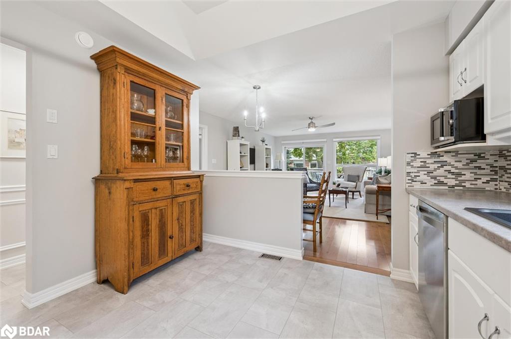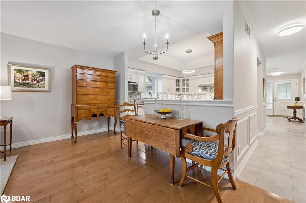 Retire in style and move to the desirable Village by the Arboretum! This bright, meticulous townhome is an end unit with three bedrooms, three baths and attached garage. The spacious foyer, with classic wainscotting and neutral décor, welcomes you to this well-maintained home. A front bedroom has hardwood flooring, a large window and is an ideal office, den or guest room. The main floor two-piece bath is conveniently located for guests and everyday use. The main floor laundry room is equipped with storage and perfectly located near the garage door. The open-concept kitchen has easy care vinyl plank flooring, stainless appliances, modern backsplash with a half wall overlooking spacious living room with hardwood flooring. Sliding doors lead to a quaint deck for warmer weather enjoyment and cooking on the grill. The primary bedroom is spacious with hardwood flooring, walk-in closet and spectacular ensuite bath with two sinks, roll-in shower and plenty of storage in vanity. The open staircase leads to a finished basement area which is perfect for family gatherings and overnight stays with cozy carpet, a bedroom, recreation room and full bath. Plenty of unfinished space for a workshop and storage, too. Living the Village has so much to offer with organized activities and access to gym, indoor pool, pool room, library, crafts, trails and tennis. Conveniently located close to amenities, shopping, transportation and restaurants. This is how retirement is meant to be!
