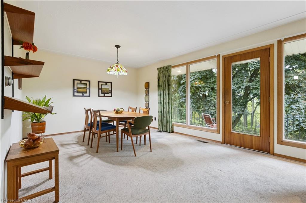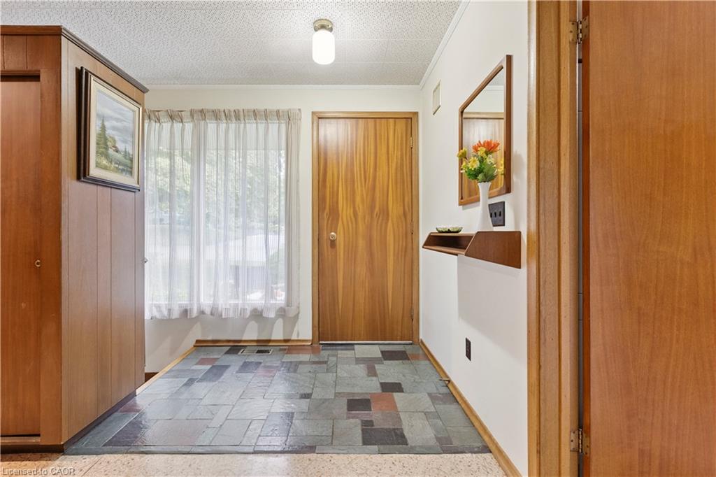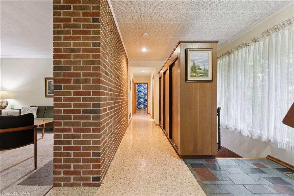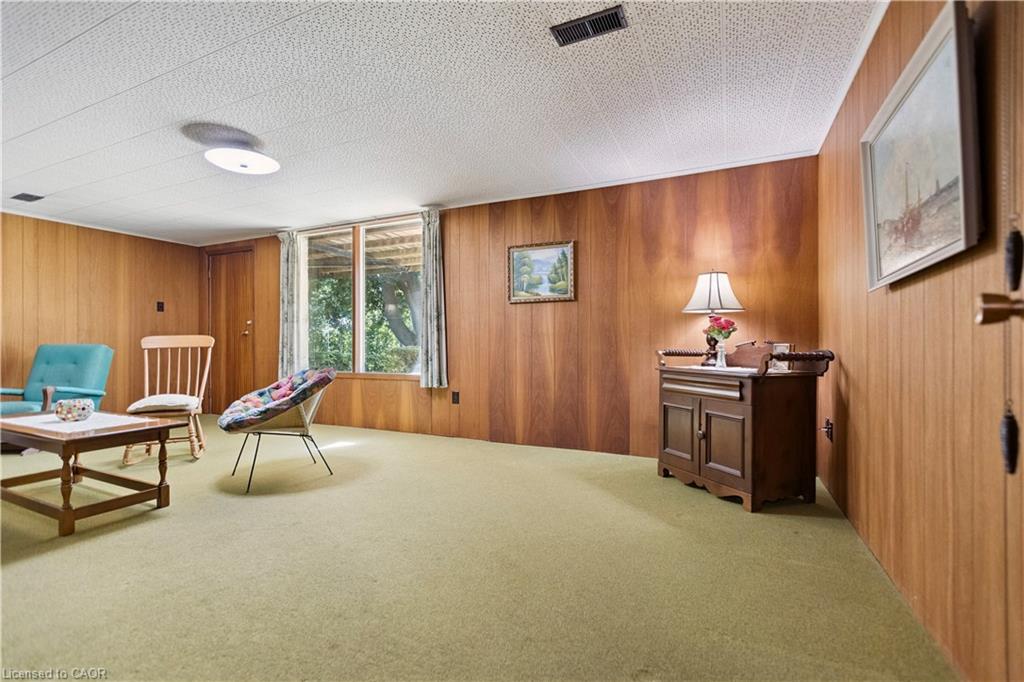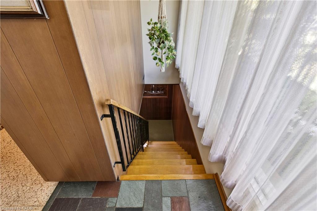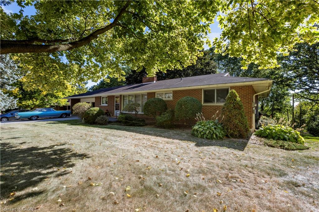 Step back in time to an era much different than today, where mahogany doors and paneling, site-built cabinetry, wood fireplaces, and colorful tiles shaped home design in the 60’s and 70’s. Set behind a beautiful blue spruce and a bright Norway maple, this gem of a home is a 3 bedroom ranch built in 1961, for the parents of the current owner. With this family’s gentle care, and vintage décor and original features preserved, it is like stepping into a time capsule! A large open concept living and dining room beckons family and friends to relax and visit, and the fireplace wall with its floor to ceiling brick makes a statement when you enter the room. Open the glass and mahogany door to the balcony for those at your gatherings to step out for a breath of fresh air. Slate floors in the foyer and expansive closets lead to 3 generous bedrooms, complete with immaculate hardwood floors and mahogany closet doors. Enjoy the original powder blue tile and vanity of the main bathroom, giving a 60’s vibe. A beautiful open riser, oak staircase (that feels as solid as the day it was built), leads you to the Rec Room, a family favourite! Large picture windows and a basement walk-out to the backyard are welcome features that just aren’t found with most new homes nowadays. Light a fire, and snuggle up on the couch to read a book. Off the hallway, you’ll find a 3 pc bathroom, large laundry room, and a workshop (can you picture puttering in here to fix a broken treasure?). At the opposite end, you’ll find the utility room with newer gas furnace and electric water heater (2023) abutting another large room, ideal for storage or space to exercise your crafting skills. Whether you stroll outside through the living/dining room door or through the basement walk-out, the backyard invites you to come enjoy its splendor! Mature oak, maple, & spruce trees provide shade, and beg to be climbed. This is truly a foundation you can build special memories on!