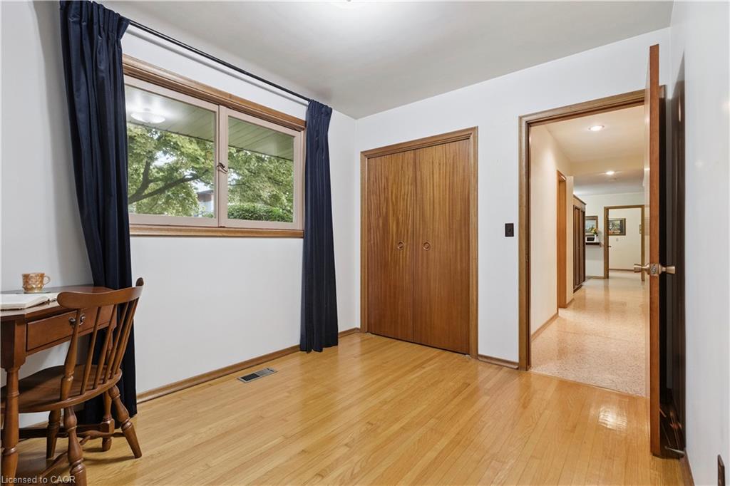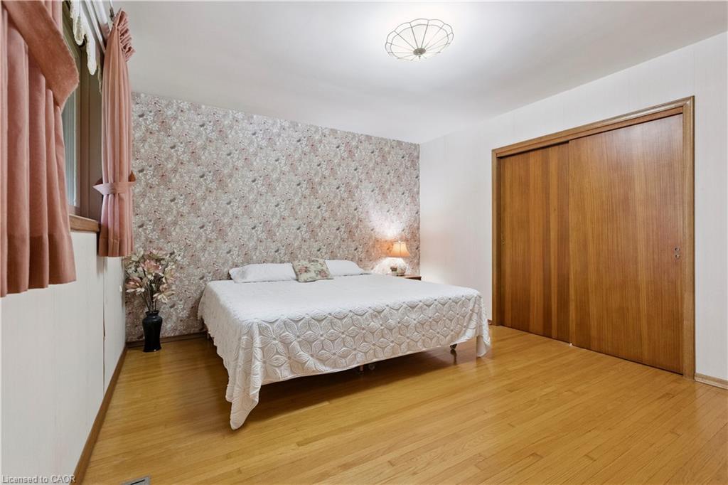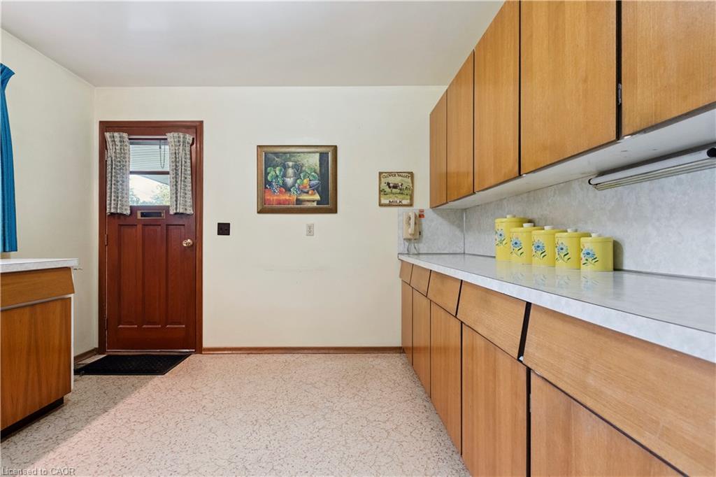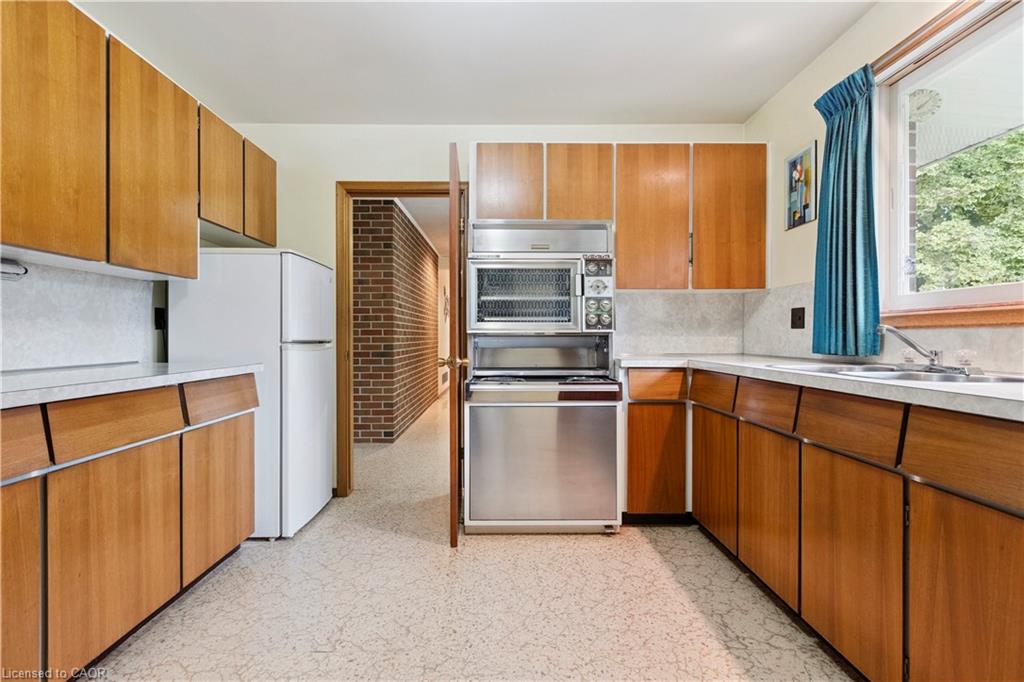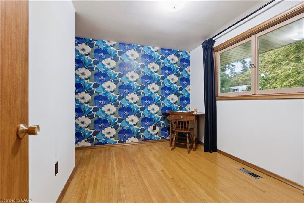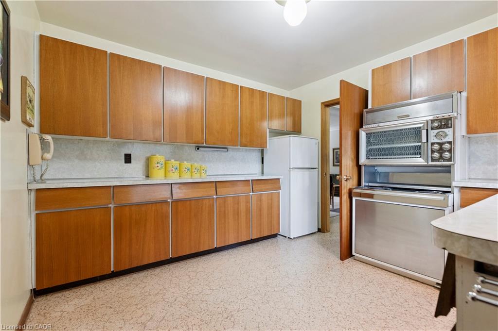 Step back in time to an era much different than today, where mahogany doors and paneling, site-built cabinetry, wood fireplaces, and colorful tiles shaped home design in the 60’s and 70’s. Set behind a beautiful blue spruce and a bright Norway maple, this gem of a home is a 3 bedroom ranch built in 1961, for the parents of the current owner. With this family’s gentle care, and vintage décor and original features preserved, it is like stepping into a time capsule! A large open concept living and dining room beckons family and friends to relax and visit, and the fireplace wall with its floor to ceiling brick makes a statement when you enter the room. Open the glass and mahogany door to the balcony for those at your gatherings to step out for a breath of fresh air. Slate floors in the foyer and expansive closets lead to 3 generous bedrooms, complete with immaculate hardwood floors and mahogany closet doors. Enjoy the original powder blue tile and vanity of the main bathroom, giving a 60’s vibe. A beautiful open riser, oak staircase (that feels as solid as the day it was built), leads you to the Rec Room, a family favourite! Large picture windows and a basement walk-out to the backyard are welcome features that just aren’t found with most new homes nowadays. Light a fire, and snuggle up on the couch to read a book. Off the hallway, you’ll find a 3 pc bathroom, large laundry room, and a workshop (can you picture puttering in here to fix a broken treasure?). At the opposite end, you’ll find the utility room with newer gas furnace and electric water heater (2023) abutting another large room, ideal for storage or space to exercise your crafting skills. Whether you stroll outside through the living/dining room door or through the basement walk-out, the backyard invites you to come enjoy its splendor! Mature oak, maple, & spruce trees provide shade, and beg to be climbed. This is truly a foundation you can build special memories on!