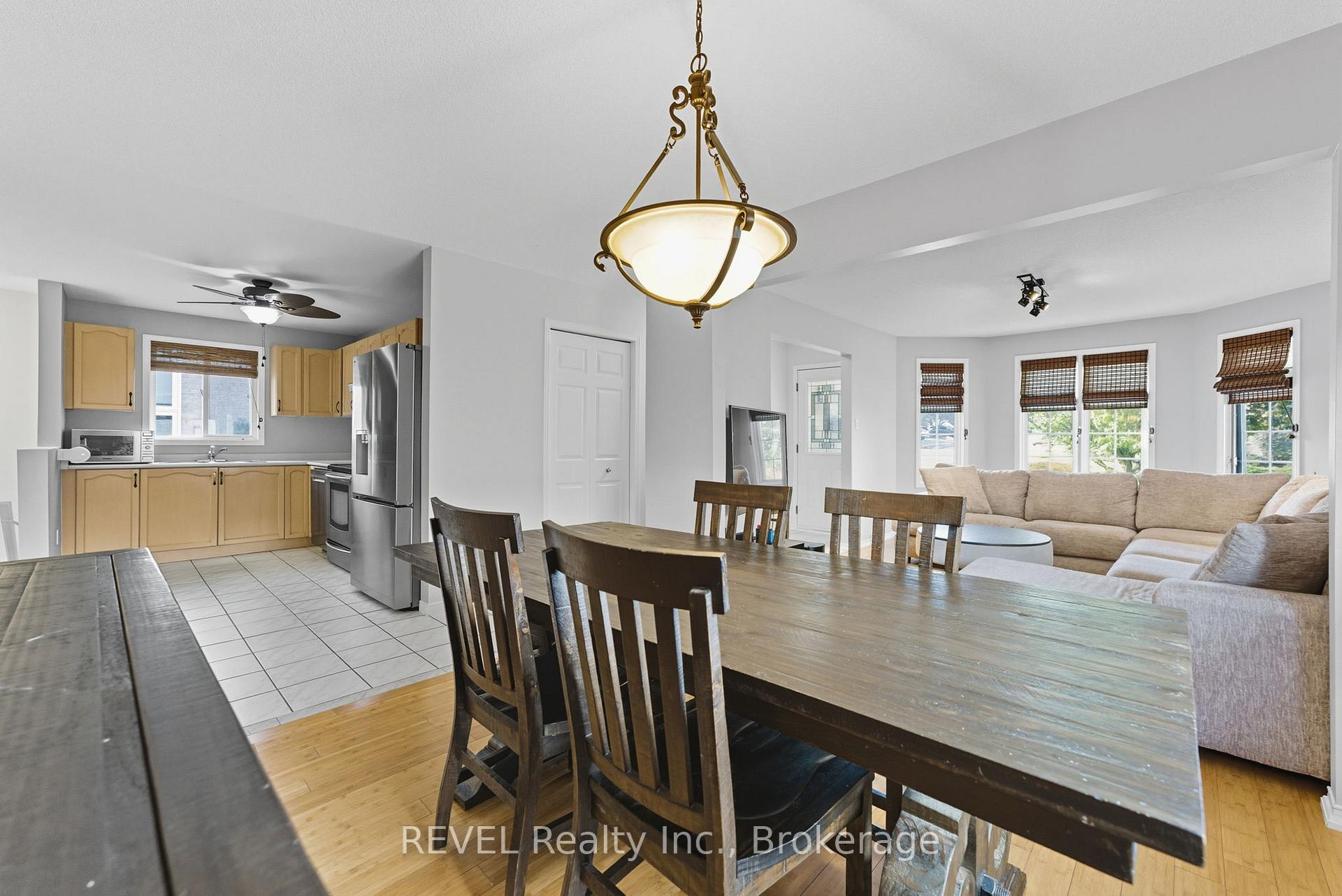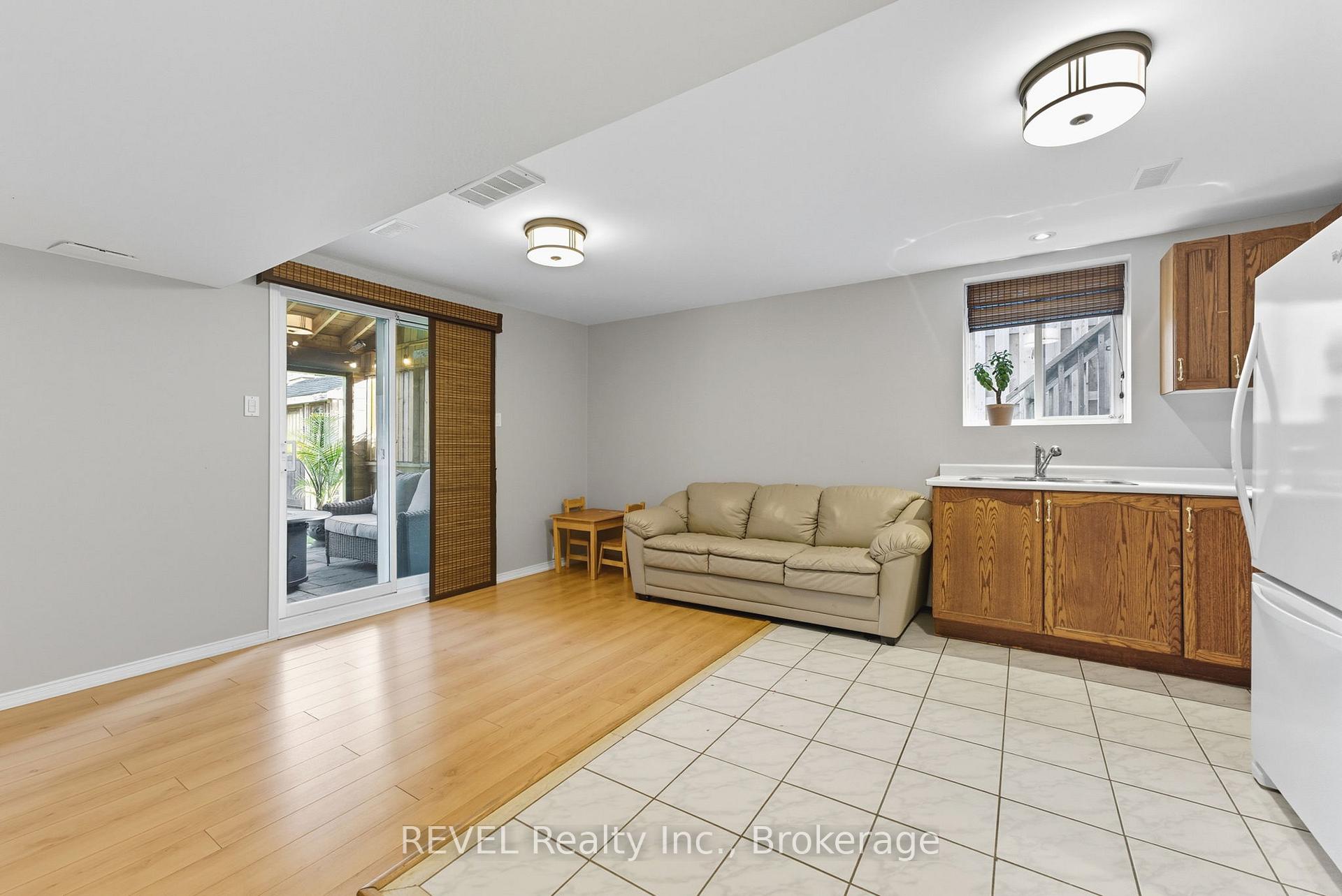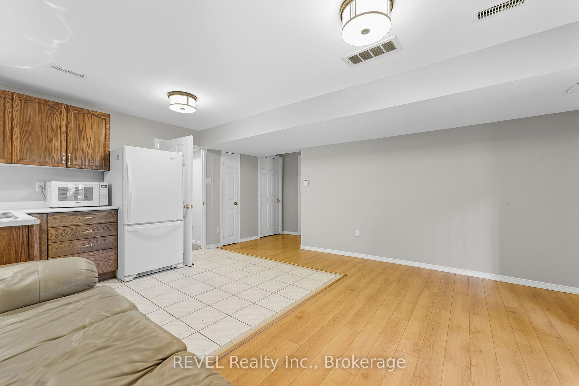 Welcome to this updated brick raised bungalow in Hamilton, perfectly situated close to shopping, restaurants, schools, and all amenities. Designed with comfort and functionality in mind, this home offers a versatile layout ideal for families or multi-generational living.The main floor features an open-concept living room, dining area, and kitchen with stainless steel appliances, an inviting space for everyday living and entertaining. Three spacious bedrooms and a 4-piece bathroom complete the main level, offering both convenience and style.The fully finished walk-out basement adds incredible flexibility with two additional bedrooms, a kitchenette, and patio doors that open to a covered wood deck with hot tub perfect for relaxing or hosting on warm evenings. With a separate entrance, this level can serve as a rental opportunity or an in-law suite.Additional highlights include a 1.5-car garage with concrete driveway, fresh paint, updated lighting, newer AC, and newly landscaped grounds with mature trees that enhance the outdoor appeal.Move-in ready and thoughtfully upgraded, this home delivers modern living with endless possibilities.