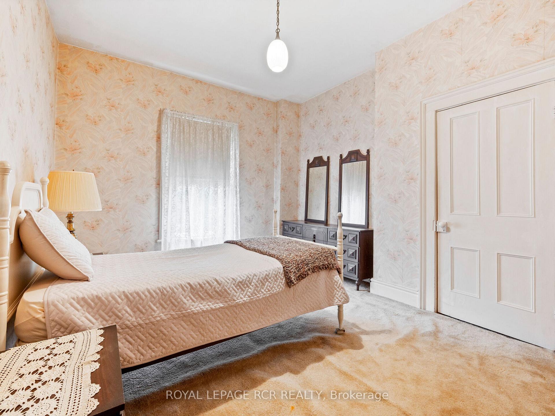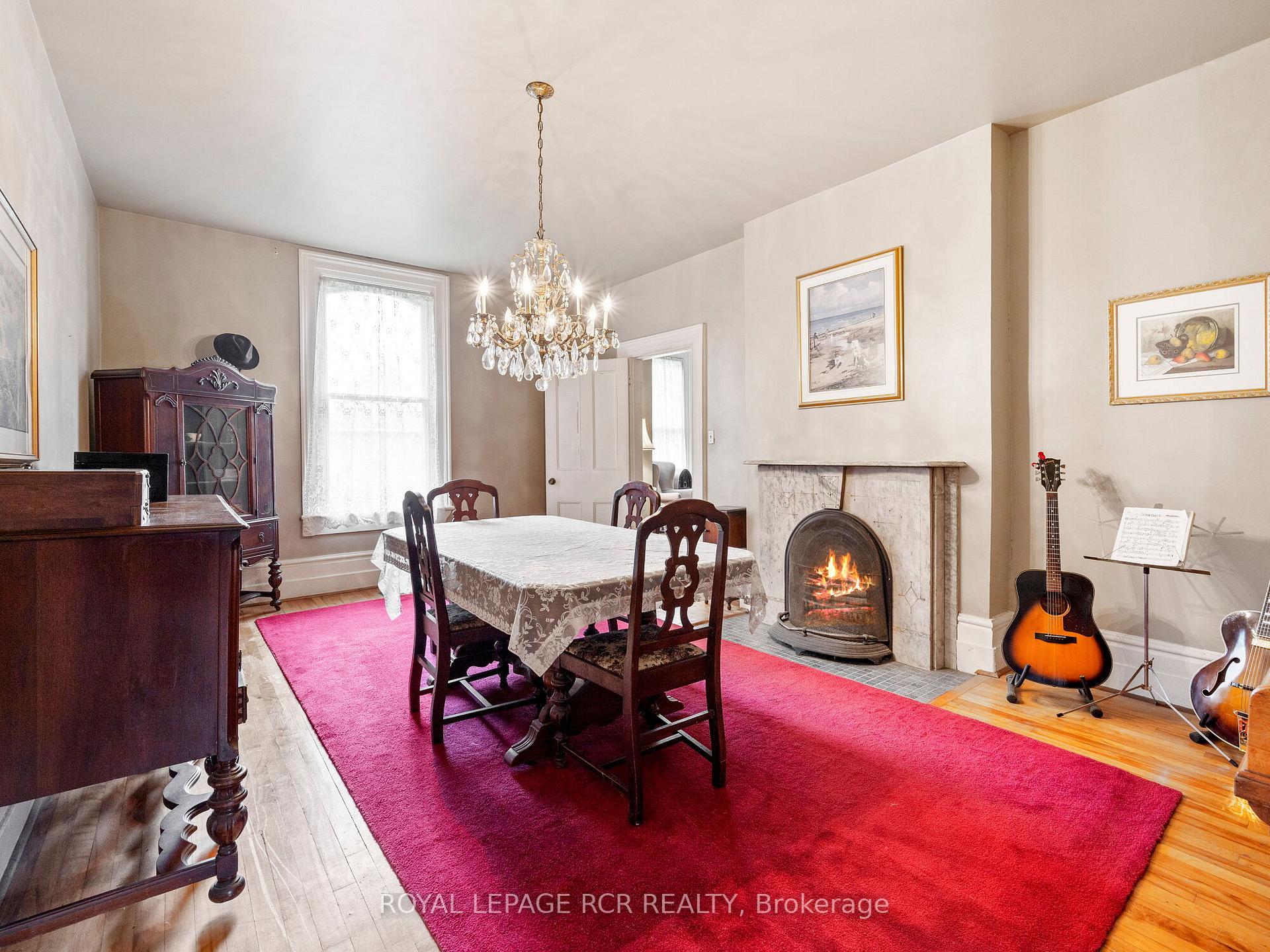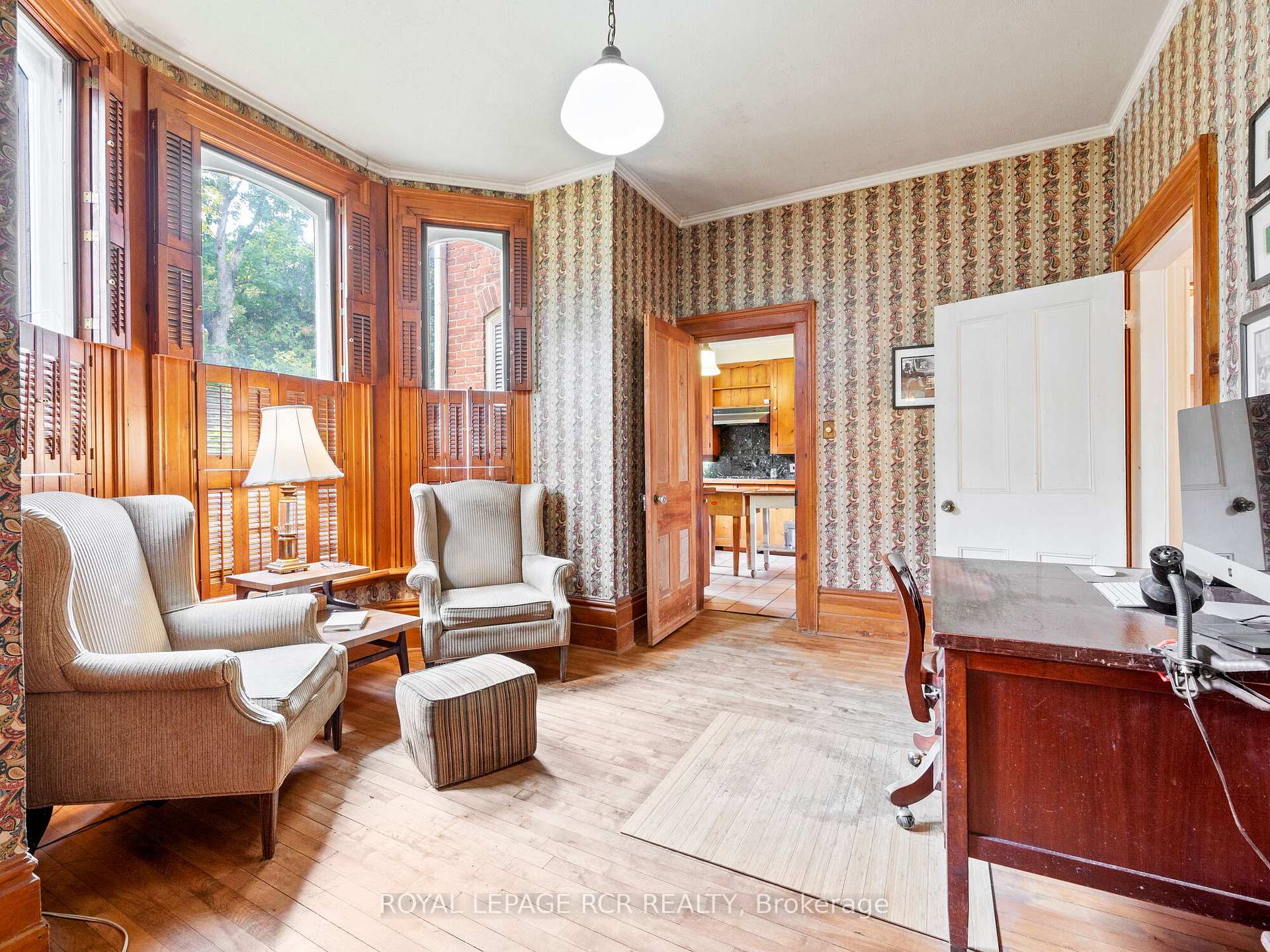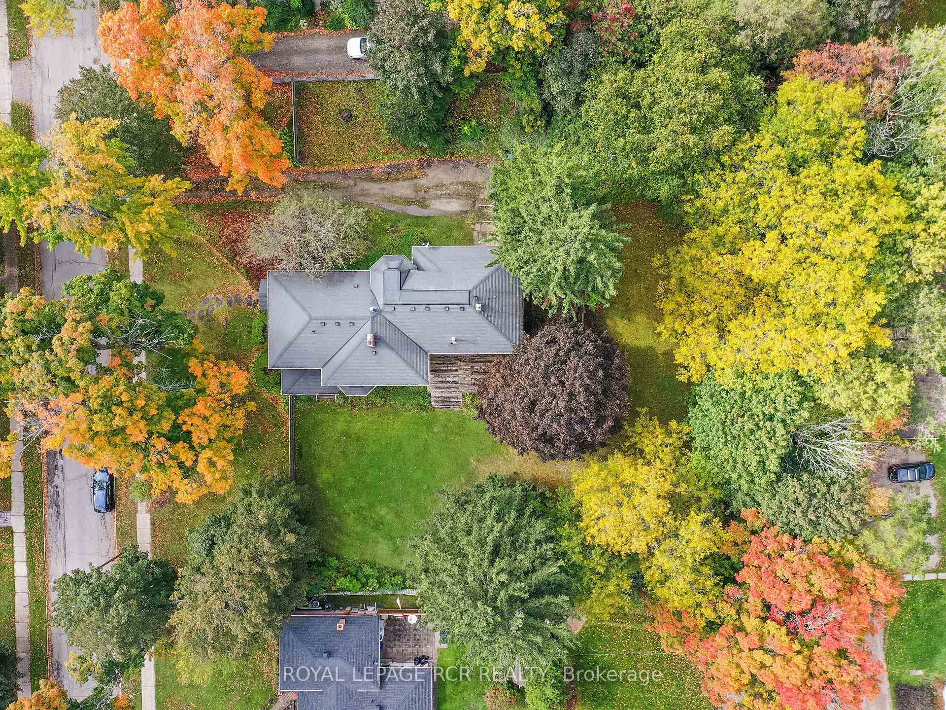 Admired for over 140 years, this sprawling & stately home is a must see. A unique property with endless possibility located in the heart of town. Timeless, quality construction & details thru out including original doors, trim, floors & staircases, spacious principal rooms & ceiling height, multiple walkouts from the main level to mature and private lot- 164 ft. x 187 ft., approximately .70 acre with the house sited in centre of lot. Enjoy a grand foyer & front hall, dedicated library, formal living room with original fireplace and walkout to covered side porch. Enjoy entertaining in an expansive dining room with 2nd original fireplace or retreat to read a book in the cozy den. The kitchen offers lots of space for preparing meals & a large breakfast area with glass walkout door to side patio. The rear main floor laundry room offers a private 2 piece powder room and walkout to yard. The elegant front staircase leads to an open landing area and primary bedroom with walk-in closet & 3 piece ensuite bath, as well as main bath with whirlpool tub & additional bedrooms. The 2nd or rear staircase leads to a charming suite with bright & spacious living/dining room, kitchen, 4th bedroom and full bath – an ideal space for guests or extended family & can be closed off from the rest of the 2nd floor space. Outside you find lots of parking area, an enormous yard with mature trees and rear storage/driveshed. Rare opportunity for a property of this size in a downtown Orangeville location.