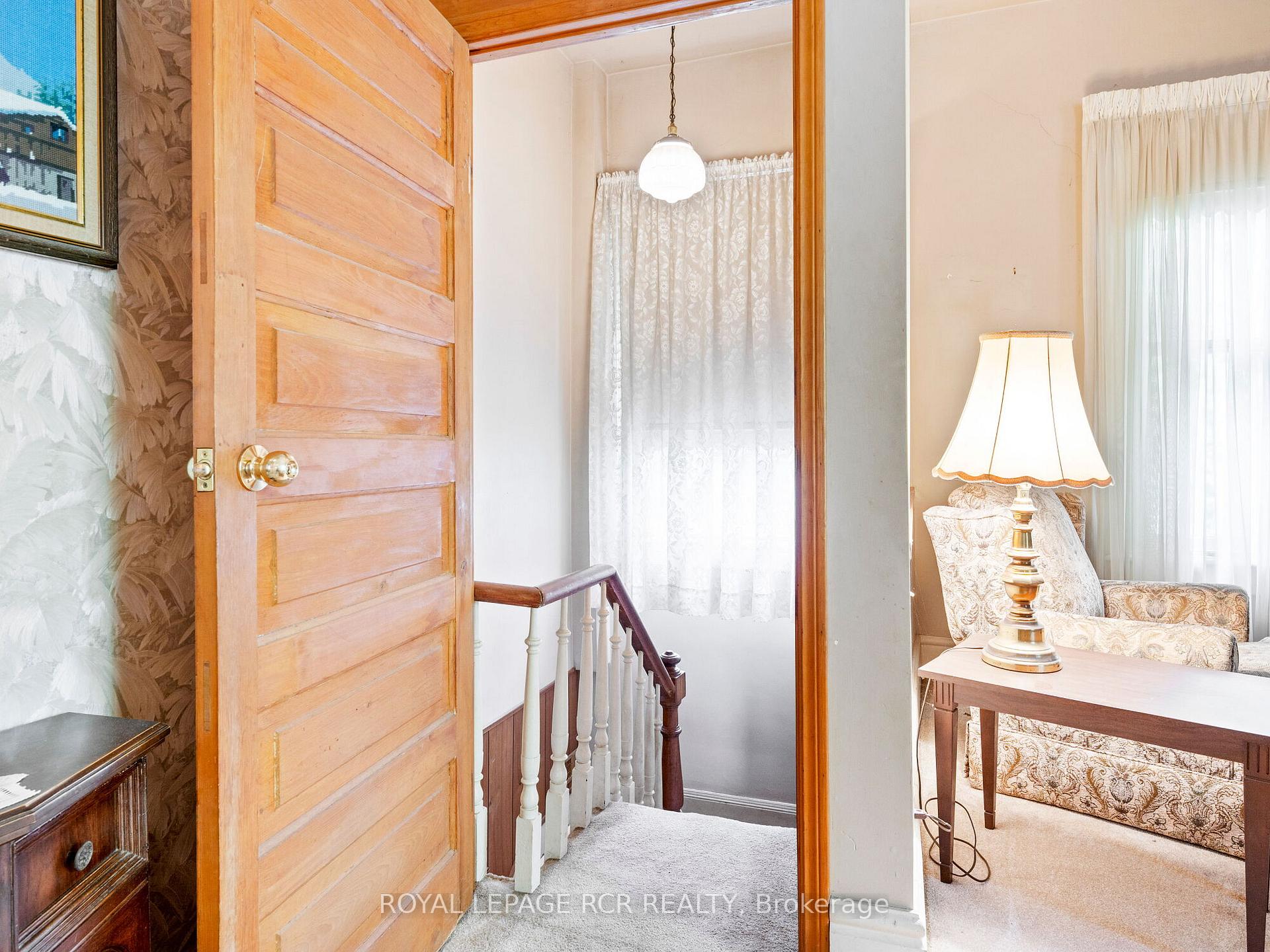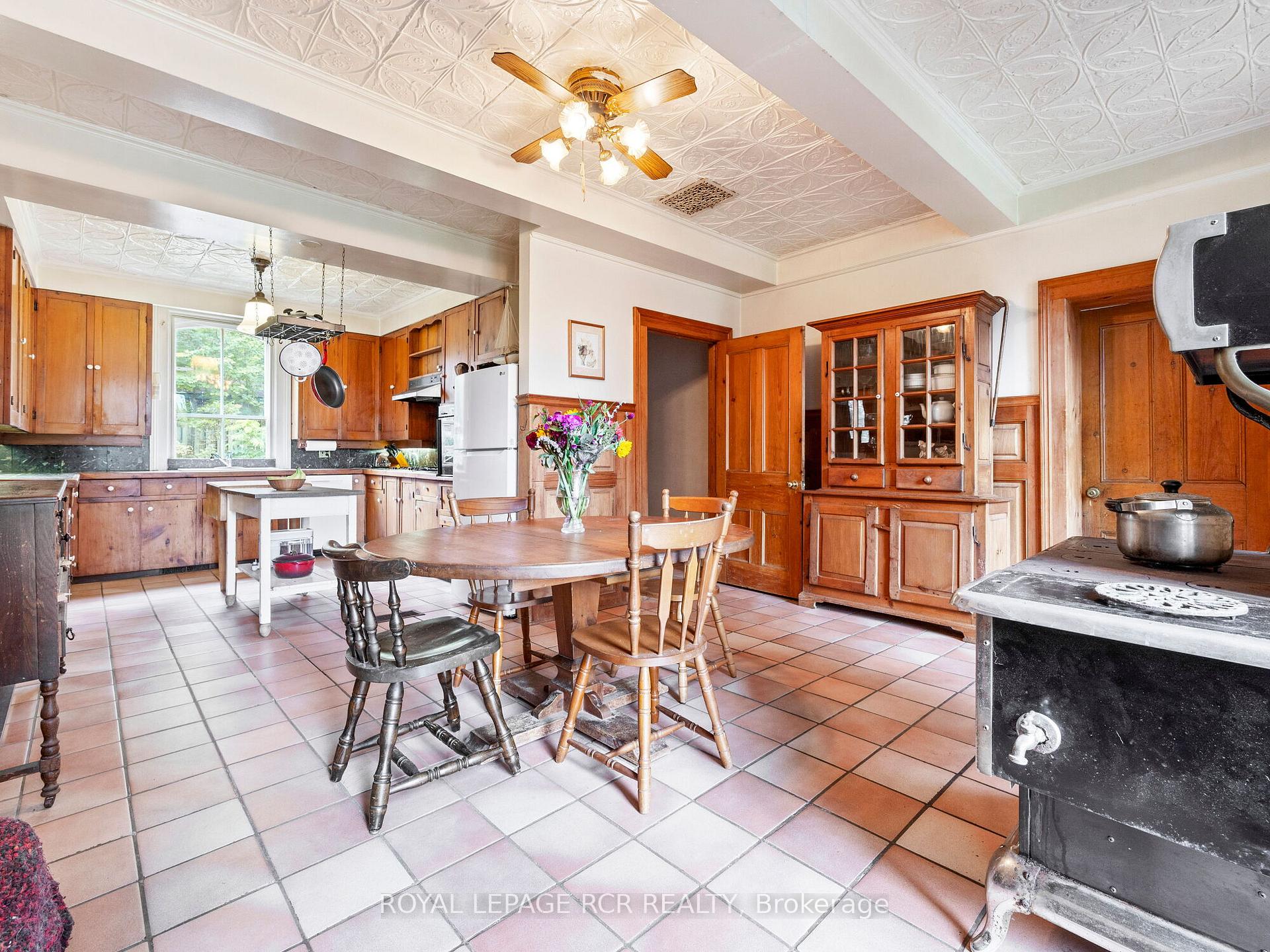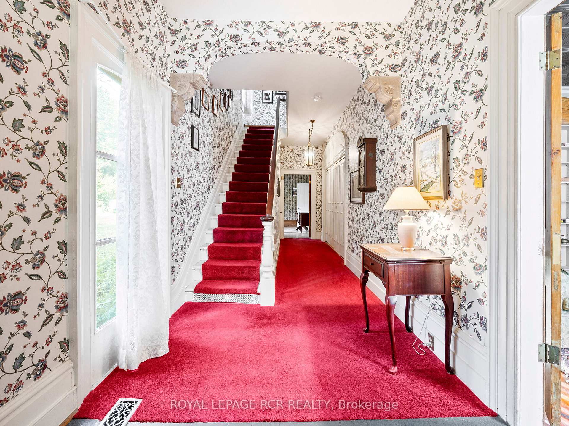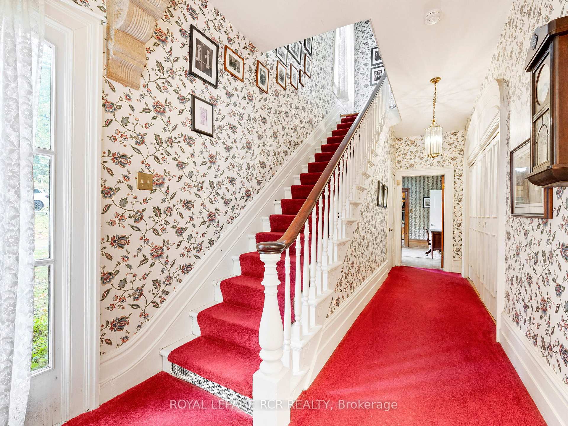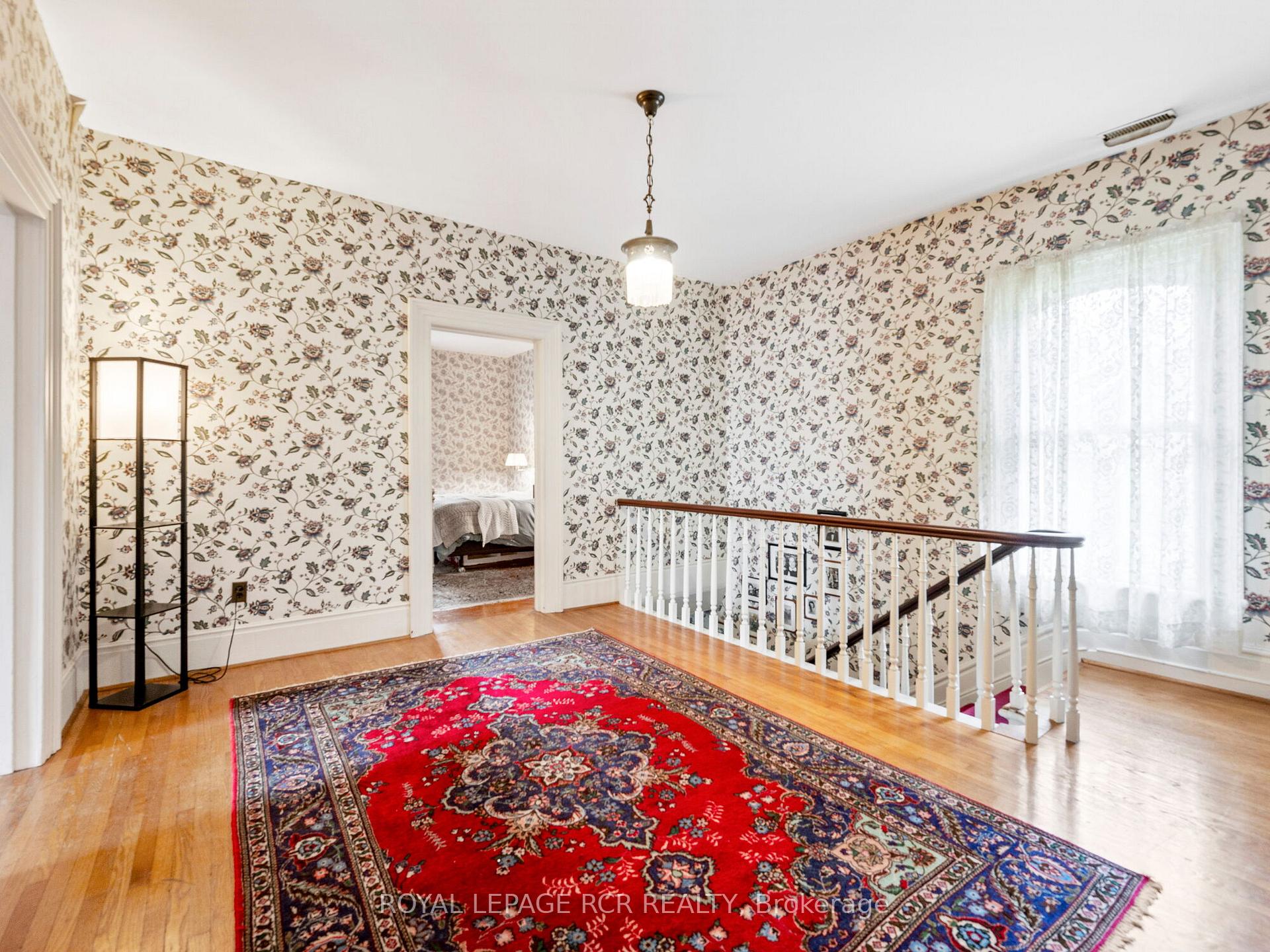 Admired for over 140 years, this sprawling & stately home is a must see. A unique property with endless possibility located in the heart of town. Timeless, quality construction & details thru out including original doors, trim, floors & staircases, spacious principal rooms & ceiling height, multiple walkouts from the main level to mature and private lot- 164 ft. x 187 ft., approximately .70 acre with the house sited in centre of lot. Enjoy a grand foyer & front hall, dedicated library, formal living room with original fireplace and walkout to covered side porch. Enjoy entertaining in an expansive dining room with 2nd original fireplace or retreat to read a book in the cozy den. The kitchen offers lots of space for preparing meals & a large breakfast area with glass walkout door to side patio. The rear main floor laundry room offers a private 2 piece powder room and walkout to yard. The elegant front staircase leads to an open landing area and primary bedroom with walk-in closet & 3 piece ensuite bath, as well as main bath with whirlpool tub & additional bedrooms. The 2nd or rear staircase leads to a charming suite with bright & spacious living/dining room, kitchen, 4th bedroom and full bath – an ideal space for guests or extended family & can be closed off from the rest of the 2nd floor space. Outside you find lots of parking area, an enormous yard with mature trees and rear storage/driveshed. Rare opportunity for a property of this size in a downtown Orangeville location.