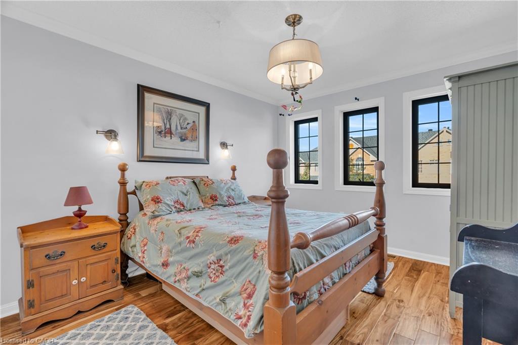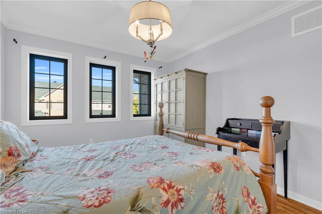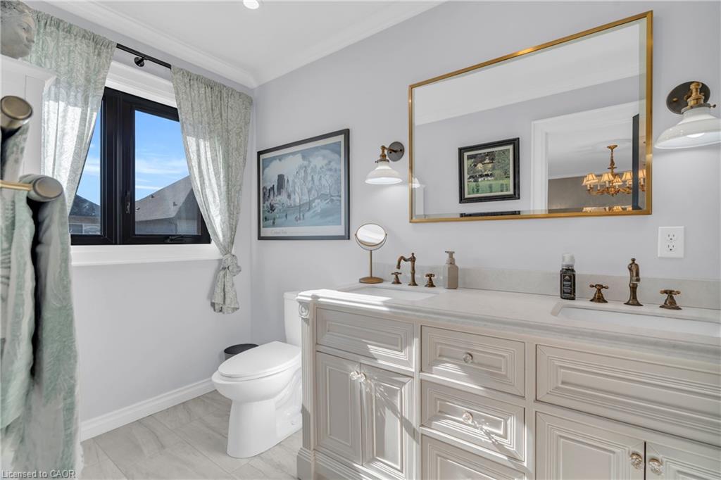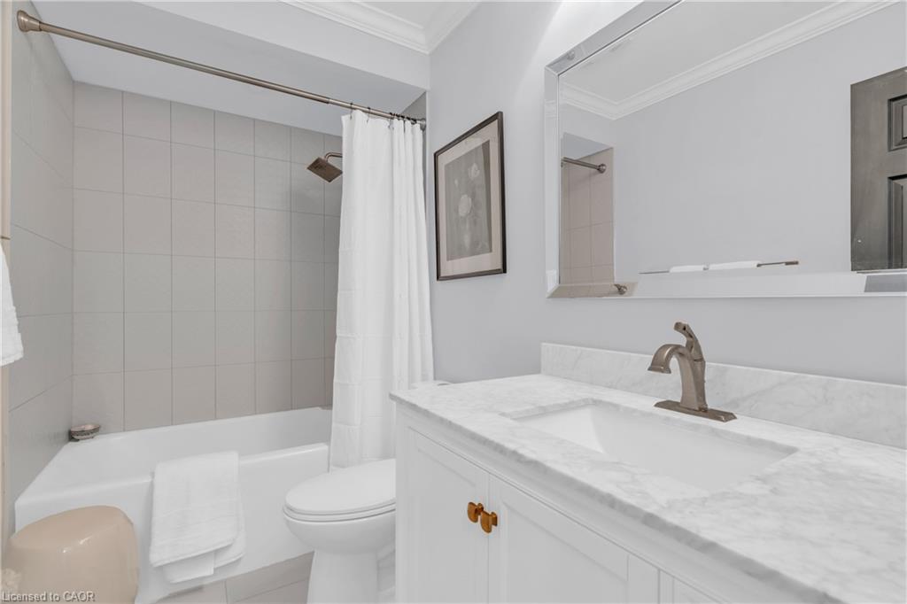 Every once in a while, you walk into a home and you get that feeling – this place is pure class. Every style choice is correct and things feel like they flow perfectly. That’s the feeling you’ll get in 110 Panton Trail. At 1677 square feet above grade, the home is unexpectedly large and you can feel the difference in space where it matters. You never feel cramped. The foyer and hallways are wide and airy. Principal rooms are generous in size and bright. Carpet-free on the main and second floors with upgraded staircase, railings and spindles. Crown moulding throughout. Chic 2 piece bath in your wide front hall for guests. Large main floor entertaining space, with a flowy living/dining room (with fireplace) that leads into your stunning two-tone kitchen with quartz counters, a peninsula with breakfast bar and a farmhouse sink. Light pours in everywhere through upgraded stylish black vinyl windows and patio door. Walkout to your private, fully-fenced secret garden of a backyard, with stamped concrete patio, a gazebo and access to your oversized garage from the rear. Upstairs is equally impressive, with a wide hallway housing an enormous linen closet; 2 great sized bedrooms; upper floor laundry with lots of cabinet space, stylish tile floors and a farmhouse laundry sink; and a sleek main bath with gold plumbing fixtures. But the star of the show is the enormous primary suite, with its double French entry doors, huge walk-in closet and elegant ensuite with walk-in glass shower and double vanity. The basement offers ample storage and an L-shaped rec room for family movie nights. With its proximity to shopping, trails, parks, schools and a quick shot to the 401 for commuters, you’re going to want to put 110 Panton Trail on your list of must-view homes.