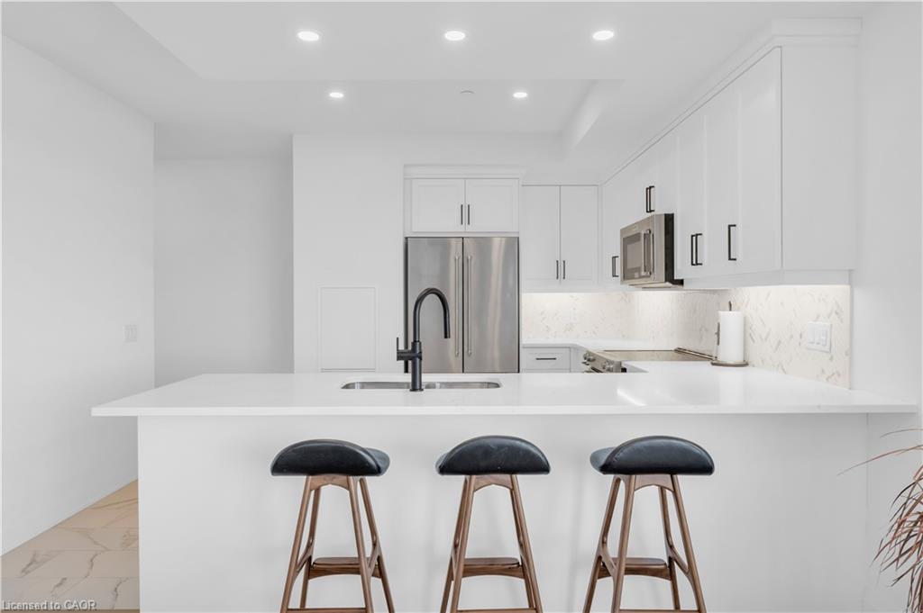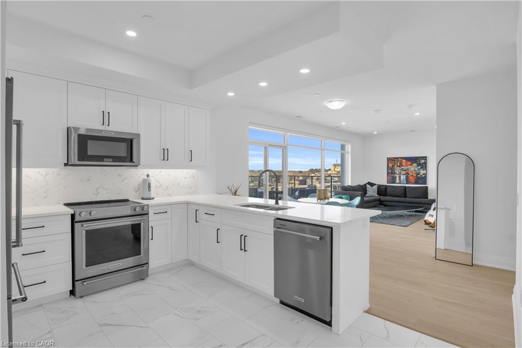 Residents have access to premium amenities including a library, games room, exercise room, and billiard room. With over 1,300 square feet, multiple outdoor spaces, and a walkable location close to downtown shops, dining, and trails, this residence presents an exceptional opportunity in the heart of Guelph.