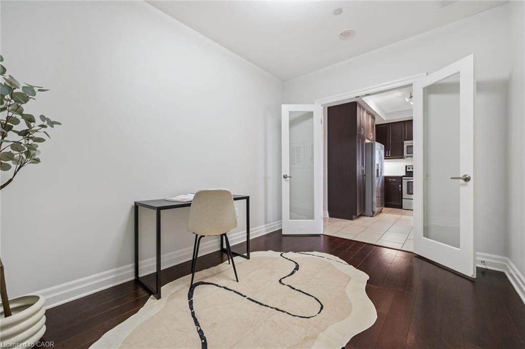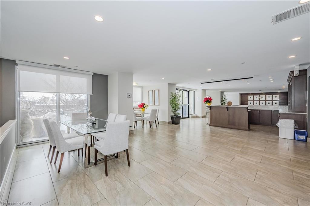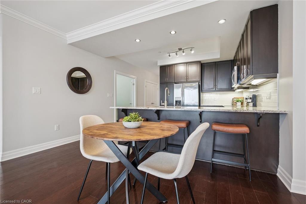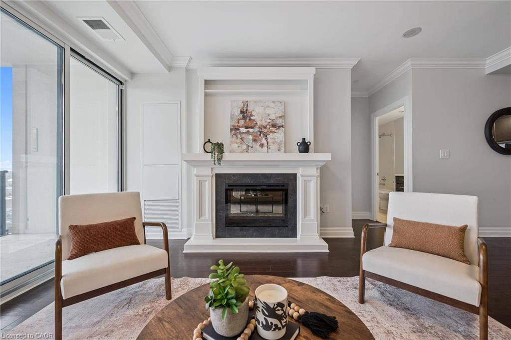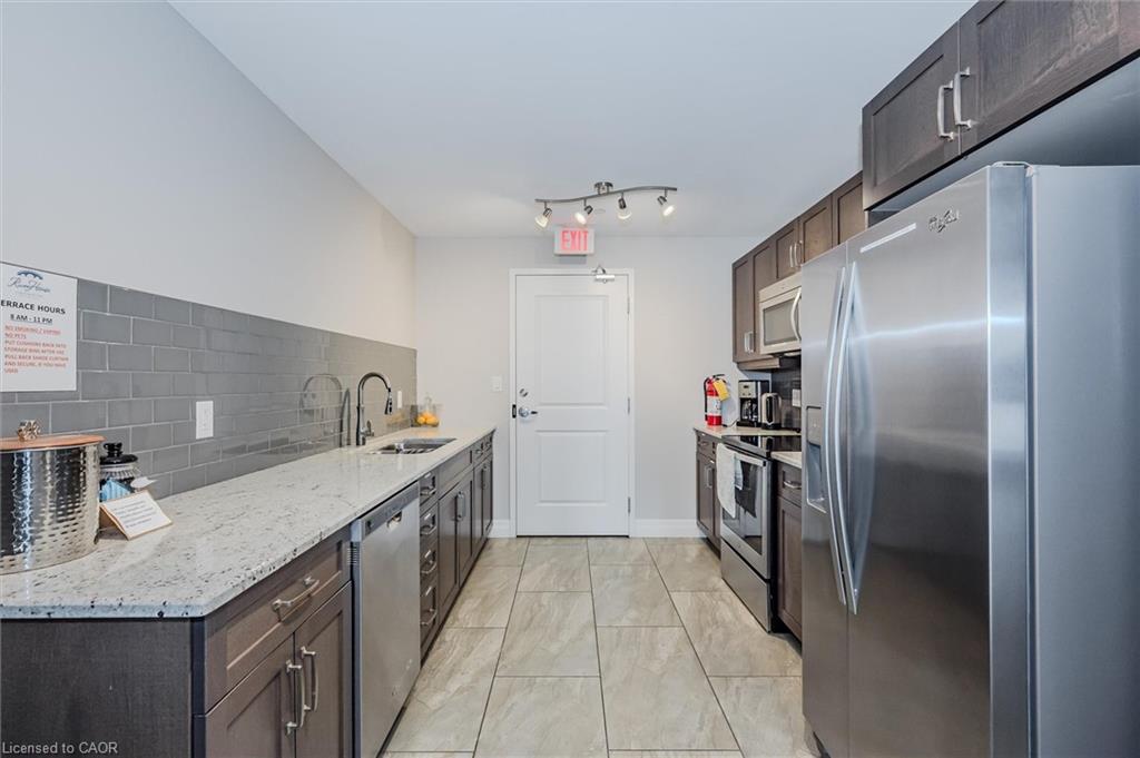Welcome to Suite 1108 at The Riverhouse, one of Guelph’s most sought-after condominium residences known for its quiet atmosphere, upscale feel, and exceptional management. Perfectly positioned in the heart of downtown, you’re just steps from the GO Station, Sleeman Centre, River Run Centre, scenic walking trails, and Guelph’s best restaurants, cafés, and shops – offering a truly walkable lifestyle. This spacious 1 bedroom plus den suite offers a highly functional and versatile layout. The large den with French doors is ideal as a second bedroom or work-from-home office. Rich hardwood flooring, granite countertops, modern lighting, and a cozy fireplace create a sophisticated living environment. The open-concept kitchen is designed for everyday living and entertaining, featuring full-size stainless steel appliances, ample cabinetry, and a peninsula with bar seating that flows into the generous living and dining area. Sliding doors lead to an oversized private balcony-perfect for enjoying sunset views over downtown. The bright primary bedroom boasts an oversized walk-in closet, with a spacious 4-piece bathroom offering abundant counter space (or easily convert to a dual vanity!). A welcoming foyer with double coat closet and a dedicated laundry/storage room with added cabinetry enhances everyday functionality. Residents enjoy exceptional amenities, including an incredible rooftop terrace with BBQs, elegant party room and lounge with kitchen, media room, library, fitness centre, and well-appointed guest suite. Recent updates include fresh paint, new bedroom carpeting, added laundry room cabinetry, modern lighting, new kitchen faucet, and new toilet. This unit also includes a well-located, owned parking space! Ideally suited for commuting professionals, modern couples, or downsizers seeking refined, low-maintenance living in an unbeatable location. *Most utilities are conveniently covered in the condo fees, and storage lockers are available to rent for $35 per month.