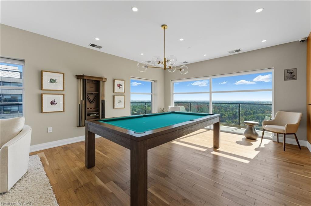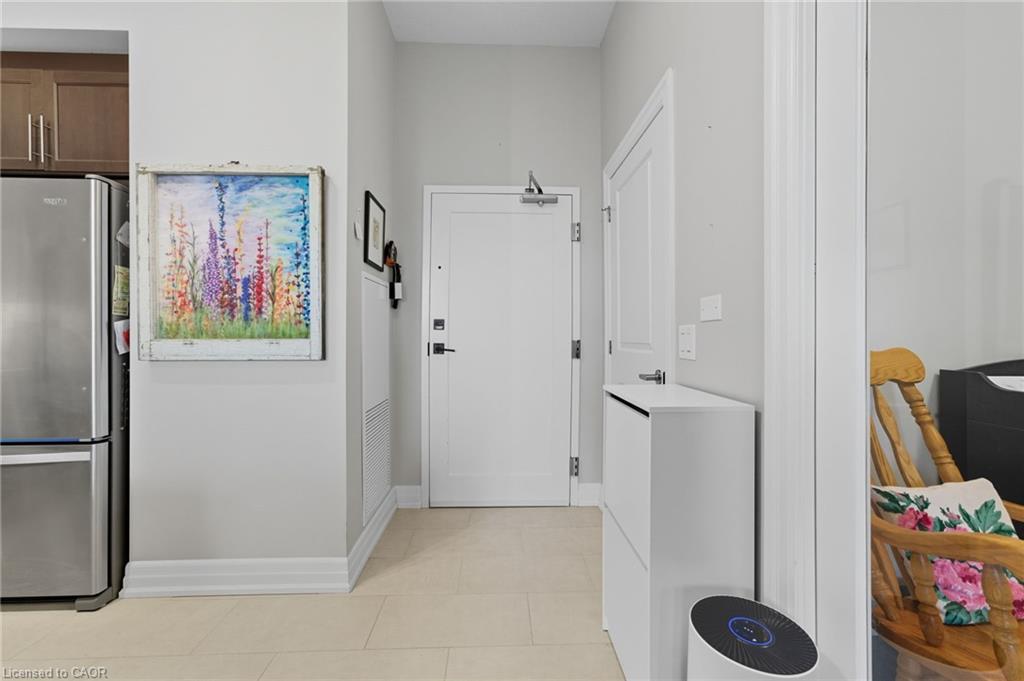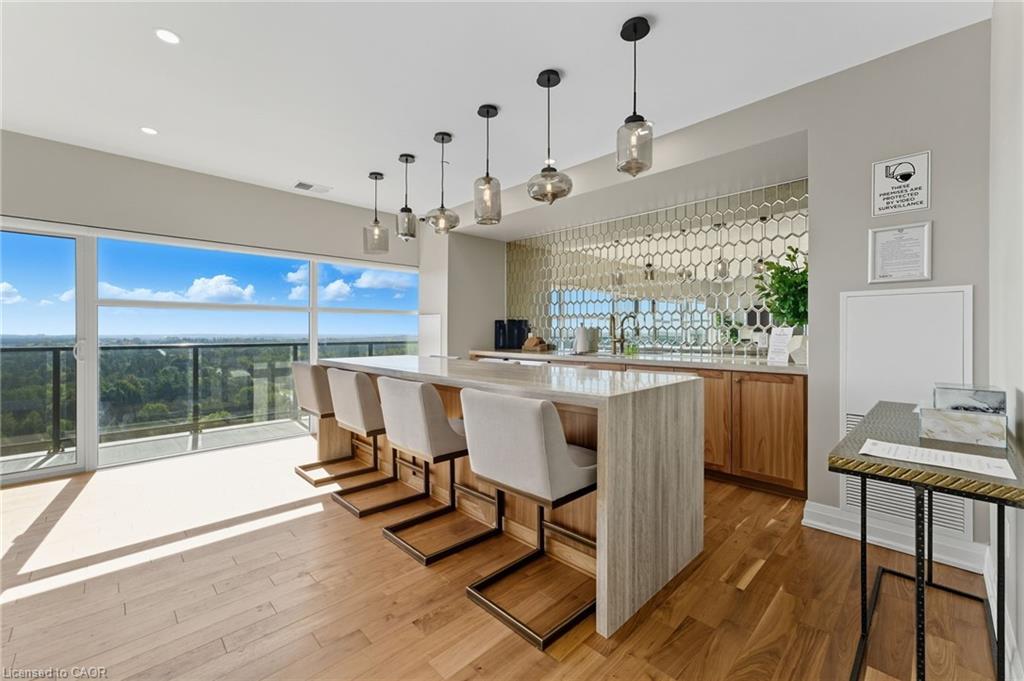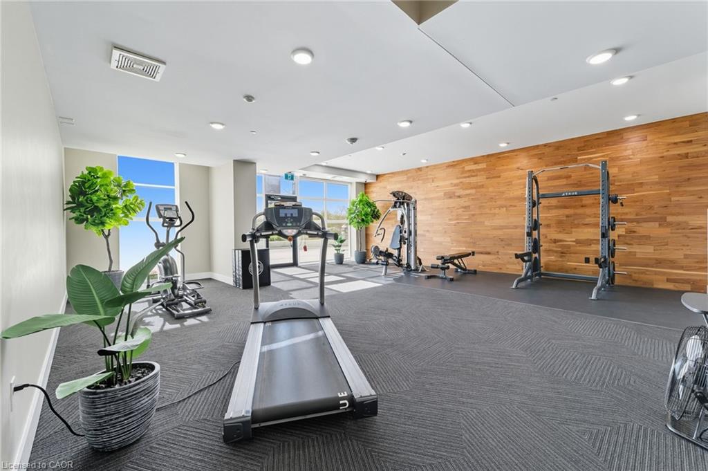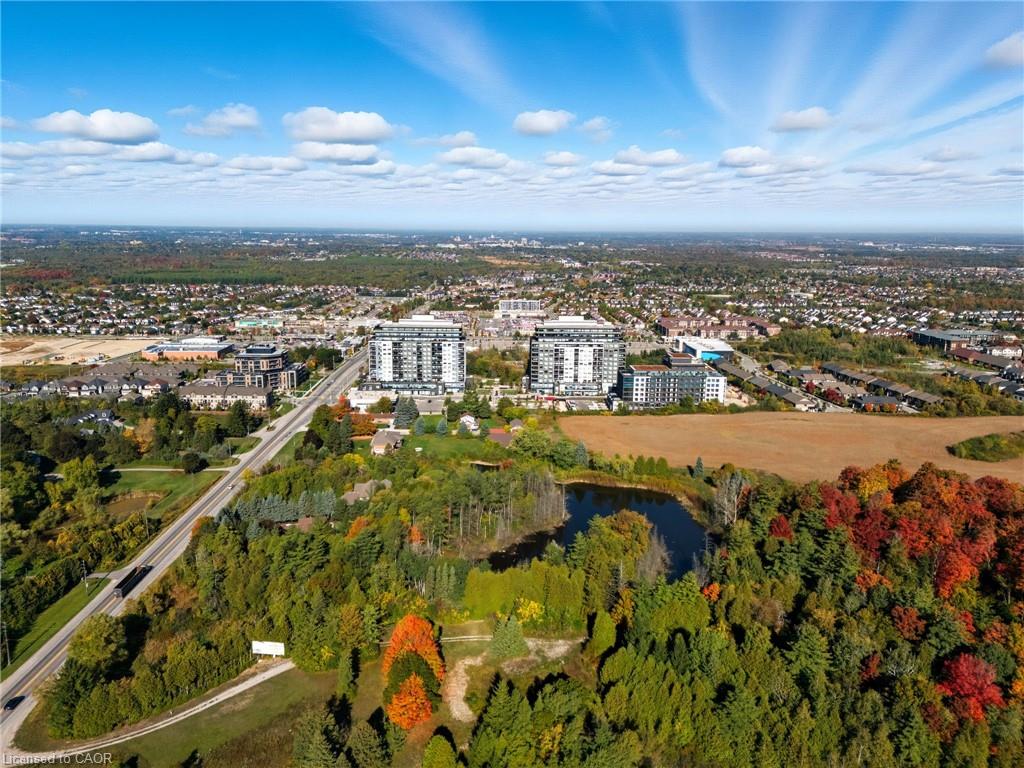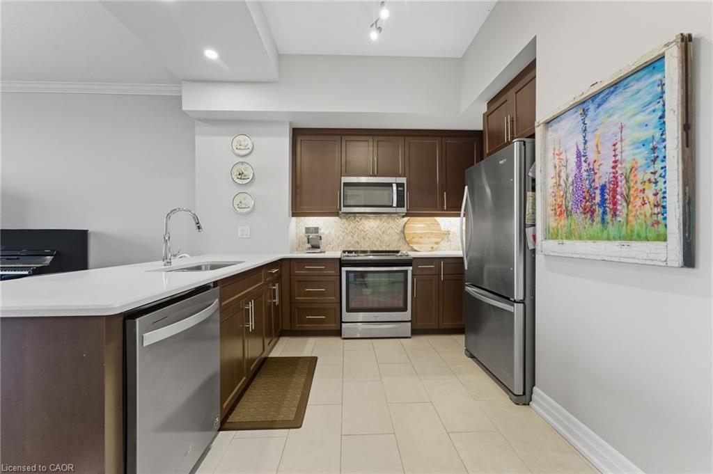 Skip the elevators and step into this stylish 1-BEDROOM + DEN condo that blends comfort, function, and a touch of luxury. Located in one of Guelph’s most sought-after south-end communities-just steps from shopping, restaurants, and movie theatres, with easy access to the GO Bus and public transit, this unit offers both convenience and connection.Inside, you’ll find a thoughtfully designed layout featuring a modern kitchen with QUARTZ counters, a sleek BACKSPLASH, built-in microwave, and bar seating that opens to a comfortable dining and living area. The included wall-mount for your TV and a built-in electric FIREPLACE add warmth and sophistication. The spacious bathroom features HEATED FLOORS, a rare luxury you’ll appreciate year-round.Enjoy exceptional amenities right at your door: guest suites, a fully equipped fitness room, and even a golf simulator-all on the same floor! When it’s time to entertain, head up to the 13th-floor party room and take in the sweeping southern views. UNDERGROUND PARKING adds comfort and security to this already complete package.Whether you’re a first-time buyer, downsizer, or investor, this condo offers an unbeatable combination of style, location, and lifestyle-all in one smart move. BEST VALUE IN A WELL RUN BUILDING IN GORDON SQUARE. Quick Occupancy available.
