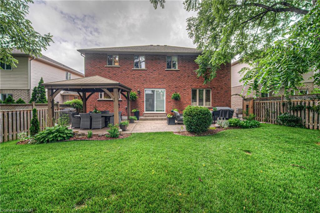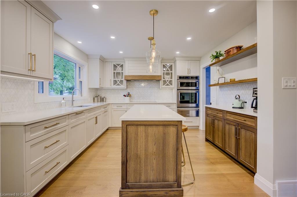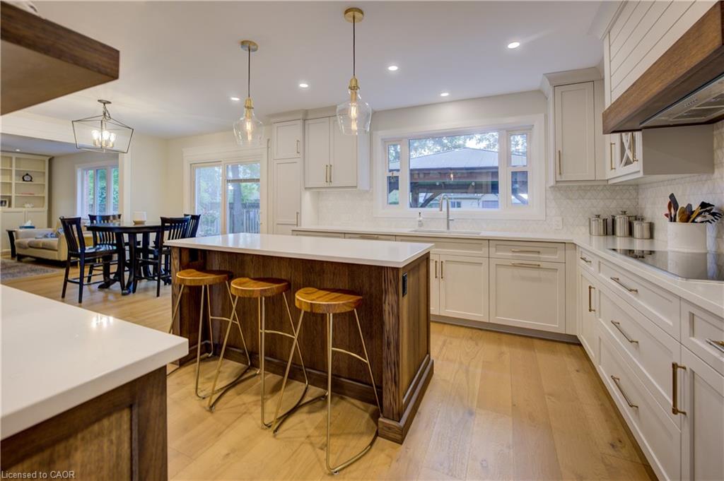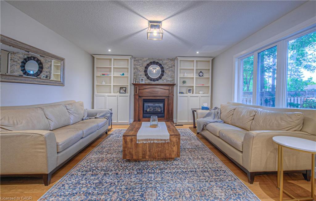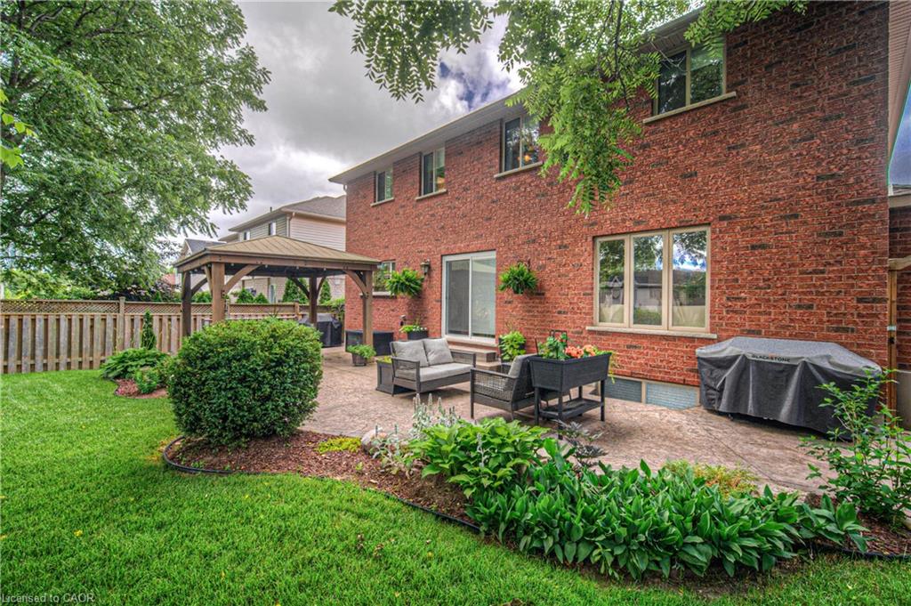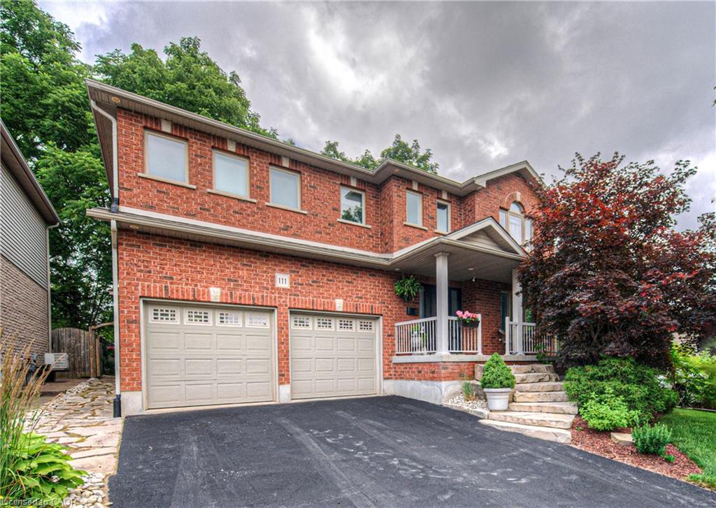 CLASSIC BRICK BEAUTY STEPS FROM HESPELER VILLAGE. Nestled on a quiet, tree-lined street in one of Cambridge’s most sought-after pockets, this stunning all-brickhome is more than just a place to live – it’s a place to love. With over 2,780 sqft of meticulously updated living space, this home invites you to settle in. From the moment you step onto the welcoming front porch – the perfect place to sip morning coffee under the shade of mature trees – you’ll feel at home. Inside, you’re greeted by a fully renovated main floor (2021), showcasing wide plank flooring, custom cabinetry, quartz countertops, and a dream kitchen designed for gathering, entertaining, and late-night baking sessions. The natural wood island, open shelving, and double wall oven are just a few standout features that make this space as functional as it is beautiful. The main floor also offers a formal dining room, a cozy family room with a fireplace, and sliding doors that lead to the expansive backyard oasis – complete with a large stamped concrete patio, gazebo, shed, and serene landscaping. Whether you’re entertaining under the stars or simply soaking up the peace and quiet. Upstairs, you’ll find 4 oversized bedrooms – each one a sanctuary – and a refreshed primary ensuite (2025) featuring a new vanity, tiled shower, and modern finishes. A total of 3.5 bathrooms throughout the home. Convenient upper laundry! And let’s not forget the finished basement – a warm and versatile space with a second fireplace, heated bathroom floors, a wet bar, and endless possibilities for movie nights, games, or hosting guests. Additional updates include a new Daikin furnace and AC (2022), new front door (2024), brand-new carpet (2025), and modern vanity in the main bath. Outside, you’ll appreciate the gutter guards on both the home and shed, natural stone steps leading to the front door, and a gas line. Perfectly located just minutes from the 401, charming Hespeler Village, schools, parks, and scenic river trails.
