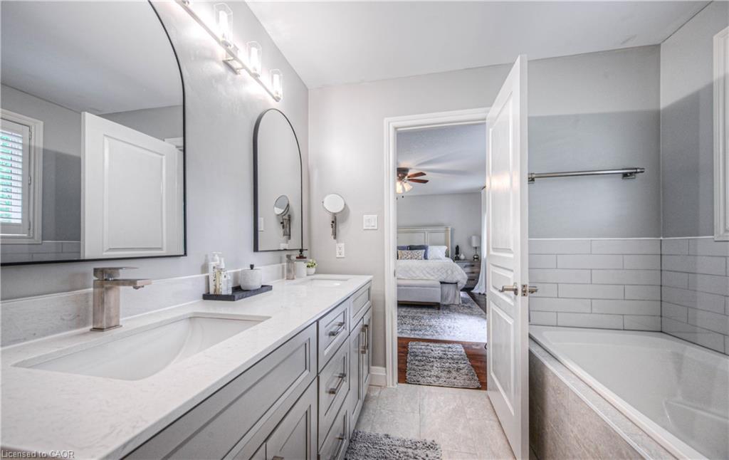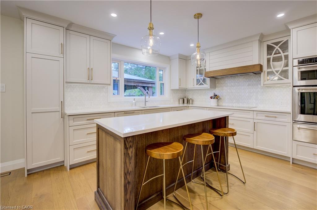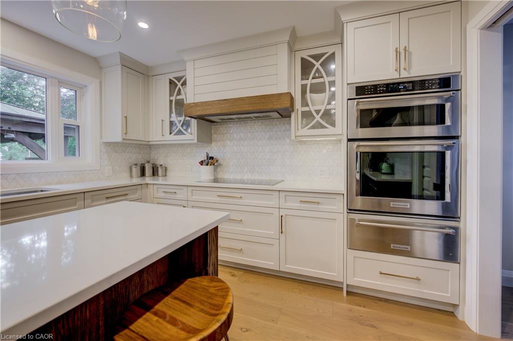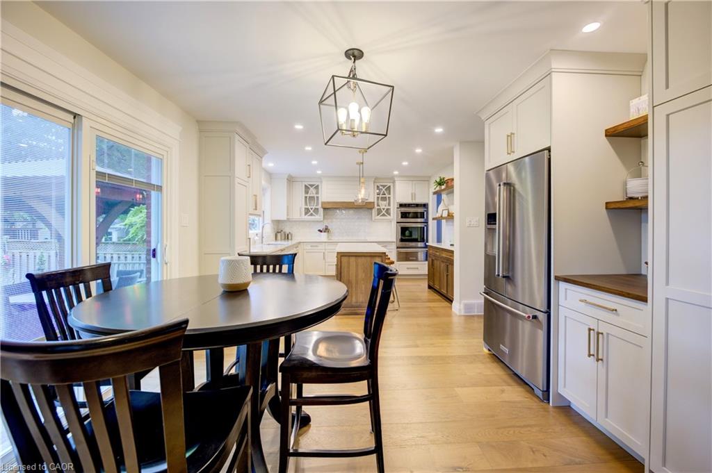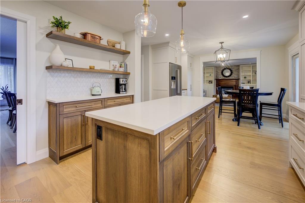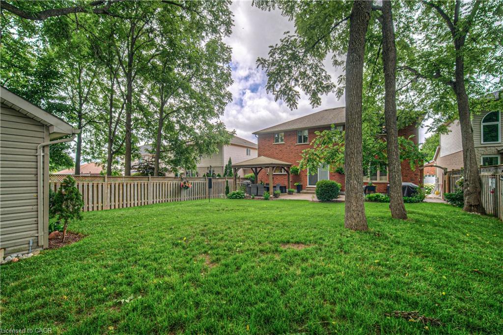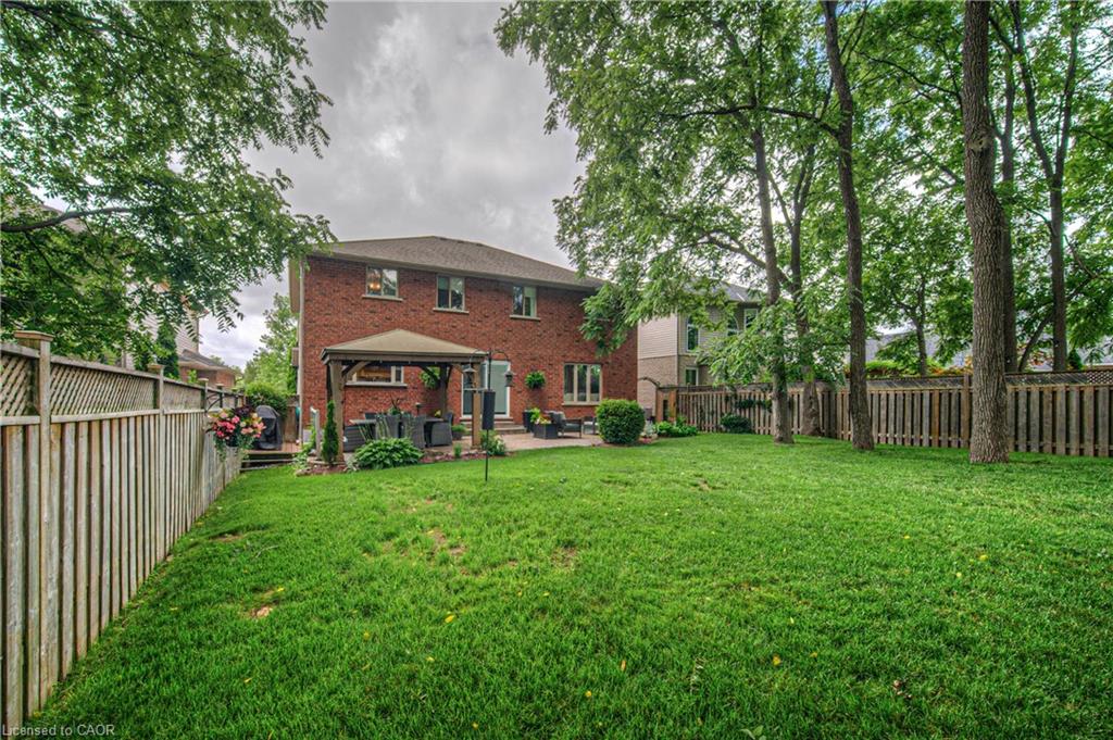 CLASSIC BRICK BEAUTY STEPS FROM HESPELER VILLAGE. Nestled on a quiet, tree-lined street in one of Cambridge’s most sought-after pockets, this stunning all-brickhome is more than just a place to live – it’s a place to love. With over 2,780 sqft of meticulously updated living space, this home invites you to settle in. From the moment you step onto the welcoming front porch – the perfect place to sip morning coffee under the shade of mature trees – you’ll feel at home. Inside, you’re greeted by a fully renovated main floor (2021), showcasing wide plank flooring, custom cabinetry, quartz countertops, and a dream kitchen designed for gathering, entertaining, and late-night baking sessions. The natural wood island, open shelving, and double wall oven are just a few standout features that make this space as functional as it is beautiful. The main floor also offers a formal dining room, a cozy family room with a fireplace, and sliding doors that lead to the expansive backyard oasis – complete with a large stamped concrete patio, gazebo, shed, and serene landscaping. Whether you’re entertaining under the stars or simply soaking up the peace and quiet. Upstairs, you’ll find 4 oversized bedrooms – each one a sanctuary – and a refreshed primary ensuite (2025) featuring a new vanity, tiled shower, and modern finishes. A total of 3.5 bathrooms throughout the home. Convenient upper laundry! And let’s not forget the finished basement – a warm and versatile space with a second fireplace, heated bathroom floors, a wet bar, and endless possibilities for movie nights, games, or hosting guests. Additional updates include a new Daikin furnace and AC (2022), new front door (2024), brand-new carpet (2025), and modern vanity in the main bath. Outside, you’ll appreciate the gutter guards on both the home and shed, natural stone steps leading to the front door, and a gas line. Perfectly located just minutes from the 401, charming Hespeler Village, schools, parks, and scenic river trails.