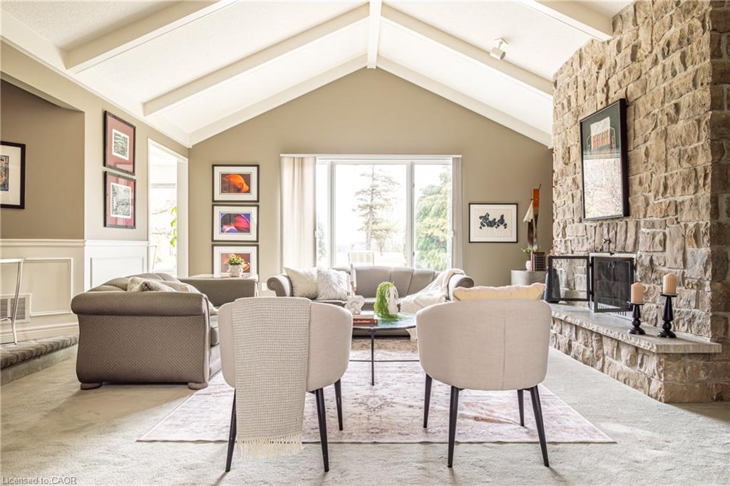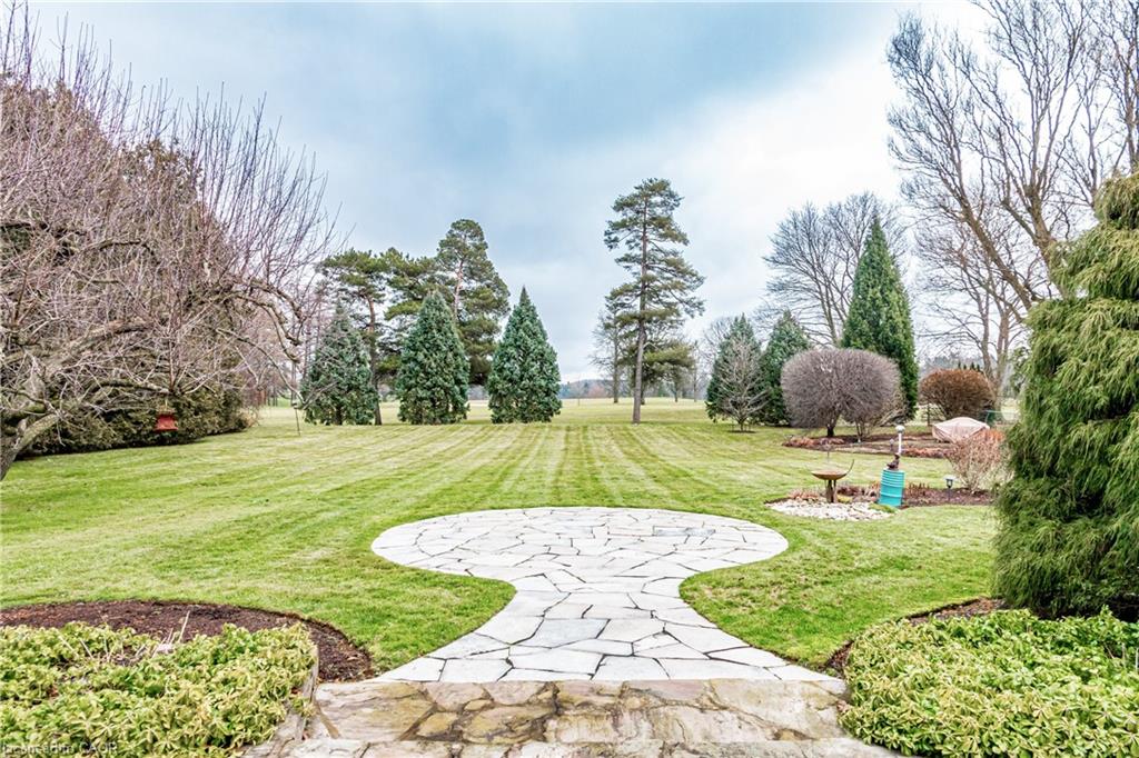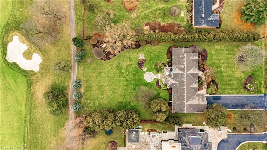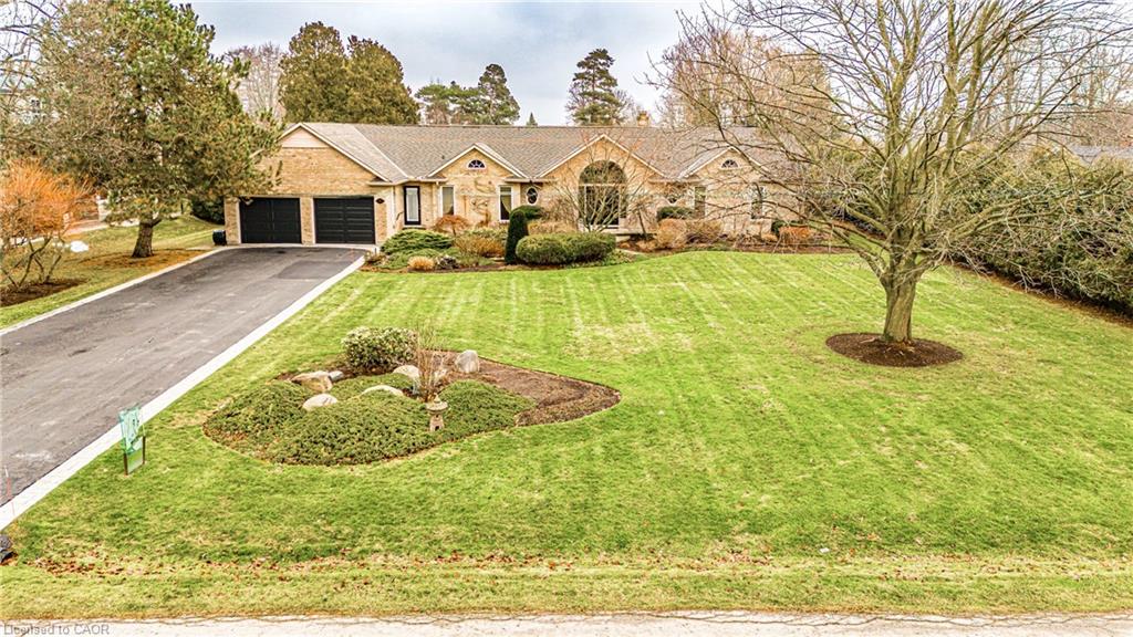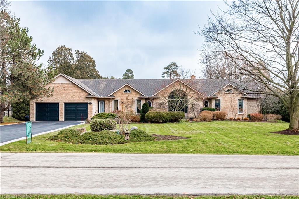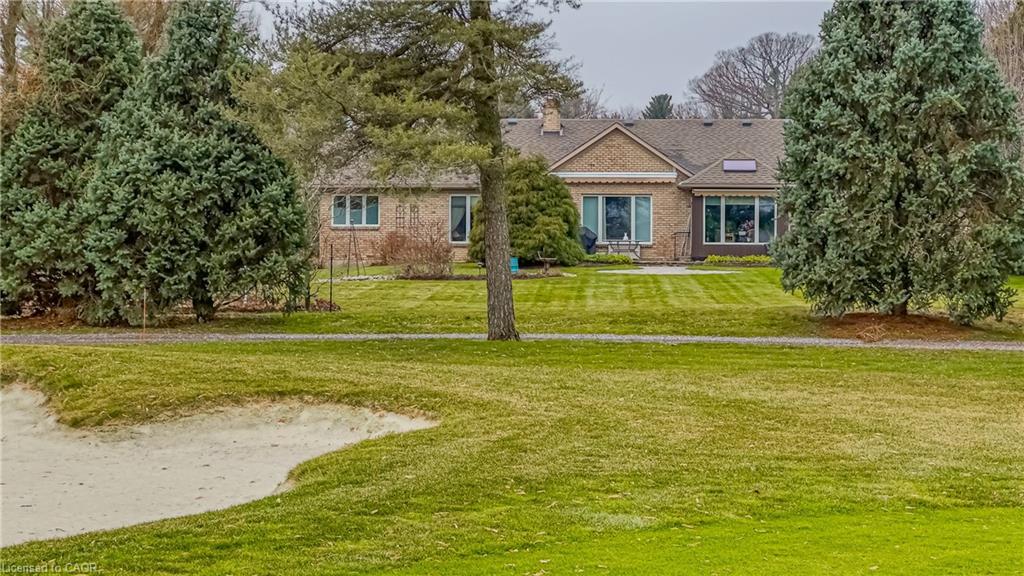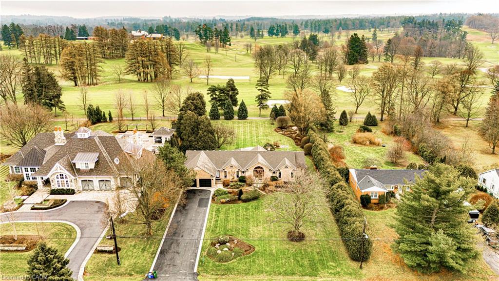 Rare Opportunity to own a coveted Golf Course property in Ancaster’s most prestigious location. Nestled on a premium 100×253 ft lot, backing onto the renowned Hamilton Golf & Country Club this home offers a rare combination of privacy & incredible golf course views. Backing on to the No. 2 West hole of the golf course, this expansive executive bungalow boasts over 2,813sqft of main-floor living space designed to take full advantage of its stunning setting with views from every window. Enter the spacious foyer and into the vaulted great room, where large picture windows provide panoramic views of the manicured grounds. A majestic stone two-way gas fireplace creates a warm and inviting space, ideal for entertaining or quiet nights in. The gourmet kitchen features stainless steel appliances, gas stovetop, built-in double ovens, and custom metallic cabinetry. A large island offers plenty of prep space, while the sunny dinette is the perfect spot to enjoy your morning coffee. The formal dining room is open for hosting dinner parties and family gathering. The private primary wing offers a cozy den or office, a spacious bedroom with gorgeous views, and a two-way fireplace for added comfort. Two ensuite baths include a newly renovated 3-pc with walk-in shower and a 3-pc with whirlpool tub surrounded by windows. The west wing features 2 additional bedrooms, a 4-pc bath, and convenient main-floor laundry room with separate entrance. The expansive lower level, with 9ft ceilings, is ready to be customized and includes a second staircase to the large two-car garage. Located just minutes from Ancaster’s charming downtown, boutiques, restaurants and amenities, plus groceries, conveniences, the Meadowlands and easy highway access make this a perfect location. For golf enthusiasts, there is simply no better location. The Hamilton Golf & Country Club is one of Canada’s most prestigious private courses, hosting world-class tournaments and offering an unparalleled golfing experience.