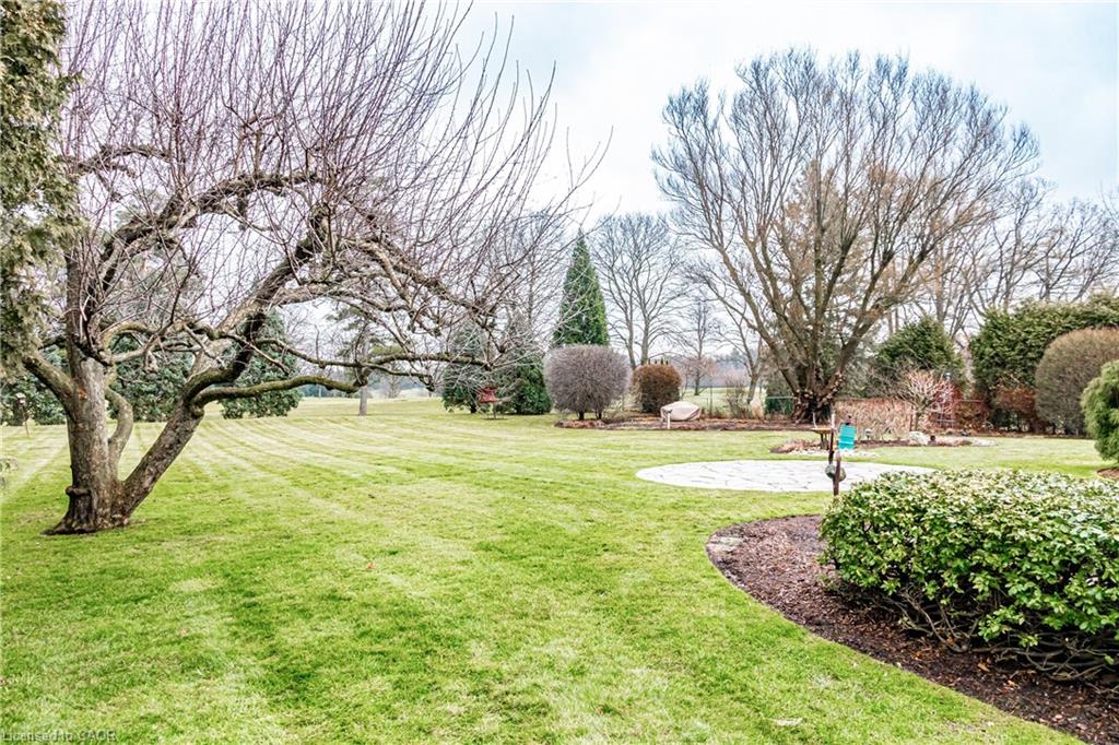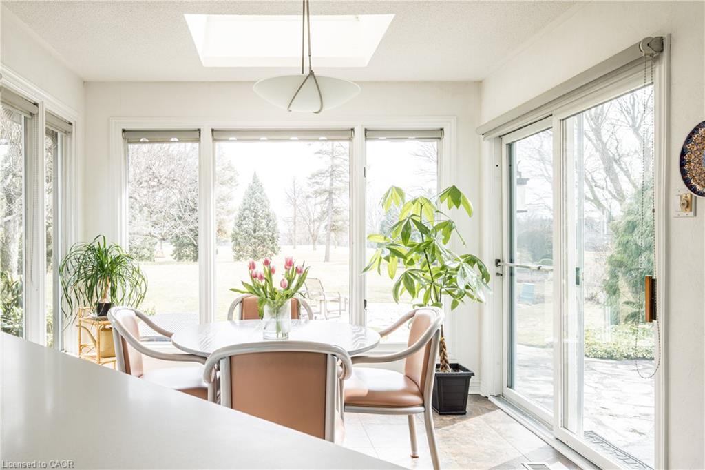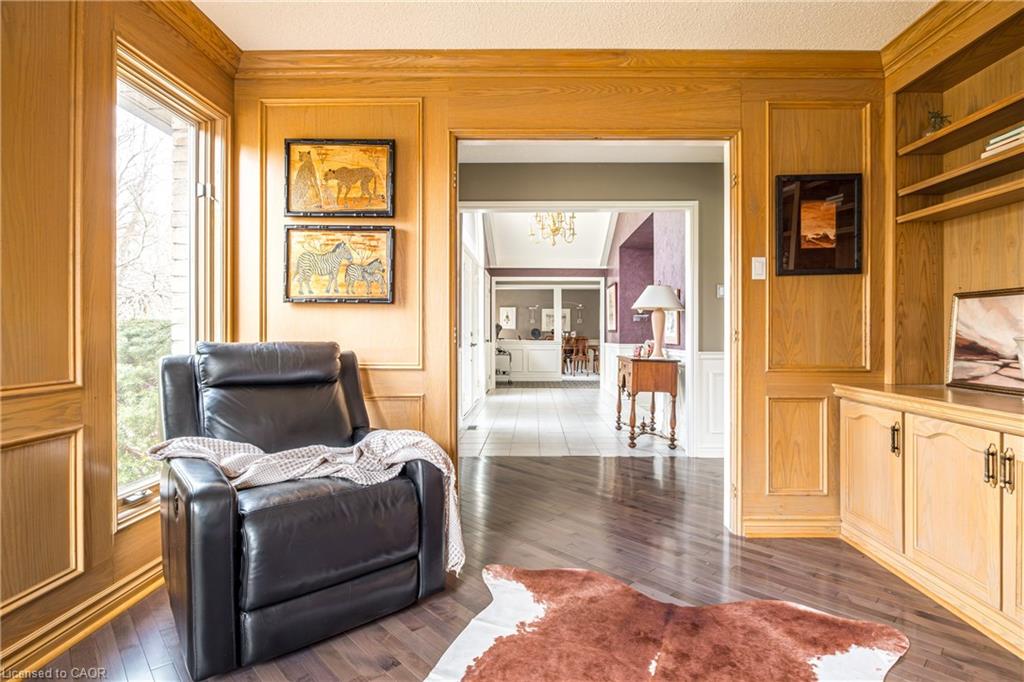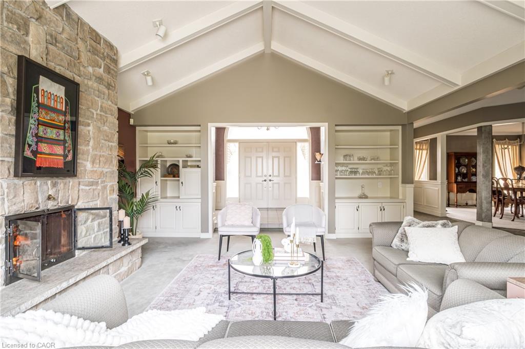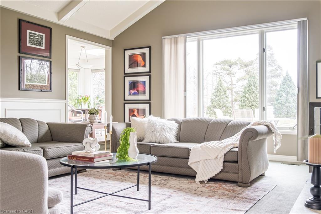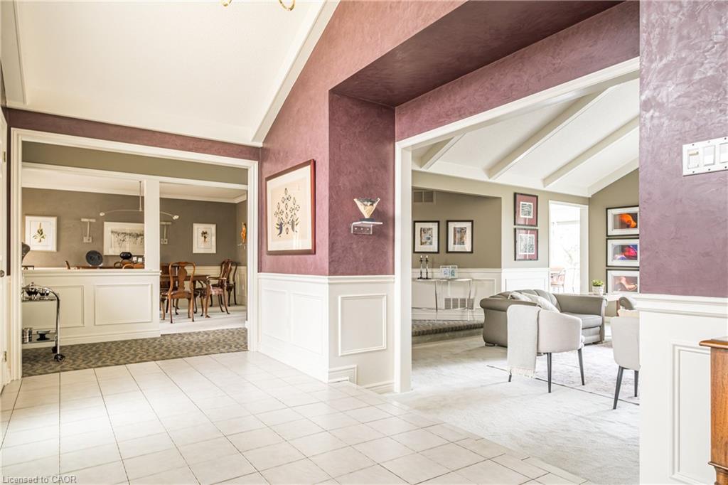 Rare Opportunity to own a coveted Golf Course property in Ancaster’s most prestigious location. Nestled on a premium 100×253 ft lot, backing onto the renowned Hamilton Golf & Country Club this home offers a rare combination of privacy & incredible golf course views. Backing on to the No. 2 West hole of the golf course, this expansive executive bungalow boasts over 2,813sqft of main-floor living space designed to take full advantage of its stunning setting with views from every window. Enter the spacious foyer and into the vaulted great room, where large picture windows provide panoramic views of the manicured grounds. A majestic stone two-way gas fireplace creates a warm and inviting space, ideal for entertaining or quiet nights in. The gourmet kitchen features stainless steel appliances, gas stovetop, built-in double ovens, and custom metallic cabinetry. A large island offers plenty of prep space, while the sunny dinette is the perfect spot to enjoy your morning coffee. The formal dining room is open for hosting dinner parties and family gathering. The private primary wing offers a cozy den or office, a spacious bedroom with gorgeous views, and a two-way fireplace for added comfort. Two ensuite baths include a newly renovated 3-pc with walk-in shower and a 3-pc with whirlpool tub surrounded by windows. The west wing features 2 additional bedrooms, a 4-pc bath, and convenient main-floor laundry room with separate entrance. The expansive lower level, with 9ft ceilings, is ready to be customized and includes a second staircase to the large two-car garage. Located just minutes from Ancaster’s charming downtown, boutiques, restaurants and amenities, plus groceries, conveniences, the Meadowlands and easy highway access make this a perfect location. For golf enthusiasts, there is simply no better location. The Hamilton Golf & Country Club is one of Canada’s most prestigious private courses, hosting world-class tournaments and offering an unparalleled golfing experience.