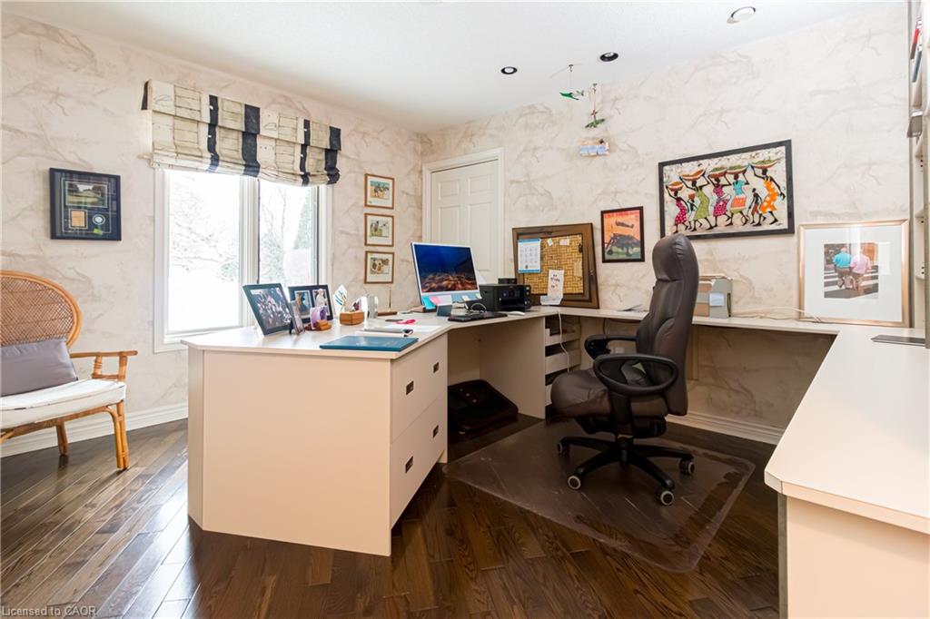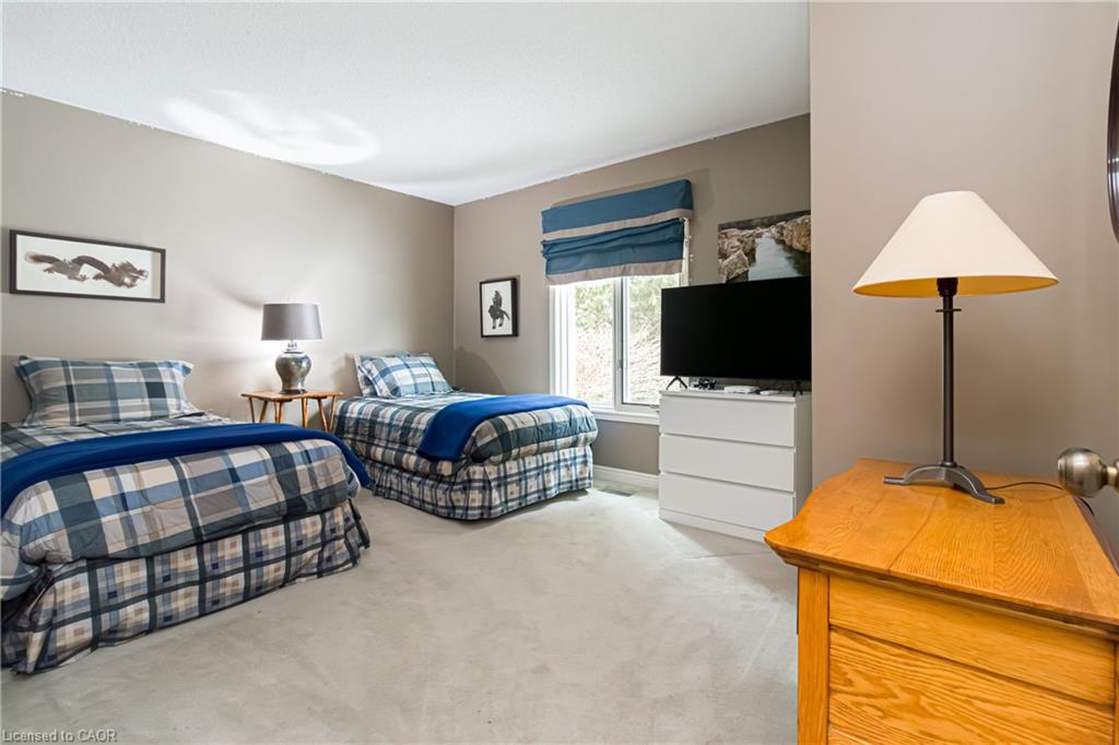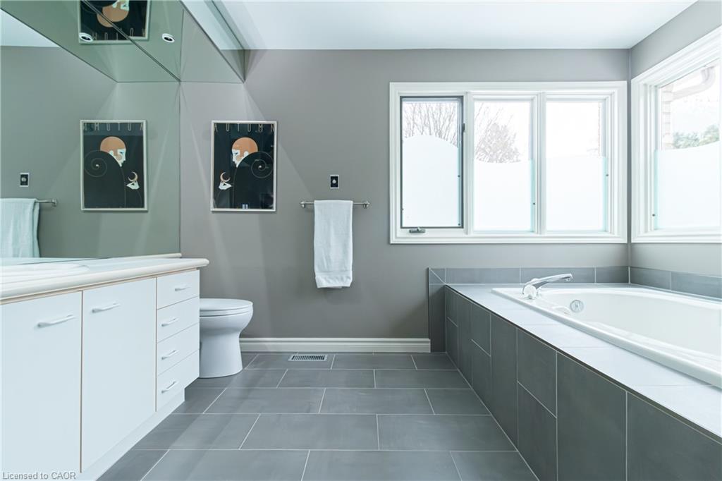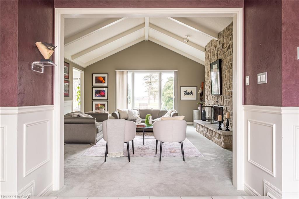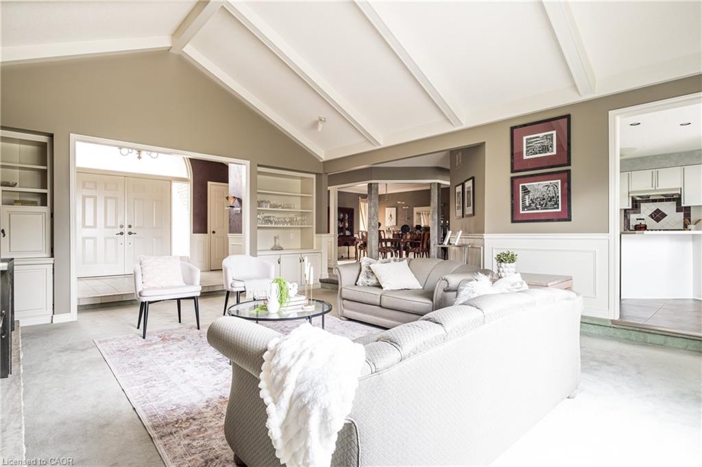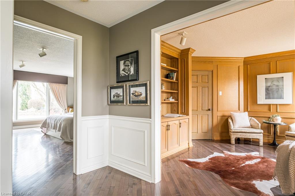 Rare Opportunity to own a coveted Golf Course property in Ancaster’s most prestigious location. Nestled on a premium 100×253 ft lot, backing onto the renowned Hamilton Golf & Country Club this home offers a rare combination of privacy & incredible golf course views. Backing on to the No. 2 West hole of the golf course, this expansive executive bungalow boasts over 2,813sqft of main-floor living space designed to take full advantage of its stunning setting with views from every window. Enter the spacious foyer and into the vaulted great room, where large picture windows provide panoramic views of the manicured grounds. A majestic stone two-way gas fireplace creates a warm and inviting space, ideal for entertaining or quiet nights in. The gourmet kitchen features stainless steel appliances, gas stovetop, built-in double ovens, and custom metallic cabinetry. A large island offers plenty of prep space, while the sunny dinette is the perfect spot to enjoy your morning coffee. The formal dining room is open for hosting dinner parties and family gathering. The private primary wing offers a cozy den or office, a spacious bedroom with gorgeous views, and a two-way fireplace for added comfort. Two ensuite baths include a newly renovated 3-pc with walk-in shower and a 3-pc with whirlpool tub surrounded by windows. The west wing features 2 additional bedrooms, a 4-pc bath, and convenient main-floor laundry room with separate entrance. The expansive lower level, with 9ft ceilings, is ready to be customized and includes a second staircase to the large two-car garage. Located just minutes from Ancaster’s charming downtown, boutiques, restaurants and amenities, plus groceries, conveniences, the Meadowlands and easy highway access make this a perfect location. For golf enthusiasts, there is simply no better location. The Hamilton Golf & Country Club is one of Canada’s most prestigious private courses, hosting world-class tournaments and offering an unparalleled golfing experience.