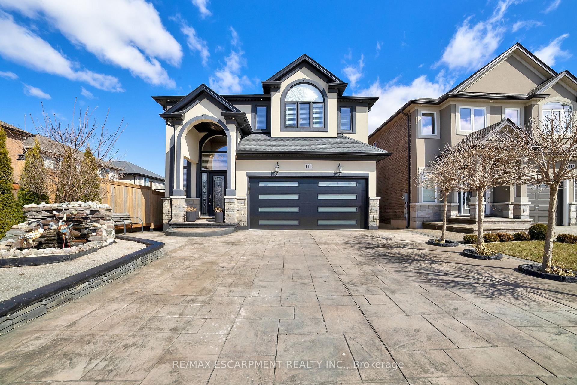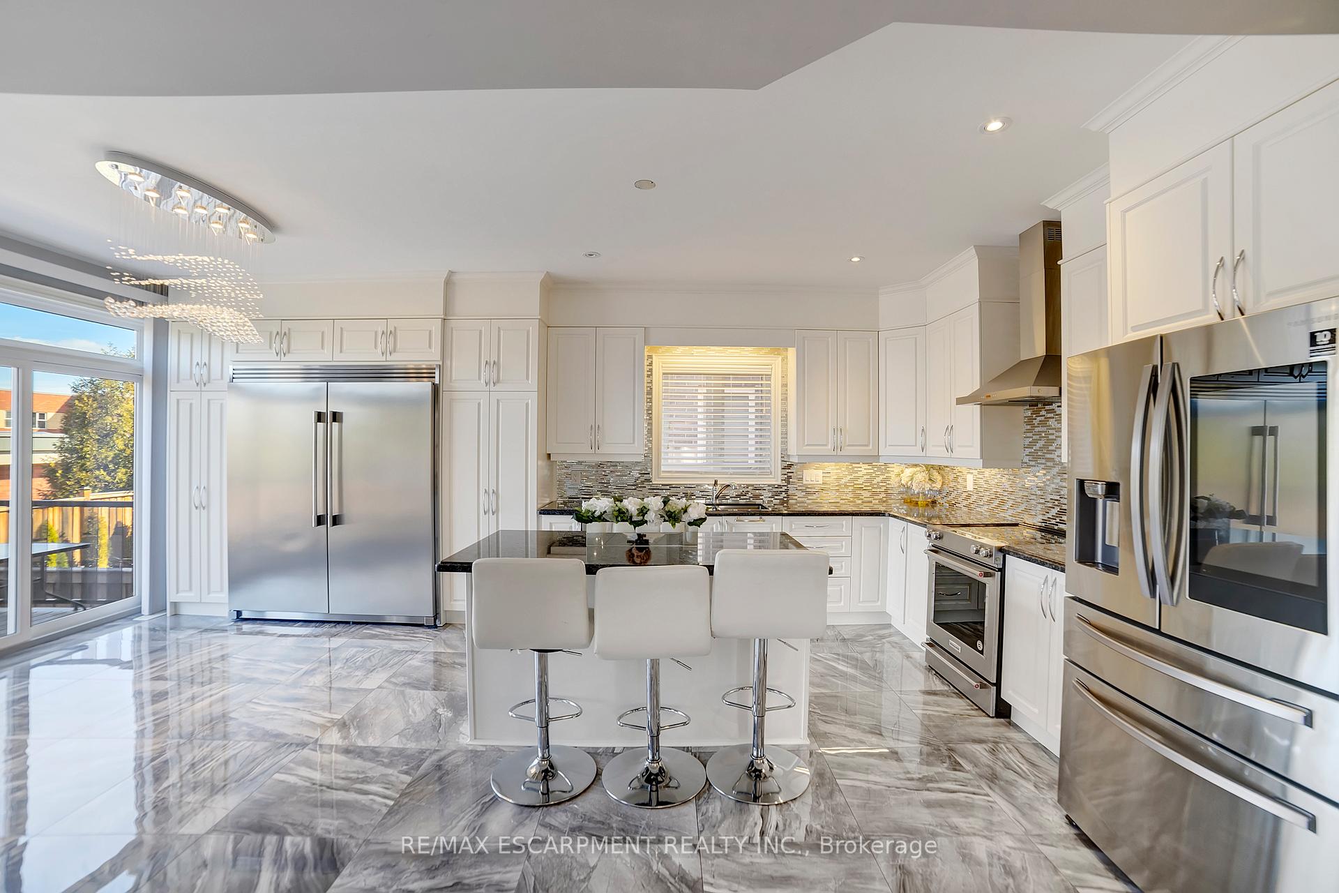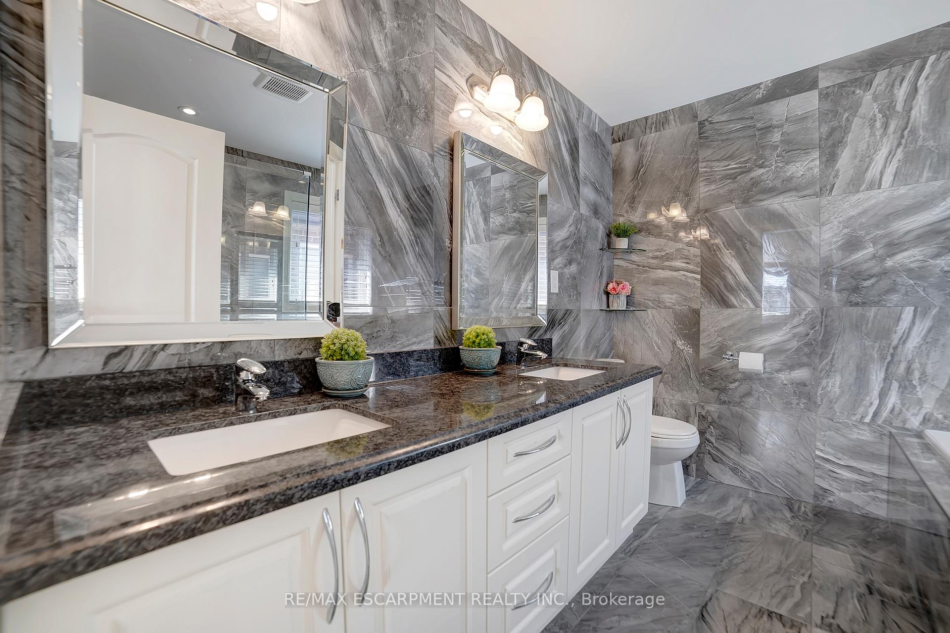 Simply Stunning!. Executive four bedroom all brick beauty ,approx. 3,750 sq. ft of quality fully finished living space, Approx $200,000 in overall extra improvements (list available) . Built in 2017 tastefully crafted both inside and out. Inviting foyer with 18ft soaring front entry with leaded glass doors and arched window ,offering high-end porcelain tiles thru out main and lower level. Open concept plan, great room with mirror accents, dream kitchen with glass back splash, high-end stainless appliances and an additional side by side fridge with full freezer and pantry, granite counter tops ,accent pot lighting, wainscoting thru-out. Master bedroom features luxurious private ensuite ,second floor laundry room. Fully finished bright lower level features a large second kitchen with new fridge and stove, recreation room ,stunning fireplace opulent large bath room. A separate exterior side door could easily create a private entry to a in-law suite with multi look out windows. Walk out too 16f x 20ft composite deck with glass railings. impressive, stamped concrete patio, pathways and double driveway, soothing distinctive water fountain, fully finished garage with porcelain wall tiles and epoxy flooring , exterior accent security lighting. Very close to all amenities, shopping, Limeridge Mall, parks ,ymca gym and rec center bus trans to upper and Lower downtown city. Ideal for the commuter just 4 minute drive to the Alexander Link and + Red hill Expressway to either Toronto or Niagara bound destinations. Nothing to do but Enjoy!!
