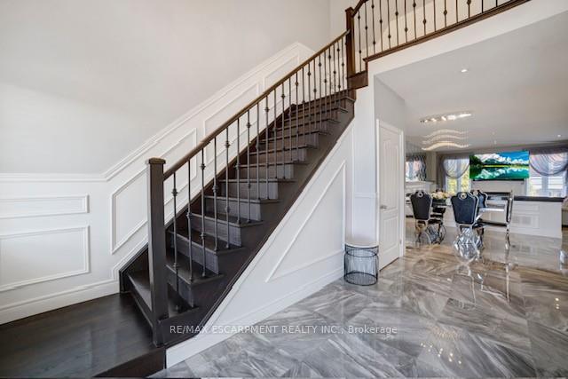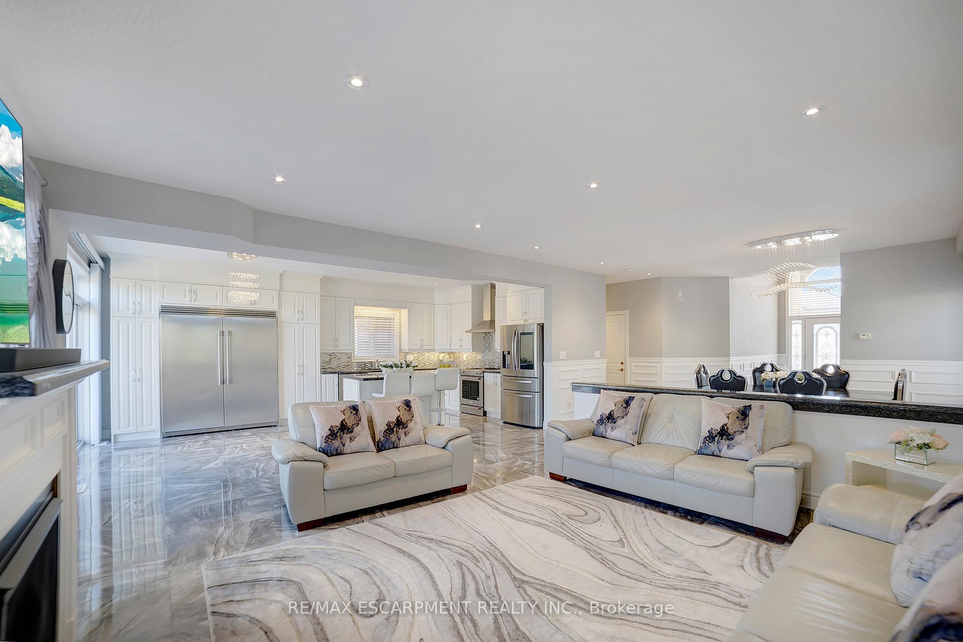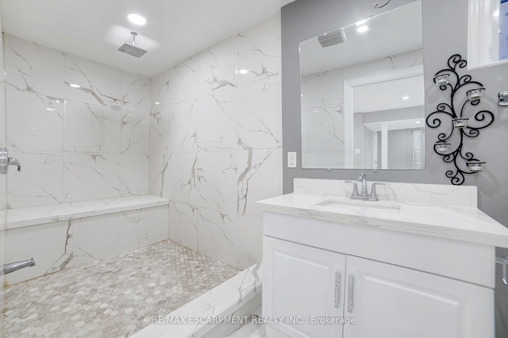 Simply Stunning!. Executive four bedroom all brick beauty ,approx. 3,750 sq. ft of quality fully finished living space, Approx $200,000 in overall extra improvements (list available) . Built in 2017 tastefully crafted both inside and out. Inviting foyer with 18ft soaring front entry with leaded glass doors and arched window ,offering high-end porcelain tiles thru out main and lower level. Open concept plan, great room with mirror accents, dream kitchen with glass back splash, high-end stainless appliances and an additional side by side fridge with full freezer and pantry, granite counter tops ,accent pot lighting, wainscoting thru-out. Master bedroom features luxurious private ensuite ,second floor laundry room. Fully finished bright lower level features a large second kitchen with new fridge and stove, recreation room ,stunning fireplace opulent large bath room. A separate exterior side door could easily create a private entry to a in-law suite with multi look out windows. Walk out too 16f x 20ft composite deck with glass railings. impressive, stamped concrete patio, pathways and double driveway, soothing distinctive water fountain, fully finished garage with porcelain wall tiles and epoxy flooring , exterior accent security lighting. Very close to all amenities, shopping, Limeridge Mall, parks ,ymca gym and rec center bus trans to upper and Lower downtown city. Ideal for the commuter just 4 minute drive to the Alexander Link and + Red hill Expressway to either Toronto or Niagara bound destinations. Nothing to do but Enjoy!!