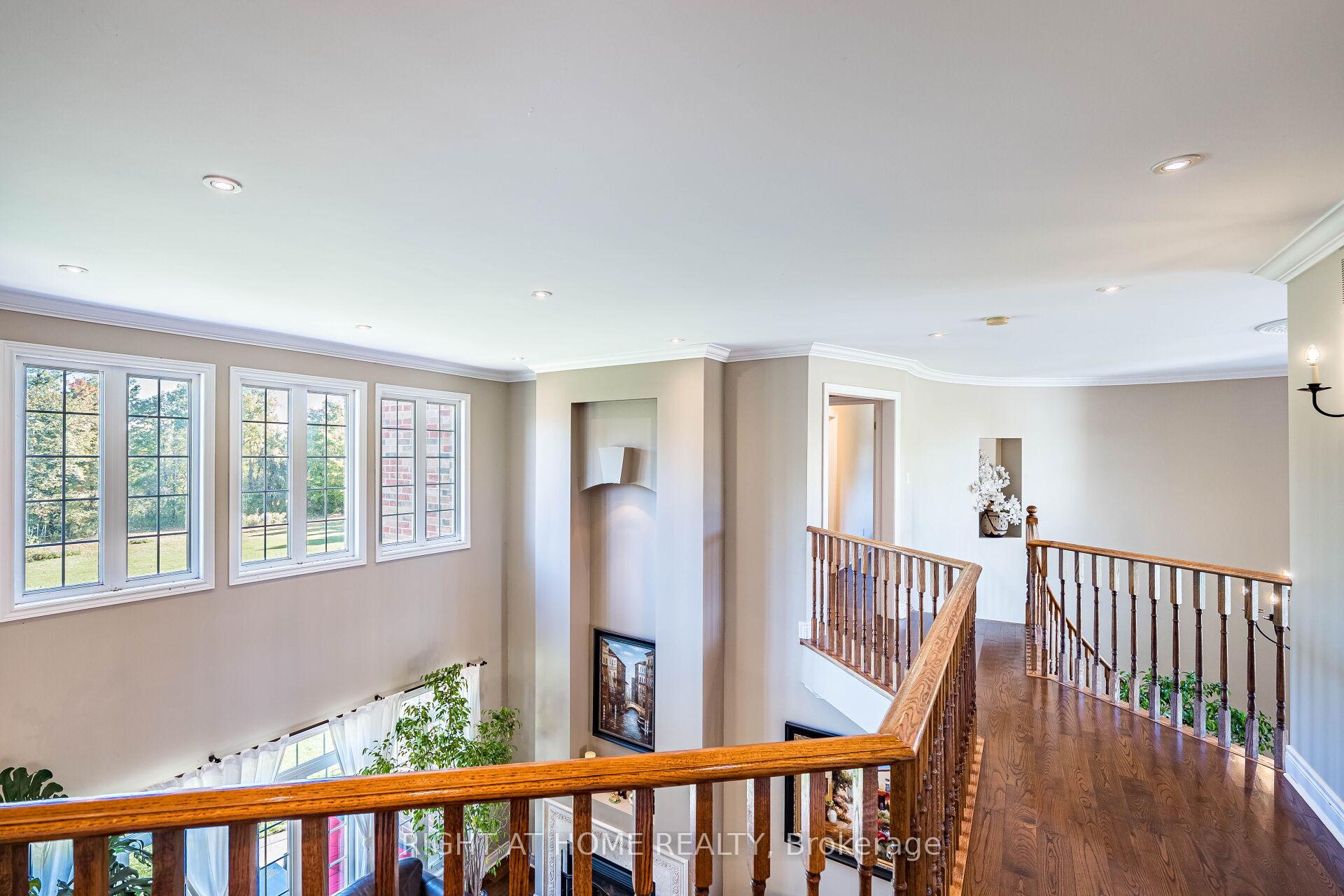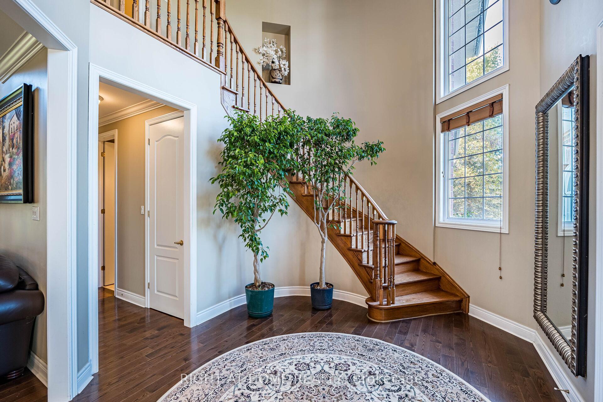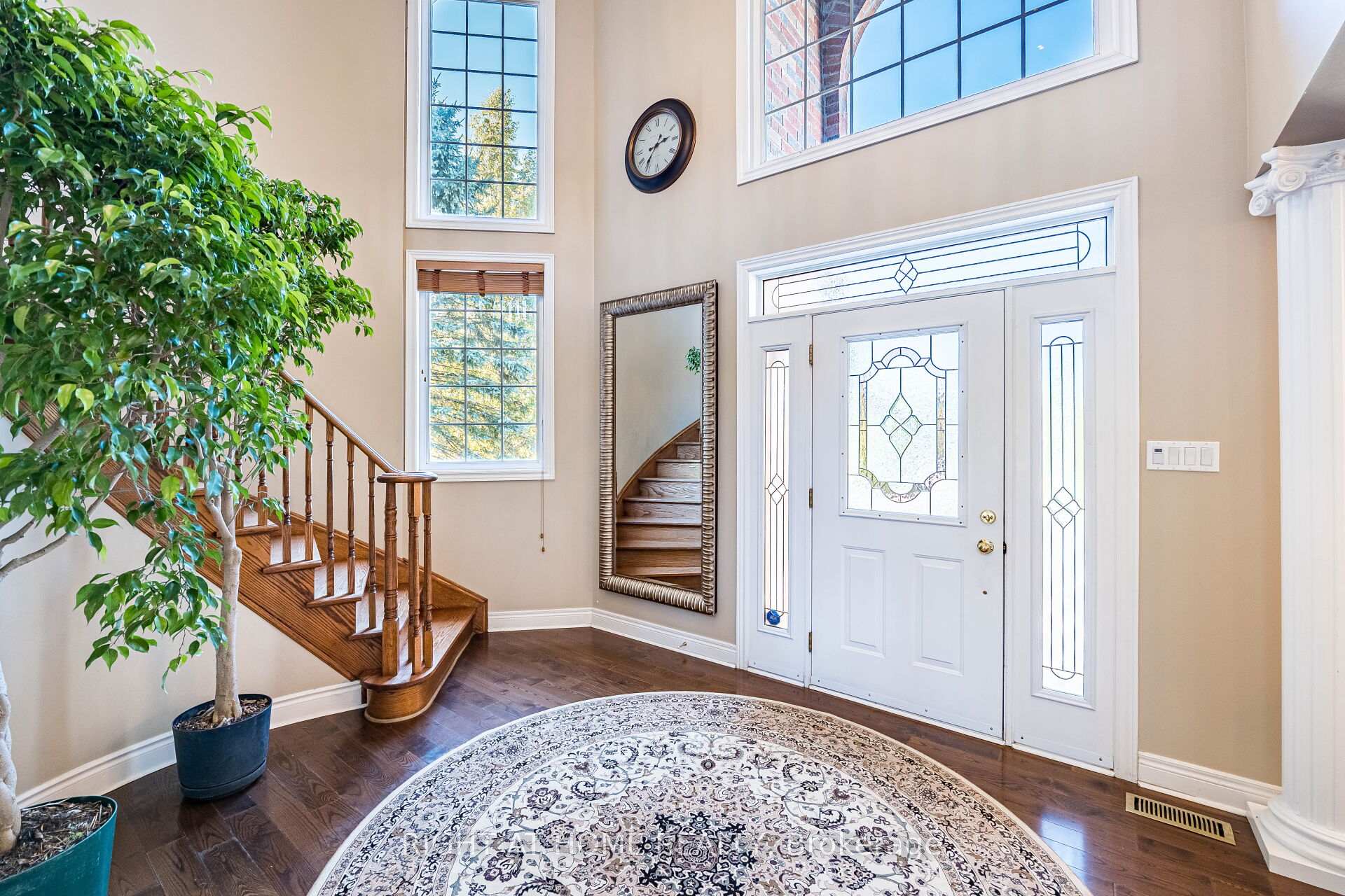 Step into this luxurious 5-bedroom custom-built residence, ideally positioned on a quiet court in the heart of Brookville. Nestled on a breathtaking 2-acre lot, this exceptional Churchill Estates home offers over 4,000 sq ft of elegant living space, privacy, and natural beauty. The main level features a spacious primary suite with a private ensuite, while the heart of the home is an entertainers dream: a chef-inspired kitchen with stainless steel appliances, centre island, and expansive breakfast area that opens to a large deck, perfect for indoor-outdoor living. The beautifully landscaped backyard provides a peaceful retreat surrounded by mature trees. Upstairs, youll find four additional generously sized, light-filled bedrooms, each with walk-in closets. Additional highlights include main floor laundry, a large mudroom, ample closet and storage space, and an oversized driveway with parking for 10+ vehicles. Located just minutes from major highways, this home combines luxury, comfort, and convenience in one of Miltons most sought-after communities.