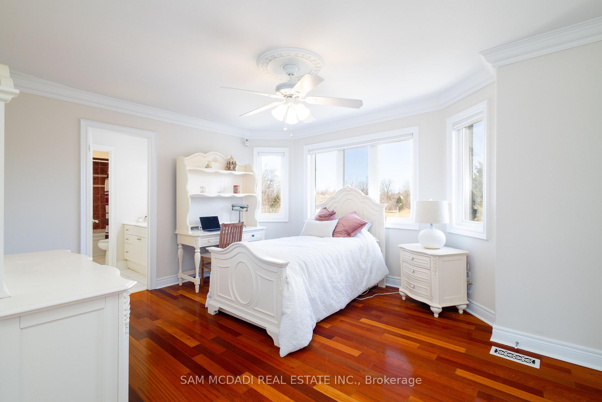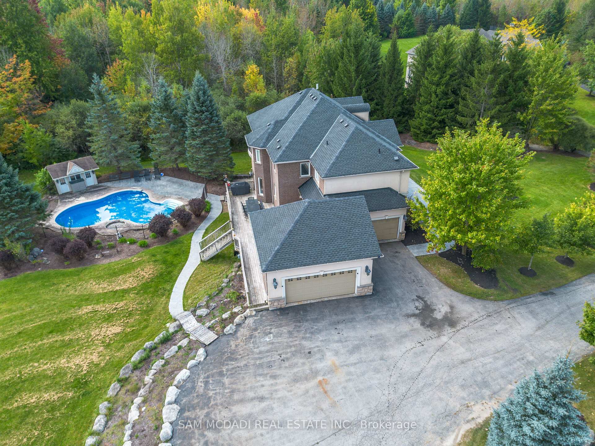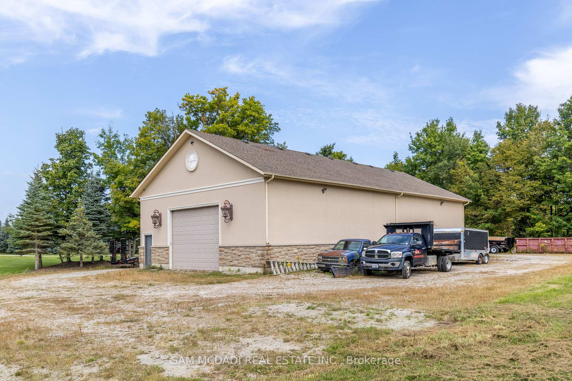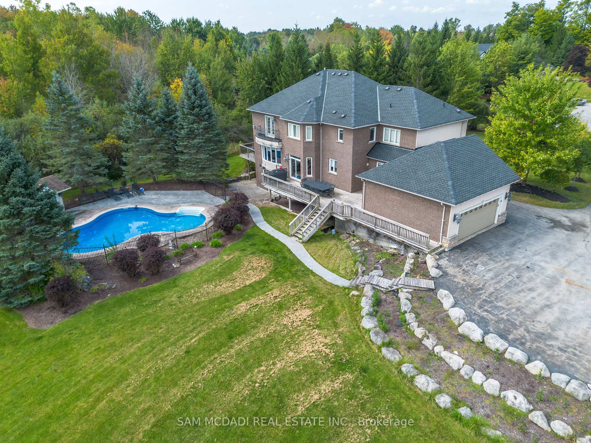 Welcome to this exquisite custom-built home, nestled in a private estate of Brookville on a stunning 5-acre property, offering over 6,000 square feet of luxurious living space. This exceptional Churchill Estates residence features 5 spacious bedrooms and 2 additional bedrooms in the fully finished walk-out basement ideal for in-law suite/nanny suite, along with 5 beautifully appointed bathrooms, and the property features a custom-built massive 3,000+ square foot custom hobby farm with mezzanine, perfect for a variety of uses, like an indoor basketball court, Private Gym Etc Step inside and be captivated by the gourmet kitchen, equipped with top-of-the-line upgraded appliances. The home is adorned with pot lights, hardwood, and crown moulding. Every bathroom in the home is either semi-ensuite or ensuite, ensuring optimal comfort and privacy for all.The primary bedroom is a true retreat, complete with a Juliet balcony that offers sweeping views of the surrounding property. An additional walk-out balcony is accessible from the den, providing the perfect relaxing space. Hardwood floors flow seamlessly throughout the home. Outdoor living is just as impressive, with a lush, well-maintained yard and a heated private swimming pool, offering a Muskoka-like experience right at your doorstep. The seller has spared no expense, investing thousands in upgrades to ensure the property is a true showcase of luxury living. This estate is the epitome of elegance and convenience, offering unparalleled amenities and an unbeatable location. It truly is the ultimate in sophisticated living and within commutable distance.