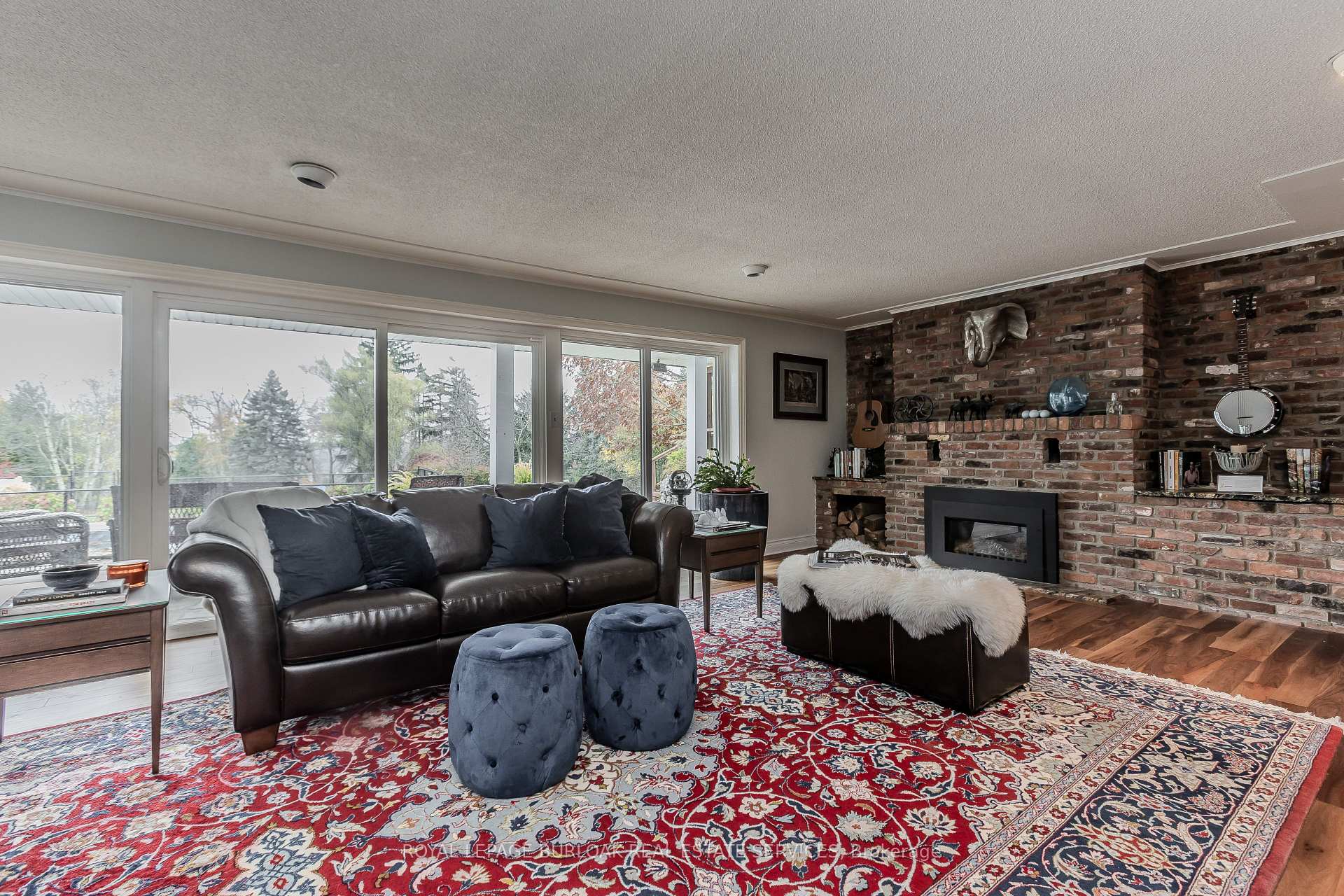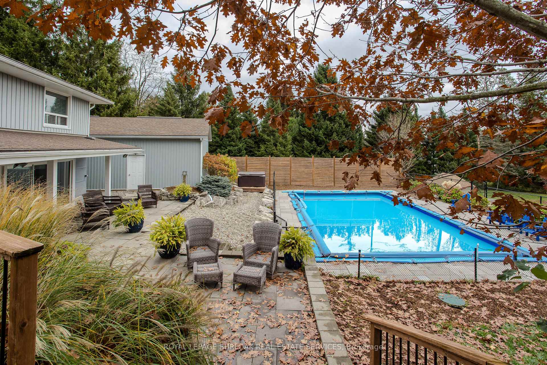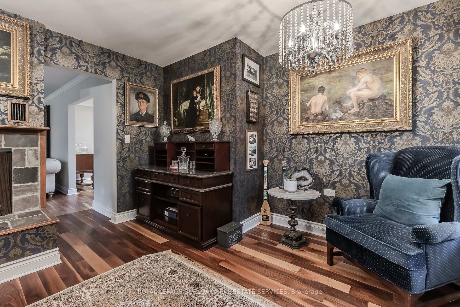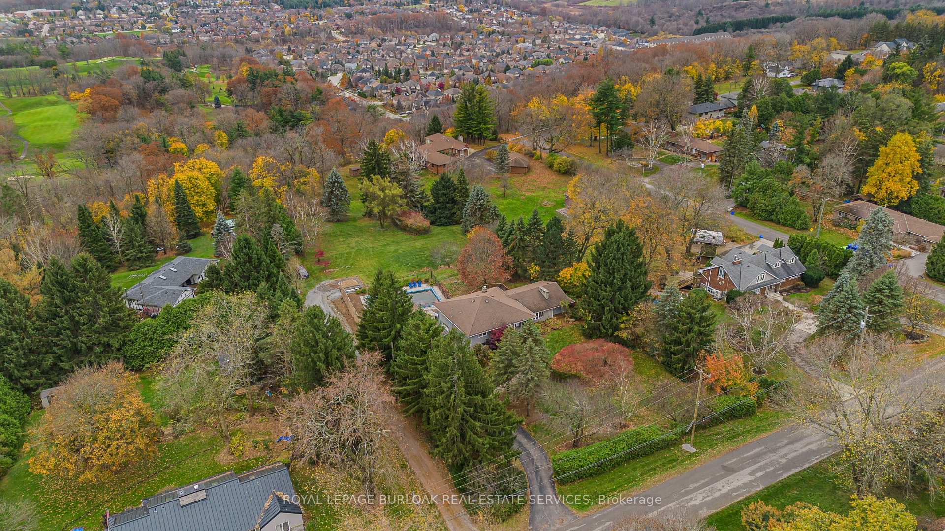 Welcome to this charming 4-level side split, originally crafted for the Grafton family in 1954. Situated on a serene 1.09-acre lot, this property boasts privacy and beauty with mature trees, a long driveway, and ample front yard space accommodating parking for 10+ vehicles, including a 20×40 garage with a lift. Perfectly located, its just 3 minutes from Dundas Valley Golf & Curling Club, 5 minutes to quaint downtown Dundas, and close to scenic trails, waterfalls, and major routes. Inside, find a bright, welcoming ambiance with hardwood throughout. The eat-in kitchen leads to a dining room with elegant coffered ceilings. The Great Room on the main level is a showstopper, featuring floor-to-ceiling windows, a wood burning fireplace, one of 5 fireplaces in the home, and an adjoining family room ideal for gatherings. Upstairs, enjoy a private primary sanctuary with views of the escarpment with a 4-piece ensuite, alongside an additional 3-piece bath with a glass shower. The lower level offers a partially finished walkup with a billiard room, which could be used as a fourth bedroom, patio access, storage, utility room, and a rough-in for a washroom. Outdoors, a private backyard oasis awaits, complete with a hot tub, a recently painted (2024) in-ground pool, and expansive views of the escarpment and golf course. New furnace installed in 2022. Don’t miss this exceptional Greensville home!