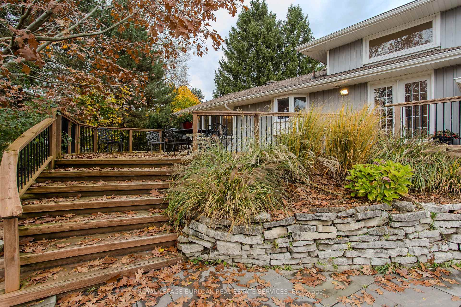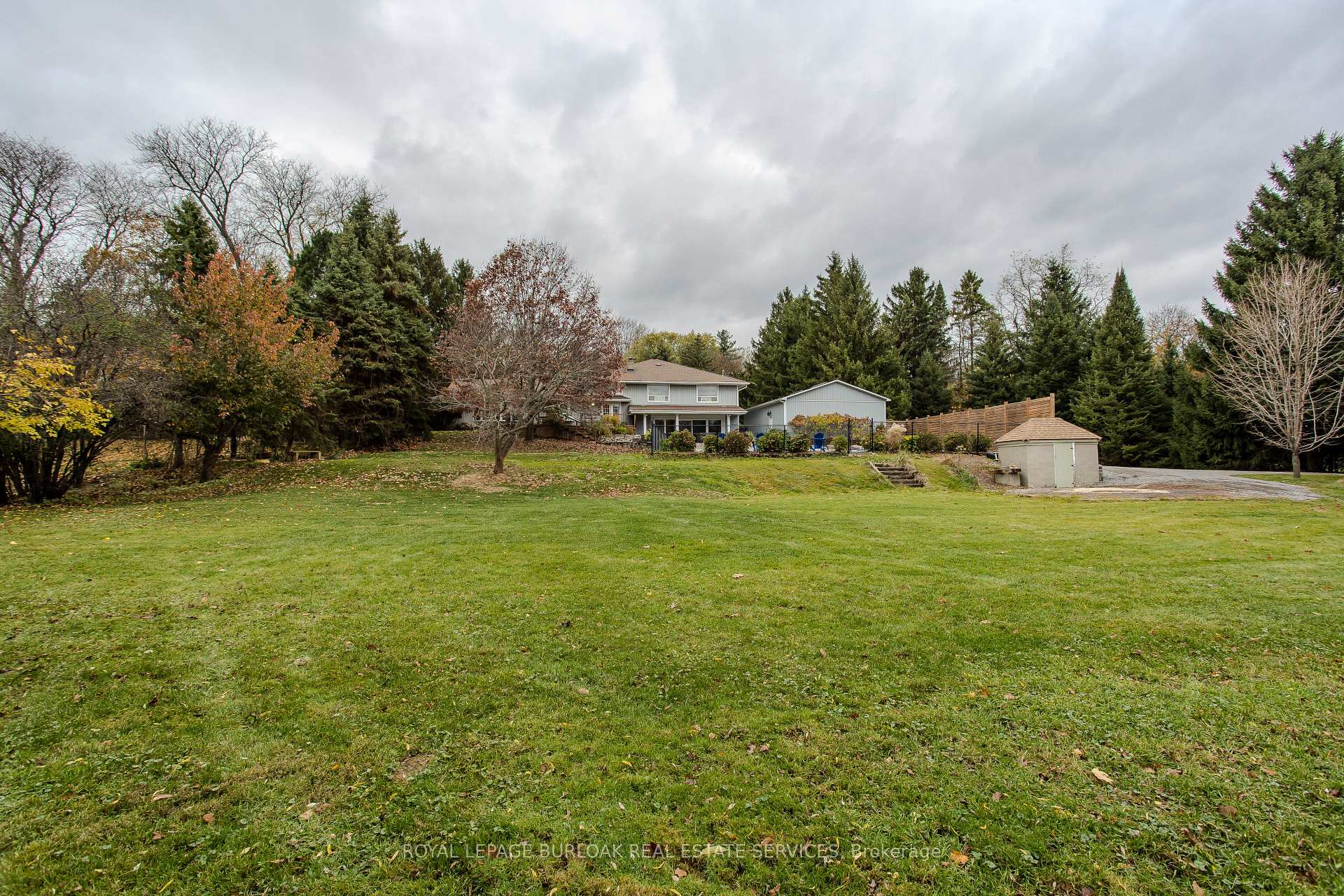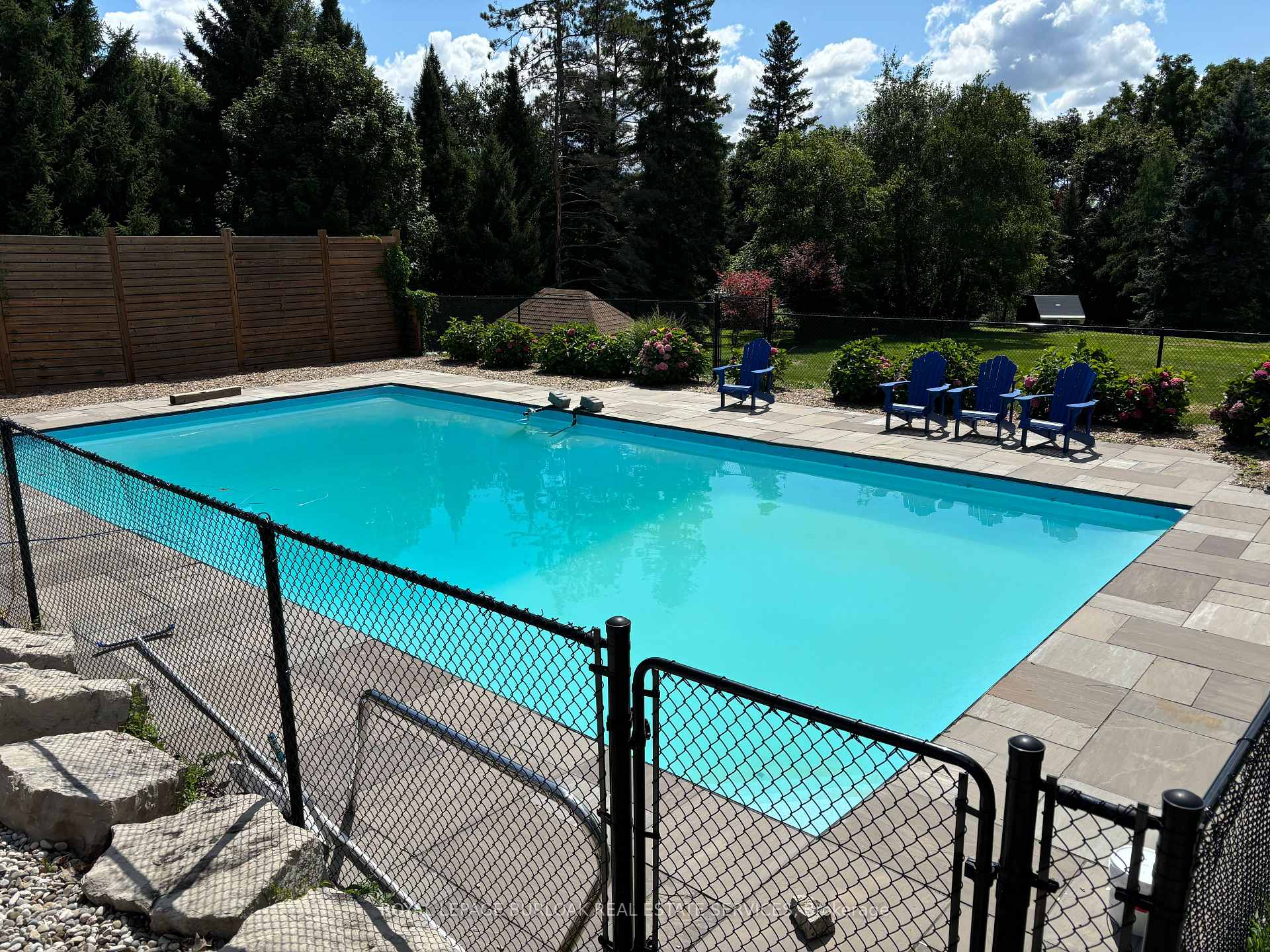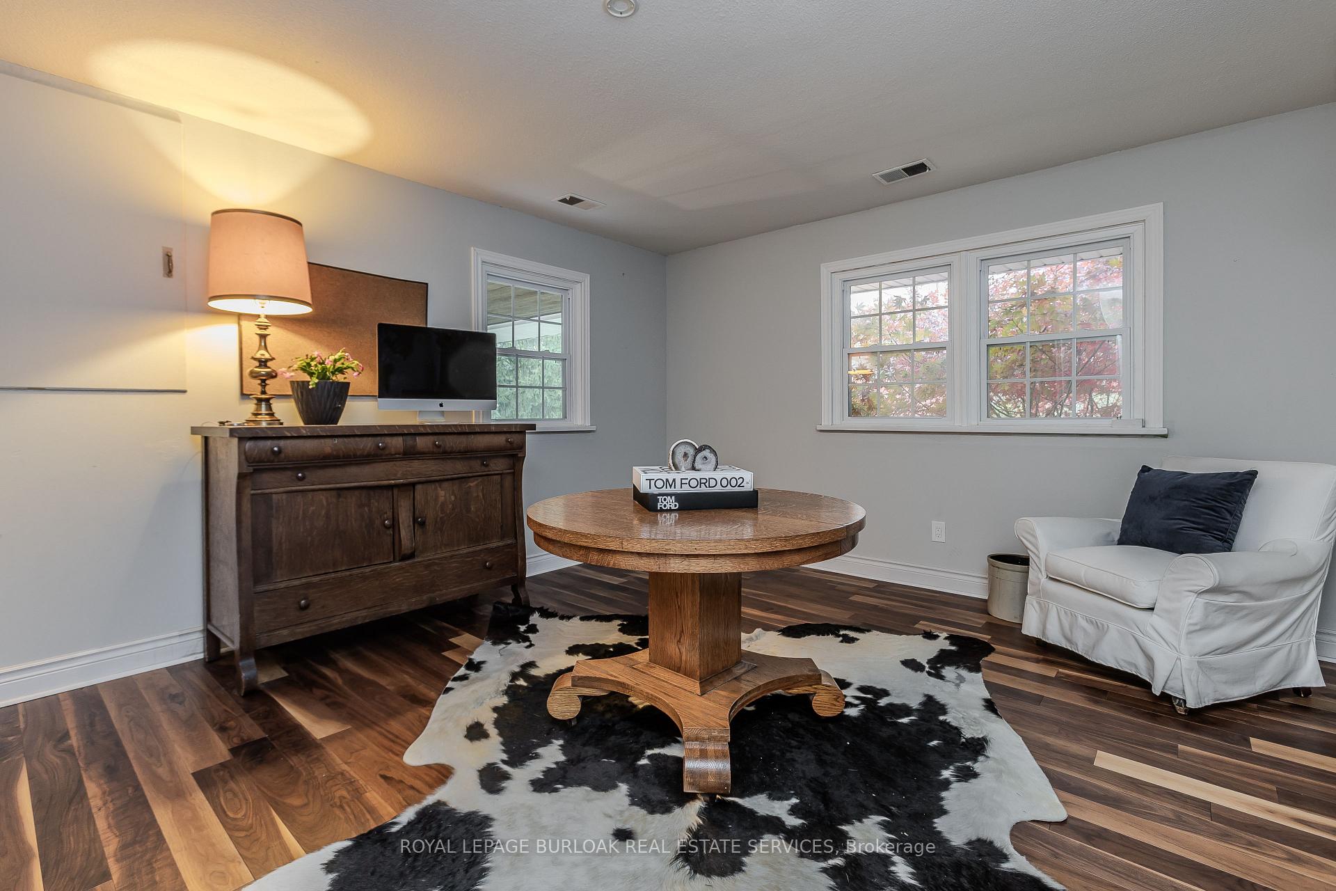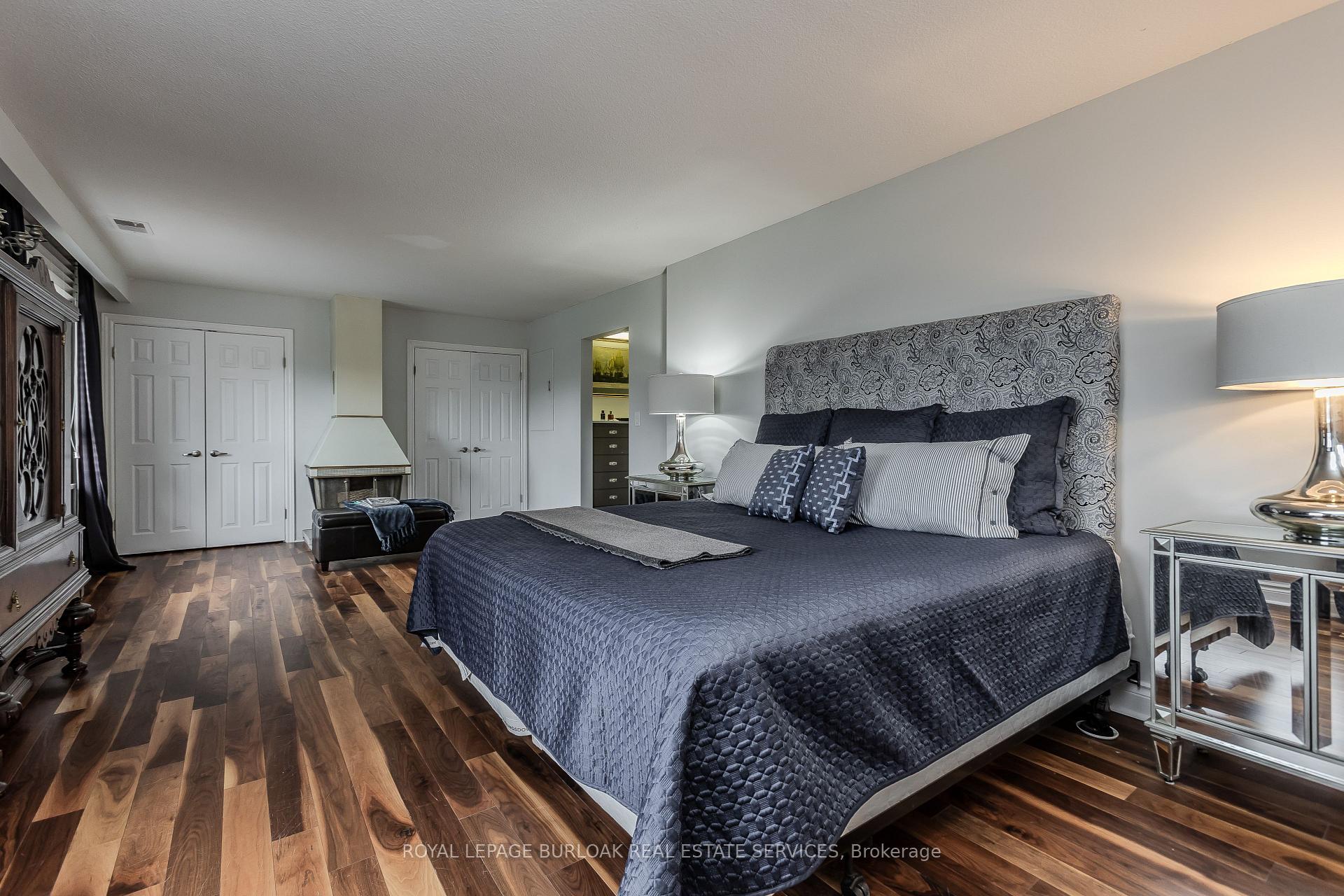 Welcome to this charming 4-level side split, originally crafted for the Grafton family in 1954. Situated on a serene 1.09-acre lot, this property boasts privacy and beauty with mature trees, a long driveway, and ample front yard space accommodating parking for 10+ vehicles, including a 20×40 garage with a lift. Perfectly located, its just 3 minutes from Dundas Valley Golf & Curling Club, 5 minutes to quaint downtown Dundas, and close to scenic trails, waterfalls, and major routes. Inside, find a bright, welcoming ambiance with hardwood throughout. The eat-in kitchen leads to a dining room with elegant coffered ceilings. The Great Room on the main level is a showstopper, featuring floor-to-ceiling windows, a wood burning fireplace, one of 5 fireplaces in the home, and an adjoining family room ideal for gatherings. Upstairs, enjoy a private primary sanctuary with views of the escarpment with a 4-piece ensuite, alongside an additional 3-piece bath with a glass shower. The lower level offers a partially finished walkup with a billiard room, which could be used as a fourth bedroom, patio access, storage, utility room, and a rough-in for a washroom. Outdoors, a private backyard oasis awaits, complete with a hot tub, a recently painted (2024) in-ground pool, and expansive views of the escarpment and golf course. New furnace installed in 2022. Don’t miss this exceptional Greensville home!