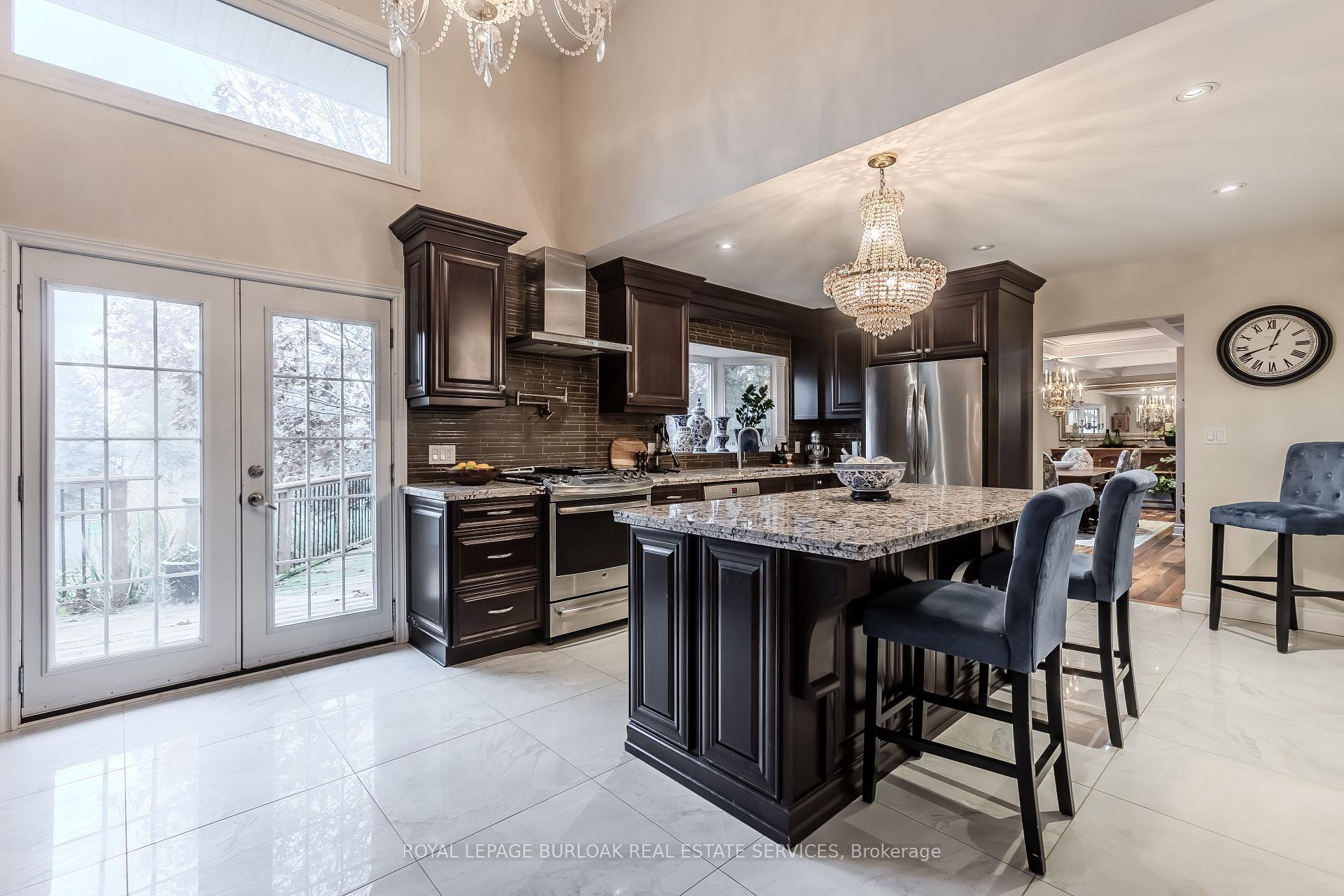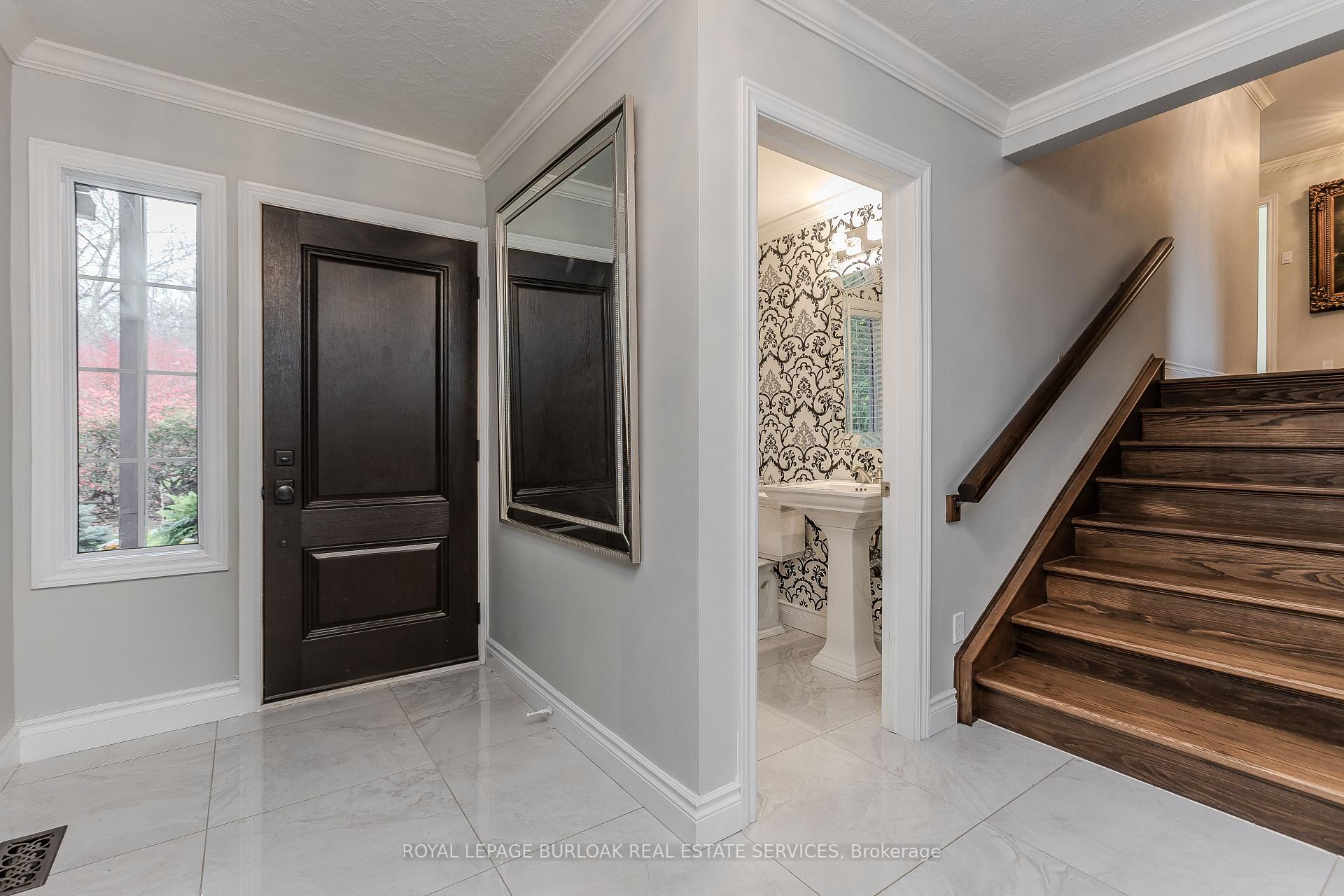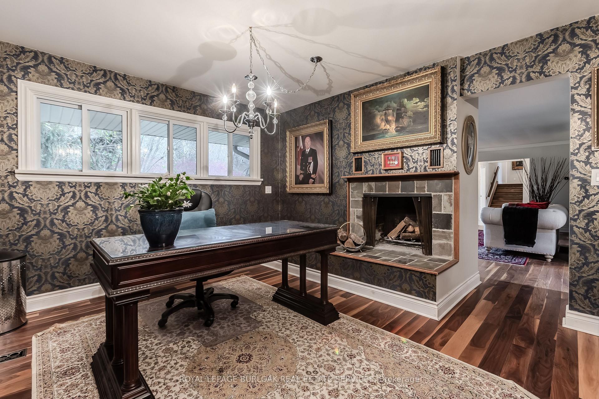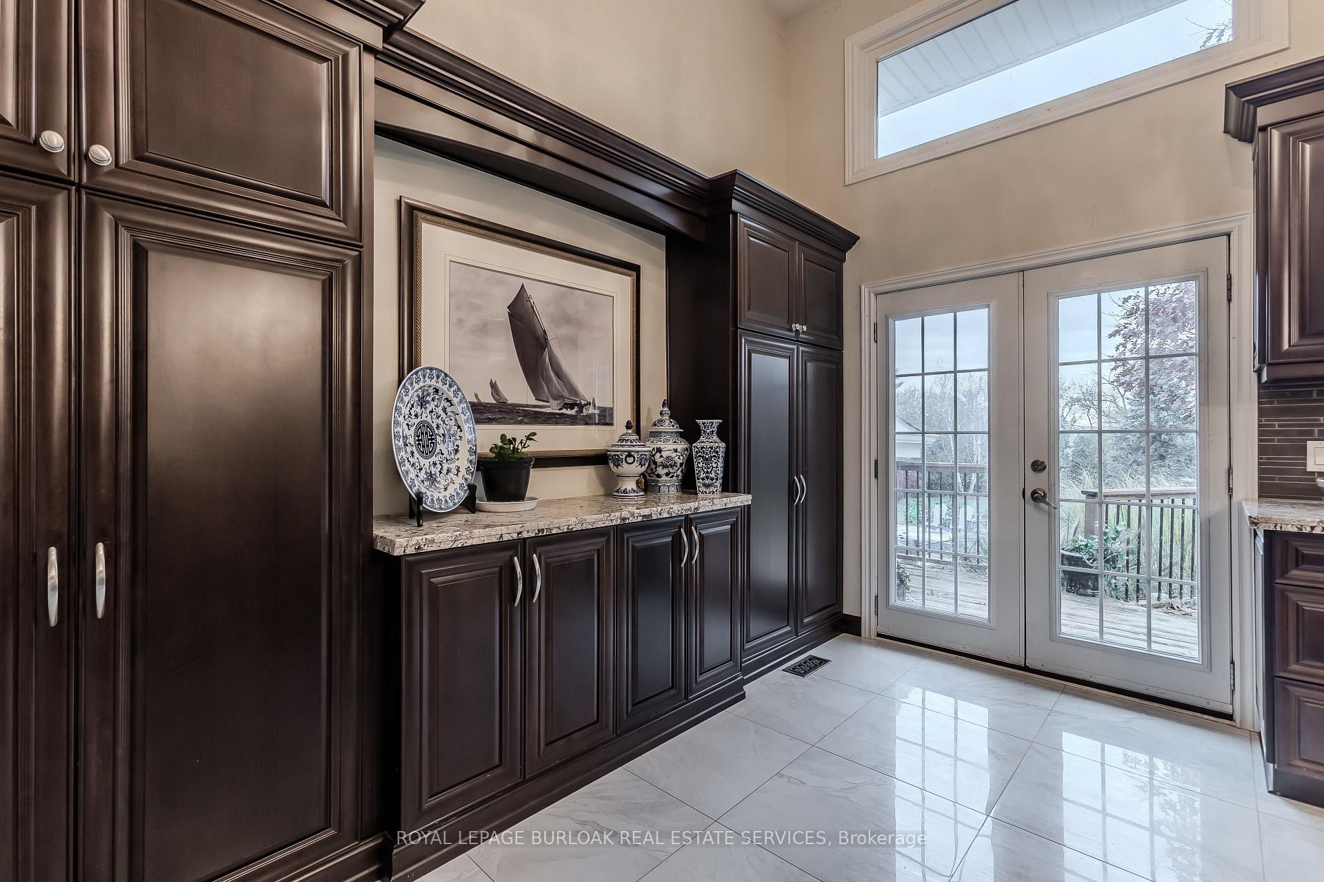 Welcome to this charming 4-level side split, originally crafted for the Grafton family in 1954. Situated on a serene 1.09-acre lot, this property boasts privacy and beauty with mature trees, a long driveway, and ample front yard space accommodating parking for 10+ vehicles, including a 20×40 garage with a lift. Perfectly located, its just 3 minutes from Dundas Valley Golf & Curling Club, 5 minutes to quaint downtown Dundas, and close to scenic trails, waterfalls, and major routes. Inside, find a bright, welcoming ambiance with hardwood throughout. The eat-in kitchen leads to a dining room with elegant coffered ceilings. The Great Room on the main level is a showstopper, featuring floor-to-ceiling windows, a wood burning fireplace, one of 5 fireplaces in the home, and an adjoining family room ideal for gatherings. Upstairs, enjoy a private primary sanctuary with views of the escarpment with a 4-piece ensuite, alongside an additional 3-piece bath with a glass shower. The lower level offers a partially finished walkup with a billiard room, which could be used as a fourth bedroom, patio access, storage, utility room, and a rough-in for a washroom. Outdoors, a private backyard oasis awaits, complete with a hot tub, a recently painted (2024) in-ground pool, and expansive views of the escarpment and golf course. New furnace installed in 2022. Don’t miss this exceptional Greensville home!