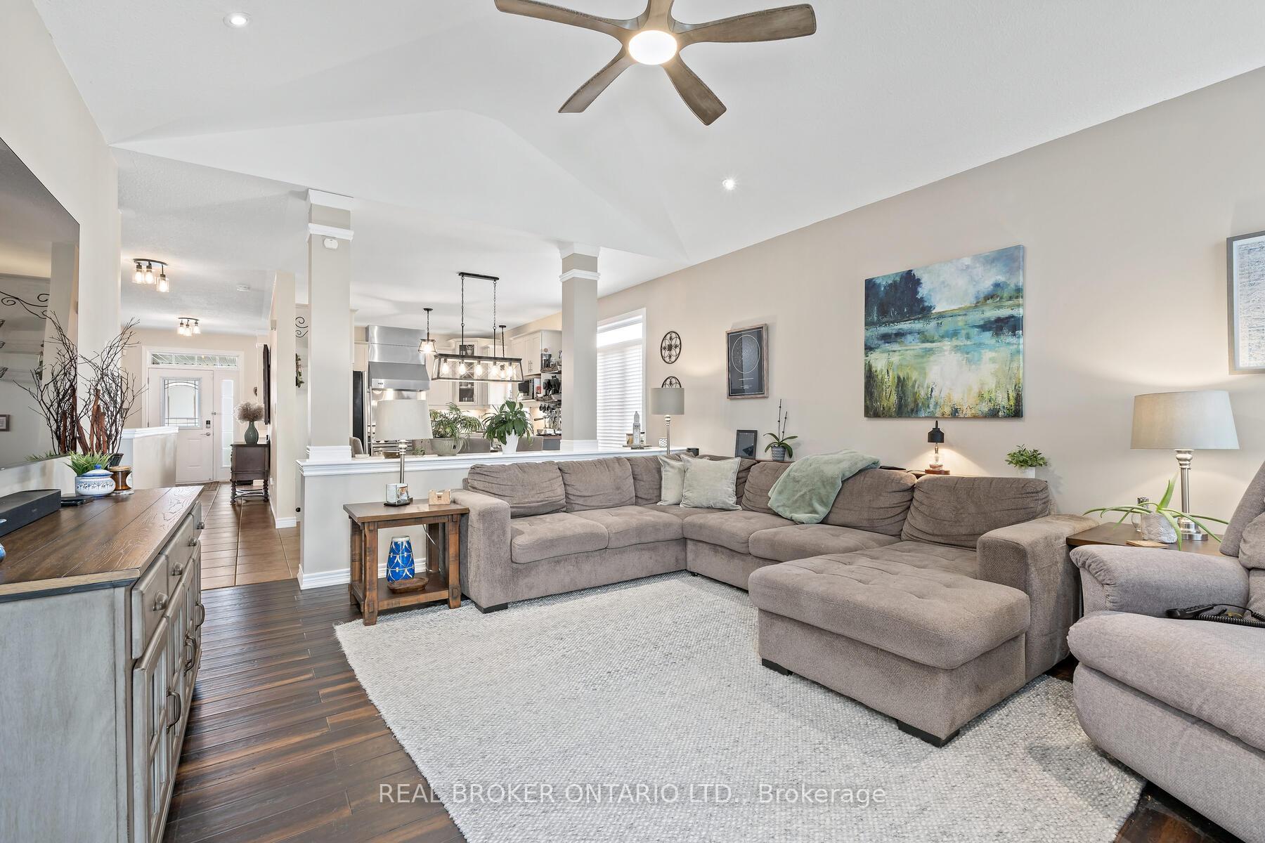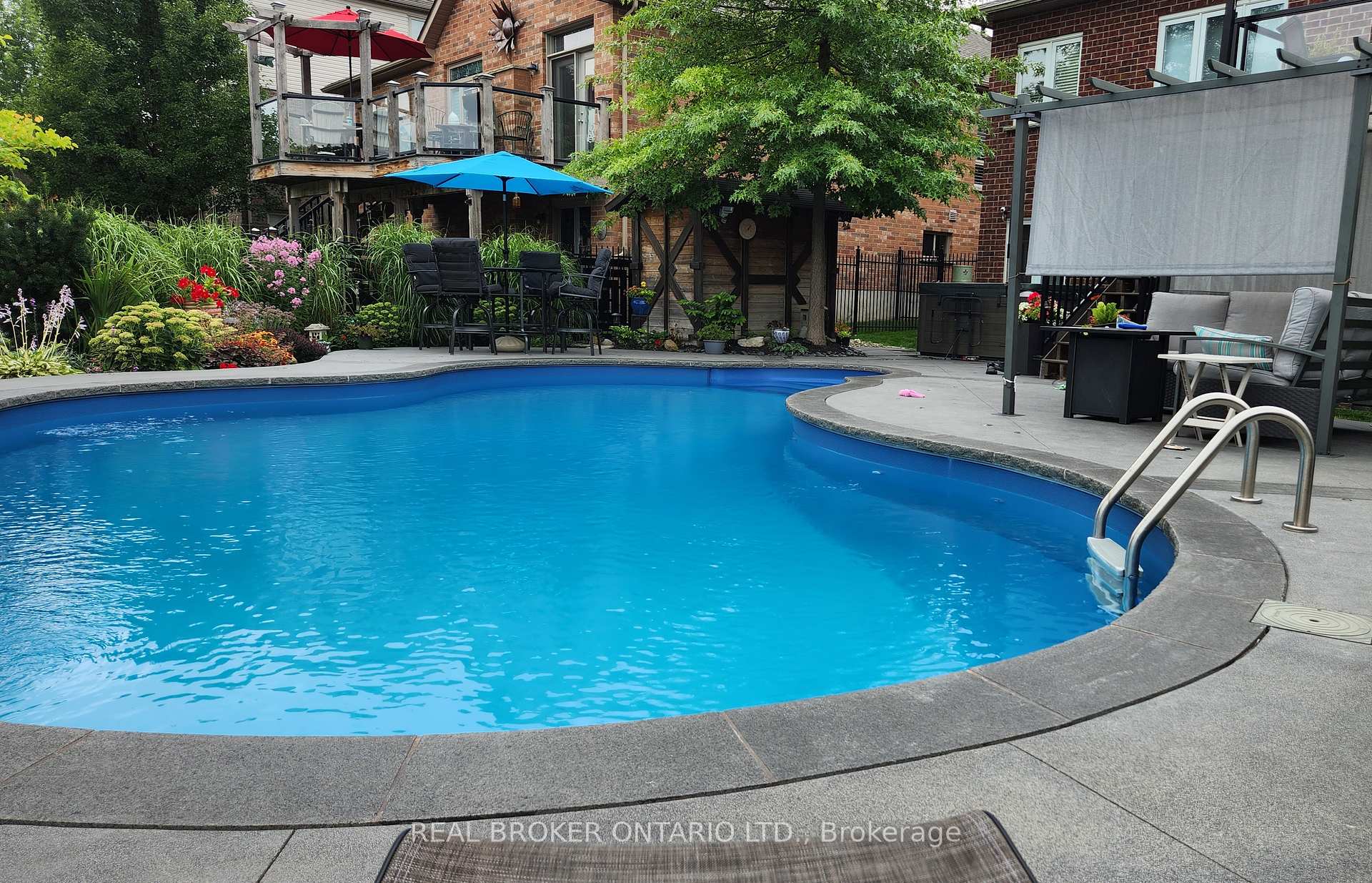 Welcome to this beautifully maintained bungalow located on one of Rockwood’s most desirable courts, offering privacy, tranquility, and exceptional outdoor living. This stunning home features 9′ ceilings on the main level, an upgraded kitchen with high-end appliances including a Viking gas stove, taller upper cabinetry with crown moulding, and granite countertops-perfect for both everyday living and entertaining.The spacious great room boasts vaulted ceilings with recessed lighting, creating a bright and open atmosphere. The primary bedroom suite offers peaceful pond views and includes a luxurious 5-piece ensuite. A convenient main-floor laundry rough-in adds flexibility for future use.The fully finished walk-out basement provides excellent additional living space, featuring two generously sized bedrooms, a 3-piece bathroom, and abundant storage-ideal for guests, extended family, or a home office setup.Step outside to your private backyard retreat, complete with an inground pool (2019), Trex deck with stairs, and hot tub, creating a true resort-style oasis-perfect for summer entertaining and year-round enjoyment.Located in a quiet, family-friendly neighbourhood close to parks, conservation areas, trails, schools, and amenities, this home offers an outstanding lifestyle opportunity in the heart of Rockwood, Ontario.