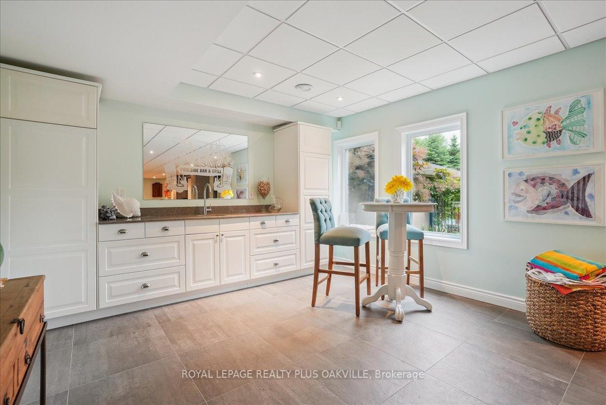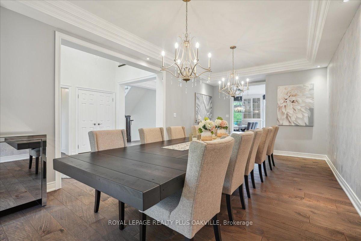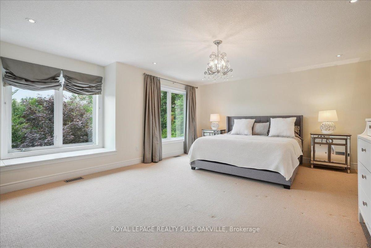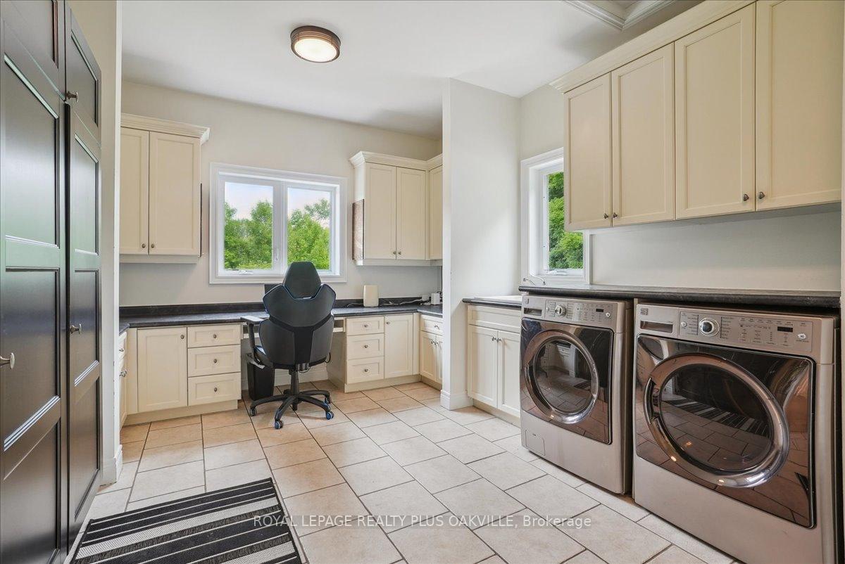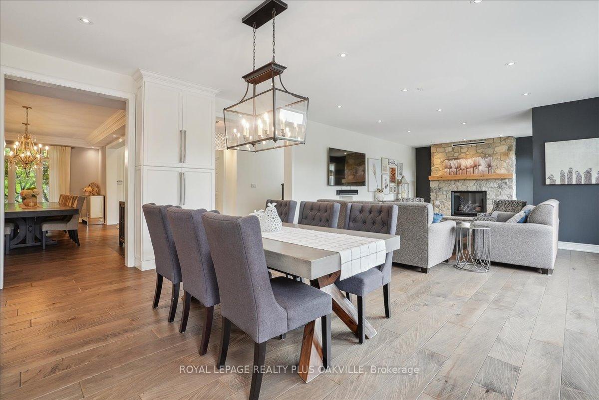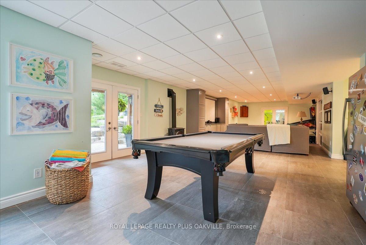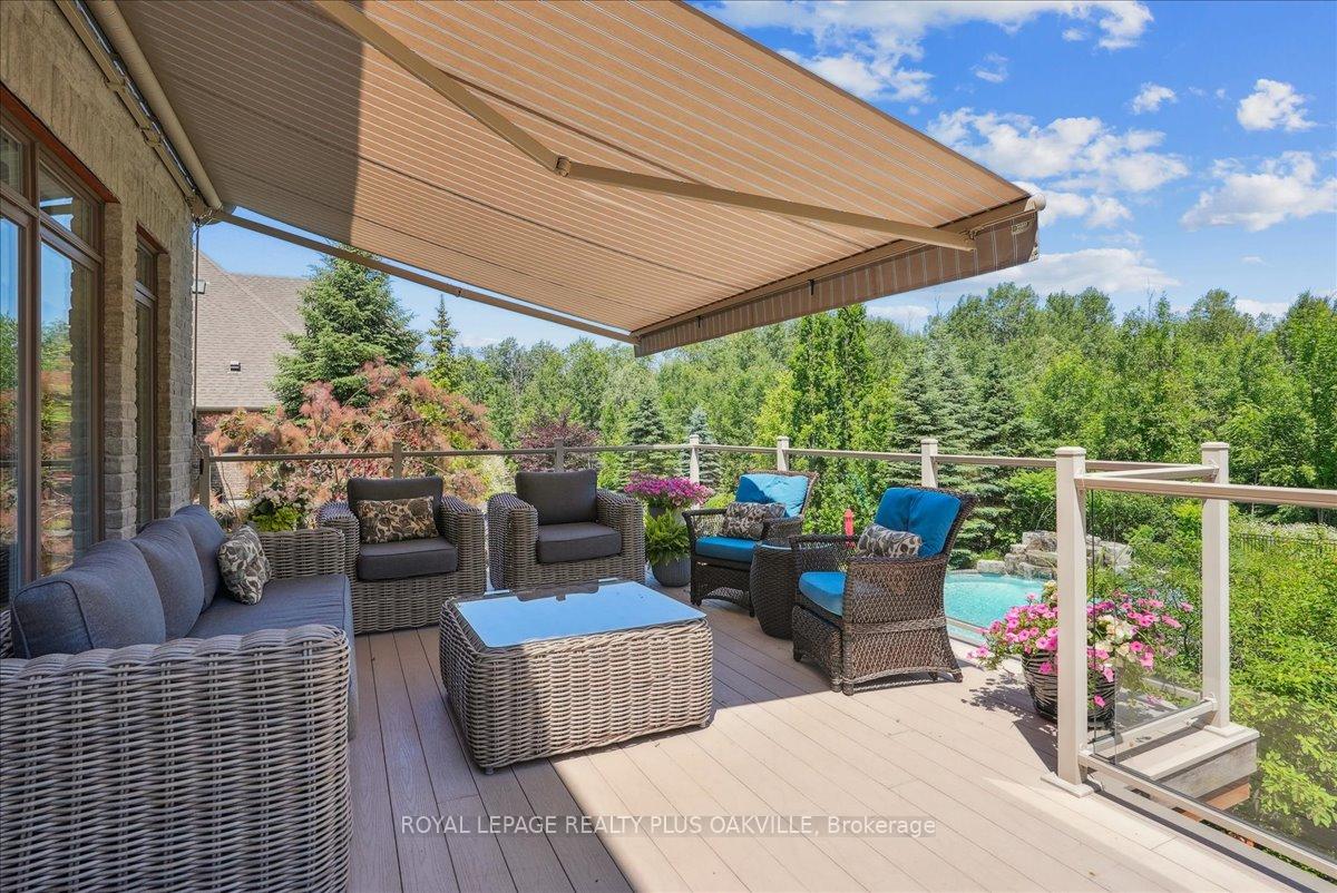 Beautifully designed executive home offering over 5,700 sq ft of finished living space on a quiet court, with exceptional privacy and stunning treed views. The spacious main floor features an entertainers gourmet kitchen with full fridge and freezer, 48-inch range, hidden coffee bar, and an oversized island with seating for six+. The kitchen opens to the eat-in area and living room with hand picked stone fireplace, plus a formal dining room that seats 16+. Main-floor laundry and a convenient three-car garage with large driveway parking for approximately 8 cars. Upstairs you’ll find five generous bedrooms and three full baths, including a luxurious primary suite with oversized ensuite, two walk-in closets, and a private exercise room. A second bedroom with its own ensuite is perfect for guests or family. The finished walk-out basement is designed for entertaining, with a full bar, pool table area, dance room, bathroom, and plenty of storage. Step outside to your backyard oasis featuring a sparkling pool with waterfall, diving rock, and fountains. Enjoy both a dedicated pool house and a separate outdoor living room with stone fireplace and cedar shake roof. Host gatherings at the built-in poolside barbecue and bar area, all surrounded by mature trees for ultimate seclusion. Natural gas is at the property rare for country living!