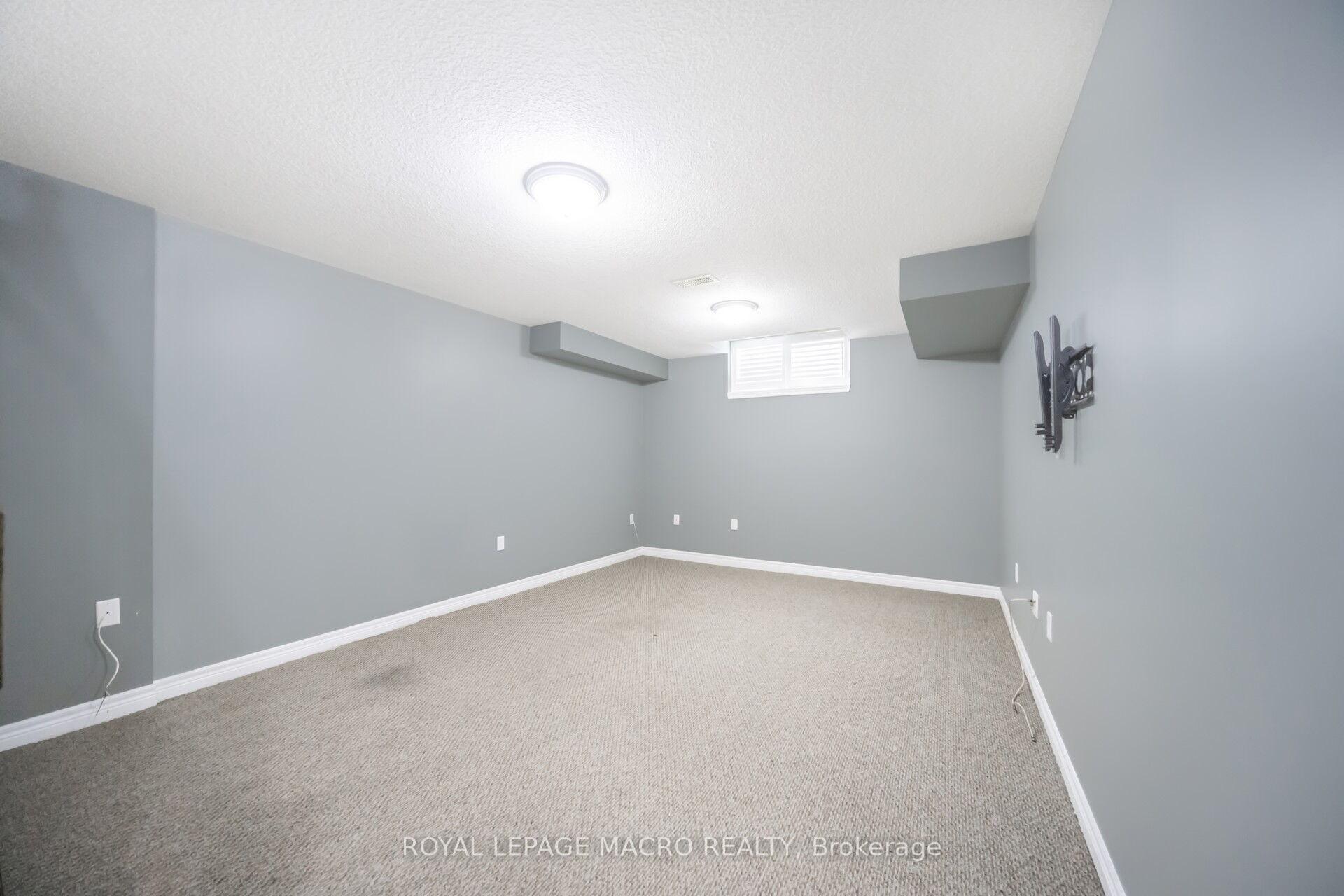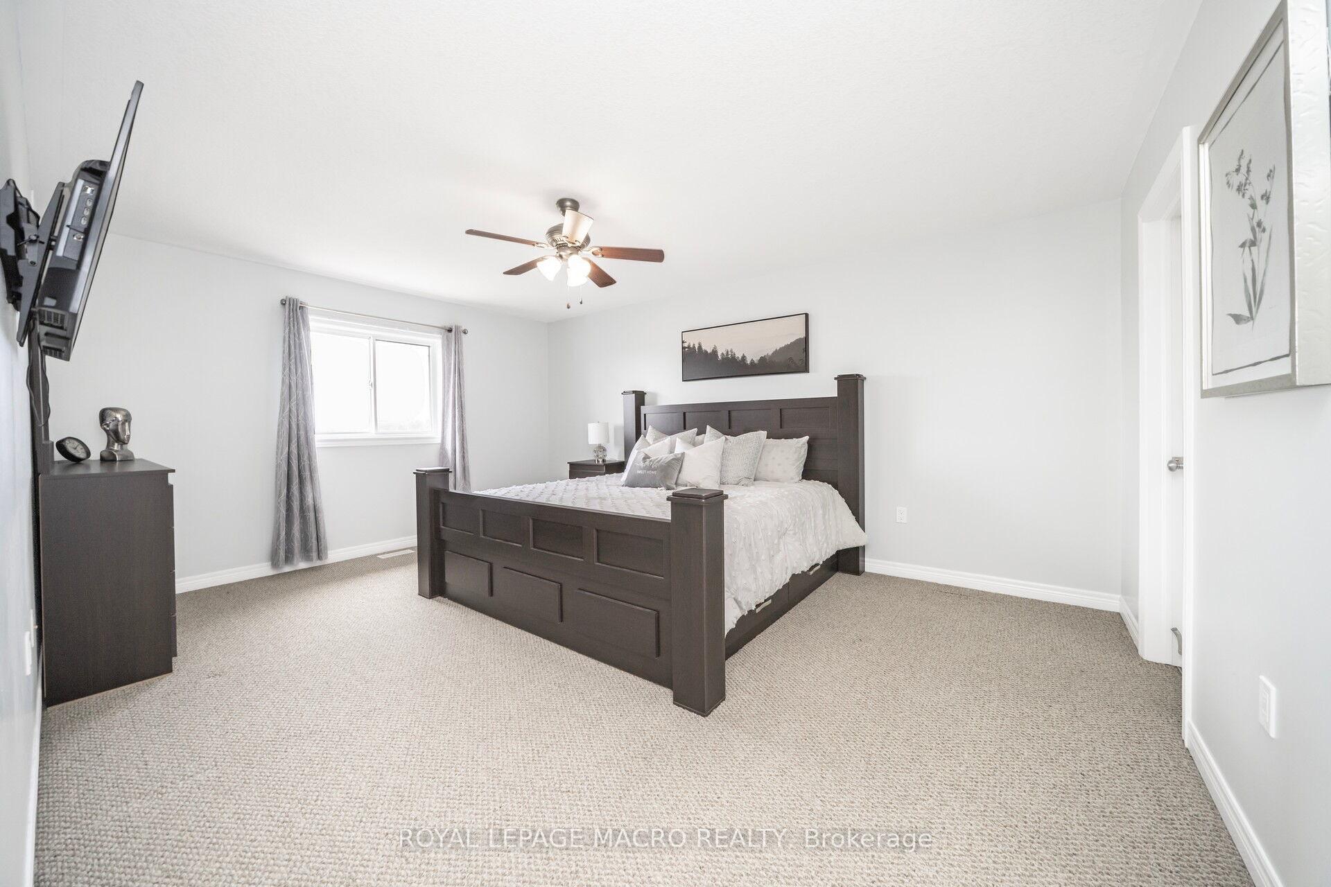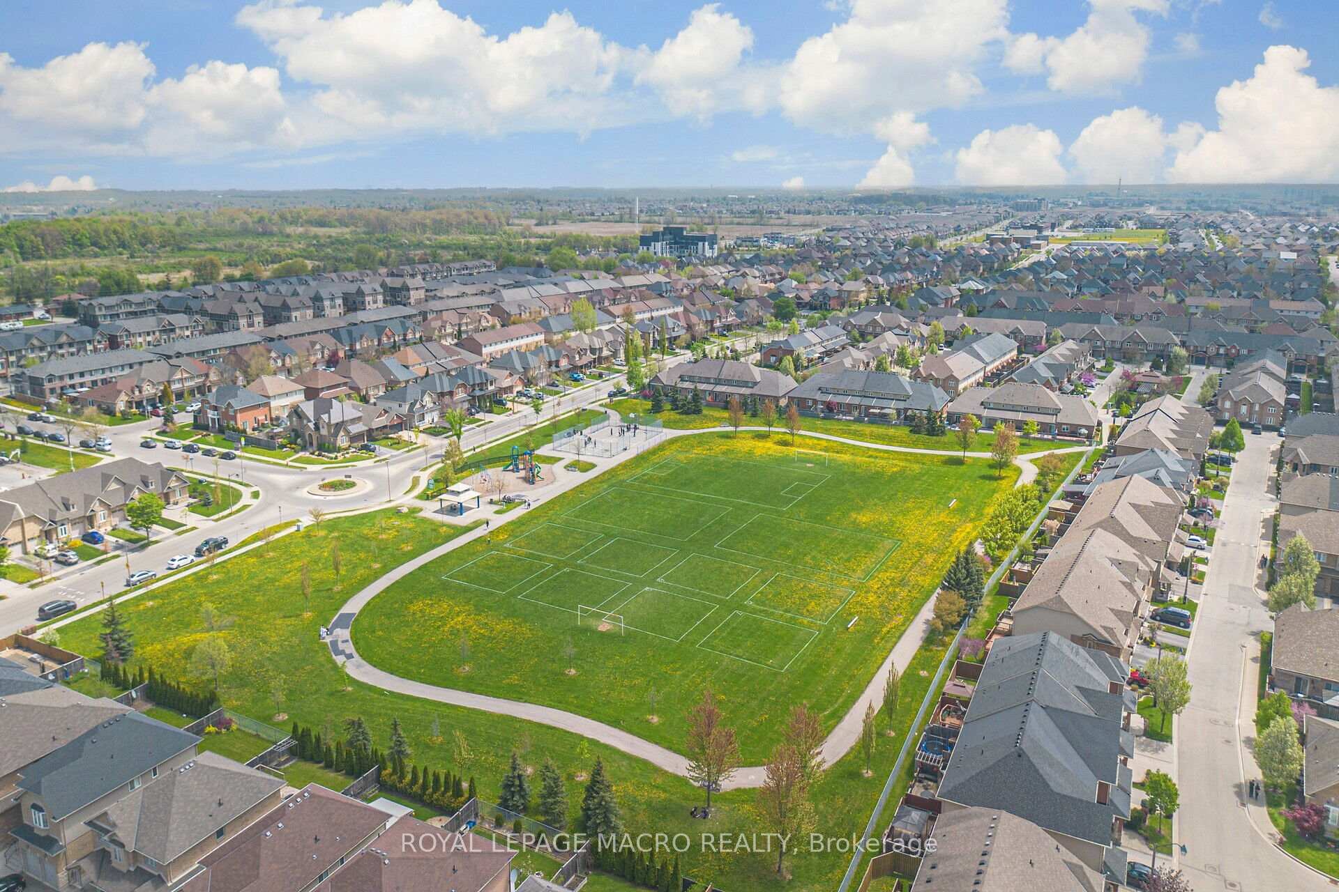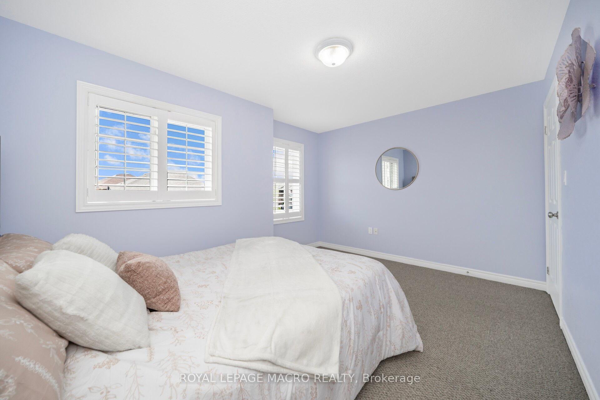 Stunning and well-kept 4-bedroom, 2.5-bath home in the highly desirable Summit Park community, offering over 2,000 sq. ft. of bright, open-concept living space. The main level features a spacious eat-in kitchen with breakfast bar, pendant lighting, and stainless steel appliances, opening to a dining area with patio doors leading to the backyard. The cozy family room includes hardwood floors and recessed lighting. Upstairs, the primary suite boasts a walk-in closet and a spa-like ensuite with a double vanity and a custom glass walk-in shower. Three additional bedrooms are bright and airy. The professionally finished basement includes a recroom wired for surround sound and a rough-in for an additional bathroom. Set on a premium lot backing onto green space, the fenced backyard features a new deck, shed, and playset perfect for families. Additional highlights include California shutters, updated central A/C, upgraded underpad, double garage with inside entry, and a gas line for BBQ. Walking distance to top-rated schools and close to parks, shopping, and highway access.