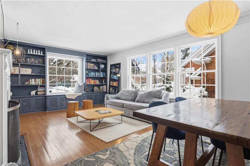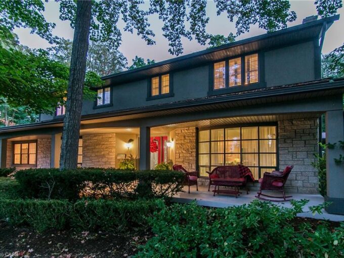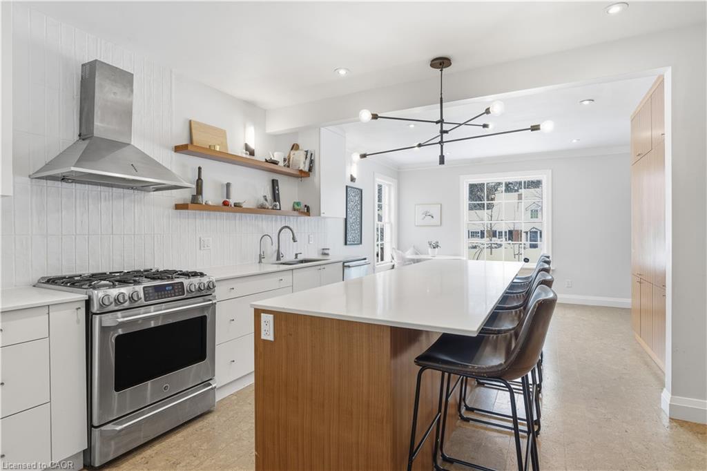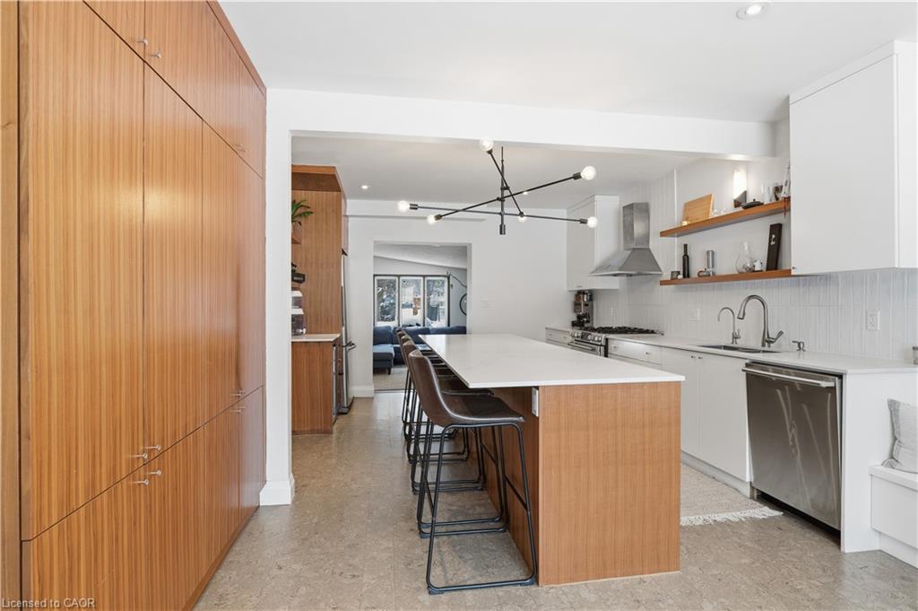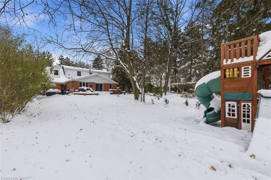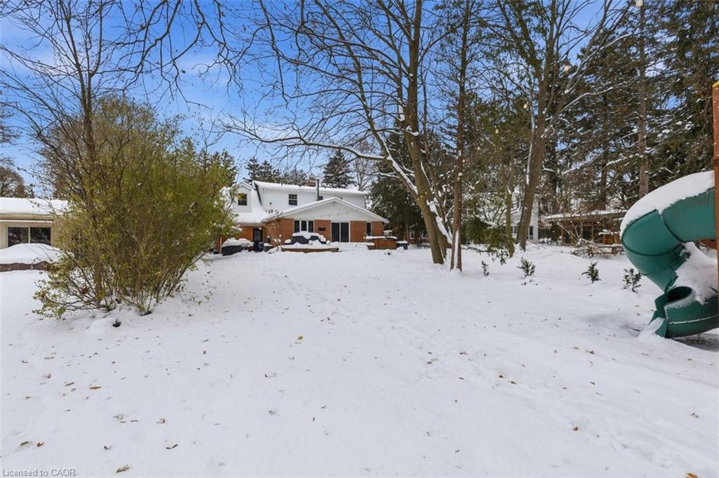 A rare offering in a prime Olde Westmount location, this beautifully renovated home sits on an exceptional 70 ft x 250 ft private, tree-lined lot with no visible neighbours. Offering over 2700 square feet of total living space, the home is thoughtfully designed for both everyday living and entertaining. The main floor is anchored by a massive, modern kitchen with Elmwood cabinetry featuring eco-conscious materials. The huge windows that flood the space with natural light, loads of counter space with center island make this an exceptional space for entertaining. The formal living room features large windows, built-in bookshelves and wood burning fireplace. This space flows seamlessly to an open-concept spacious dining room ideal for hosting large gatherings. Additional main-floor highlights include a 2-piece powder room and a sunken family room with wood stove and stunning picturesque views of treed backyard. The family room leads directly to a massive 250-foot-deep, private, tree-lined backyard with western sun exposure, offering exceptional outdoor enjoyment. The space easily accommodates a hot tub, two-tier deck, and a generous kids’ play area, while still providing ample room for entertaining and relaxation. The upper level features hardwood flooring throughout and a spacious primary bedroom with a 5-piece ensuite. Two additional generously sized children’s bedrooms, a dedicated kids’ bathroom, and a convenient upper-floor laundry room complete this well-designed second level. The lower level offers additional functional living space, featuring a rec room with a wood-burning fireplace, a 2-piece bathroom, a dedicated home office with windows and ample storage. A unique opportunity to own a move-in-ready home on one of the largest and most private residential lots in the Olde Westmount neighbourhood, close to parks, schools, UpTown Waterloo, LRT, Cigi, Perimeter Institute and Waterloo Park.