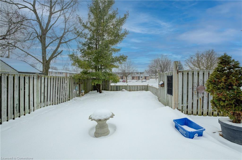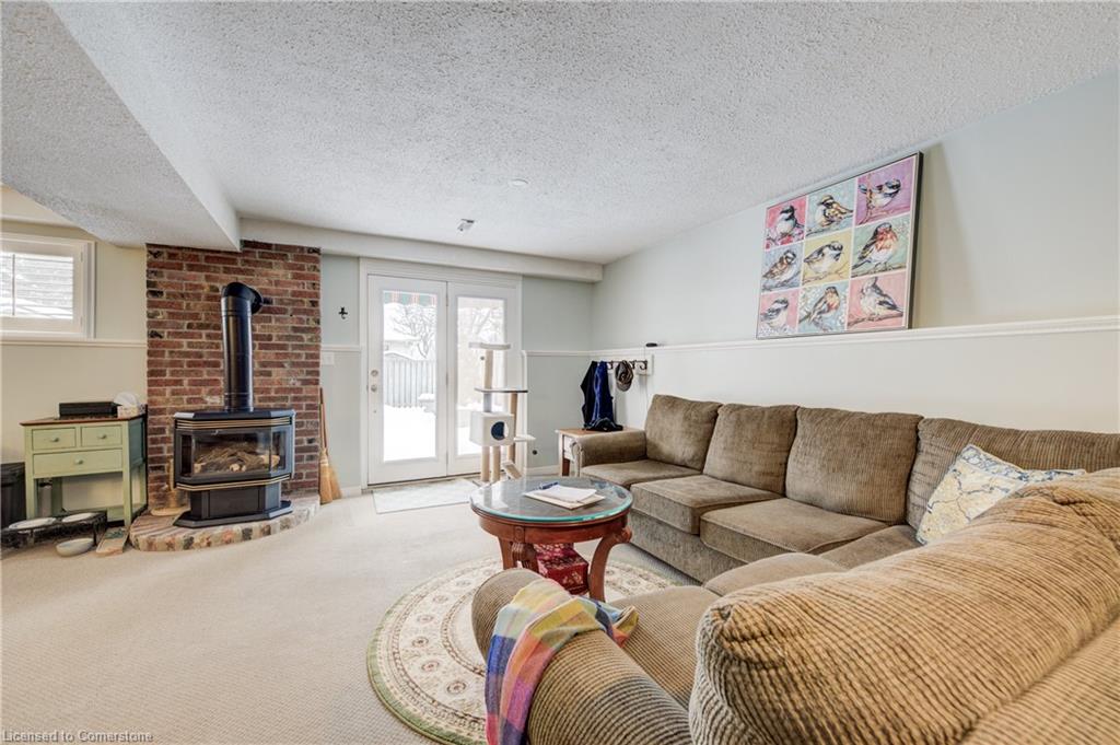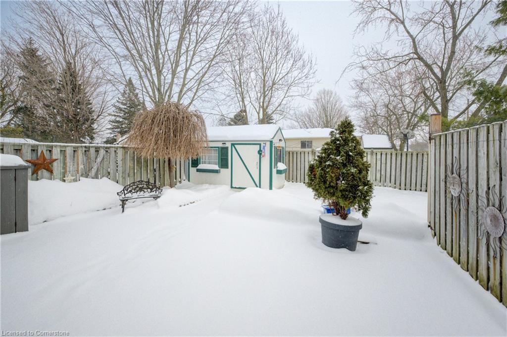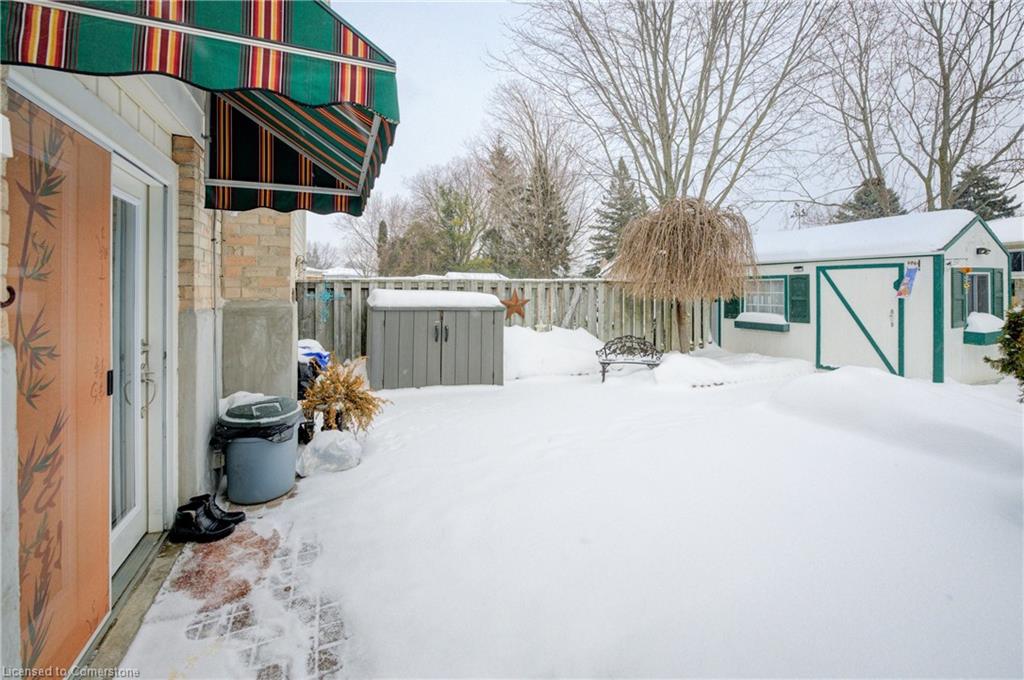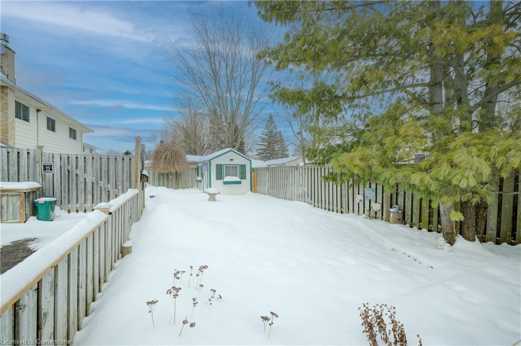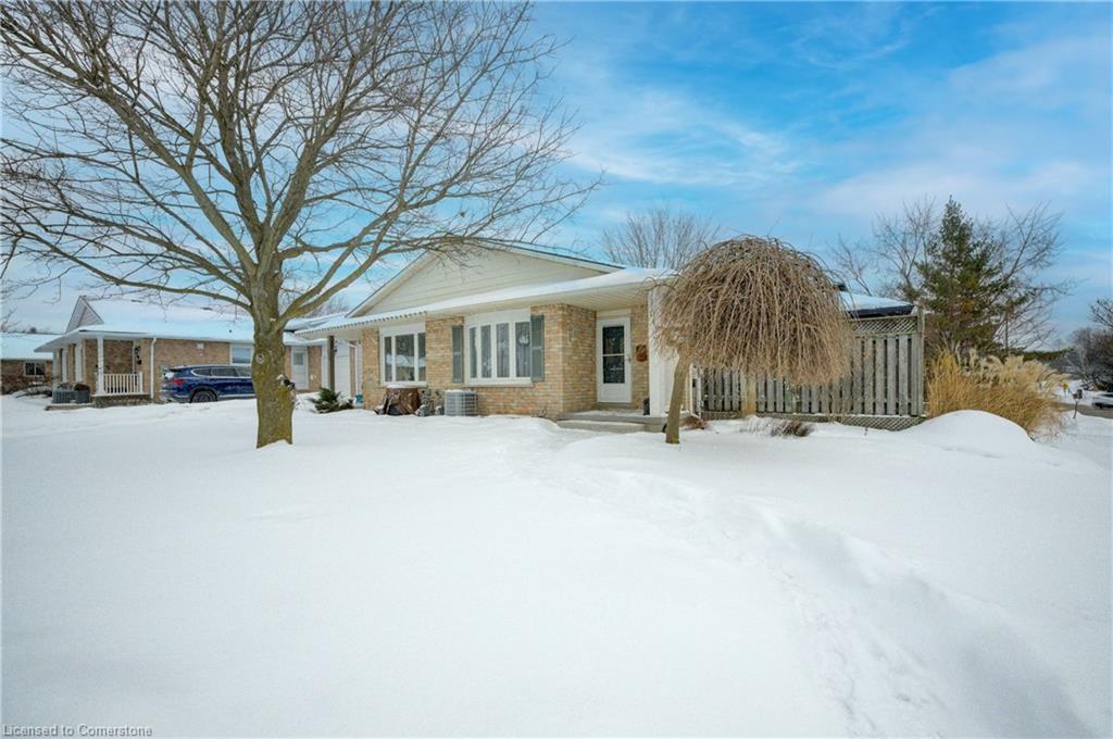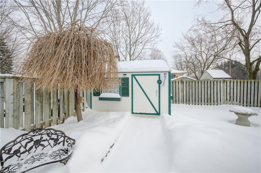 When does a semi-detached home feel like a detached home? When it is located at 115 Uxbridge Crescent! Situated on a full-sized 50×117 foot lot, with side parking off Erinbrook and front guest entry off Uxbridge, this superior corner property conveys the feeling of detached home with all the privacy and features you could hope for. The showpiece of this flexible 4-level backsplit design is the remodelled kitchen (Oct. 2014), complete with gorgeous cabinetry and backsplash, tasteful countertops, and bright, welcoming atmosphere. A half-wall opens from kitchen to the dining area, making it ideal to engage with family and guests. The warm, rich glow of hardwood flooring (Nov. 2016) flows throughout the living room and dining areas. Upstairs are three bedrooms with newer carpeting (May 2019). The main 4-piece bath was updated in 2023 with quality fixtures and finishes. A side door leads from the kitchen to a spacious deck with luxurious hot tub (June 2018), perfect for a soothing soak. The 10’x12’ metal gazebo provides elegant protection from the elements. A gas line for a barbecue is so convenient. A charming flexible space, the family room is complemented by the warm, cheerful glow of a freestanding gas fireplace. Also on this level is a full 3-piece bath with a corner shower–so handy. A rear walk-out from the family room gives easy access to a patio, fully-fenced yard with shed, and side-by-side parking for 2 vehicles. A larger gate is available to move/store big items. The lowest level is partly finished with space for a home office or guest bedroom. Windows and rear single swing door have been replaced, plus front bow window upgrade. Updates: front concrete walkway (2024); furnace (Jan. 2016), AC (June 2018), ducts cleaned (Sept. 2021); top 3 levels repainted (Sept. 2023). Nice mature neighbourhood, close to schools, public transit, shopping, and quick access to 401 or Conestoga College. Public trail/path system nearby with access to parks. OFFERS JAN. 27@1PM.