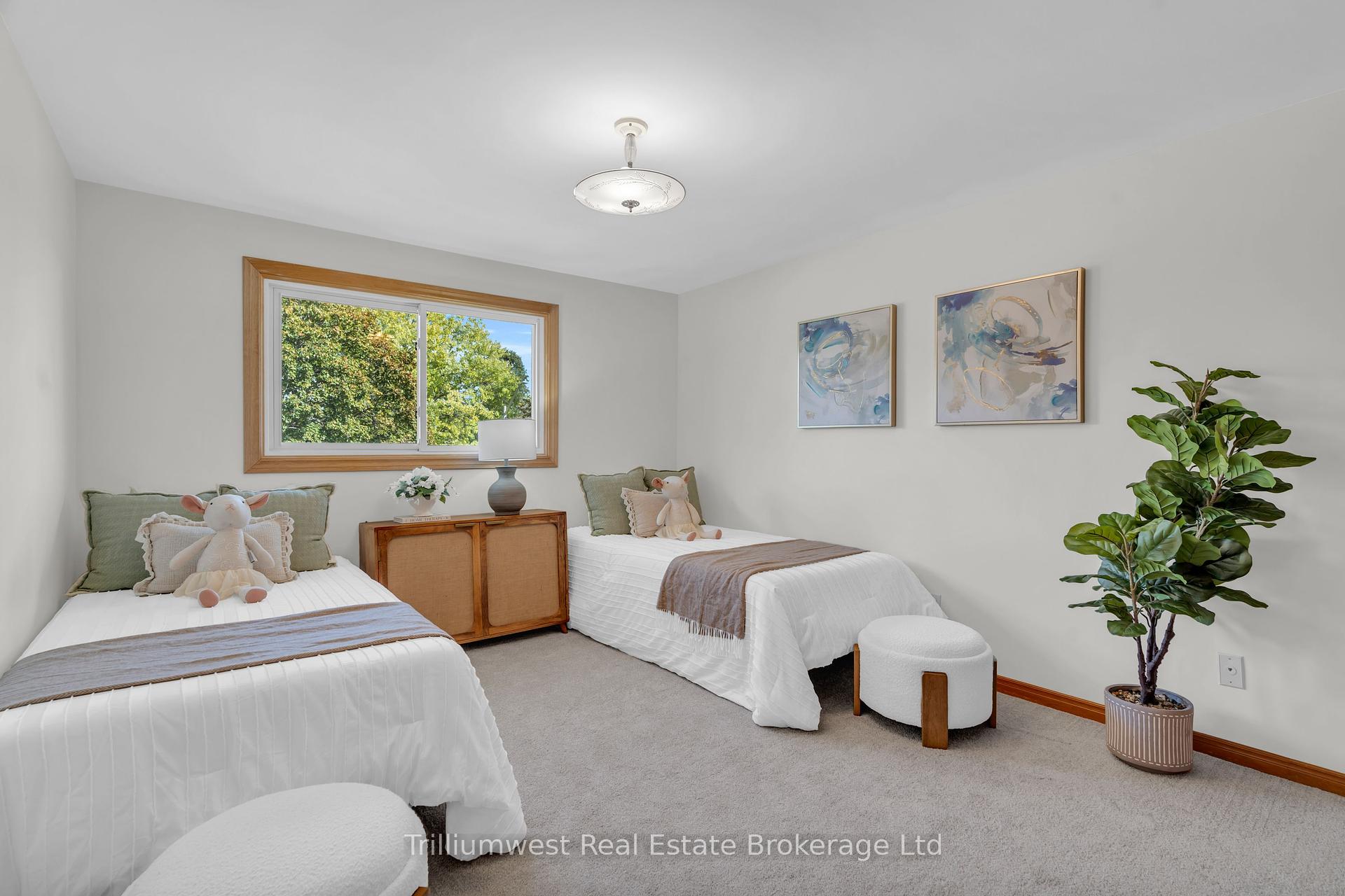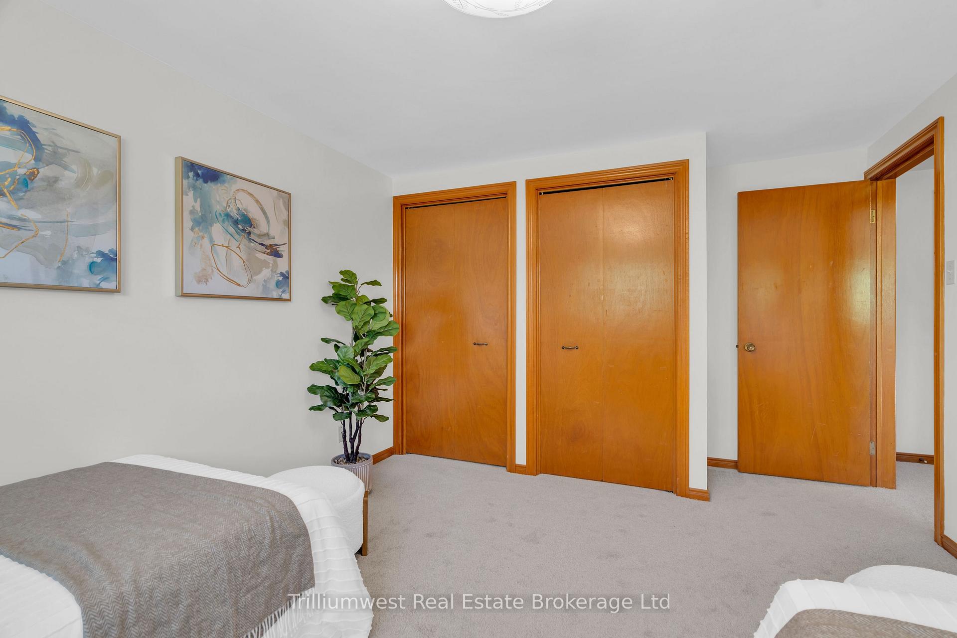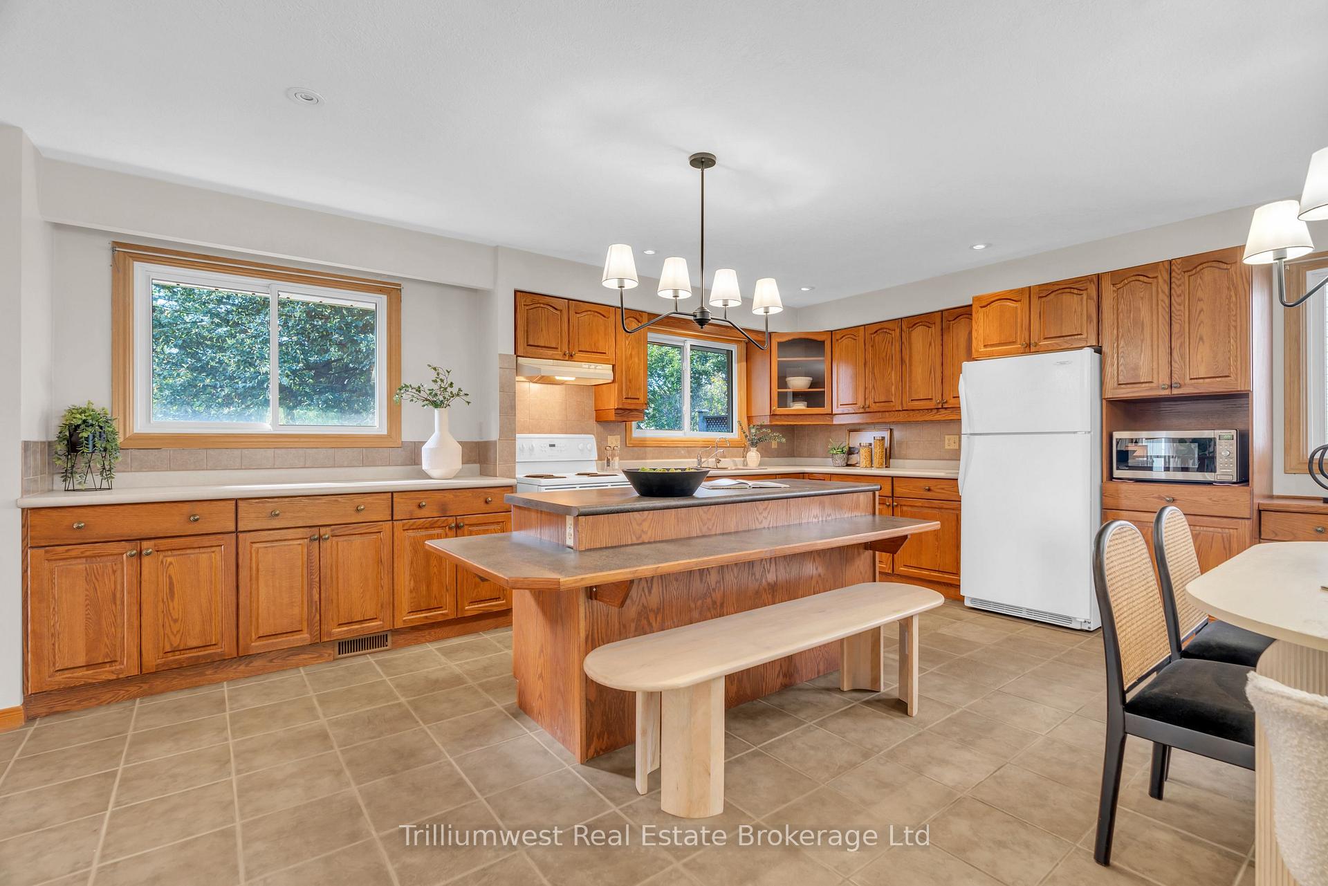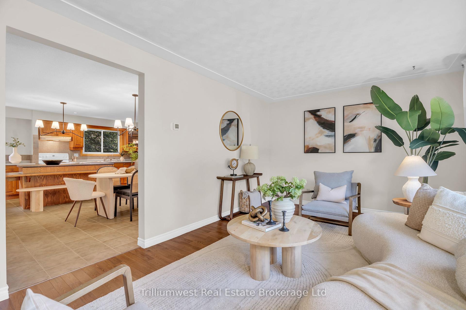 Beautifully maintained 5-level side split in desirable Lakeshore North! Offering 1,985 sq. ft. above grade plus a finished rec room and plenty of storage. The expansive Kitchen and Dining area feature solid oak cabinetry, generous counter space, and a large island open to the bright family room with wood-burning fireplace and patio doors to the new deck and relaxing backyard. Main floor includes a powder room and spacious living room with large front window. Upstairs are 3 good-sized bedrooms, a 4-piece bath, and en-suite for the primary, freshly painted with new carpet (2025) Lower level has a bright rec room, laundry, and walk-up to the backyard. Basement adds over 400 sq. ft. of storage. Hardwood flooring, oversized garage with inside entry, and wide interlocking brick driveway. Close to shopping, parks, St. Jacobs Market, and the Expressway! Furnace (2019) A/C (2025) New Carpet and Paint on upper floor (2025 Kitchen Remodel (approx. 10 yrs) Windows (2010) Washer/Dryer (2024) Driveway redone including sealing (2023) Garage Door (2024), Deck (2023) Furnace (2019) A/C (2025) Kitchen Remodel (approx. 10 yrs) Windows (2010) Washer/Dryer (2024) Driveway including sealing (2023) Garage Door (2024), Garage Door (2025), Deck (2023)