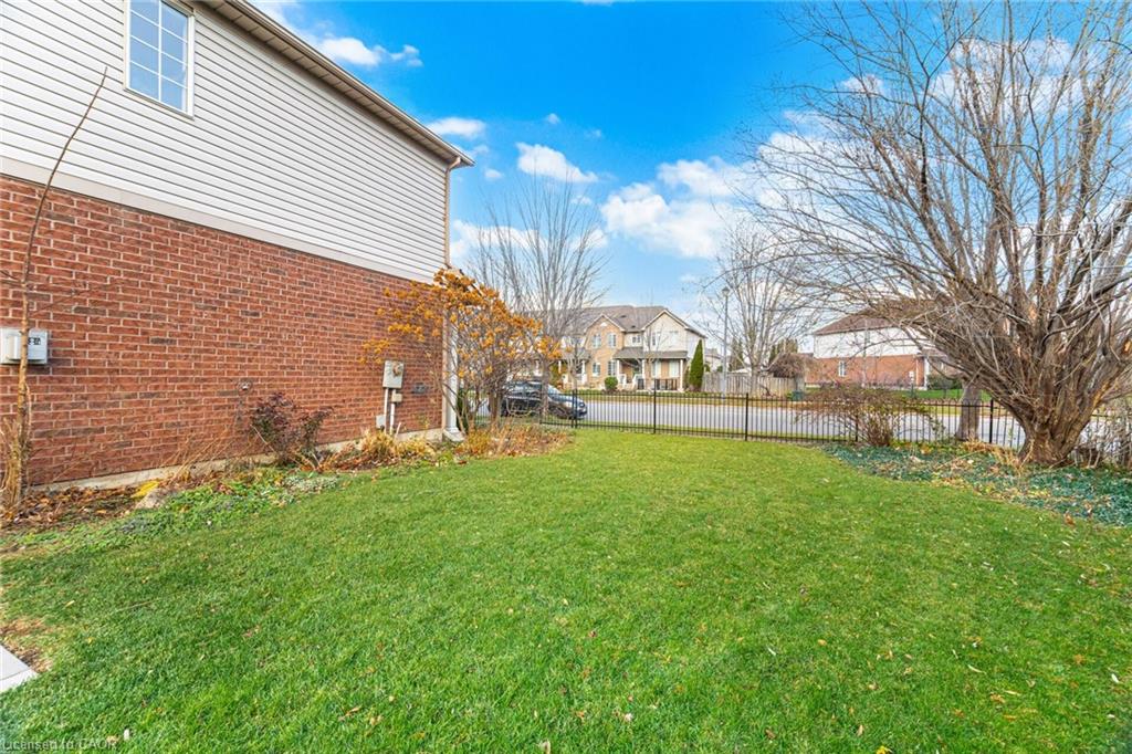 Welcome to this very spacious end-unit townhouse offering a very rare, ultra-premium lot with large back & side yard. The interior space feels like a semi-detached and the yard makes it the envy of even most detached homes in the area. This home has been pampered and loved by the original owner. The main floor provides a large eat-in kitchen and a living room dining room separated by a 3-sided gas fireplace. Upstairs you will find 3 very spacious bedrooms and 2 bathrooms, including the very large primary which has a 4 piece ensuite bath and a walk-in closet. The basement is finished and has a bathroom rough-in for future use. Outside you will find a large deck and beautifully landscaped gardens. This home offers 1-car garage plus a driveway large enough for 3 cars. The area cant get any better. In fact, this home is within walking distance to GO Station, Elementary & High Schools, Public Library, Arts Centre, Coffee shops, Cineplex Theatre, Restaurants and more…