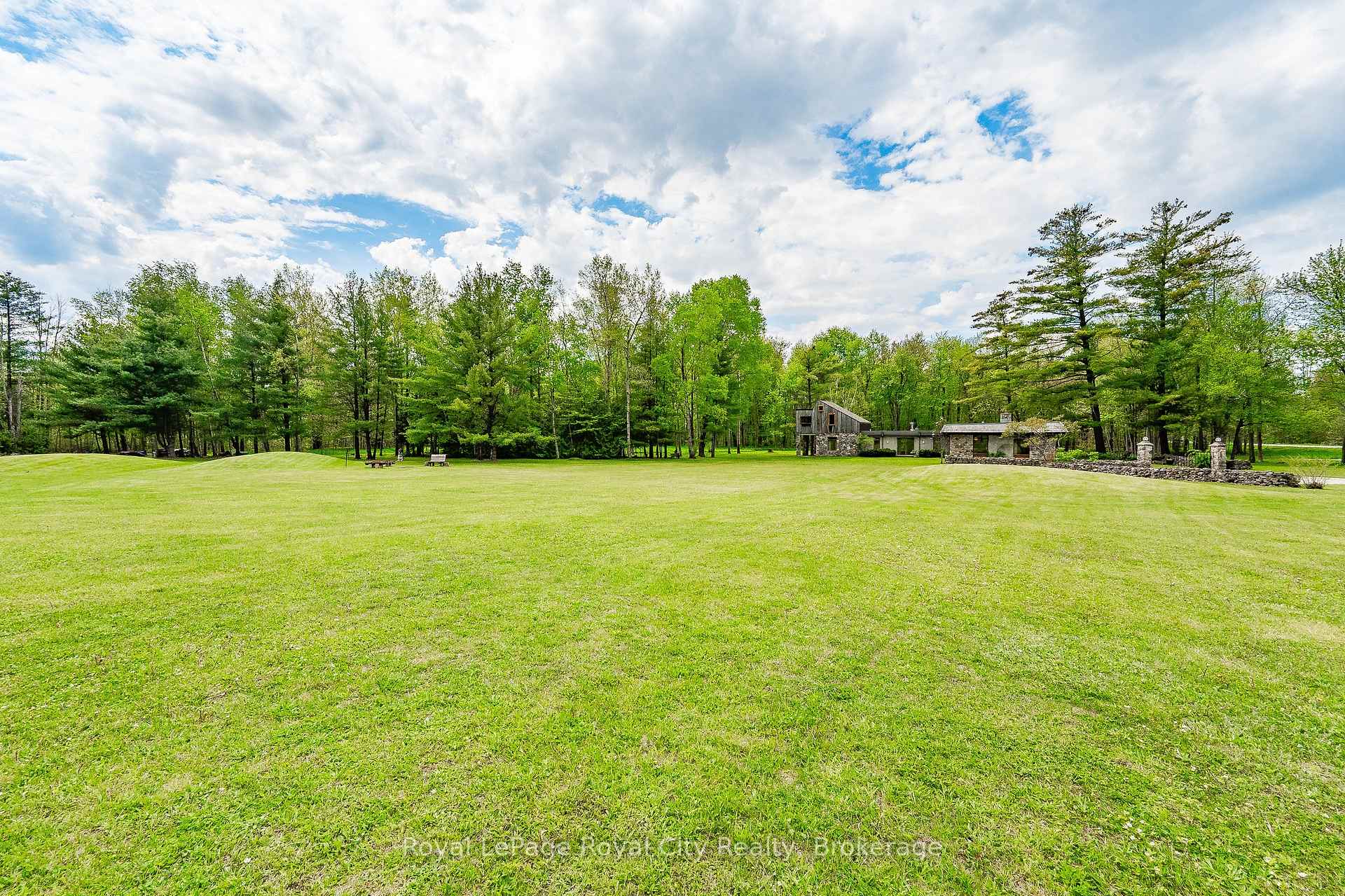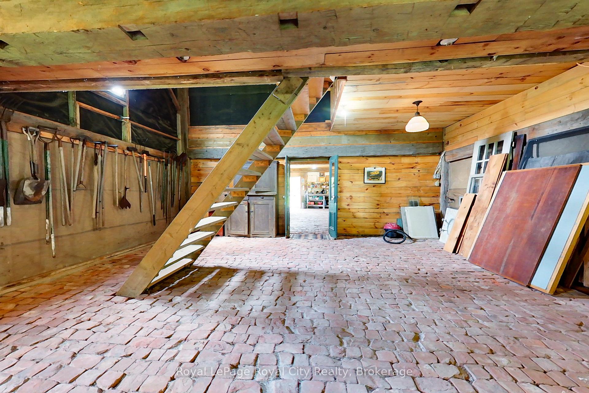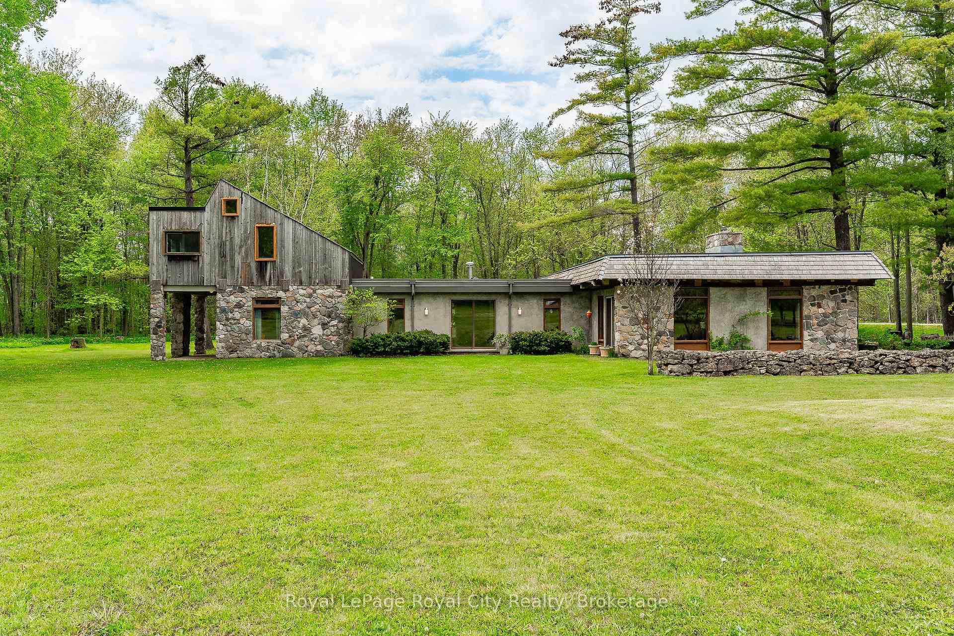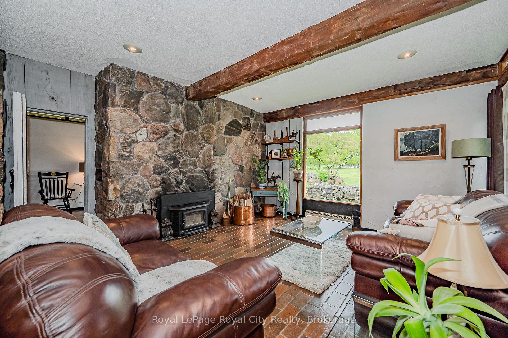 With approximately 1,286 feet of frontage and unmatched curb appeal, Fieldstone Hall is set on 11 breathtaking acres of manicured lawns, open meadows, a scenic woodlot, and a protected naturalized wetland thats home to herons, cranes, and mallards, captivating everyone who passes by. Inspired by the organic architectural style of Frank Lloyd Wright, the 2800 sq.ft.residence is designed to blend seamlessly with its natural surroundings. Built with natural and reclaimed materials, it showcases hand-split fieldstone gathered locally for both interior and exterior walls, reclaimed brick in the kitchens feature walls, and character-rich wood beams and brick floors that highlight the homes custom craftsmanship. Expansive windows and sliding glass doors flood the interiors with natural light while offering sweeping views of the serene landscape. A separate Linden tree-lined driveway leads to a charming two-storey outbuilding with 1,600 sq. ft. of open main-floor space. Complete with its own hydro meter and cobblestone floors, this versatile building is filled with potential, ideal for a studio, workshop, or conversion project. Whether you envision an organic market garden, a horticultural retreat, or a signature estate residence (subject to municipal approvals), this extraordinary property presents a rare opportunity to bring your vision to life. Ideally located just west of the Village of Campbellville and within easy reach of Mountsberg Conservation Area, Crawford Lake, Glen Eden Ski Area, major highways, Aldershot GO Station, Pearson International Airport, and the cities of Oakville, Burlington, Hamilton, Guelph, Kitchener-Waterloo, and the Town of Milton, Fieldstone Hall offers the perfect blend of peace, possibility, and accessibility. Please note: Photos were taken when the property was previously occupied.