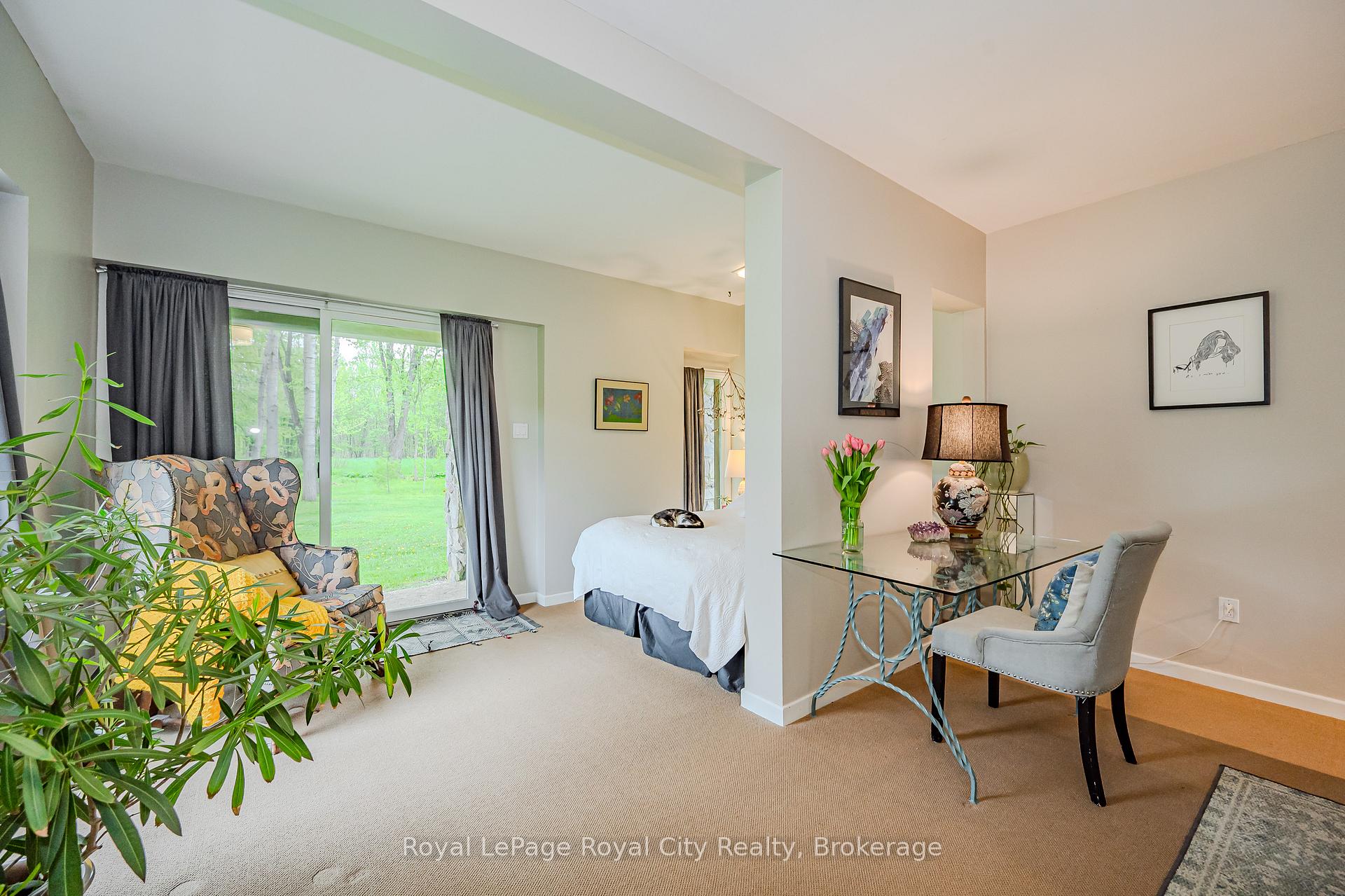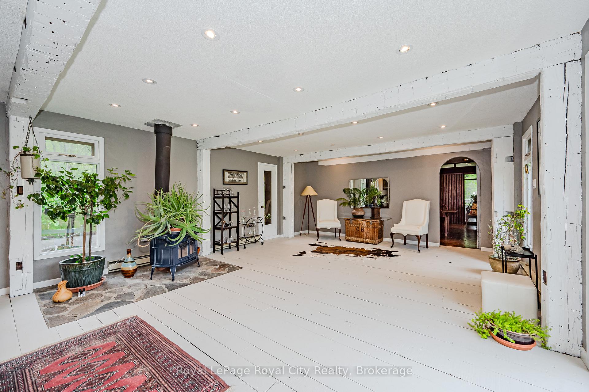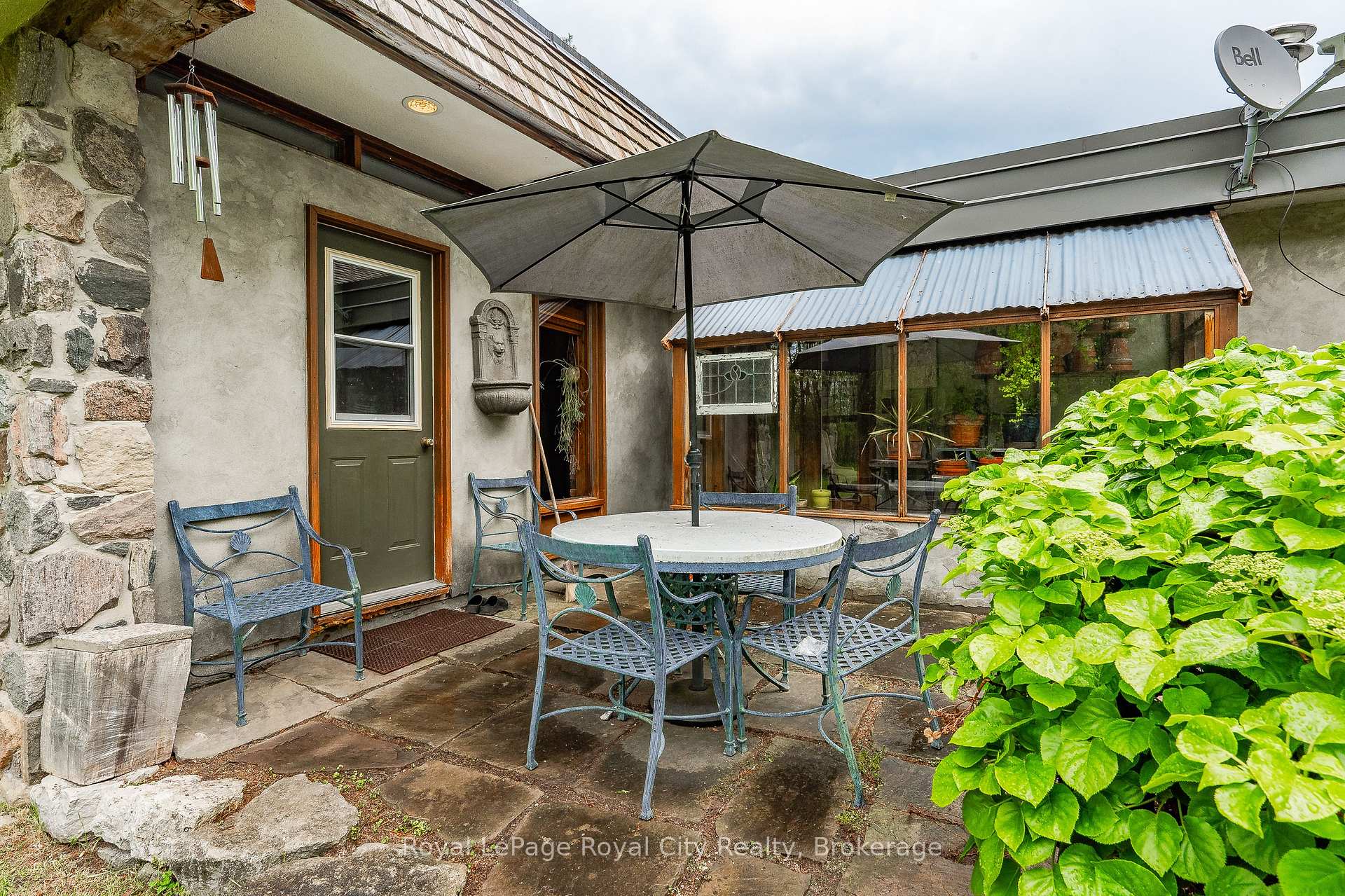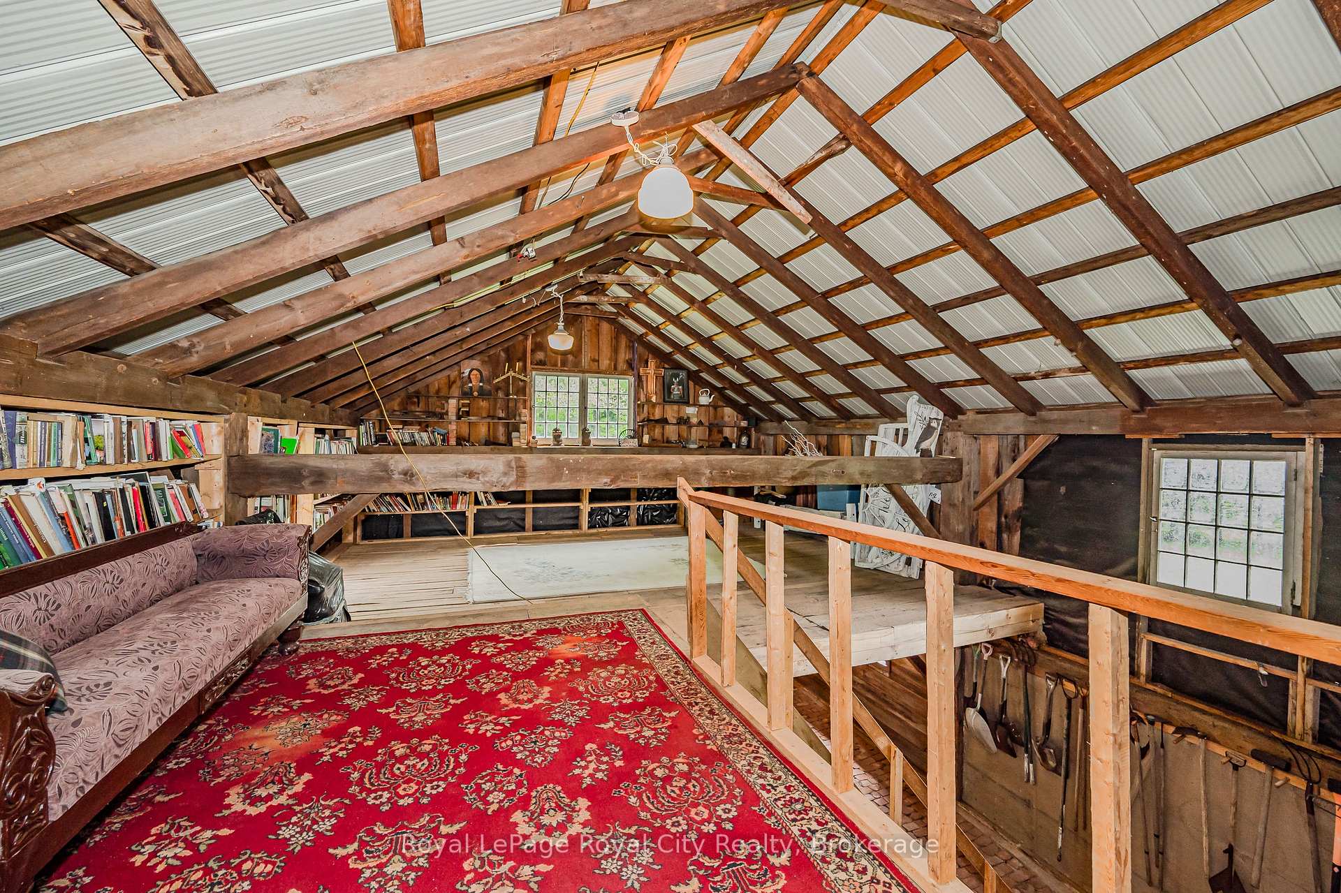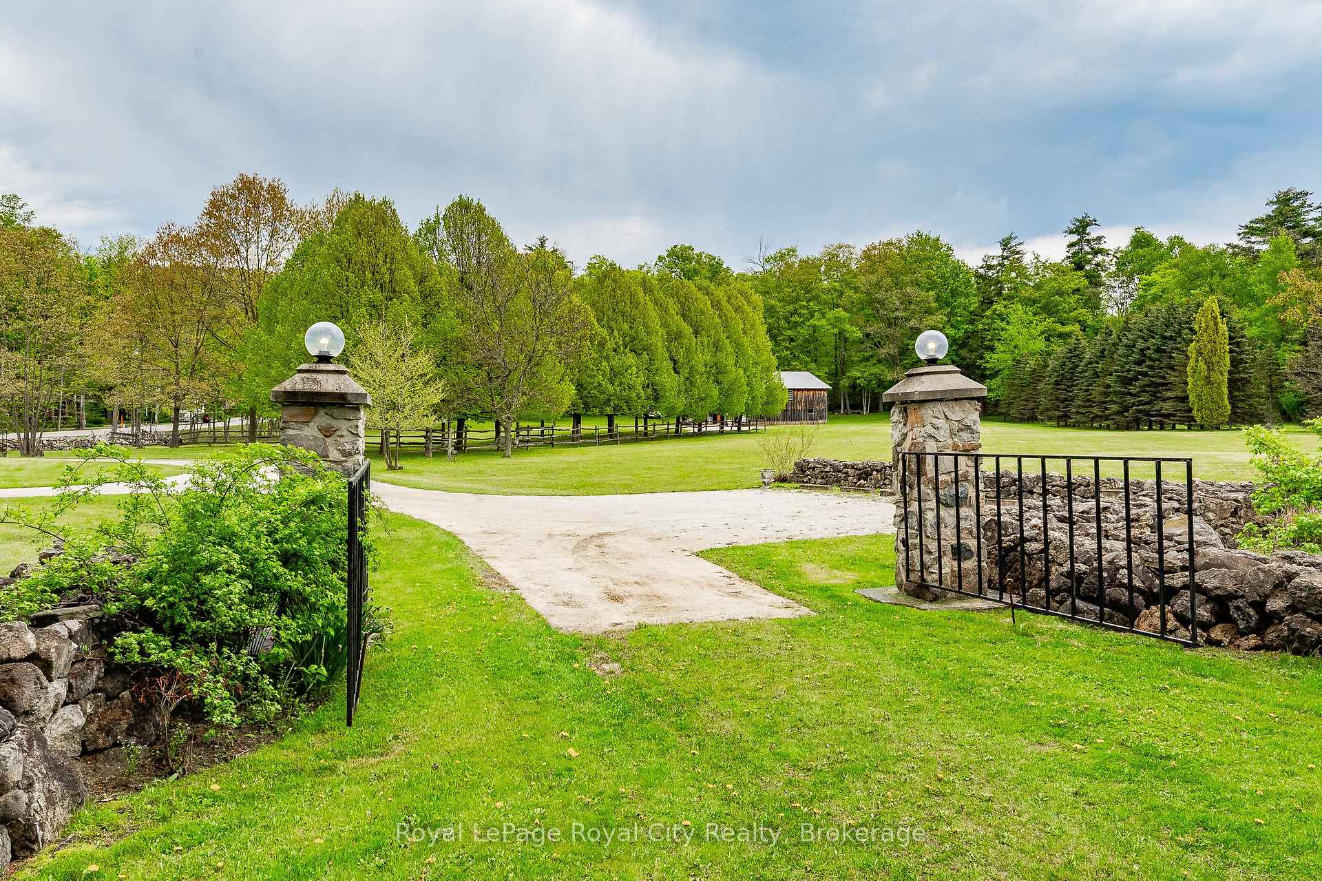 With approximately 1,286 feet of frontage and unmatched curb appeal, Fieldstone Hall is set on 11 breathtaking acres of manicured lawns, open meadows, a scenic woodlot, and a protected naturalized wetland thats home to herons, cranes, and mallards, captivating everyone who passes by. Inspired by the organic architectural style of Frank Lloyd Wright, the 2800 sq.ft.residence is designed to blend seamlessly with its natural surroundings. Built with natural and reclaimed materials, it showcases hand-split fieldstone gathered locally for both interior and exterior walls, reclaimed brick in the kitchens feature walls, and character-rich wood beams and brick floors that highlight the homes custom craftsmanship. Expansive windows and sliding glass doors flood the interiors with natural light while offering sweeping views of the serene landscape. A separate Linden tree-lined driveway leads to a charming two-storey outbuilding with 1,600 sq. ft. of open main-floor space. Complete with its own hydro meter and cobblestone floors, this versatile building is filled with potential, ideal for a studio, workshop, or conversion project. Whether you envision an organic market garden, a horticultural retreat, or a signature estate residence (subject to municipal approvals), this extraordinary property presents a rare opportunity to bring your vision to life. Ideally located just west of the Village of Campbellville and within easy reach of Mountsberg Conservation Area, Crawford Lake, Glen Eden Ski Area, major highways, Aldershot GO Station, Pearson International Airport, and the cities of Oakville, Burlington, Hamilton, Guelph, Kitchener-Waterloo, and the Town of Milton, Fieldstone Hall offers the perfect blend of peace, possibility, and accessibility. Please note: Photos were taken when the property was previously occupied.