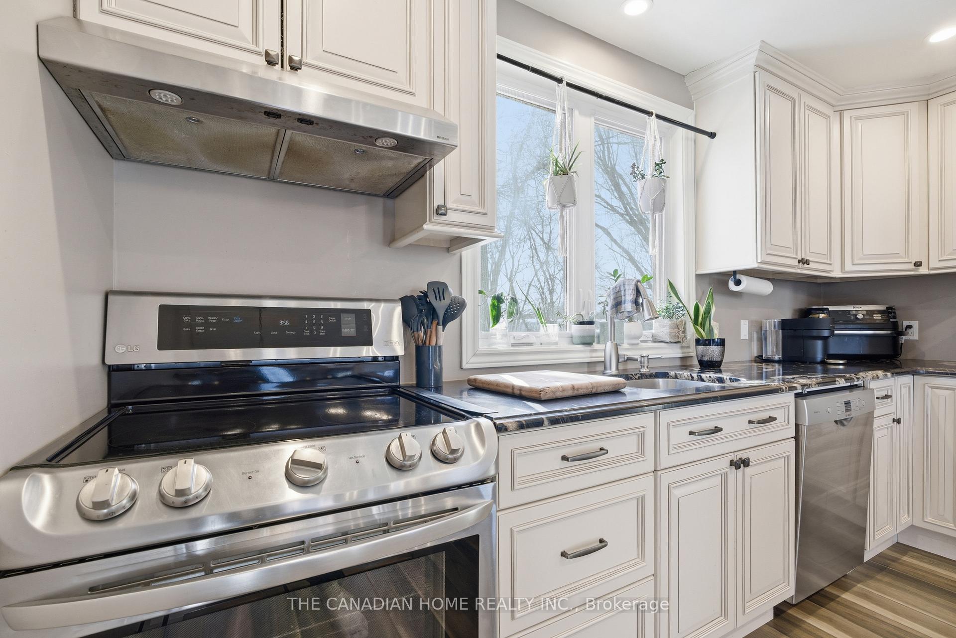 Beautifully renovated carpet-free bungalow featuring a bright open-concept layout with hardwood floors throughout. The updated kitchen (2017) offers granite countertops and a large window overlooking the mature backyard. A separate side entrance leads to the lower level, offering excellent in-law or mortgage helper potential, with an existing room that could be incorporated into a future suite or additional living space. Enjoy the private backyard oasis with no rear neighbors, beautifully landscaped with fruit trees and vines, and a patio (2014) perfect for relaxing or entertaining. A spacious garden shed (2012) provides additional storage. Additional updates include a new driveway (2024) and parking for up to 4 vehicles. Located in a very safe and convenient neighborhood, just minutes from grocery stores, top-rated schools, major amenities, and Highway 401, with future LRT access nearby. Move-in ready and full of potential.