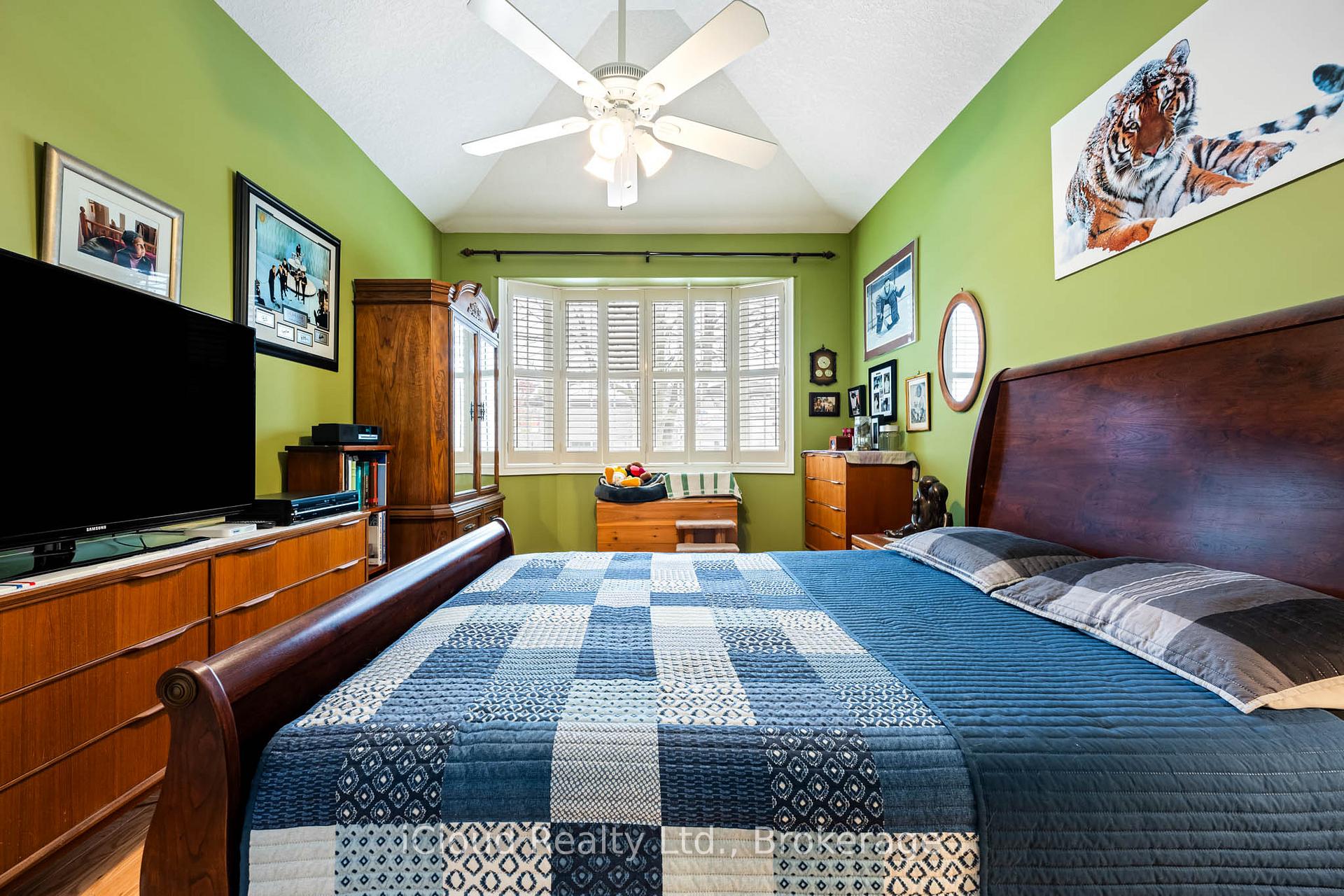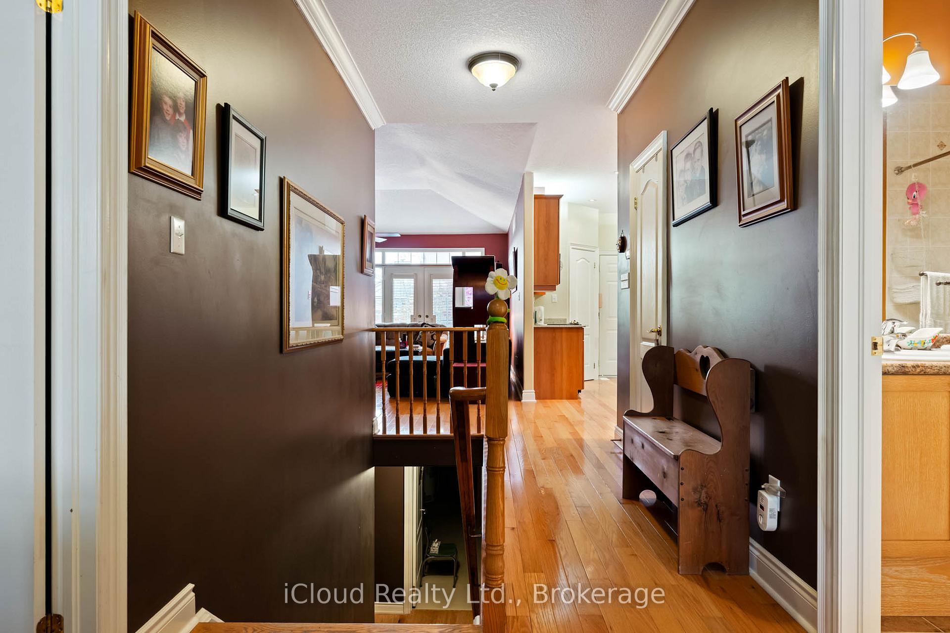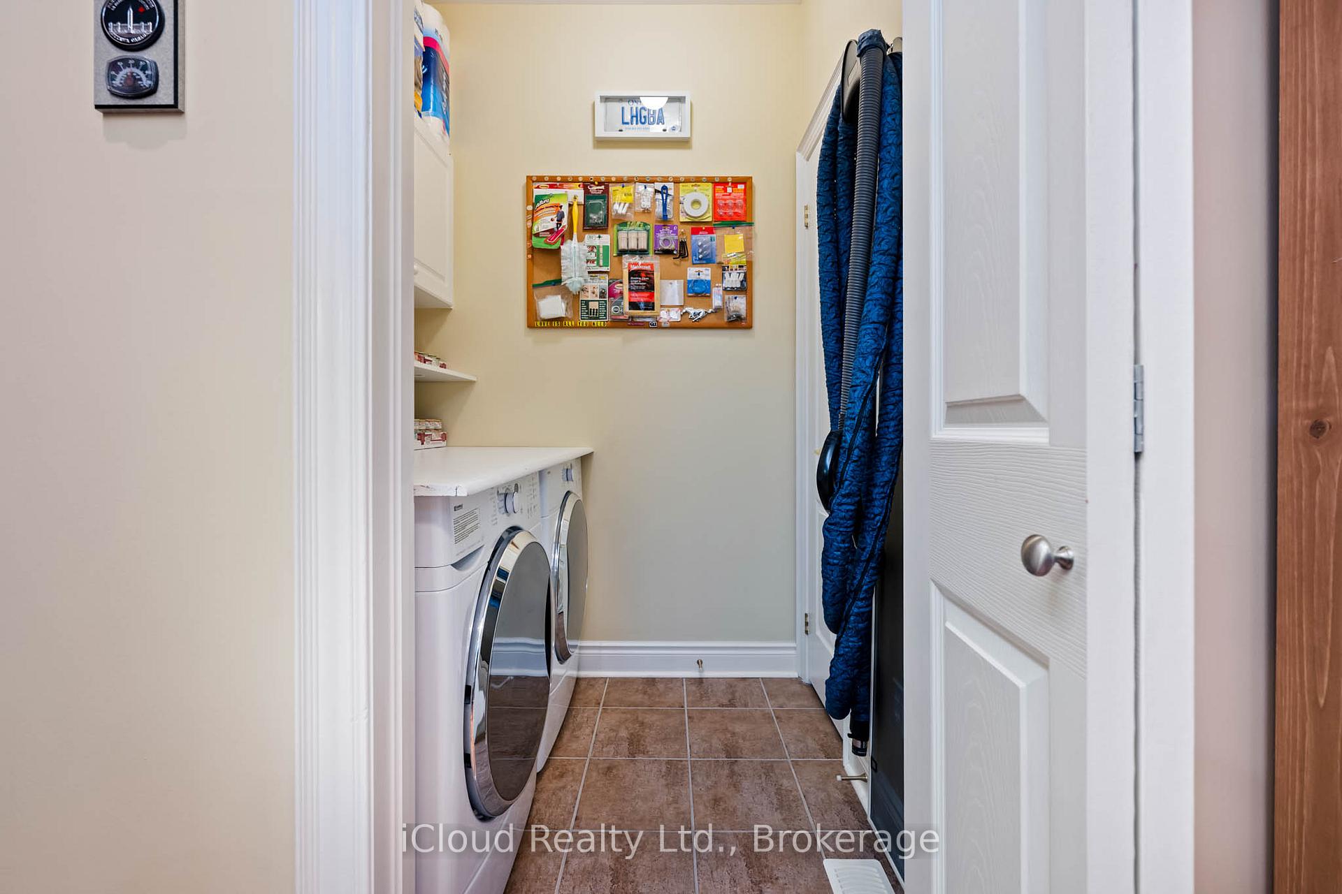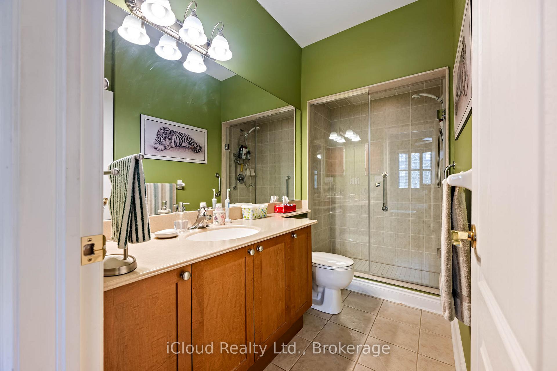 This welcoming BUNGALOW TOWNHOME is located on the outskirts of charming Rockwood. As you enter, the foyer has slate floors, crown molding and the 9′ ceilings carry throughout the entire home. The primary bedroom to the left has a large bay window, 3 piece ensuite with a generous glass shower and a large walk-in closet. Across the hall is the main 3 piece washroom and a bright sunny second bedroom currently used as a home office with a large window, built-in bookshelves and a double door closet. Beautiful hardwood floors carry throughout and all the windows have custom California shutters. The combination living/dining room boasts an impressive vaulted ceiling, corner gas fireplace and garden doors that overlook the private fenced yard. You will not lack storage in the well appointed kitchen with a wall of upgraded cabinetry, pantry, granite countertops and a breakfast area. Pot lights and both under and above cabinet lighting make it an inviting place to prepare meals and entertain. A laundry room with additional cabinets & broom/storage closet is conveniently located off the eat-in area. Access to the rear single car garage is from the kitchen as well as an outside door from the fenced in yard. Animal lovers will appreciate the pet door incorporated into the sidelight on the left side of the garden doors that allow their pet to safely enjoy the outside from the custom pet enclosure. This is a freehold bungalow townhome with a common elements condo corporation fee. Roof (2020) Water Heater (2022) Water Softener (2022) Dishwasher (2022) Sump Pump (2023)