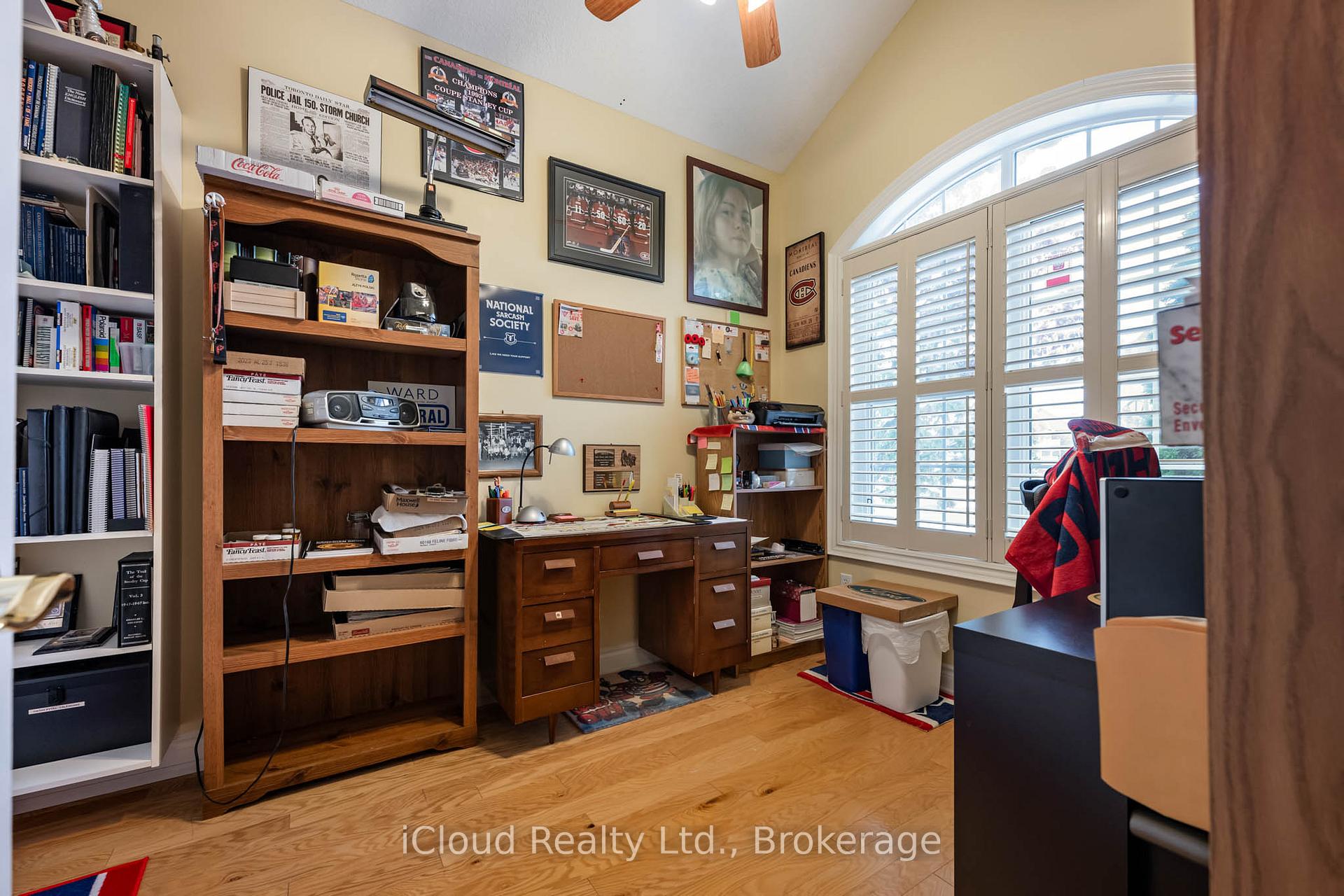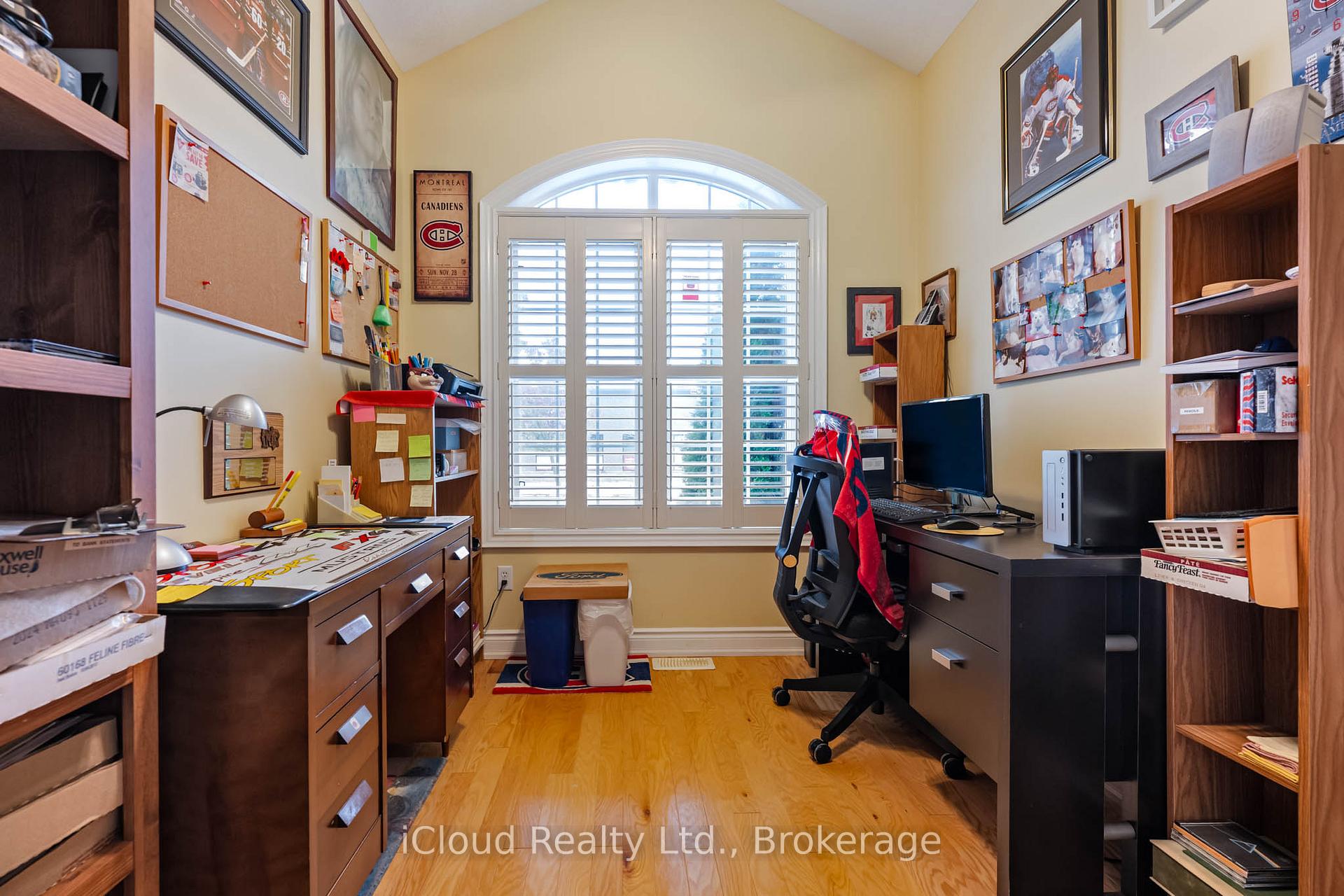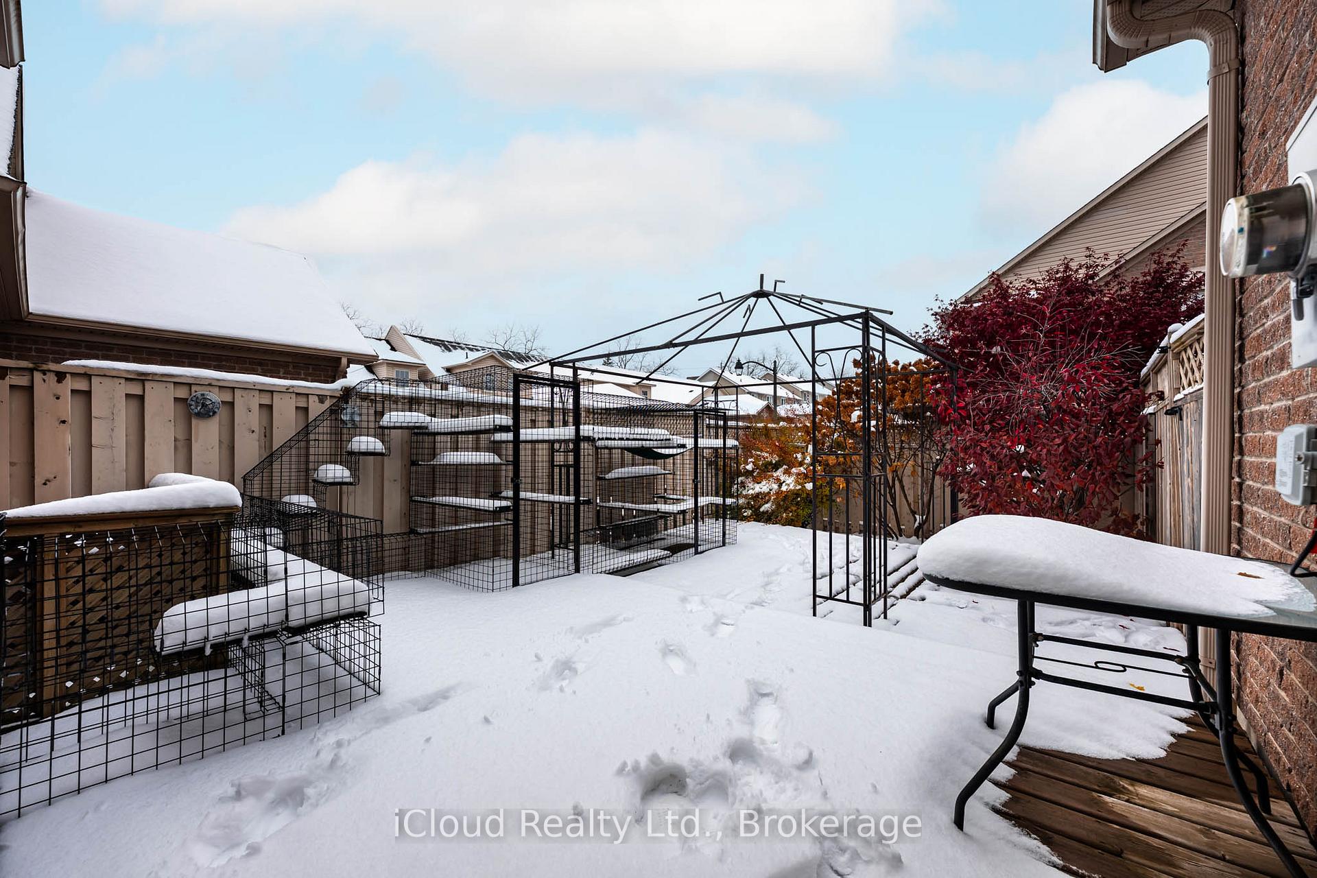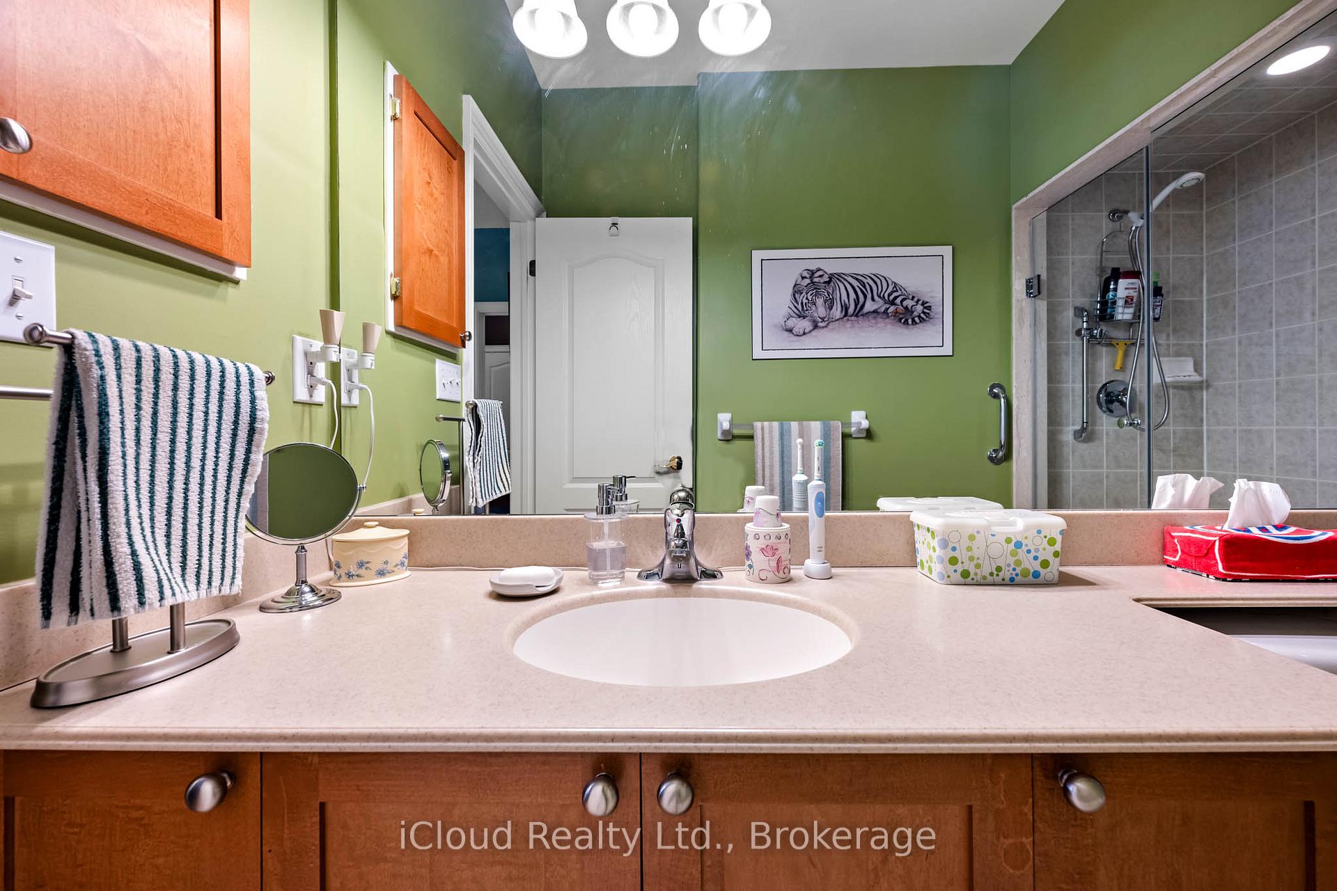 This welcoming BUNGALOW TOWNHOME is located on the outskirts of charming Rockwood. As you enter, the foyer has slate floors, crown molding and the 9′ ceilings carry throughout the entire home. The primary bedroom to the left has a large bay window, 3 piece ensuite with a generous glass shower and a large walk-in closet. Across the hall is the main 3 piece washroom and a bright sunny second bedroom currently used as a home office with a large window, built-in bookshelves and a double door closet. Beautiful hardwood floors carry throughout and all the windows have custom California shutters. The combination living/dining room boasts an impressive vaulted ceiling, corner gas fireplace and garden doors that overlook the private fenced yard. You will not lack storage in the well appointed kitchen with a wall of upgraded cabinetry, pantry, granite countertops and a breakfast area. Pot lights and both under and above cabinet lighting make it an inviting place to prepare meals and entertain. A laundry room with additional cabinets & broom/storage closet is conveniently located off the eat-in area. Access to the rear single car garage is from the kitchen as well as an outside door from the fenced in yard. Animal lovers will appreciate the pet door incorporated into the sidelight on the left side of the garden doors that allow their pet to safely enjoy the outside from the custom pet enclosure. This is a freehold bungalow townhome with a common elements condo corporation fee. Roof (2020) Water Heater (2022) Water Softener (2022) Dishwasher (2022) Sump Pump (2023)