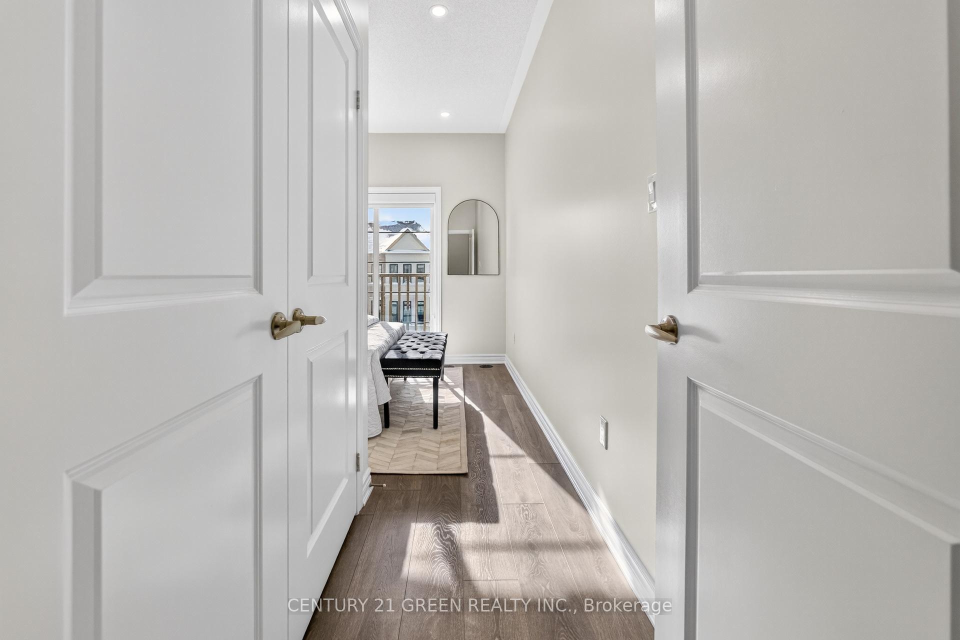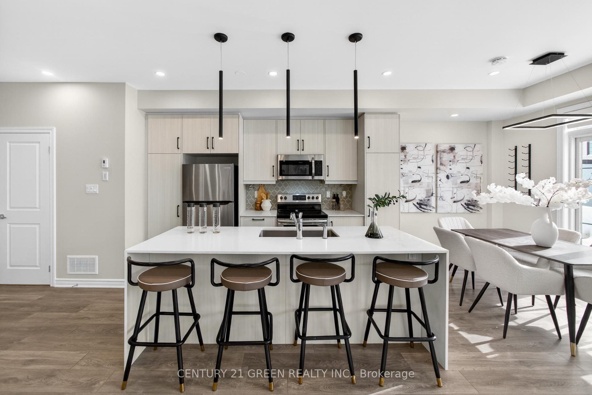 This stunning freehold three-storey townhome in Milton, built by the award-winning Great Gulf, offers a luxury open-concept layout with premium upgrades across all levels. The home features 9-foot ceilings on the main, second, and third floors, creating an airy and spacious atmosphere. Premium Kitchen with upgraded soft-close cabinet , quartz countertop with a waterfall edge, glass backsplash, and designer pendant lighting. Modern Flooring & Finishes: Laminate flooring is found throughout the home, complemented by hardwood stairs with iron pickets. The entire interior has been professionally painted. New Pot lights contribute to a luxurious look by offering a sleek, unobtrusive design that provides versatile, high-quality illumination , Smooth Ceiling for a Neat Look. Spacious Bedrooms & Baths. Both bedrooms are sized to accommodate King and Queen beds. The three upgraded washrooms feature high-ceiling mirrors, Quartz Counter Tops and glass enclosures for both the master ensuite and the second bathroom . Modern Window Rollers . The property includes three-car parking with no sidewalk and features balconies on both the second and third levels. Entrance to Home from garage and Garage opener for Easy Daily Access .Located in the visionary master-planned community of Milton Village, the home is positioned near Hwy 25 and Britannia Road. Conveniently close to the Milton GO Station and Highways 401 and 407 and Minutes away from Rattlesnake Point and Kelso Conservation Area