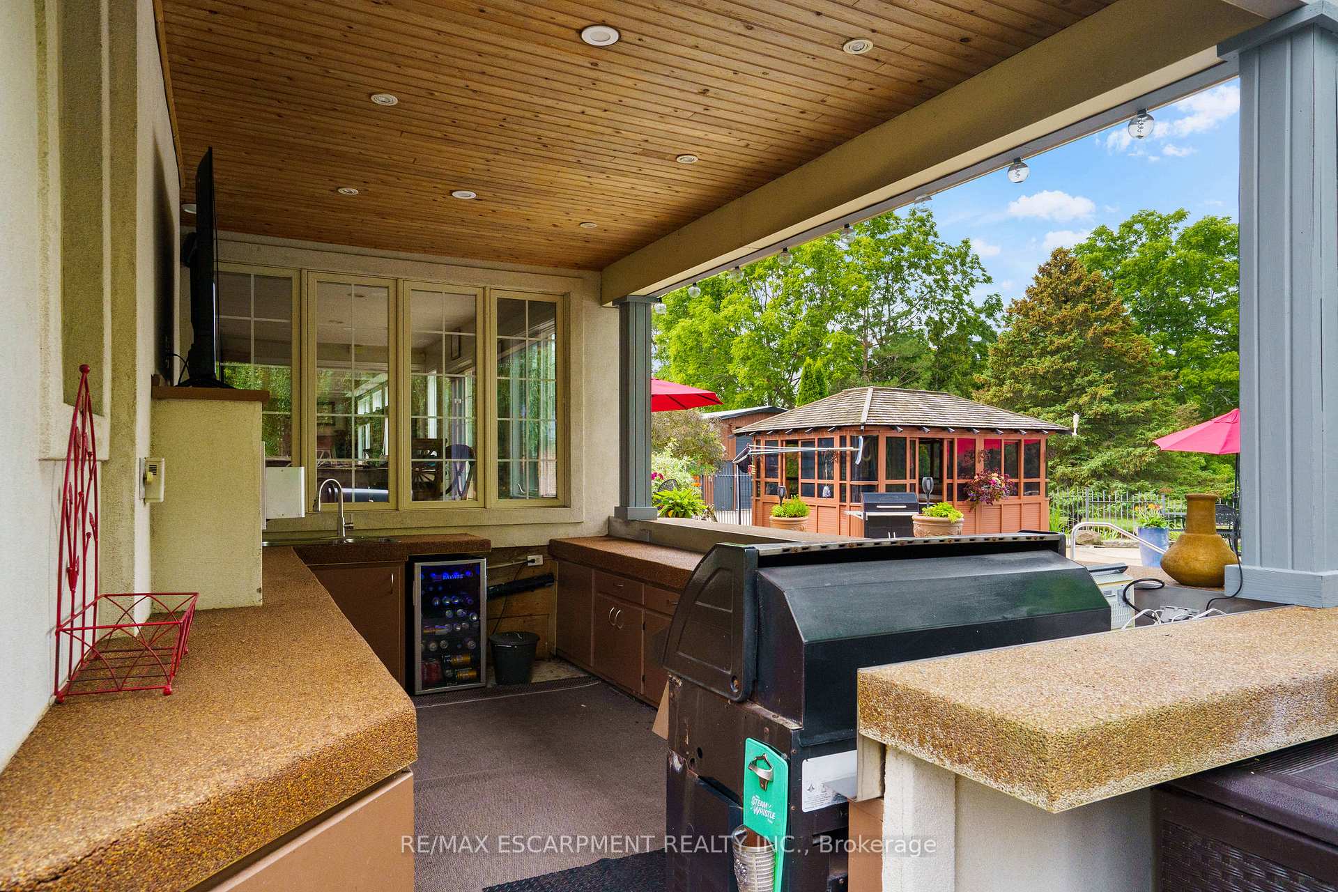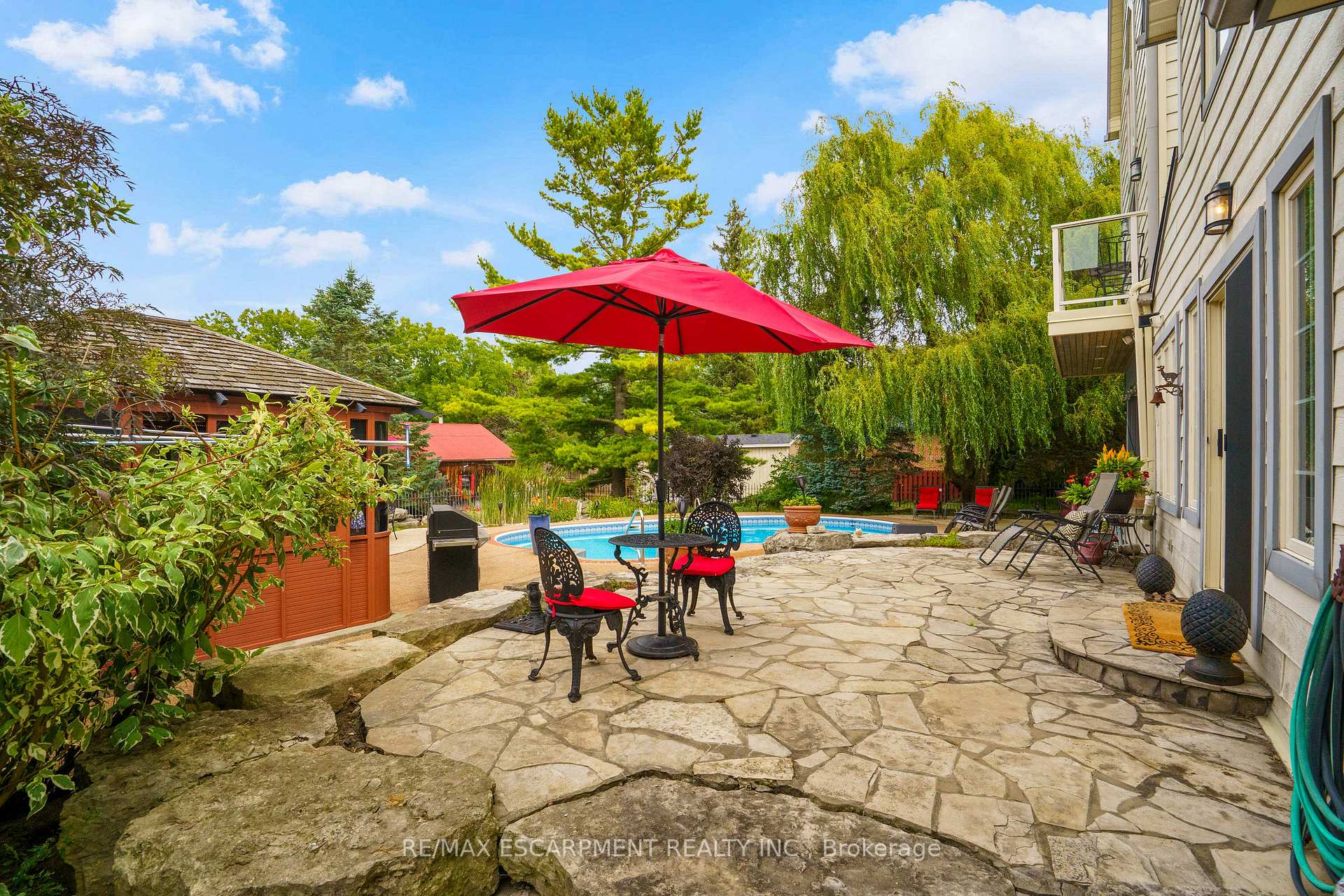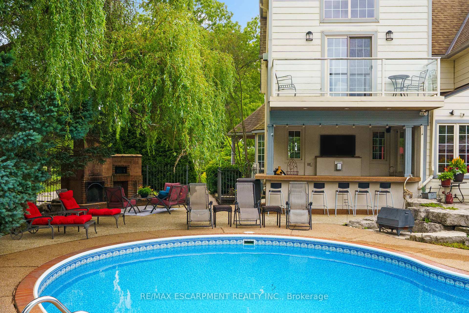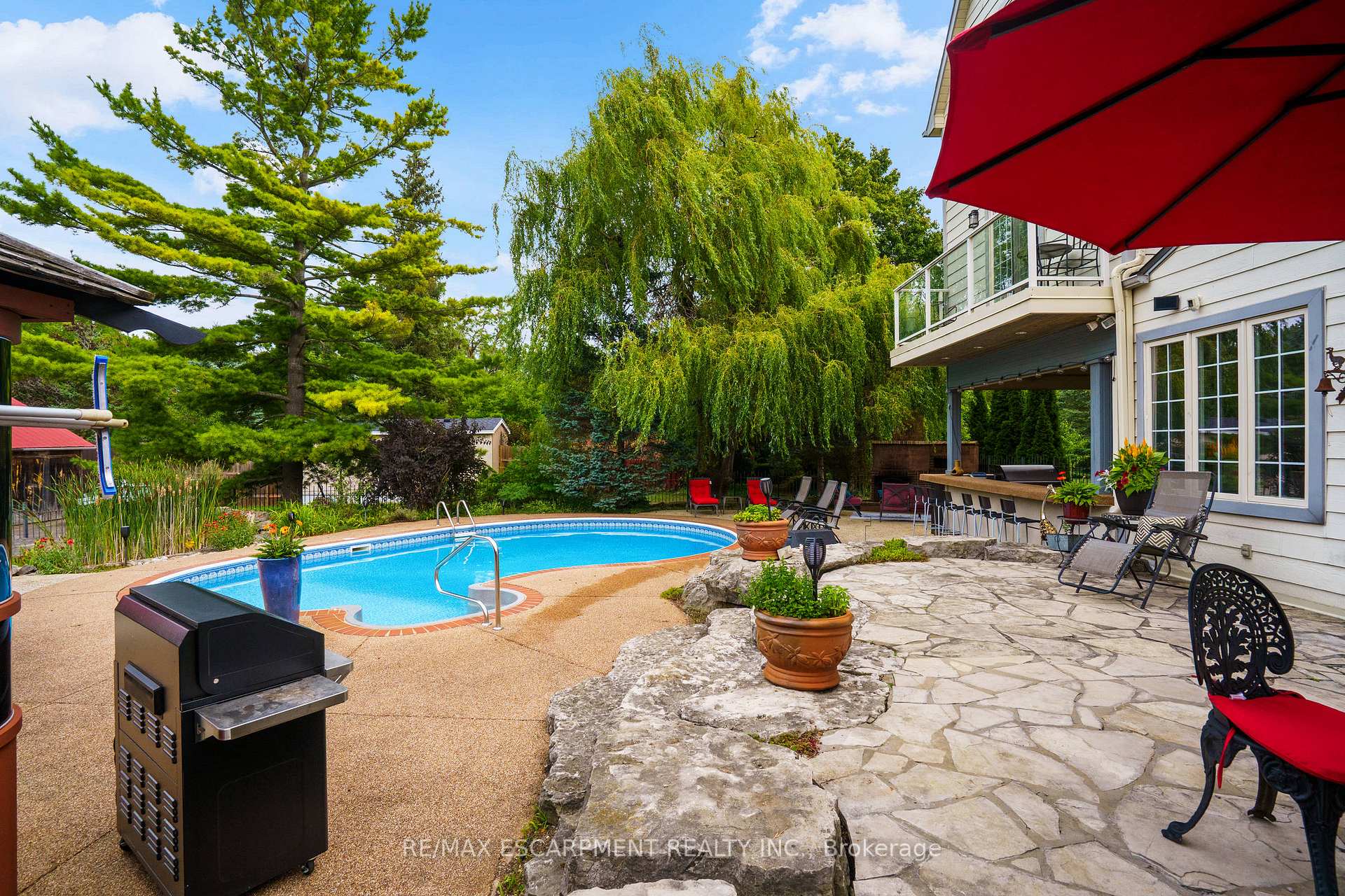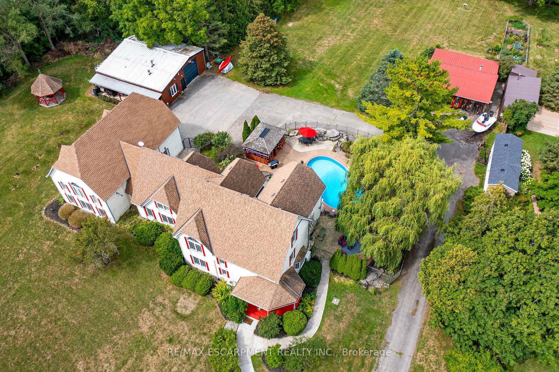Welcome to 1166 Westbrook Road, a distinguished country estate that perfectly blends timeless Colonial architecture with thoughtful modern enhancements. Originally crafted in 1984 and lovingly maintained ever since, this once in a lifetime home is set on an impressive 2.3-acre postcard-worthy lot surrounded by natures best. From the moment you arrive, the tree-lined setting, manicured lawns, and landscaped gardens invite you into a world of serenity and sophistication. Inside, the home boasts an elegant layout highlighted by spacious principal rooms, an updated chefs kitchen with premium appliances and custom cabinetry, multiple fireplaces, hardwood flooring, and abundant windows framing picturesque views in every direction. The 2 storey primary retreat offers a spa-like ensuite, private sitting area with a gas fireplace, a balcony overlooking the grounds, and a private staircase to a large loft that provides endless possibilities. The remaining upper level is home additional bedrooms and flexible spaces to accommodate family, guests, or home office needs with ease. Outside, the property is a true oasis for entertaining or relaxation, featuring expansive decks and rolling green space bordered by mature trees that provide a sense of escape. Here is where you can enjoy an inground pool, cabana, outdoor kitchen, gazebo, hot tub, log cabin, fireplace and several outbuildings. The attached heated garage accommodates up to six vehicles and presents endless potential for a hobby workshop or studio. Ideal for commuters, this private haven offers quick access in all directions – just 10 minutes to Binbrook, Smithville, or Upper Centennial, where shopping, dining, schools, and everyday amenities abound. A rare opportunity to own a home that has captured the admiration of passersby for decades, this exceptional property offers the perfect balance of rural tranquility, executive living, and convenient proximity to modern comforts. Luxury Certified.