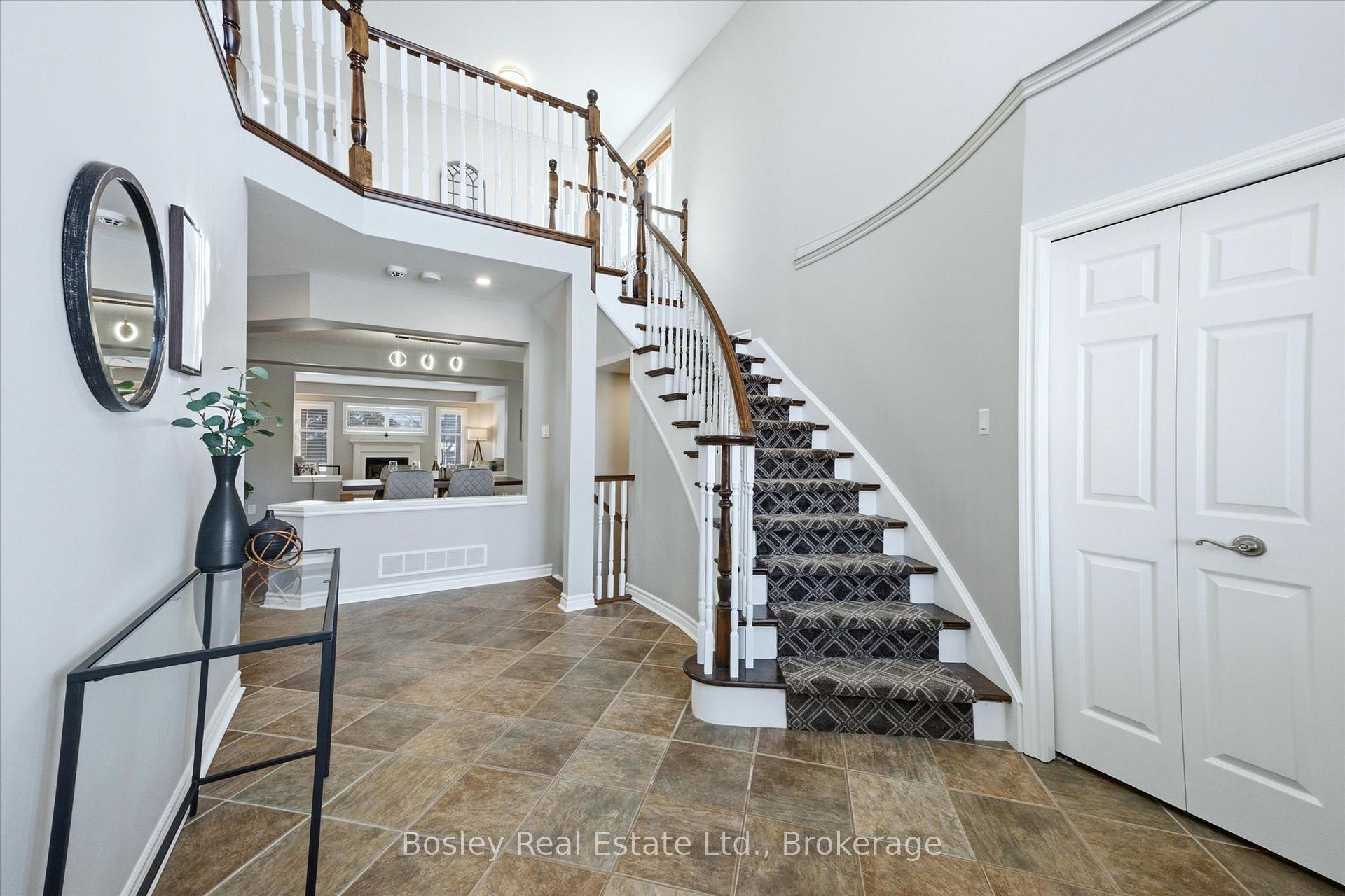 Move-in ready and beautifully updated, this stunning home is located in Guelph’s sought-after North End and offers modern upgrades with smart-home technology throughout. The grand foyer features soaring ceilings, leading into an open-concept main floor with a custom kitchen and island, formal dining room, and spacious living area-perfect for entertaining. Main-floor laundry and a powder room add everyday convenience.The fully finished basement offers a bright and versatile additional living space. Upstairs, you’ll find four generous bedrooms, including a primary retreat with a 4-piece ensuite and private balcony. Set on an extra-large lot backing onto Wardolf School, the backyard features a spacious deck and hot tub (2017).Highlights include a new roof (2019), renovated kitchen (2018), three updated bathrooms, new laundry appliances (2024/2025), pot lights throughout, and refinished stairs, siding, and front door (2024). Smart features include a Triple+ water monitoring system with automatic shut-off and a Bell Security & Automation System. Close to top schools, parks, shopping, and Guelph Lake Conservation Area. Book your private showing today