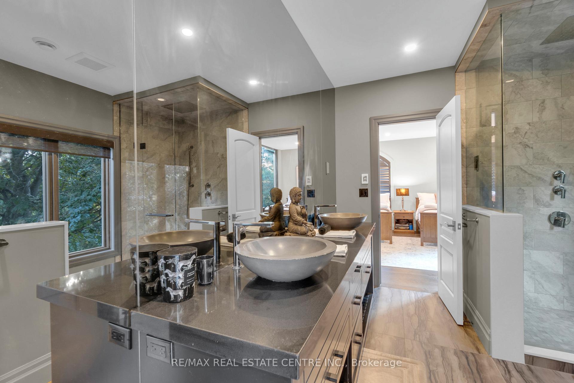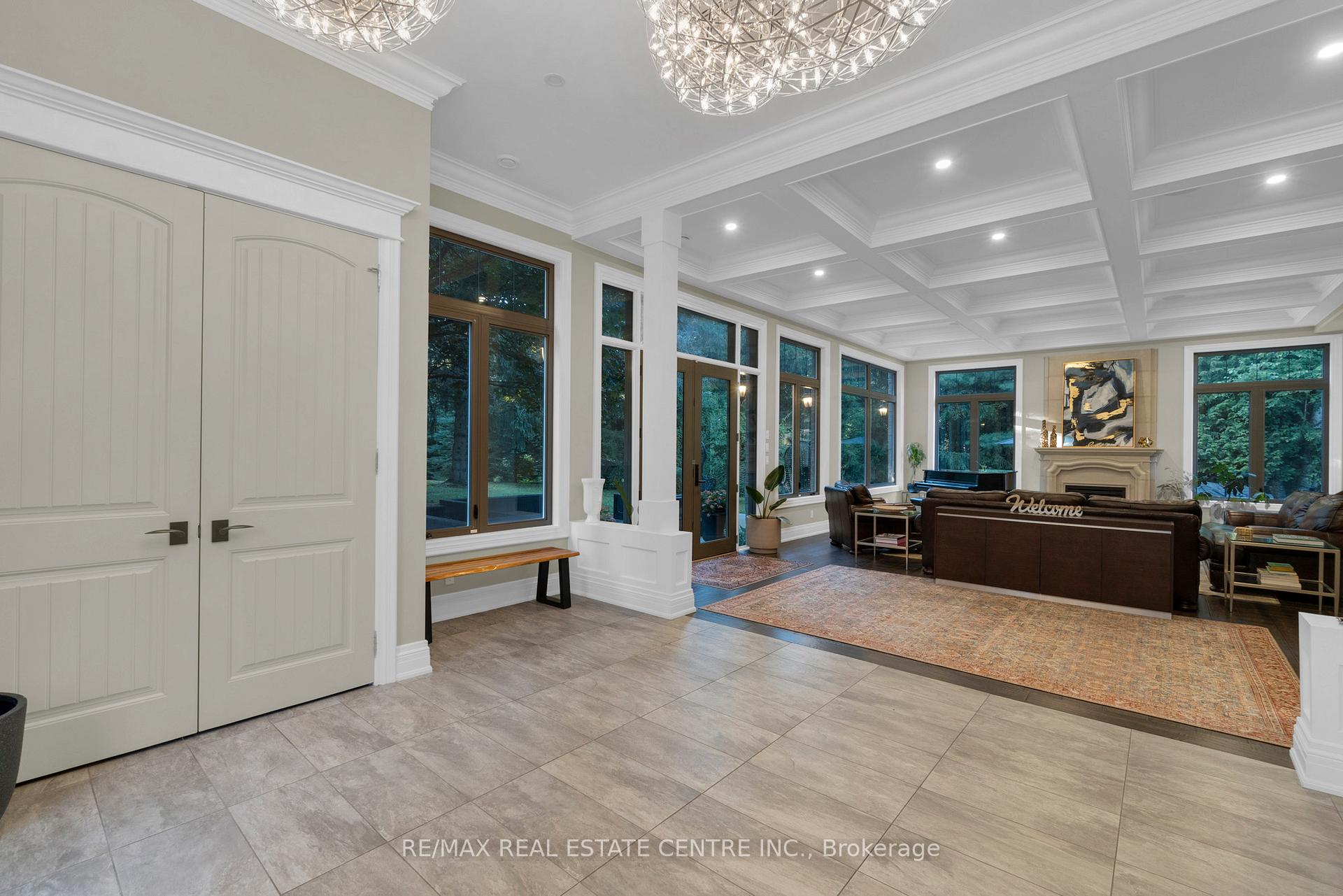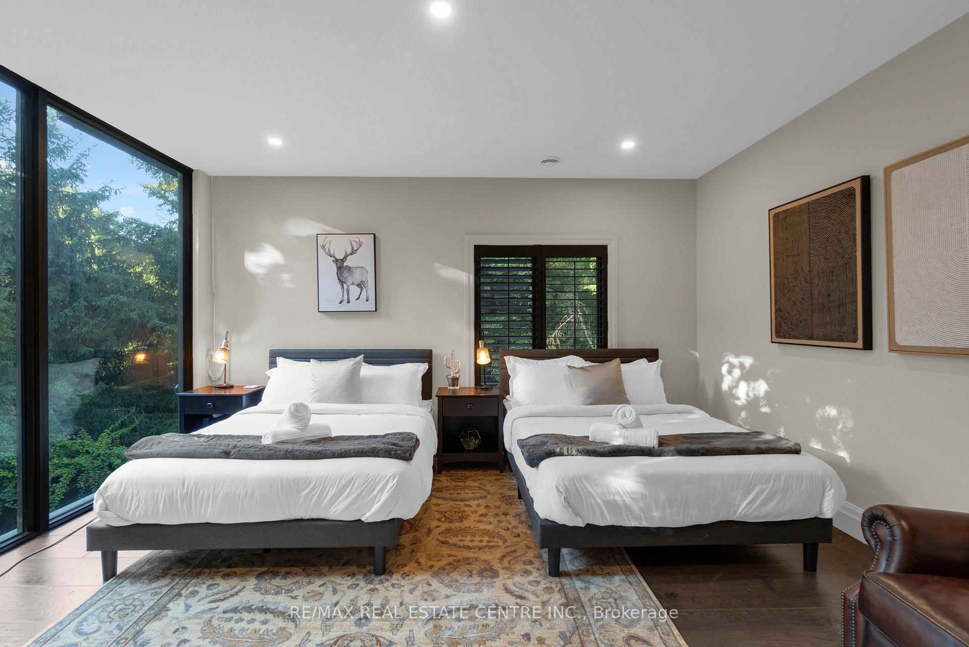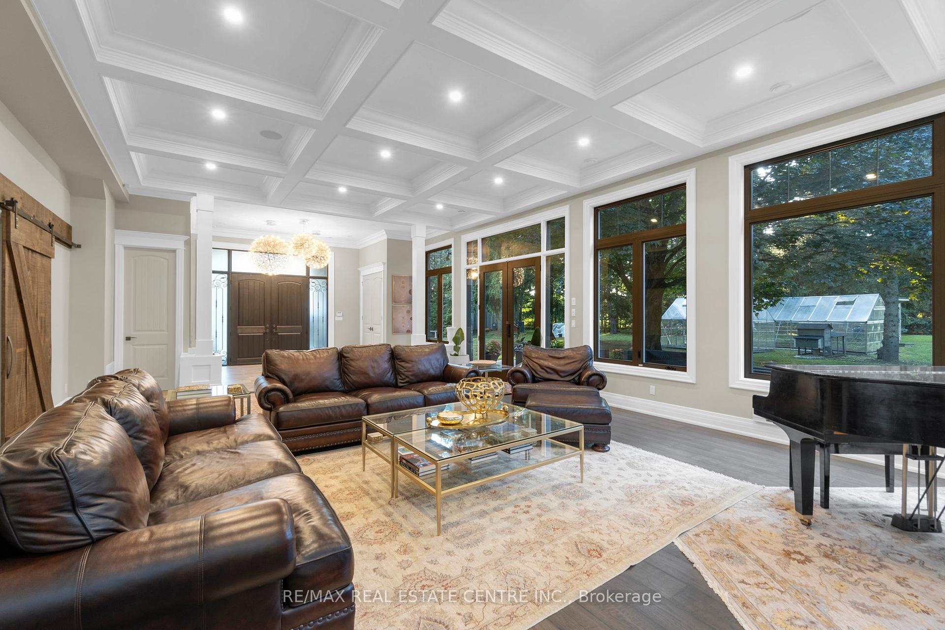 Welcome to your private retreat – this stunning custom-built home (2017) sits on 17 acres of serene countryside, offering over 6,345 sq. ft. of above grade luxurious living space. Designed with both elegance and comfort in mind, the home showcases oversized windows, luxury finishes, hardwood flooring, heated washroom floors and recessed lighting throughout, creating a warm & inviting atmosphere.The heart of the home is the expansive chefs kitchen, featuring a generous center island perfect for family gatherings or entertaining.The kitchen flows seamlessly into the family room, highlighted by beautiful waffle ceilings and large windows that bring in natural light. The massive primary suite is a true sanctuary, complete with its own lounge and study, plus a spa-inspired 5-piece ensuite featuring dual vanities and a shower with two shower heads. The 2nd and 3rd bedrooms boast floor-to-ceiling windows, filling each space with breathtaking views. For entertainment and relaxation, the home offers an impressive array of amenities: a recreation room with walkout to the heated outdoor pool, a soundproof private theatre, treehouse, large garden bed with dedicated water and power for growing fruits or veggies, and an entire third-floor retreat with yoga-workout space. Whether you are hosting intimate movie nights or morning meditation sessions, this home caters to every lifestyle. Step outside to multiple outdoor seating areas, thoughtfully designed for large family dinners or gatherings with friends, all surrounded by the peaceful expanse of your own private 17 acres! ***Out of the total 17 acre lot, the West side of the property features approximately 10 acres of crop land that can be rented to a farmer if you desire, while the East side of the property the house is situated on features approx. 7 acres of green space/grass. Building permit for 1000 Sq Ft barn on West side of property. Opportunity to acquire $20k of equipment to build your own greenhouse, if desired.***