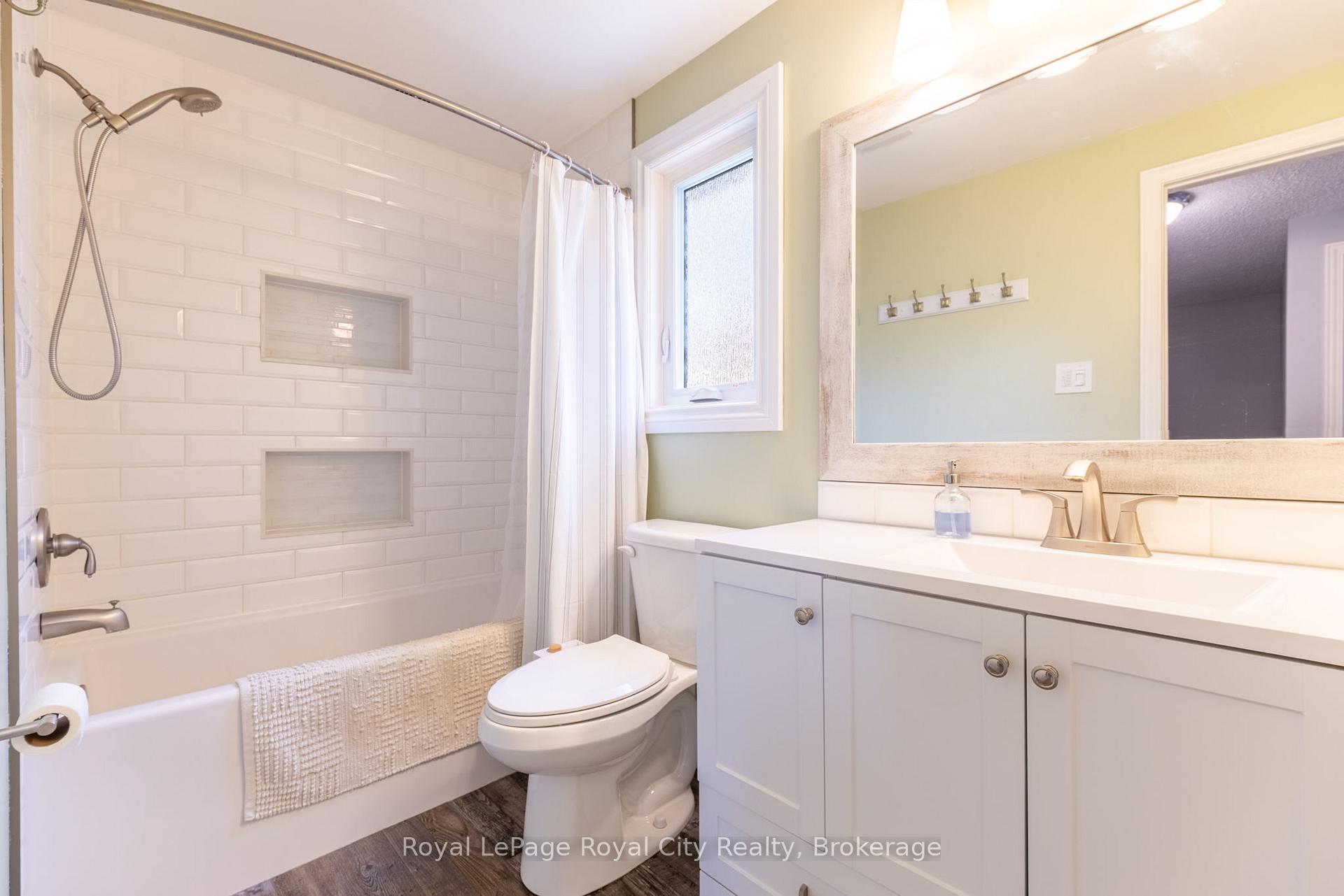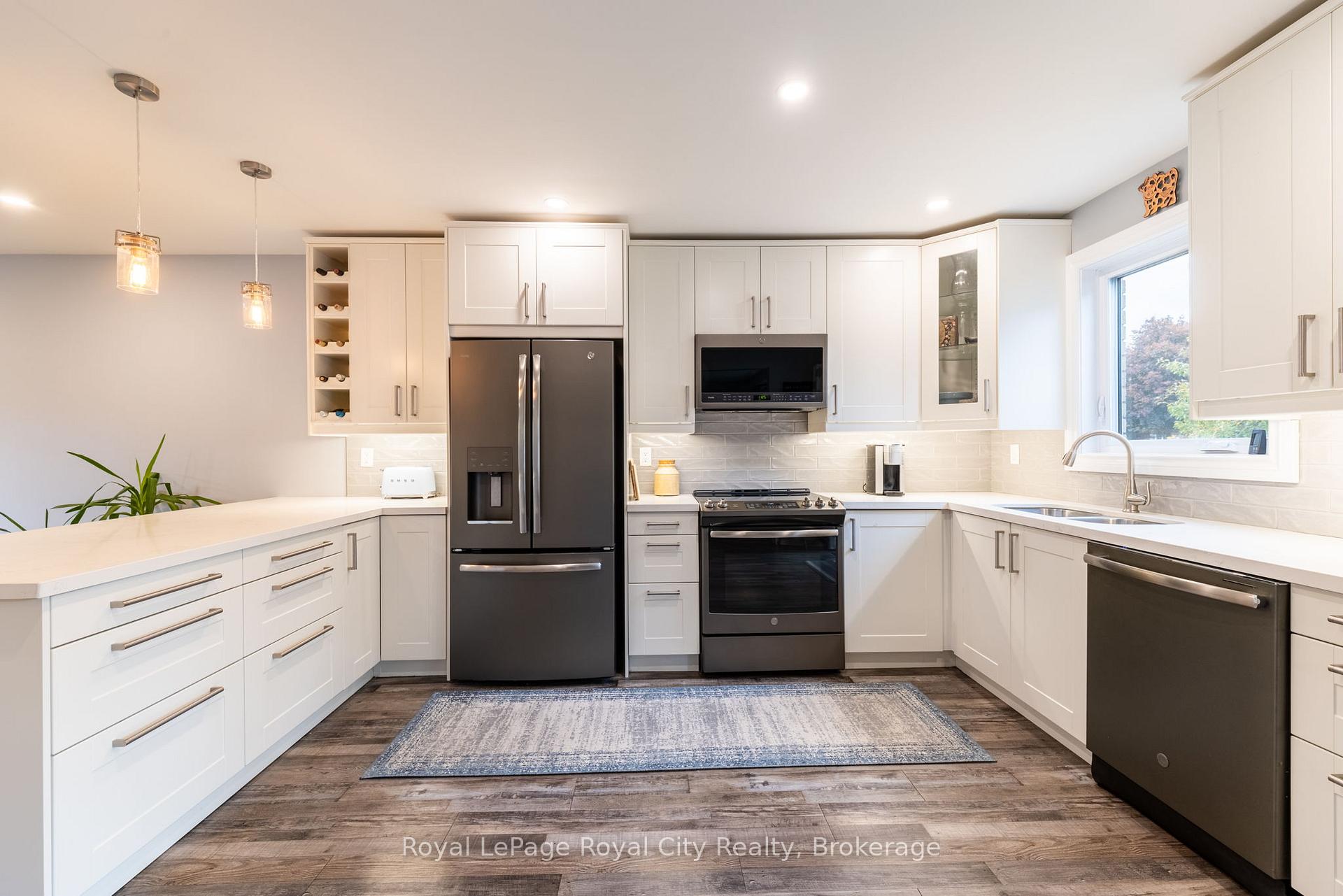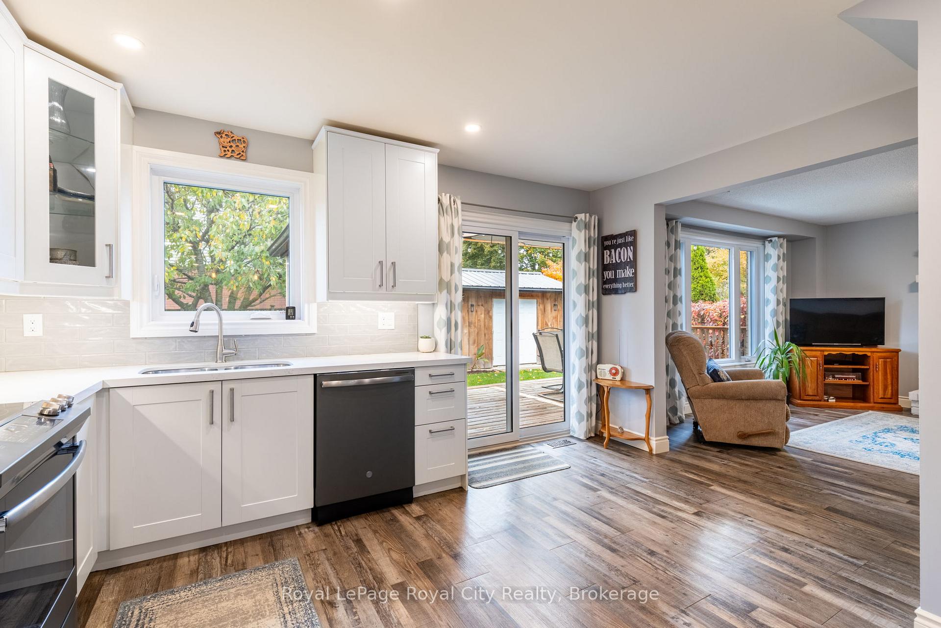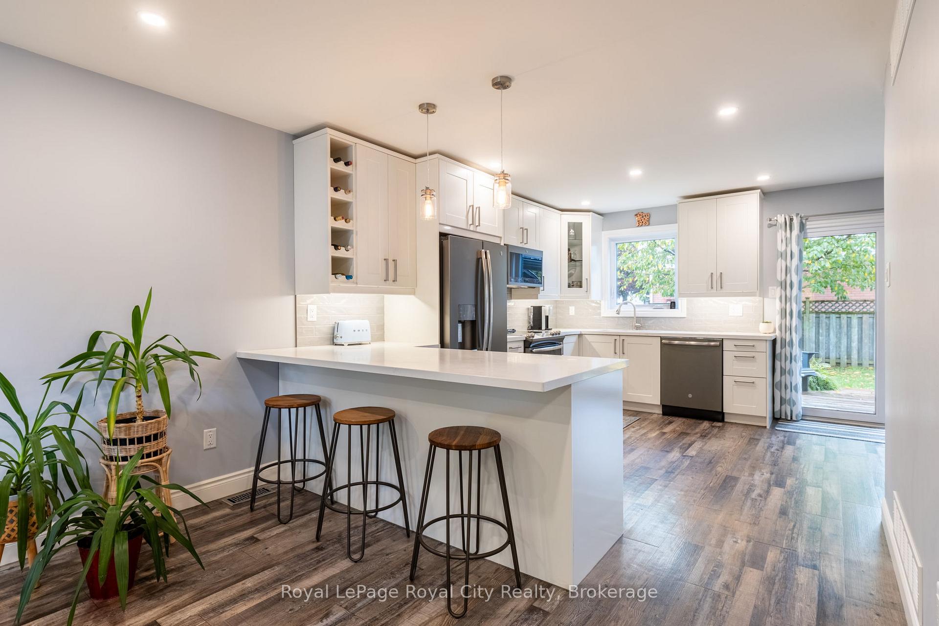 Offering a mature location and a large corner lot, stylish updates and a sleek home that is move-in ready – welcome to 118 Stirling MacGregor Dr. in the sought after West Galt neighbourhood of Cambridge! As you enter your eye is drawn to the open concept dining space which overlooks the modern and fully updated kitchen (2020) offering quartz countertops, a breakfast bar and stainless-steel appliances. Enjoy the ambiance of the new gas fireplace (2023) as you make your way to the living room – imagine yourself cozying up as you admire the large backyard from the bay window. The main floor is complete with a functional mud room and powder room. Heading upstairs you are met with 3 large bedrooms and an updated 4-piece bathroom (2020). The fully finished basement ensures there is enough room for the whole family – adding another bedroom and a renovated 3-piece bathroom (2020) creating potential for an in-law suite! The fully fenced backyard is perfect for family get togethers complete with a substantial shed boasting poured cement floor and steel roof (2021). Further upgrades include: new windows and doors (except basement and garage, 2021), furnace (2022), water softener (2021), washer and dryer (2021) & more! Enjoy nearby parks, schools, and quick highway access-your family home awaits at 118 Stirling MacGregor Dr.!