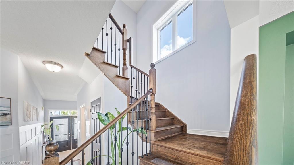 Welcome to 119 Barlow Place in the charming town of Paris! This beautiful 3-bedroom, 3-bathroom all-brick two-storey home offers plenty of space for a growing family in a prime location close to dining, shopping, scenic trails, and more. Step into the bright and inviting entryway, finished with wainscoting and a coat closet, and move into the open-concept main floor. The spacious living room flows seamlessly into the eat-in kitchen, complete with a center island, breakfast bar, shaker-style cabinetry, tiled backsplash, stainless steel appliances, and abundant counter and cupboard space. Oversized patio doors off the kitchen provide easy access to the backyard, perfect for entertaining. Also on the main level are a convenient 2-piece powder room and laundry. Upstairs, a large landing offers a versatile den space—ideal for a kids’ play area or home office. The primary suite, situated at the back of the home for added privacy, features a walk-in closet and spa-like ensuite with dual vanity, soaker tub, and walk-in shower. Two additional generously sized bedrooms and a 4-piece bathroom complete the second floor. The unfinished basement is full of potential, awaiting your personal touches, and already includes a rough-in for a 3-piece bathroom. The backyard is also a blank canvas, ready to be transformed into your dream outdoor space. Located in a fantastic neighbourhood with easy access to major amenities, this is a home you won’t want to miss!